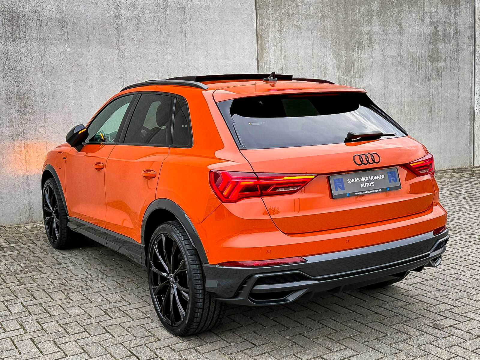 NIEUW MODEL | MODEL 2022! Een uitzonderlijke Edition One /Audi Exclusive uitgevoerde en in prachtige staat verkerende Audi Q3 45 TFSI e 245pk S-Tronic Competition S Edition S-Line! Afkomstig van de 1e eigenaar, volledig Audi dealer onderhouden en met een zeer interessante, gecontroleerde tellerstand van slechts 35.382 kilometer. Deze prachtige sportieve SUV in de Edition One uitvoering icm met Puls Orange Pearl lak zorgt voor geweldige en unieke uitstraling! De configuratie van de S-Line uitvoering icm het Edition One pakket die gepaard gaat met de Manhattan Grey metallic accenten is kortom fantastisch. Met een zeer royale waslijst aan fabrieksopties; zoals de elektrisch verstelbare zwart Valcona lederen S-Sportstoelen incl. Puls Orange stiksels + geheugen fuctie / Memory, 360° Camera/ Area View, Zwart optiekpakket, Audi Exclusive Alcantara airbag incl. Puls Orange stiksels + lederen multifunctioneel 3-spaaks S-line sportstuurwiel, Pemium leder pakket Audi Exclusive o.a. Puls Orange Alcantara incl. Puls Orange stiksels icm de Carbon interieur afwerking, Audi Magnetic Ride/ instelbare comfort Adaptieve dempingssysteem, HD Matrix Dynamische LED koplampen, het Panoramisch glazen schuif-/kanteldak en natuurlijk de Audi Virtual Cockpit! Deze Q3 Edtion One biedt geweldige prestaties met z’n 180kw/245pk en 400Nm koppel sterke 1.4TFSI turbomotor, gekoppeld aan de Audi S-Tronic aandrijving een trekvermogen van 1400kg . Het betreft een BTW-auto, dus voor zowel de zakelijke als particuliere klant interessant. De getoonde 21inch Black Performance velgenset met 4x Vredestein Quatrac Pro Allseason banden is tegen geringe meerprijs van €2195,- te verkrijgen.