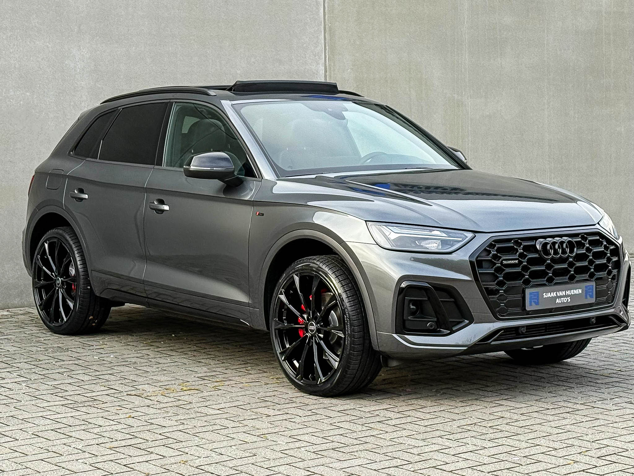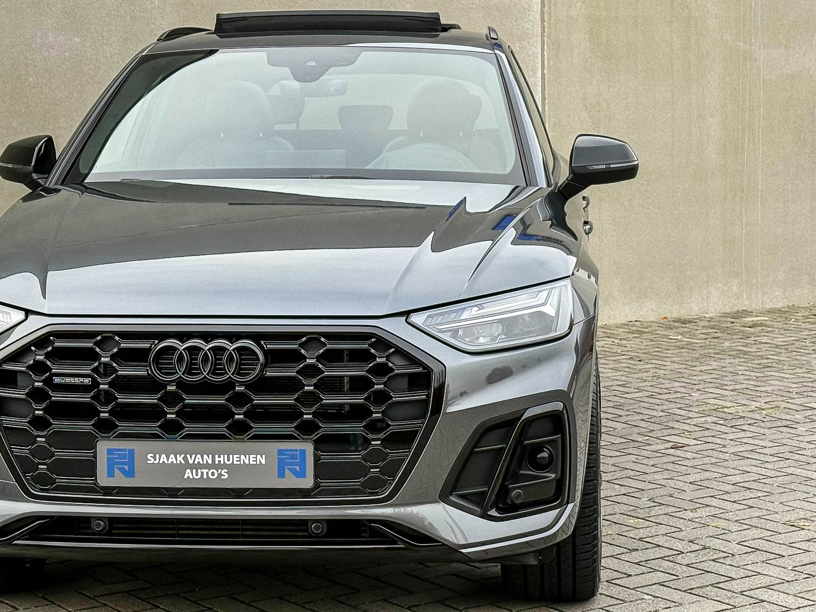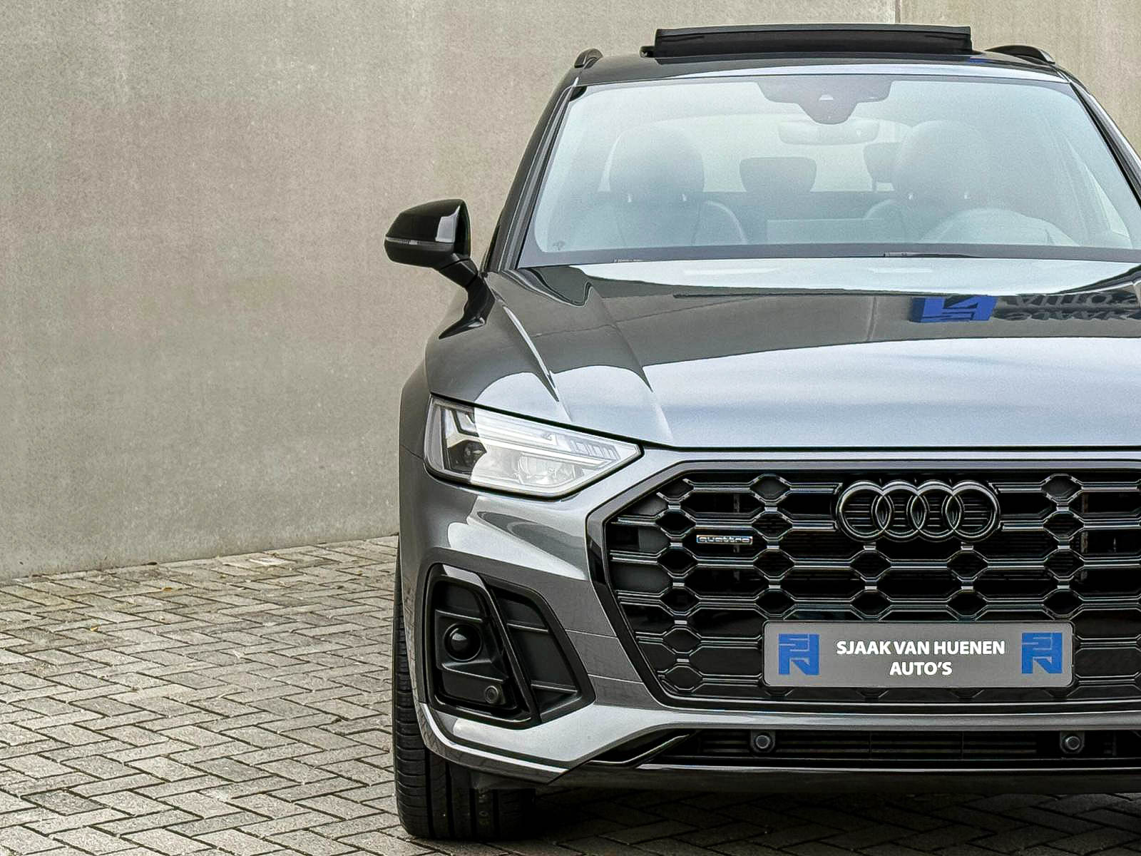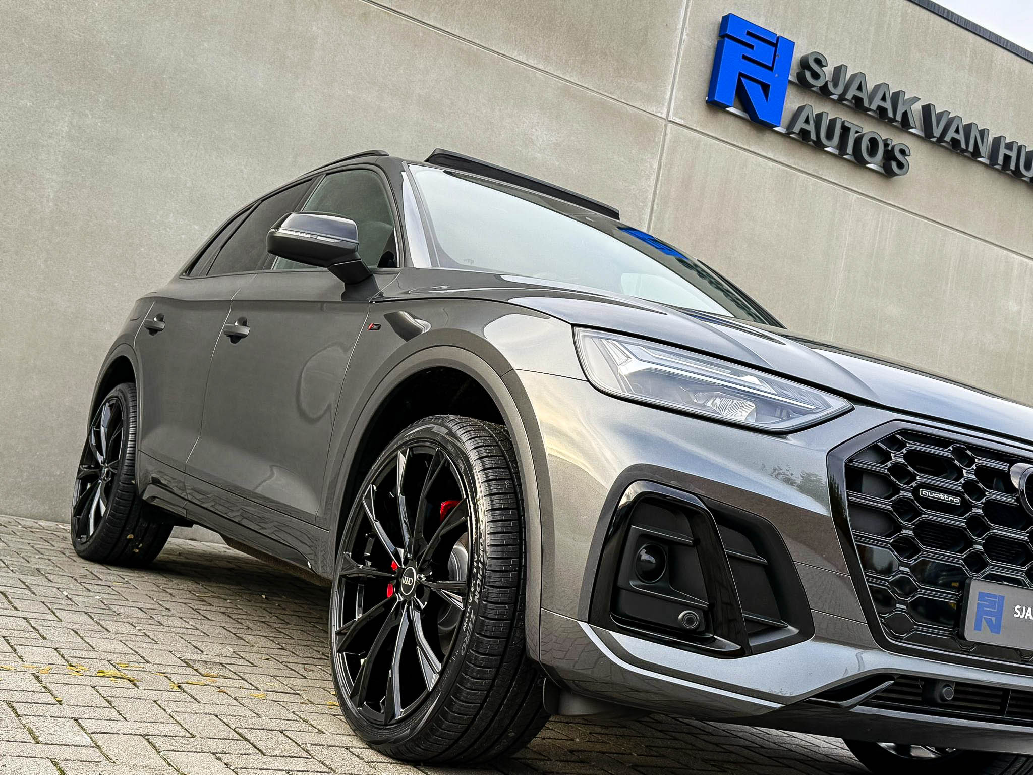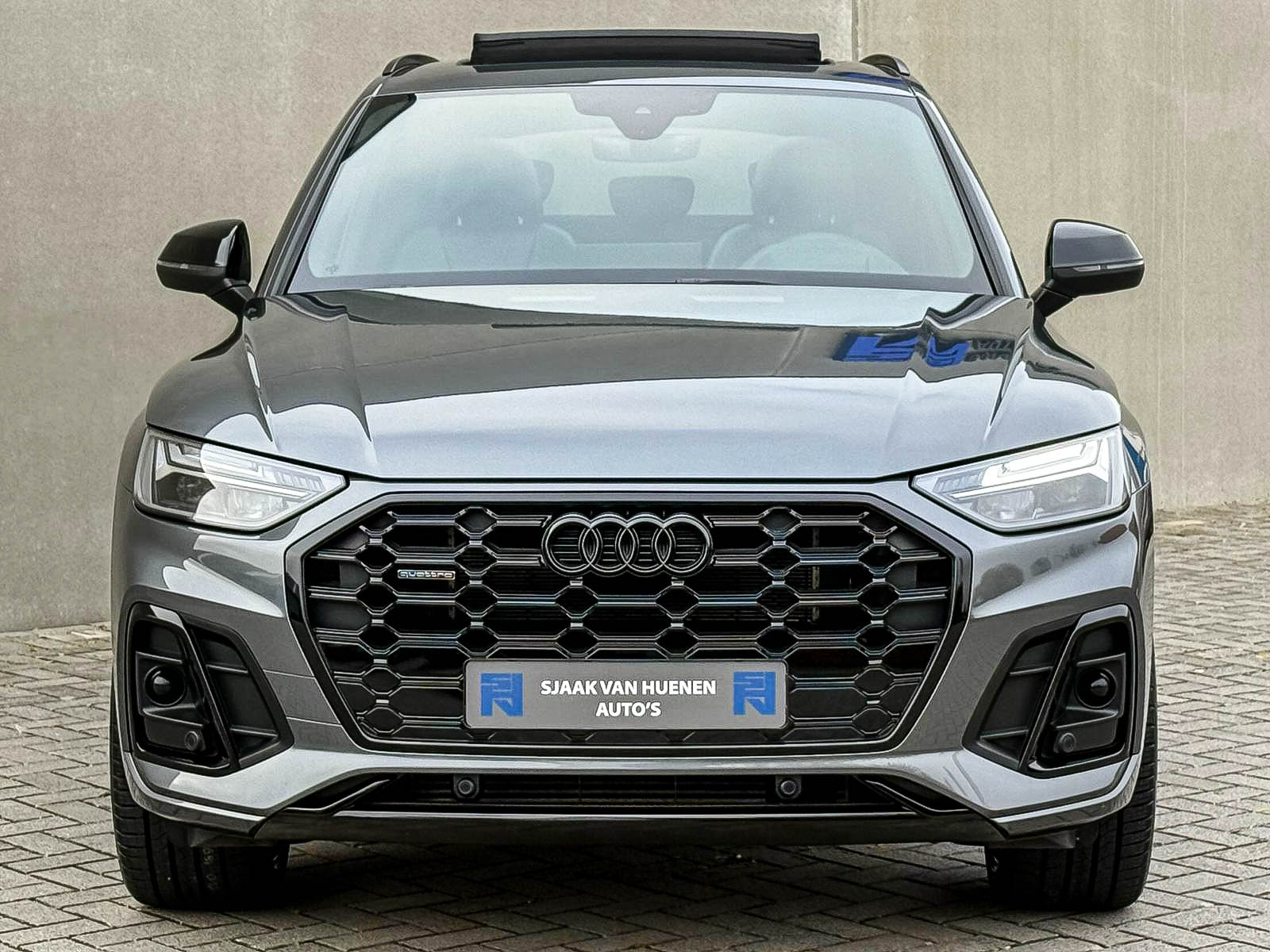 NIEUW MODEL | MODEL 2022! Een in uitmuntende staat verkerende Audi Q5 50 TFSI e 220kw/299pk Quattro Competition S-Tronic Automaat Pro Line S S-Line! Door ons rechtstreeks aangekocht bij de Audi dealer, afkomstig van de 1e eigenaar en uiteraard volledig Audi dealer onderhouden. Prachtige uitstraling door de Daytona Grey parel lak gecombineerd met het Zwart optiekpakket, het Panoramisch glazen schuif-/kanteldak en natuurlijk de Audi Virtual Cockpit! Deze Audi biedt met de 299pk en 450Nm sterke 2.0 liter TFSI turbomotor, gekoppeld aan de Audi Quattro 4-wielaandrijving een trekvermogen van 2000kg. Het betreft een BTW-auto, dus voor zowel de zakelijke als particuliere klant interessant. De getoonde 22inch Black Performance velgenset met 4x GoodYear Eagle F1 zomerbanden is tegen geringe meerprijs van €2595,- te verkrijgen.