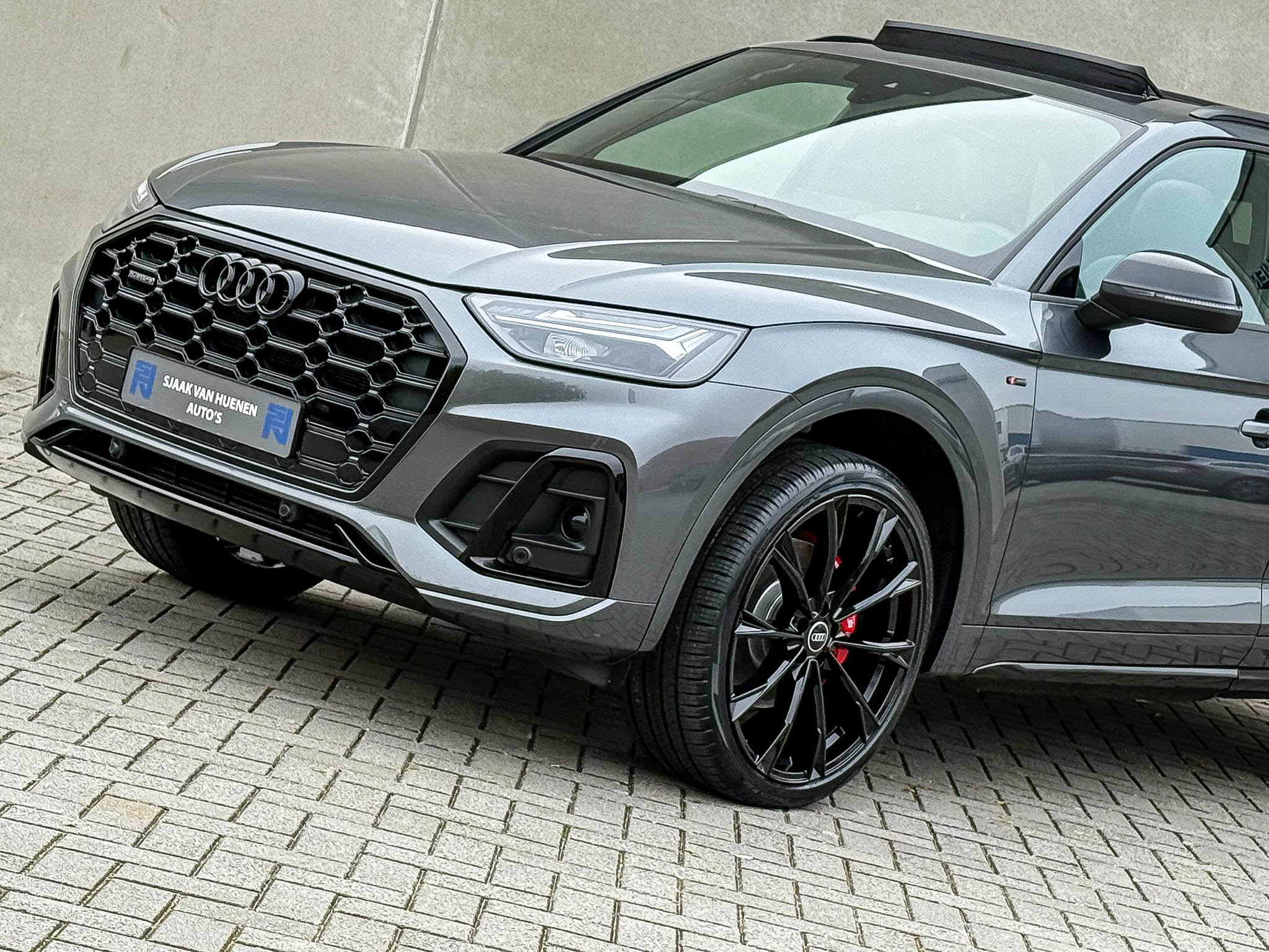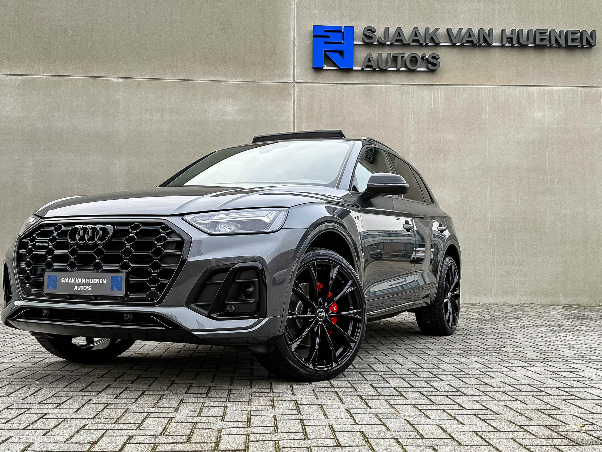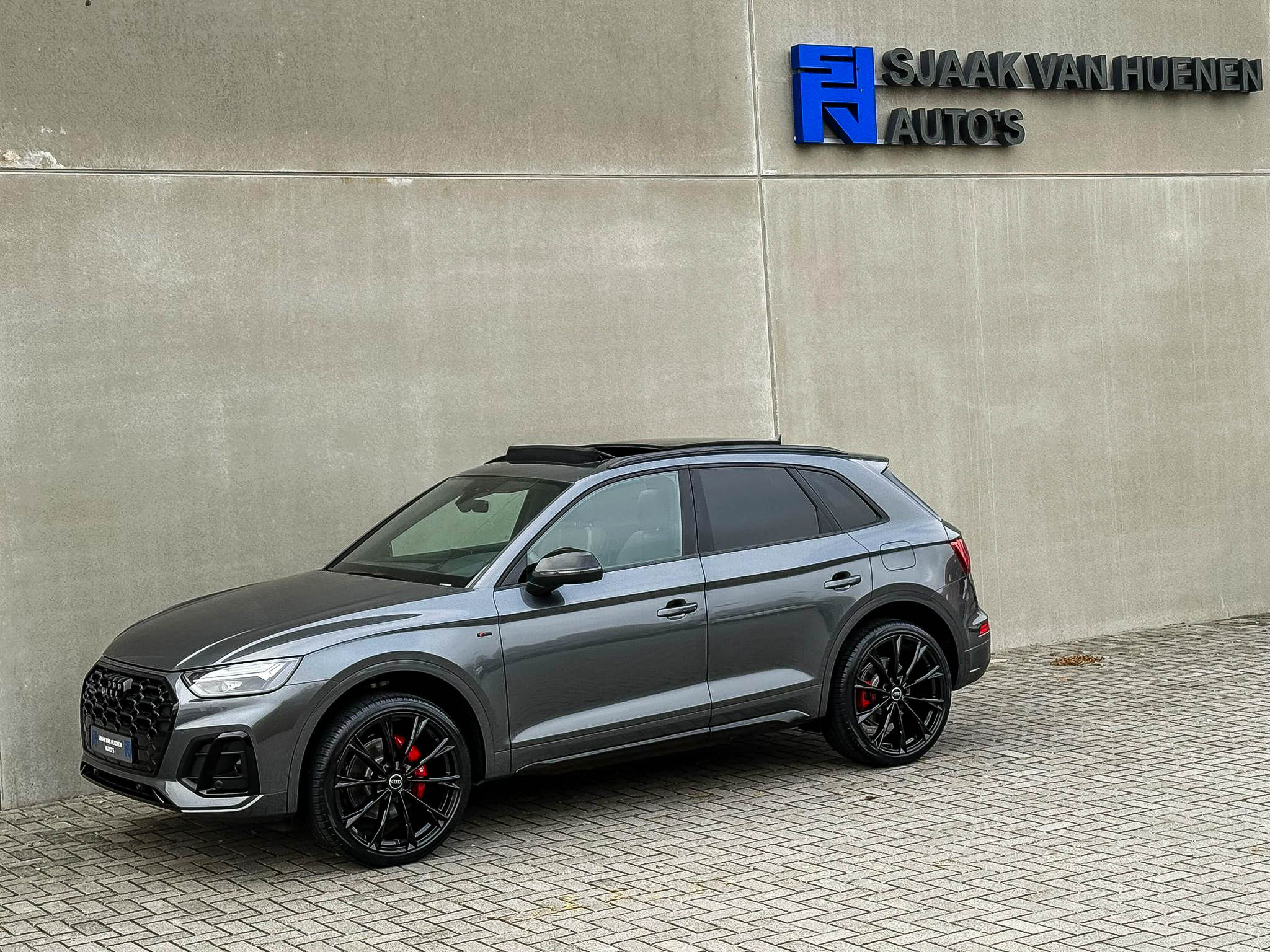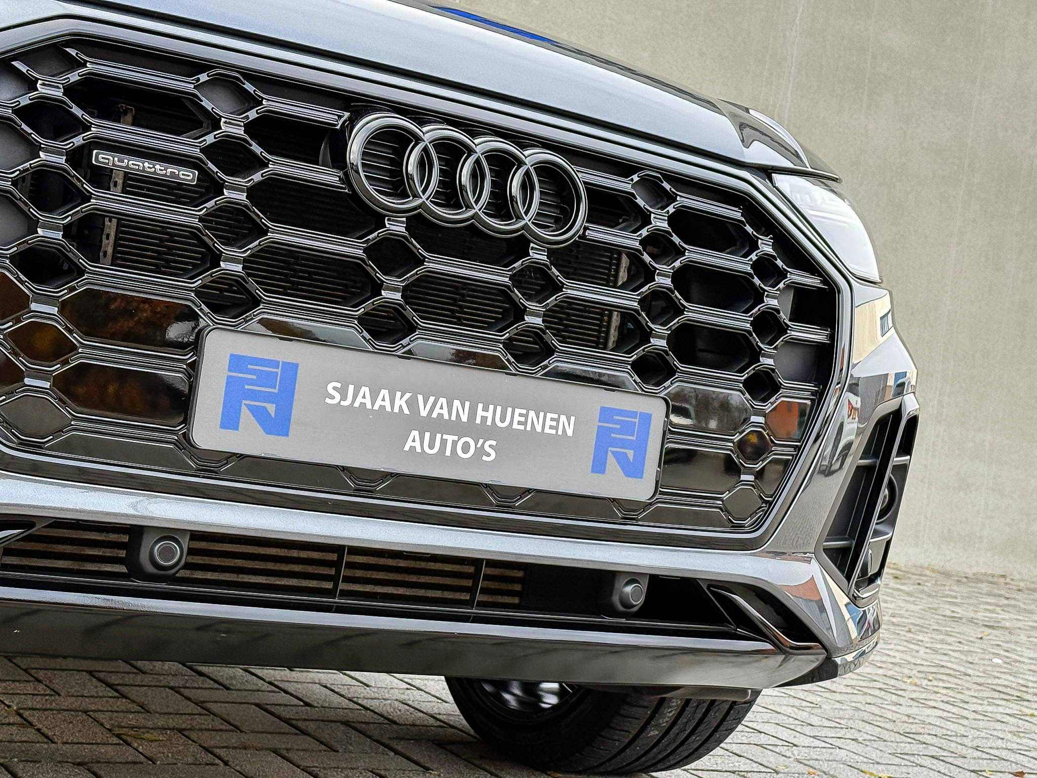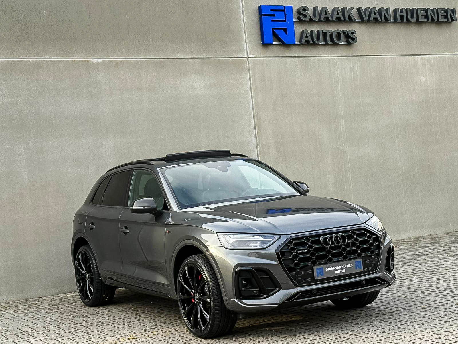 NIEUW MODEL | MODEL 2022! Een in uitmuntende staat verkerende Audi Q5 50 TFSI e 220kw/299pk Quattro Competition S-Tronic Automaat Pro Line S S-Line! Door ons rechtstreeks aangekocht bij de Audi dealer, afkomstig van de 1e eigenaar en uiteraard volledig Audi dealer onderhouden. Prachtige uitstraling door de Daytona Grey parel lak gecombineerd met het Zwart optiekpakket, het Panoramisch glazen schuif-/kanteldak en natuurlijk de Audi Virtual Cockpit! Deze Audi biedt met de 299pk en 450Nm sterke 2.0 liter TFSI turbomotor, gekoppeld aan de Audi Quattro 4-wielaandrijving een trekvermogen van 2000kg. Het betreft een BTW-auto, dus voor zowel de zakelijke als particuliere klant interessant. De getoonde 22inch Black Performance velgenset met 4x GoodYear Eagle F1 zomerbanden is tegen geringe meerprijs van €2595,- te verkrijgen.