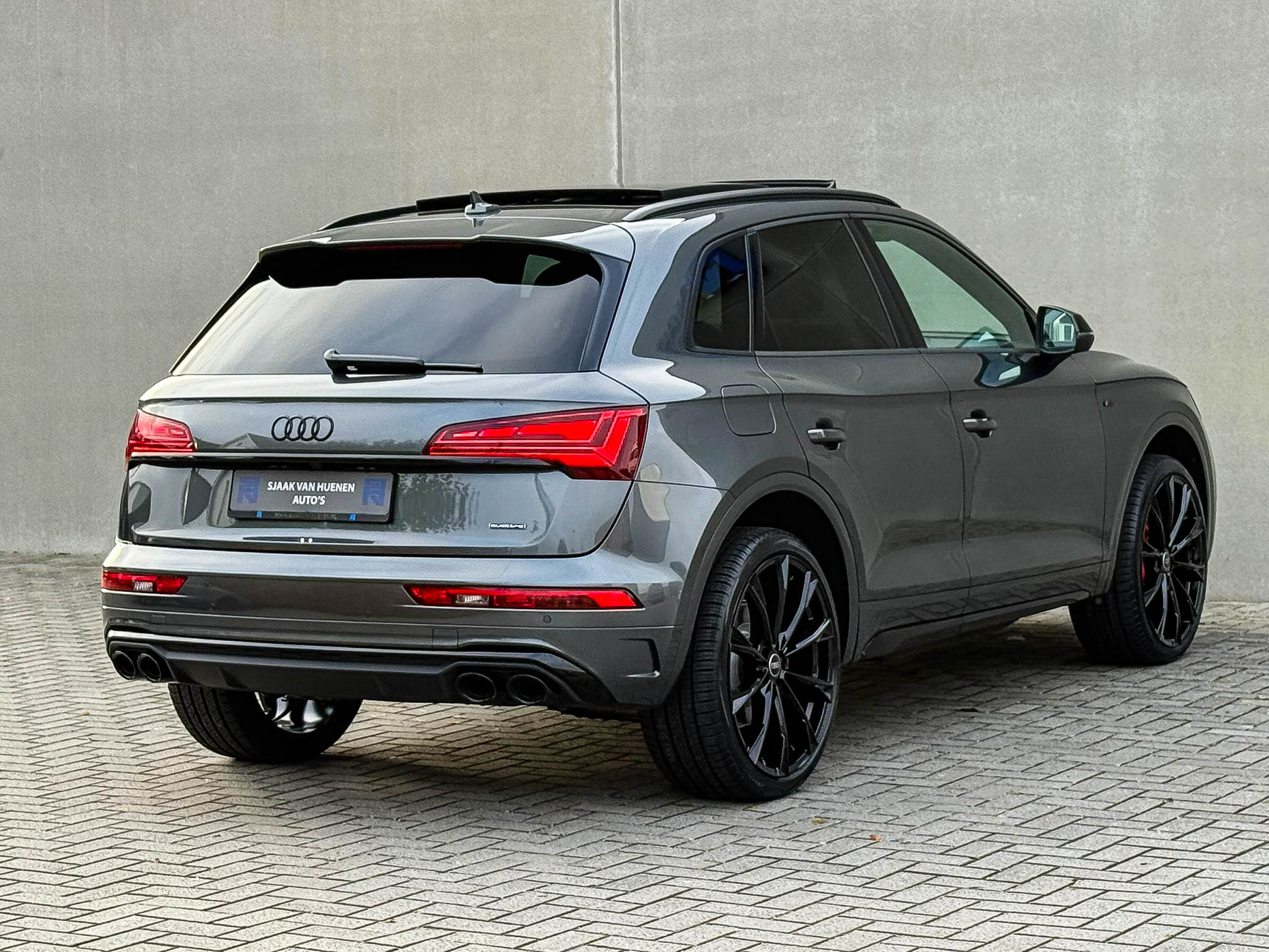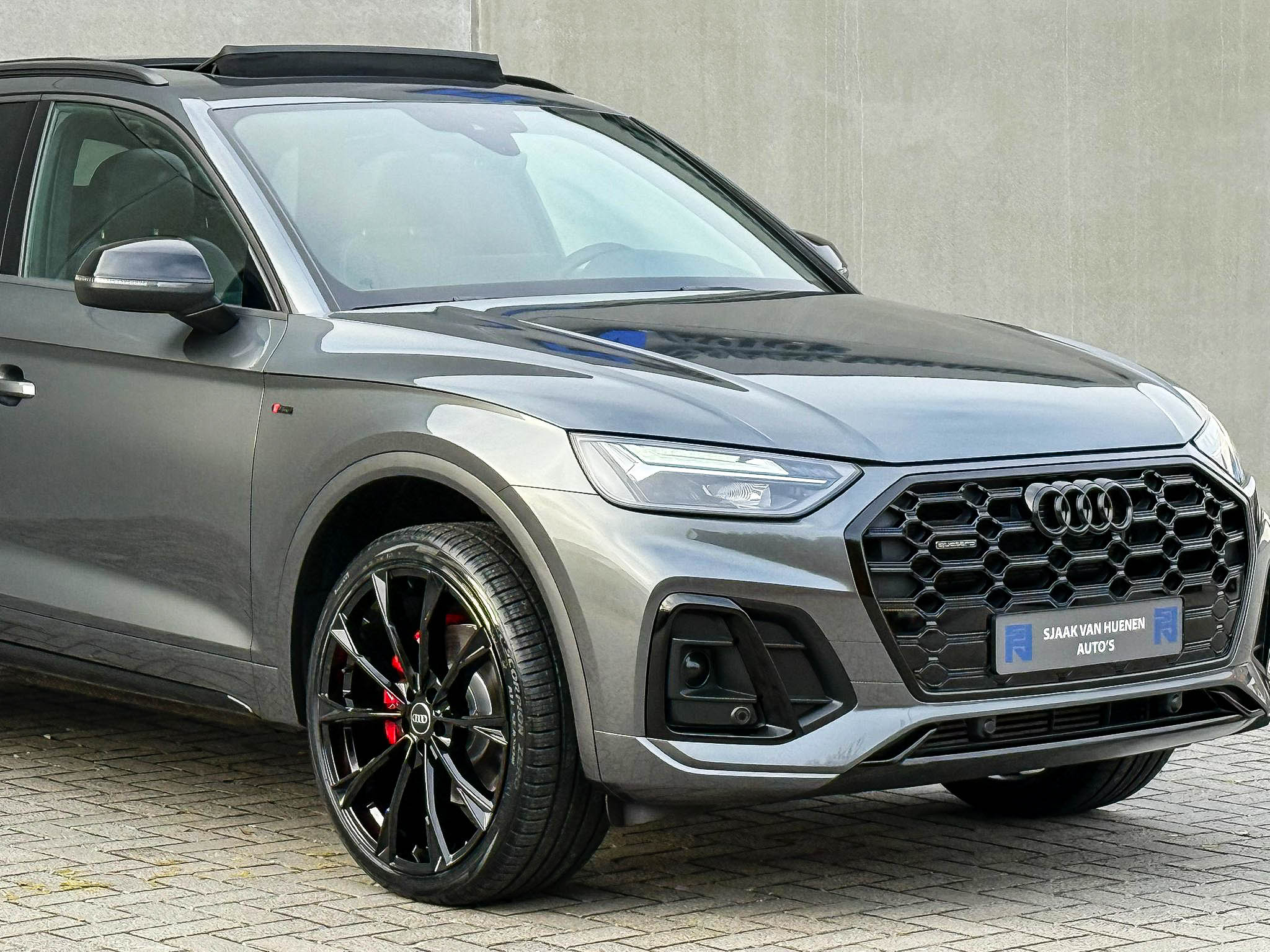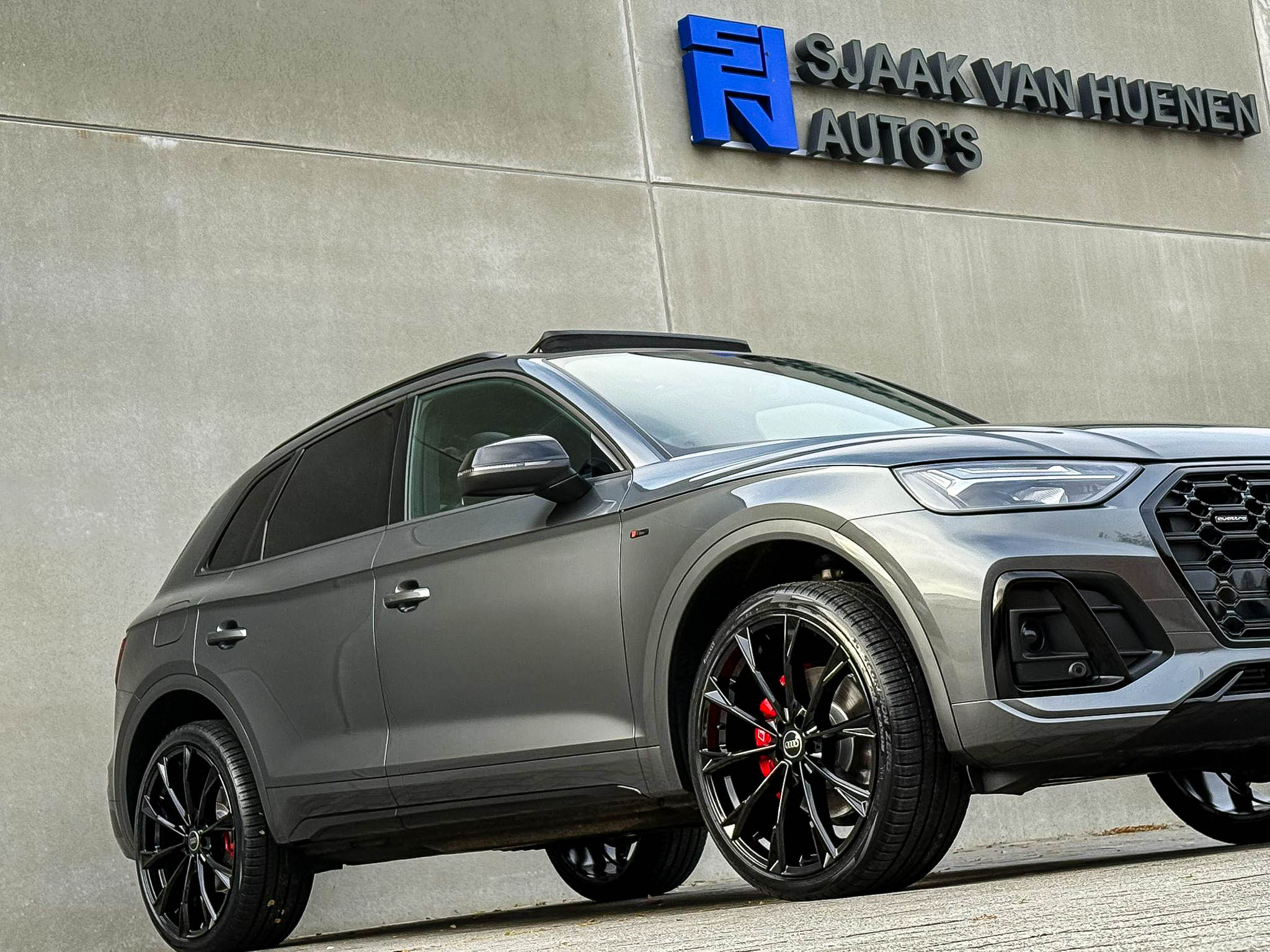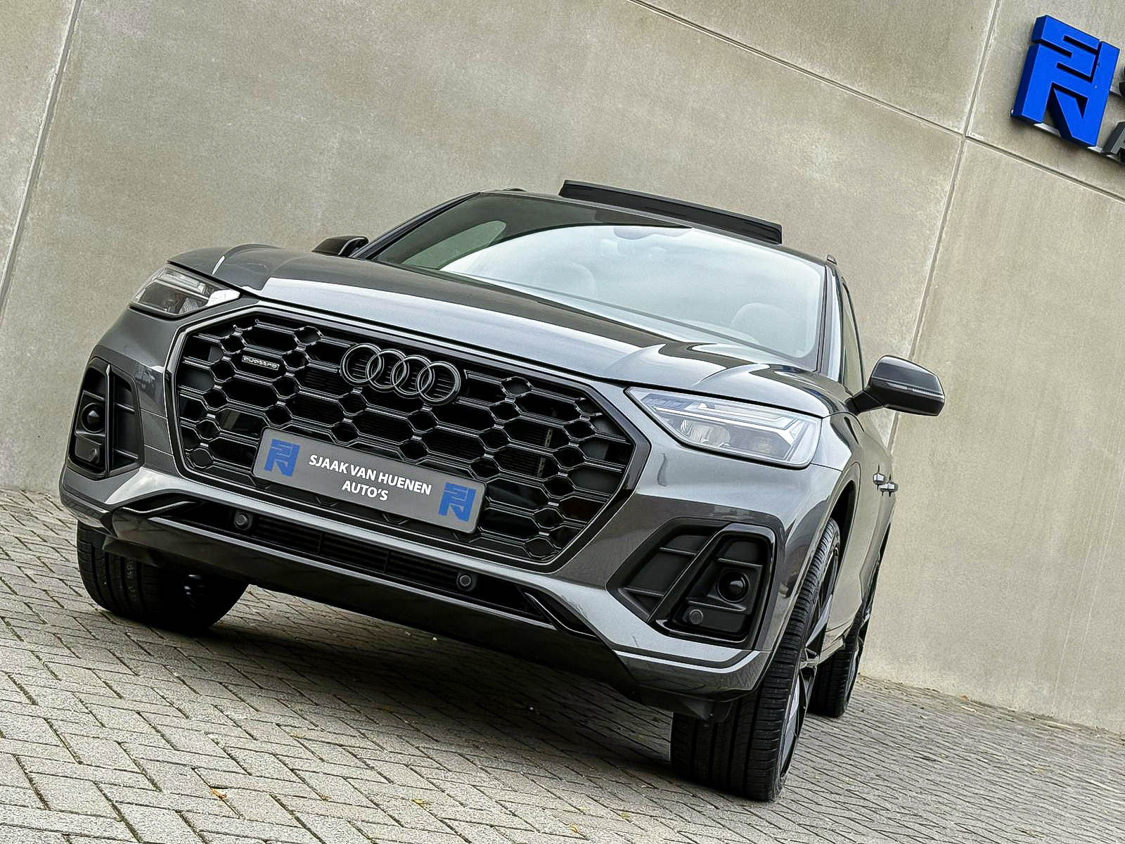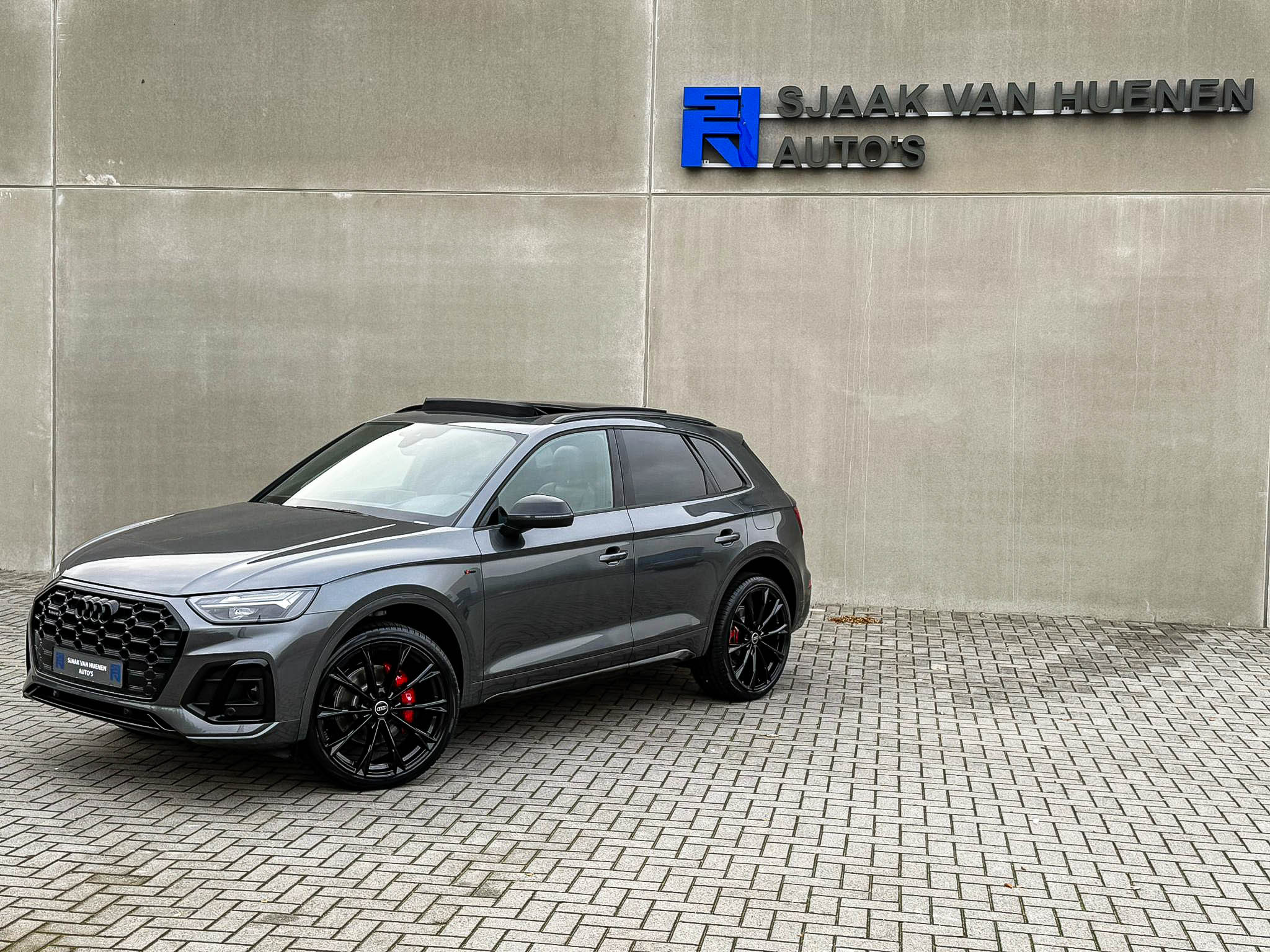 NIEUW MODEL | MODEL 2022! Een in uitmuntende staat verkerende Audi Q5 50 TFSI e 220kw/299pk Quattro Competition S-Tronic Automaat Pro Line S S-Line! Door ons rechtstreeks aangekocht bij de Audi dealer, afkomstig van de 1e eigenaar en uiteraard volledig Audi dealer onderhouden. Prachtige uitstraling door de Daytona Grey parel lak gecombineerd met het Zwart optiekpakket, het Panoramisch glazen schuif-/kanteldak en natuurlijk de Audi Virtual Cockpit! Deze Audi biedt met de 299pk en 450Nm sterke 2.0 liter TFSI turbomotor, gekoppeld aan de Audi Quattro 4-wielaandrijving een trekvermogen van 2000kg. Het betreft een BTW-auto, dus voor zowel de zakelijke als particuliere klant interessant. De getoonde 22inch Black Performance velgenset met 4x GoodYear Eagle F1 zomerbanden is tegen geringe meerprijs van €2595,- te verkrijgen.