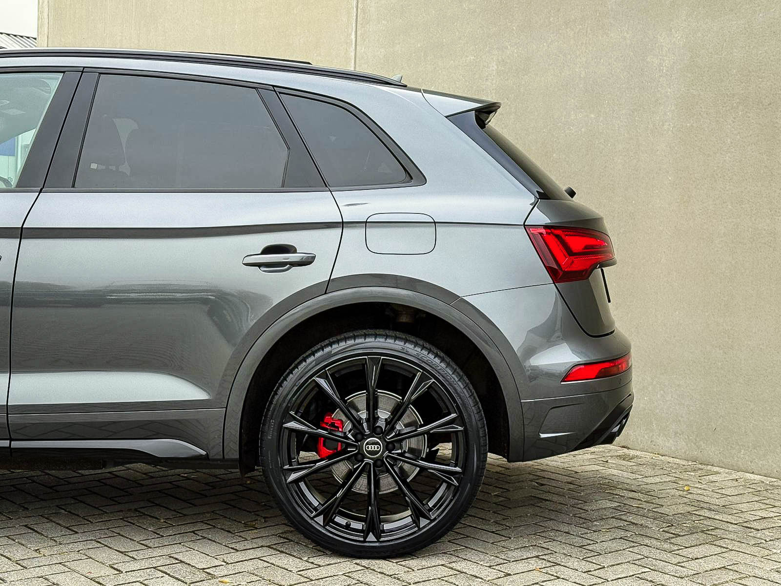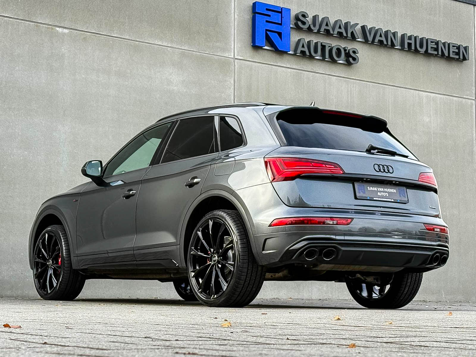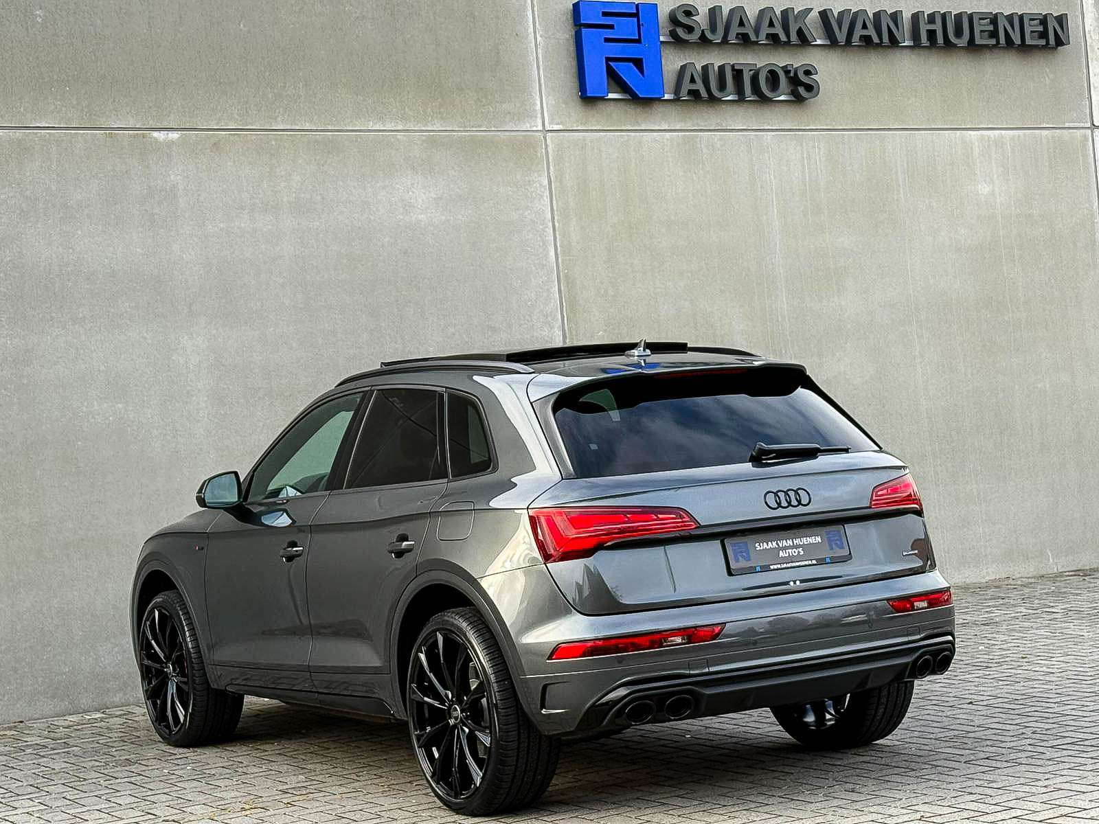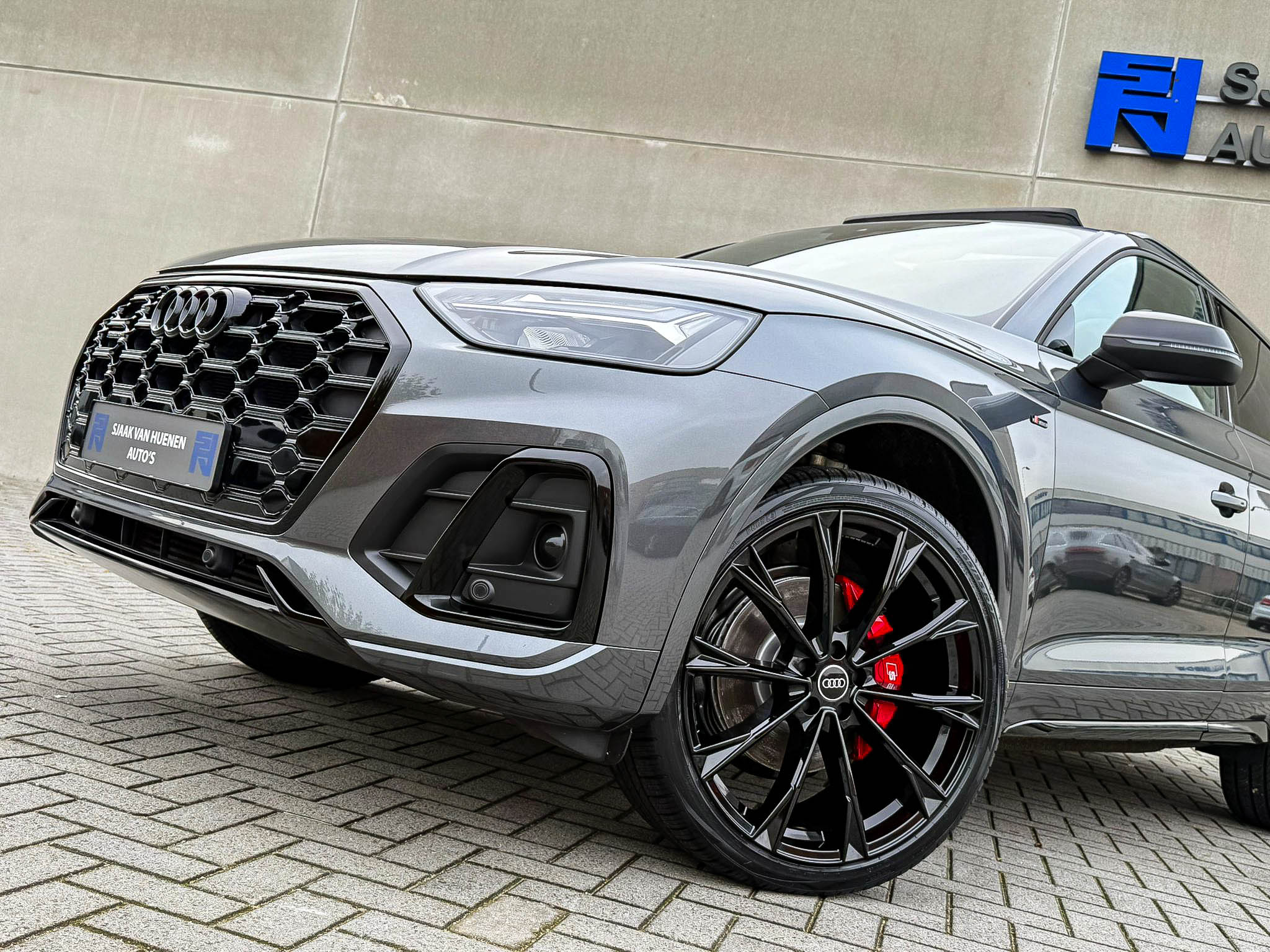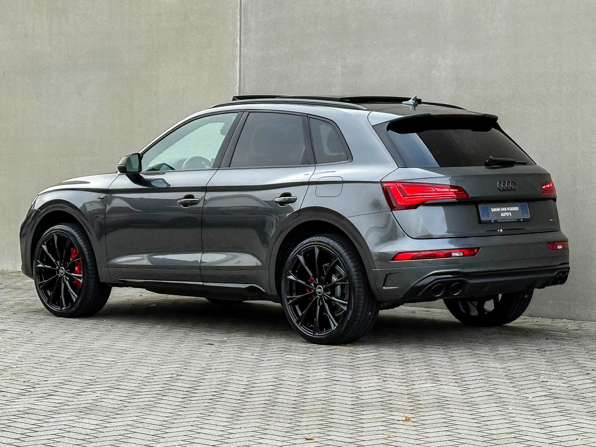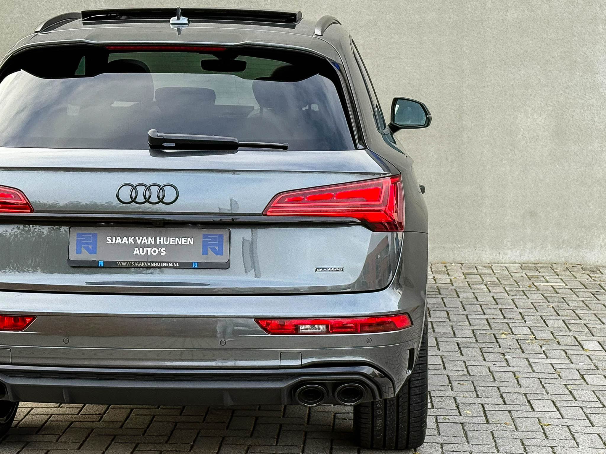 NIEUW MODEL | MODEL 2022! Een in uitmuntende staat verkerende Audi Q5 50 TFSI e 220kw/299pk Quattro Competition S-Tronic Automaat Pro Line S S-Line! Door ons rechtstreeks aangekocht bij de Audi dealer, afkomstig van de 1e eigenaar en uiteraard volledig Audi dealer onderhouden. Prachtige uitstraling door de Daytona Grey parel lak gecombineerd met het Zwart optiekpakket, het Panoramisch glazen schuif-/kanteldak en natuurlijk de Audi Virtual Cockpit! Deze Audi biedt met de 299pk en 450Nm sterke 2.0 liter TFSI turbomotor, gekoppeld aan de Audi Quattro 4-wielaandrijving een trekvermogen van 2000kg. Het betreft een BTW-auto, dus voor zowel de zakelijke als particuliere klant interessant. De getoonde 22inch Black Performance velgenset met 4x GoodYear Eagle F1 zomerbanden is tegen geringe meerprijs van €2595,- te verkrijgen.