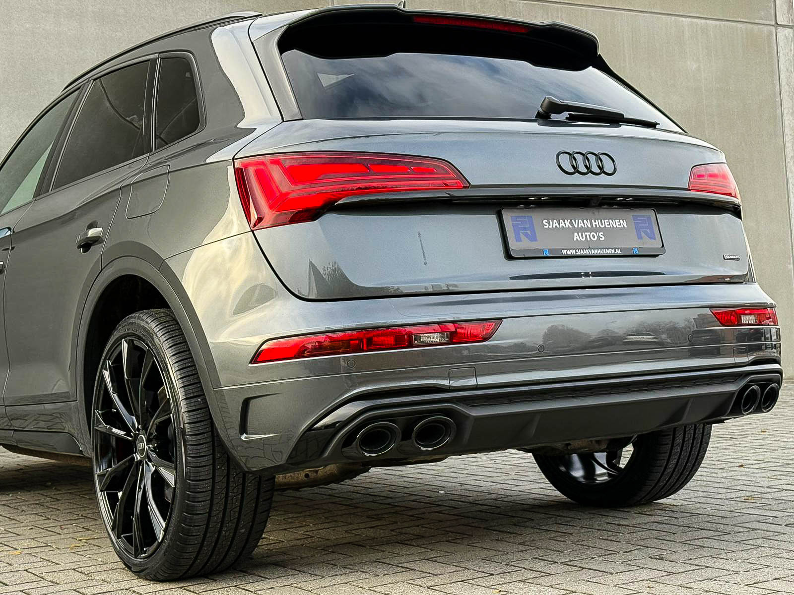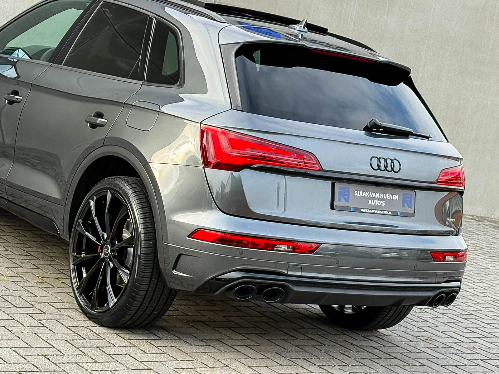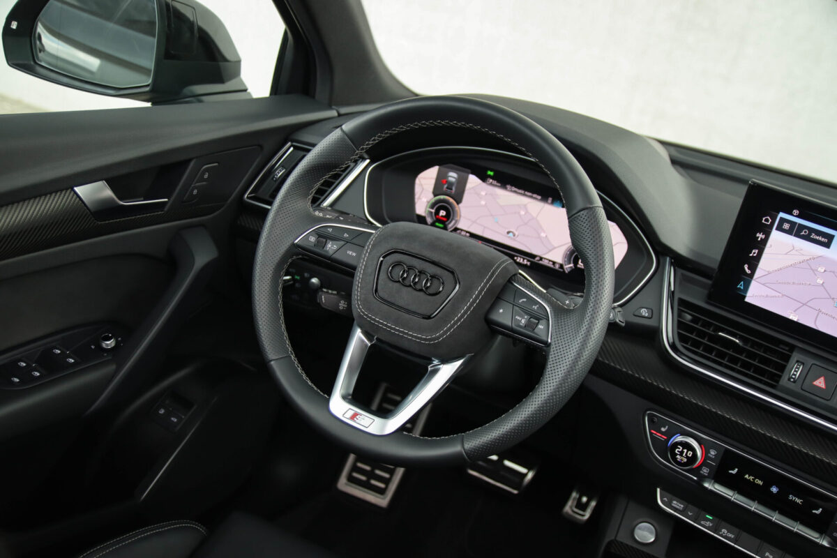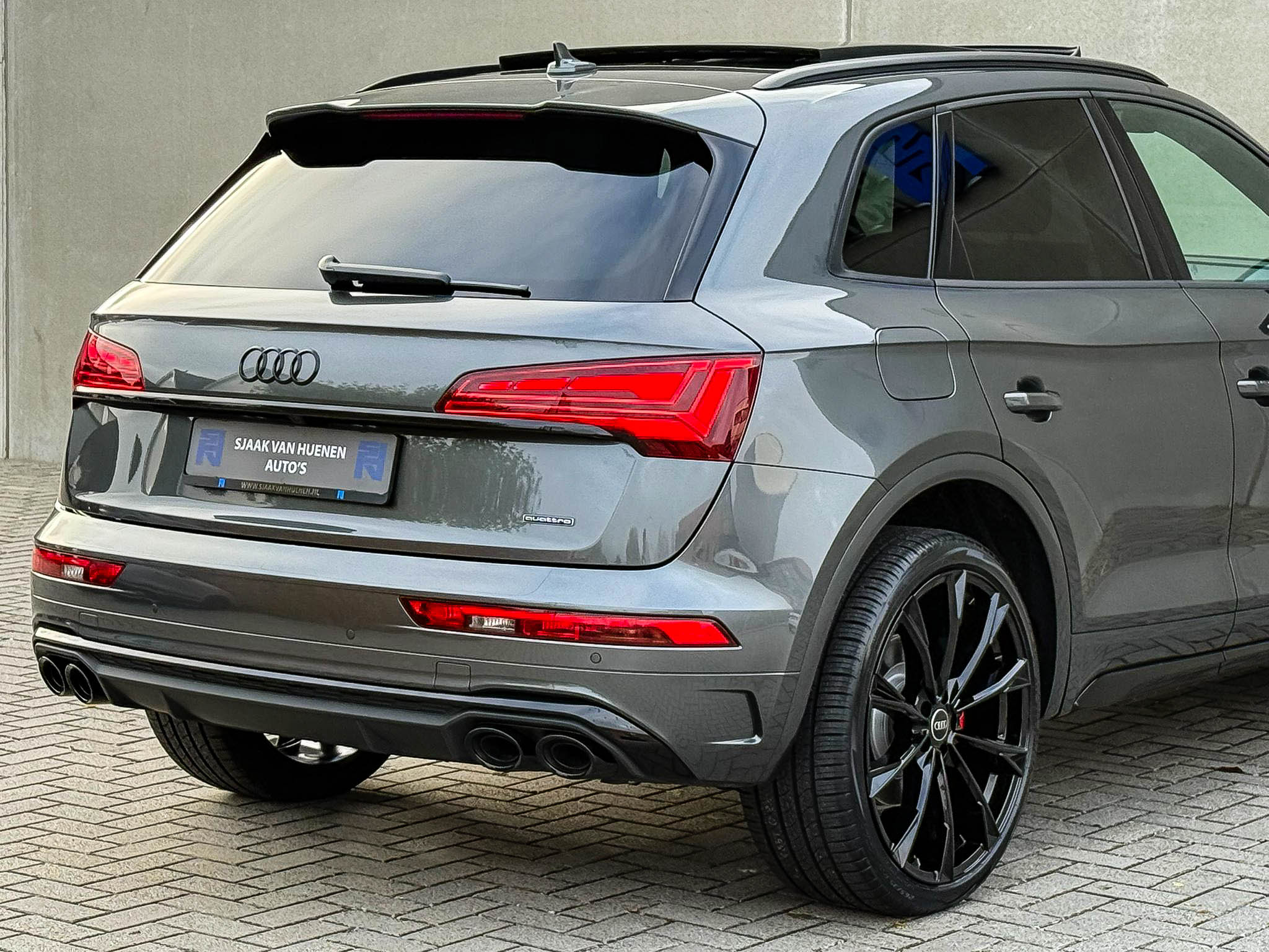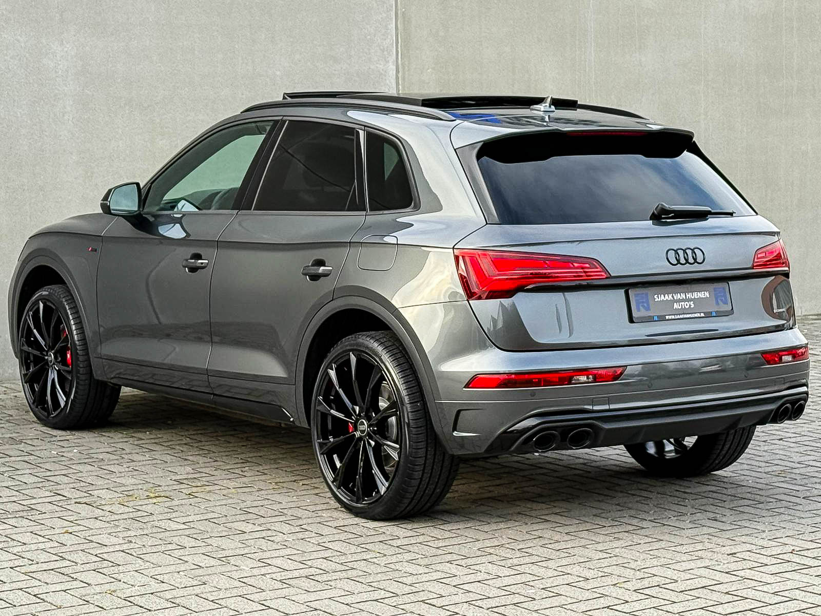 NIEUW MODEL | MODEL 2022! Een in uitmuntende staat verkerende Audi Q5 50 TFSI e 220kw/299pk Quattro Competition S-Tronic Automaat Pro Line S S-Line! Door ons rechtstreeks aangekocht bij de Audi dealer, afkomstig van de 1e eigenaar en uiteraard volledig Audi dealer onderhouden. Prachtige uitstraling door de Daytona Grey parel lak gecombineerd met het Zwart optiekpakket, het Panoramisch glazen schuif-/kanteldak en natuurlijk de Audi Virtual Cockpit! Deze Audi biedt met de 299pk en 450Nm sterke 2.0 liter TFSI turbomotor, gekoppeld aan de Audi Quattro 4-wielaandrijving een trekvermogen van 2000kg. Het betreft een BTW-auto, dus voor zowel de zakelijke als particuliere klant interessant. De getoonde 22inch Black Performance velgenset met 4x GoodYear Eagle F1 zomerbanden is tegen geringe meerprijs van €2595,- te verkrijgen.