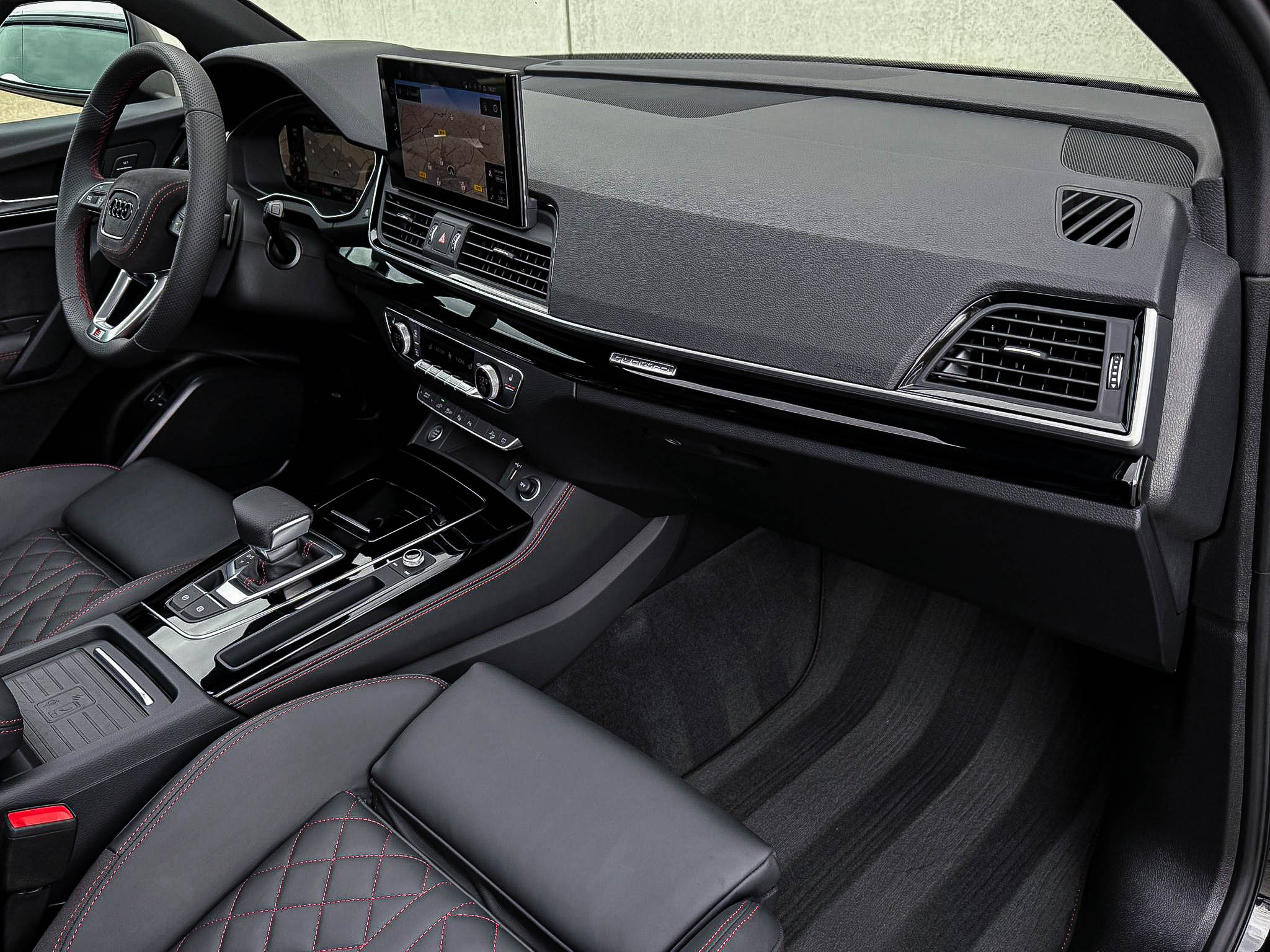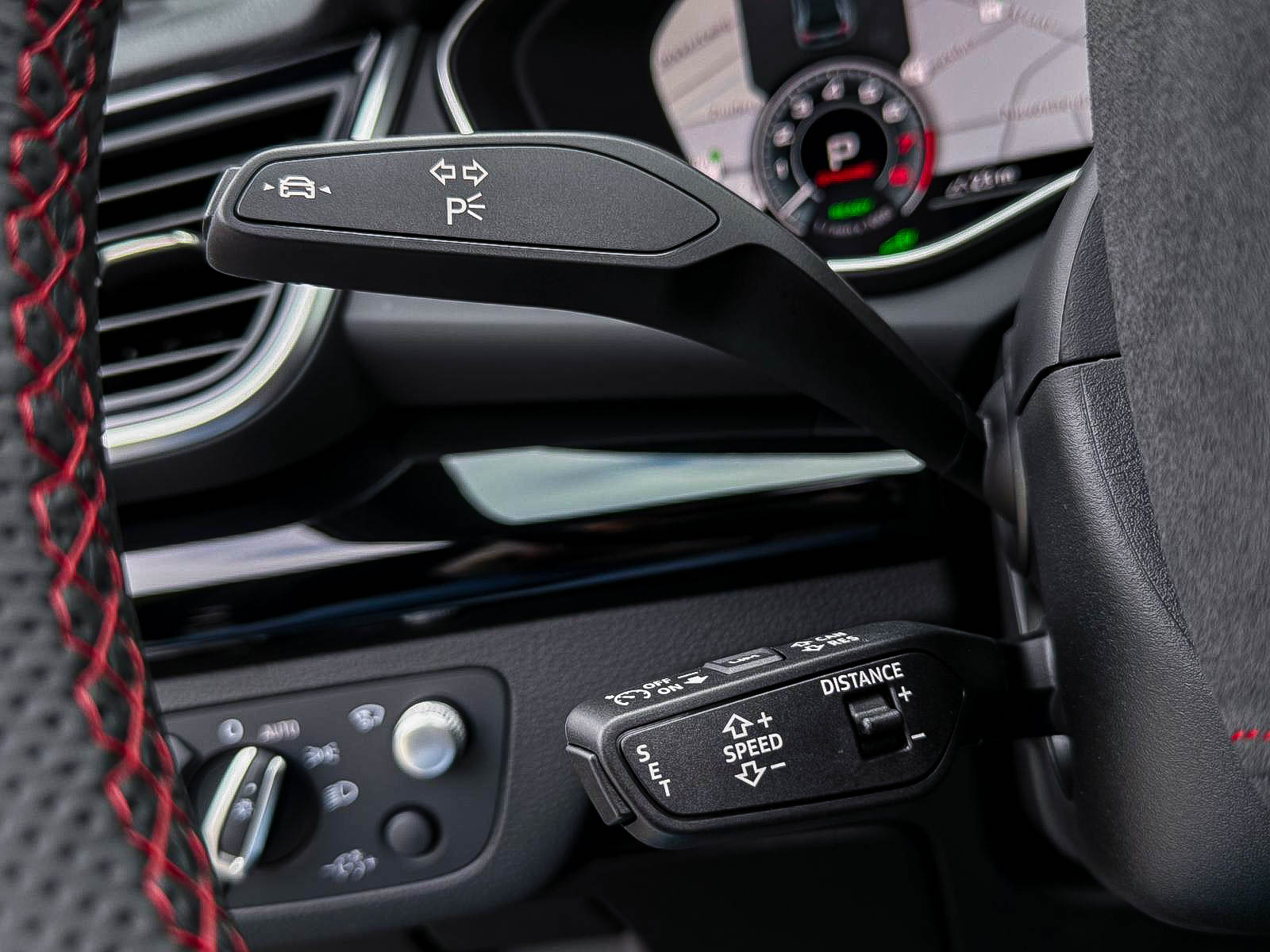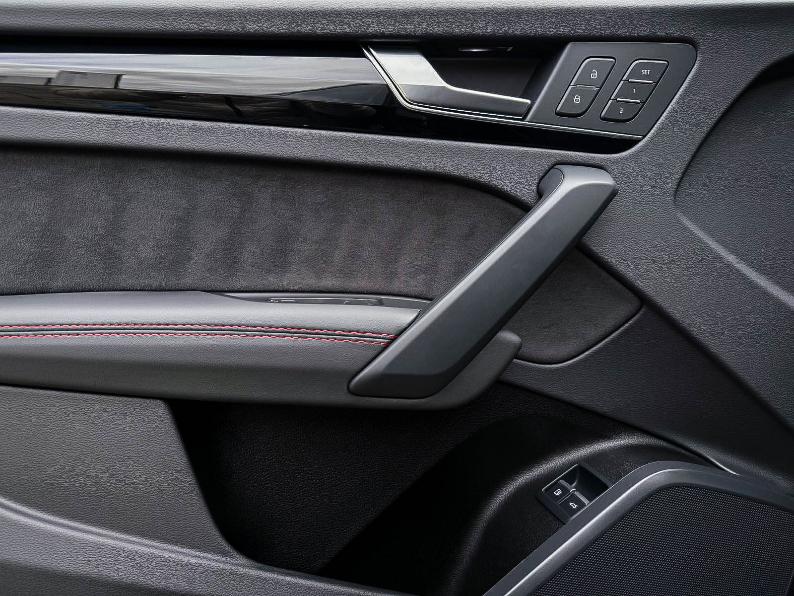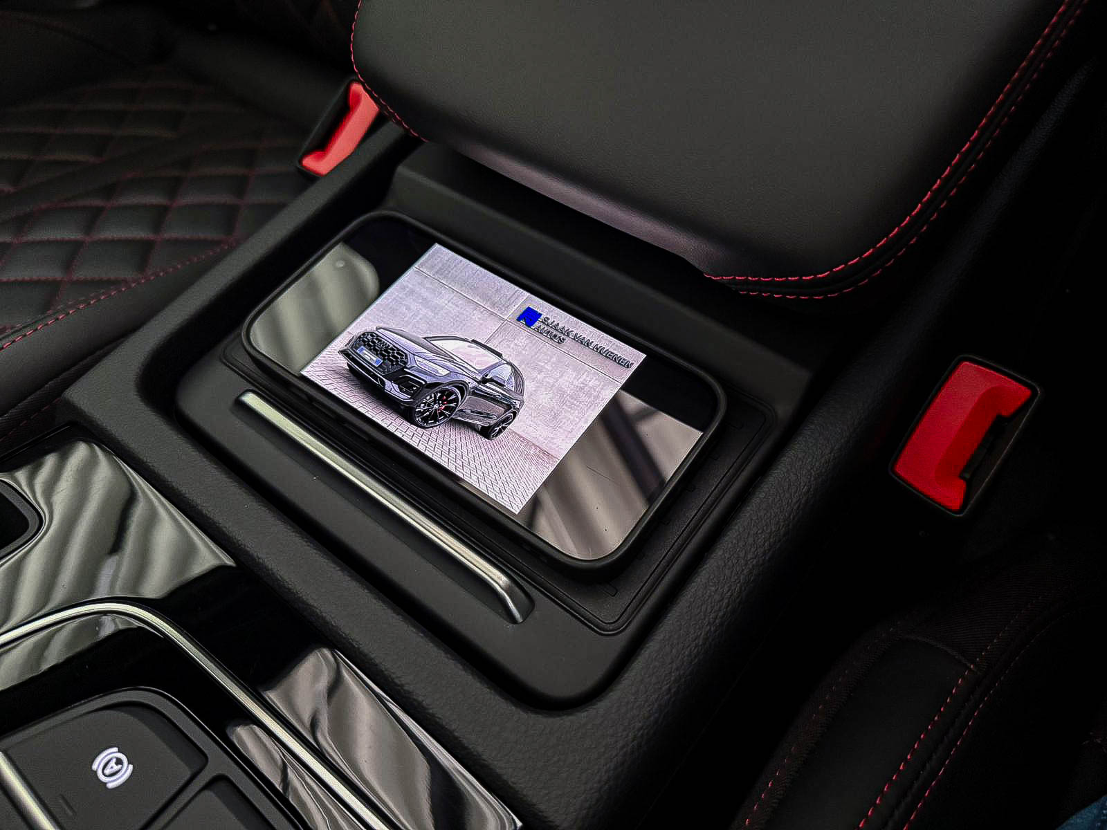 BOUWJAAR 2025! Een daadwerkelijk zo goed als NIEUWE Audi Q5 55 TFSI e 367pk Quattro Competition S-Tronic Automaat S-Line Black Edtiton Pro Line S! Het betreft een origineel AUDI EXCLUSIVE dealer exemplaar welke afkomstig is van de 1e eigenaar met een zeer tellerstand van slechts 11.378km. In unieke en perfecte fabrieksconfiguratie; Mythos Black parel lak gecombineerd met het Zwart optiekpakket, de actieve comfortabele instelbare dynamische Luchtvering, de elektrisch verstelbare zwart Valcona lederen S kuipstoelen met Audi Exclusive Rode Diamond Cross stitching incl. geheugen fuctie / Memory, Elektrisch verstelbare stuurkolom incl. geheugen fuctie / Memory, Audi Exclusive Alcantara airbag + Volledig geperforeerd stuurwiel, maar ook het OEM Carbon exterieurpakket, Elektrisch wegklapbare trekhaak fabrieksaf, 360° Camera/ Area View, Panoramisch glazen schuif-/kanteldak en natuurlijk de Audi Virtual Cockpit! Deze Q5 Competition biedt met de 270kw/367pk en 500Nm sterke 2.0 liter TFSI turbomotor, gekoppeld aan de Audi Quattro 4-wielaandrijving een trekvermogen van 2000kg. Het betreft een BTW-auto, dus voor zowel de zakelijke als particuliere klant interessant. De getoonde 22inch Black Performance velgenset met 4x Pirelli Scorpion ZERO Allseason banden is tegen geringe meerprijs van €2595,- te verkrijgen.