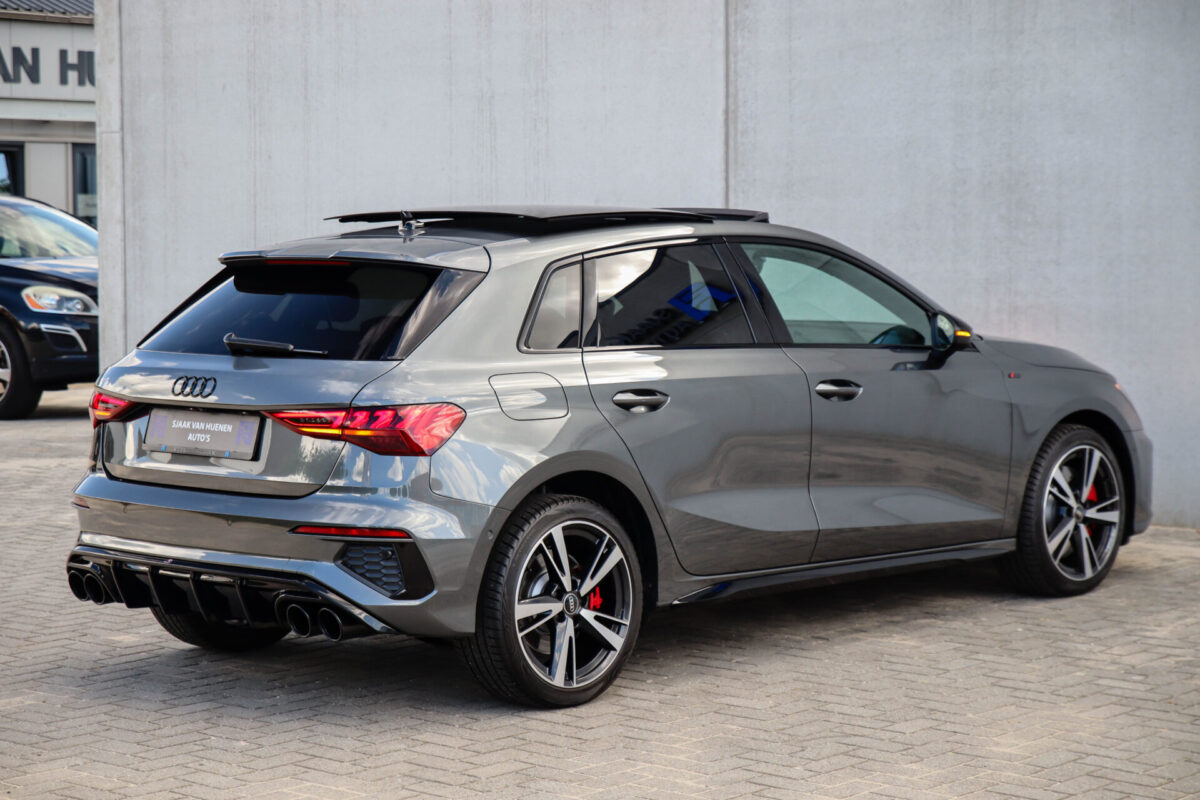 NIEUW MODEL | MODEL 2023 | MODEL 8Y! Een in uitmuntende staat verkerende Audi A3 Sportback 5-Deurs 45 TFSI e 180kw/245pk S-Tronic Automaat S-Line Edition One Pro Line S! Deze Audi A3 is afkomstig van de 1e eigenaar, het betreft een Audi dealer auto met een zeer interessant gecontroleerde tellerstand van slechts 30.270km. Een geweldig sportieve Sportback die voorzien is van de juiste fabrieksopties zoals het S-Line exterieur- & S-Line interieurpakket, de Daytona Grey parel lak gecombineerd met het Zwart optiekpakket, de Lederen/Stoffen Supersport kuipstoelen, het Panoramisch glazen schuif-/kanteldak en natuurlijk de Audi Virtual Cockpit Plus. Het betreft een BTW-auto, dus voor zowel de zakelijke als particuliere klant interessant. De getoonde 18inch OEM Audi Sport velgenset met 4x Vredestein Quatrac PRO allseasonbanden is tegen geringe meerprijs van €995,- te verkrijgen.