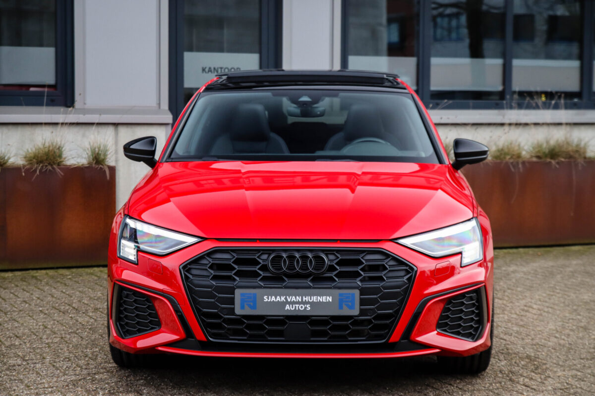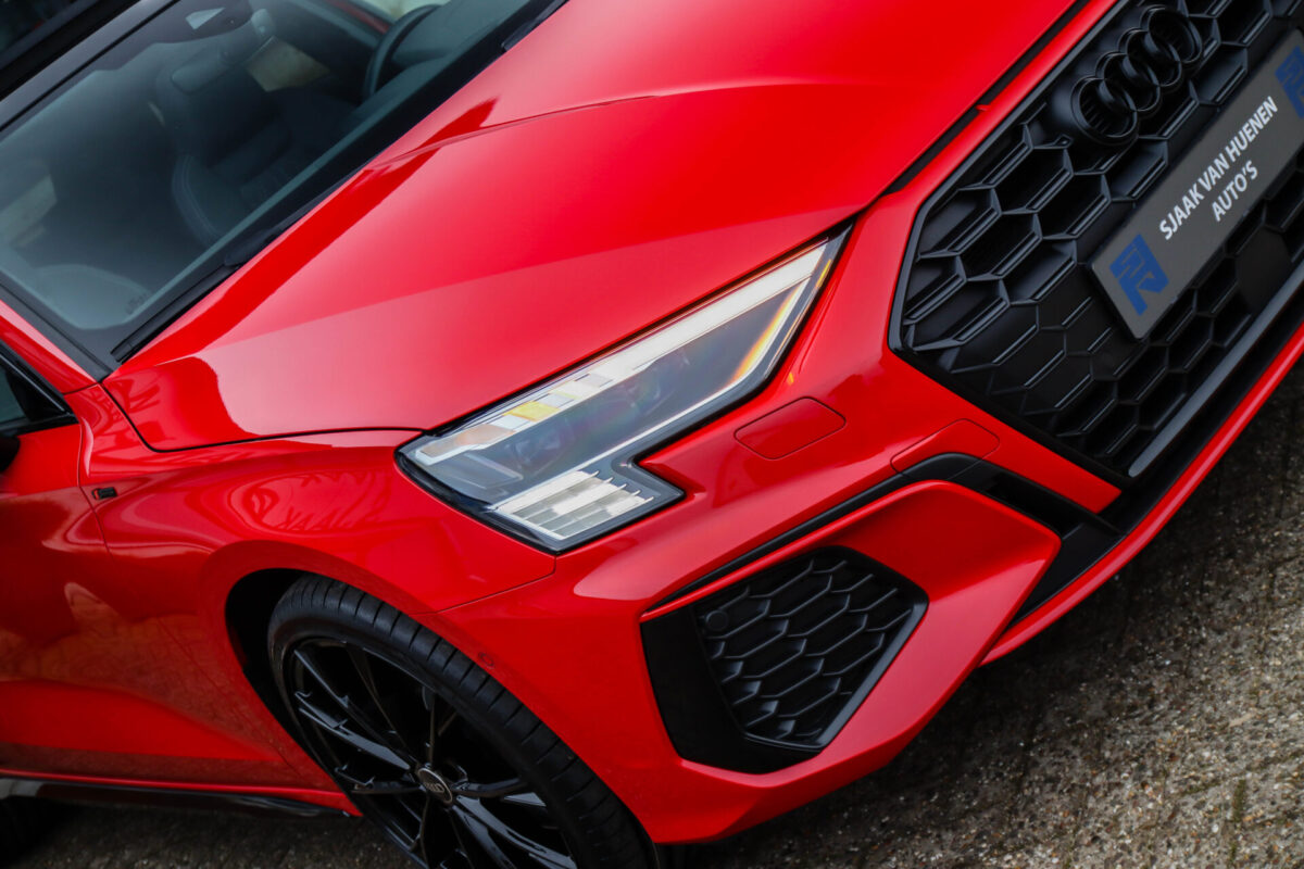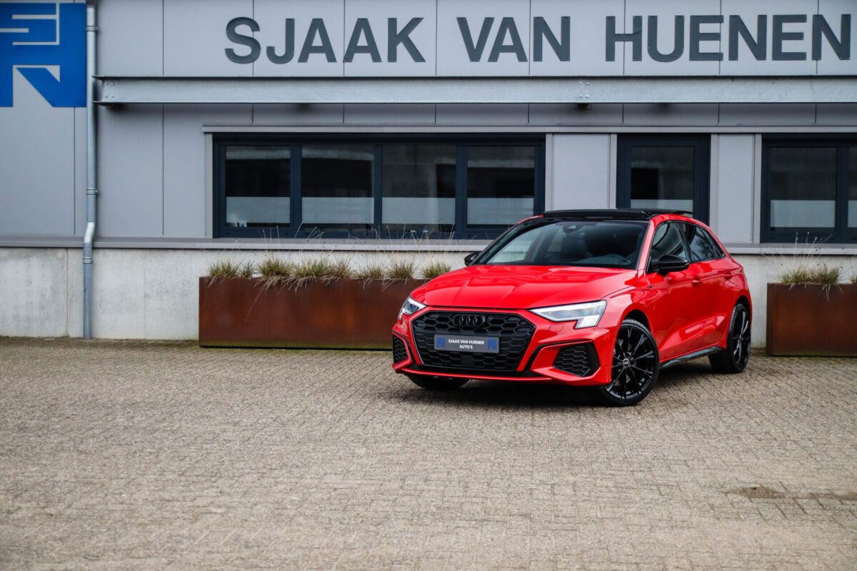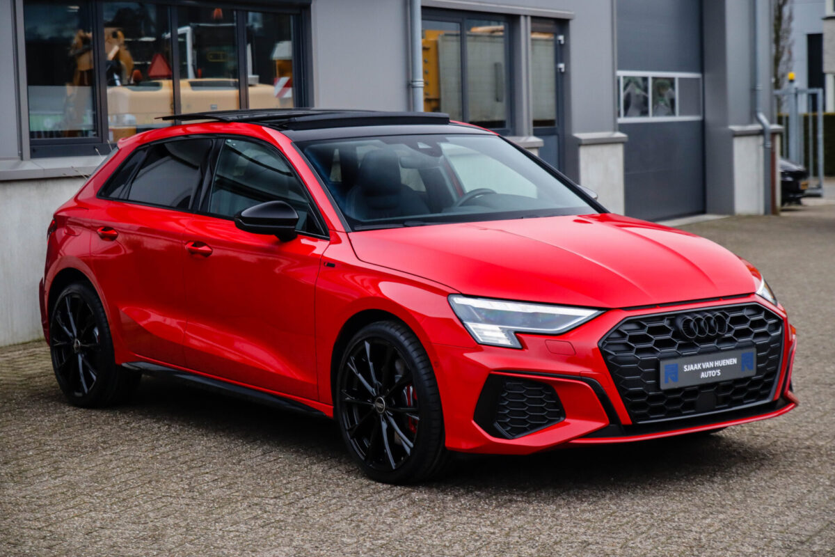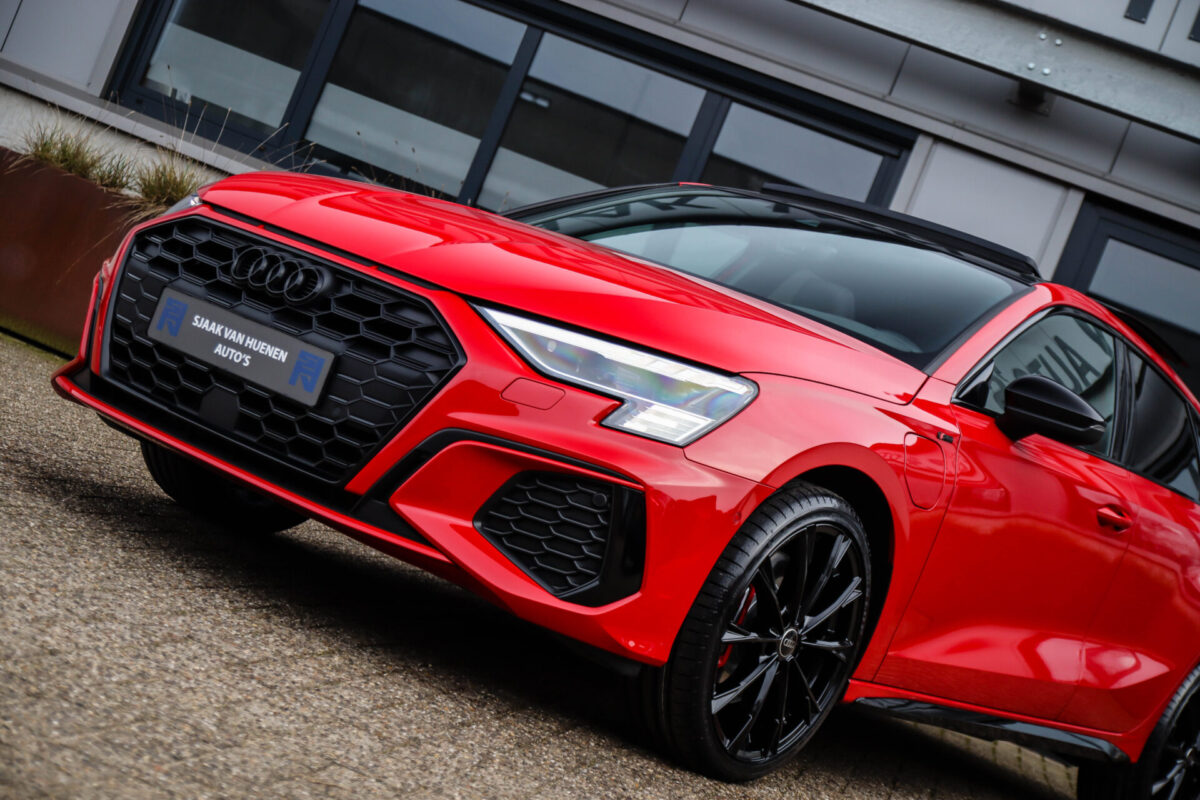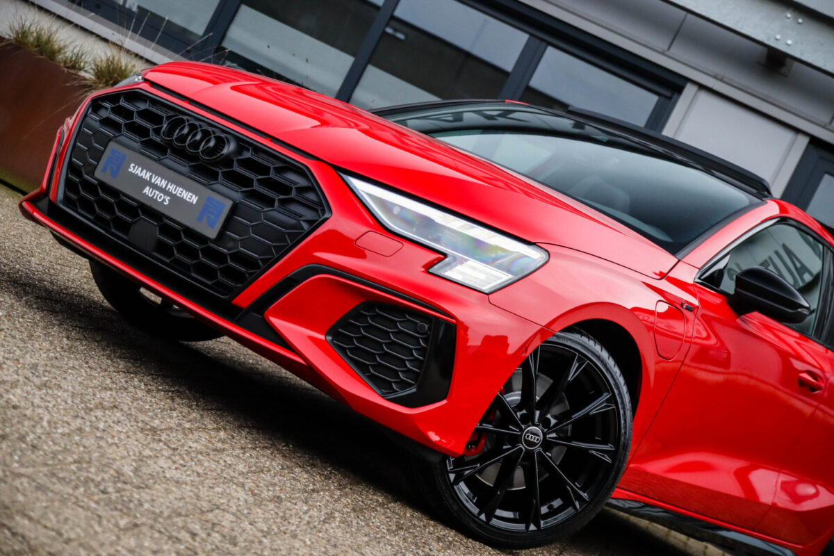NIEUW MODEL | MODEL 2022 | MODEL 8Y! Een in smetteloze staat verkerende Audi A3 Sportback 5-Deurs 45 TFSI e 180kw/245pk S-Tronic Automaat S-Line Edition One Pro Line S! Deze Audi A3 is afkomstig van de 1e eigenaar, het betreft een Audi dealer auto met een gecontroleerde tellerstand van 56.847km. Een geweldig sportieve Sportback die voorzien is van de juiste fabrieksopties zoals het S-Line exterieur- & S-Line interieurpakket, de fantastische Tango Red Pearl lak gecombineerd met het Zwart optiekpakket, de Lederen/Alcantara S kuipstoelen incl. Diamond Cross stitching, het Panoramisch glazen schuif-/kanteldak en natuurlijk de Audi Virtual Cockpit Plus. De nieuwwaarde van bijna €55.000,- vertegenwoordigd een uitzonderlijk royaal uitrustingsniveau. Het betreft een BTW-auto, dus voor zowel de zakelijke als particuliere klant interessant. De getoonde nieuwe 19inch Black Performance velgenset met 4x GoodYear Eagle F1 zomerbanden is tegen geringe meerprijs van €1595,- te verkrijgen.