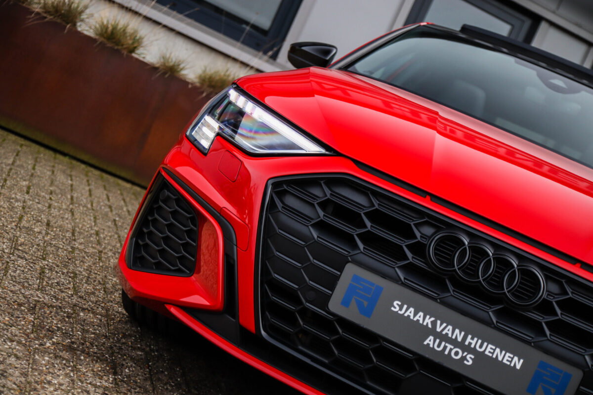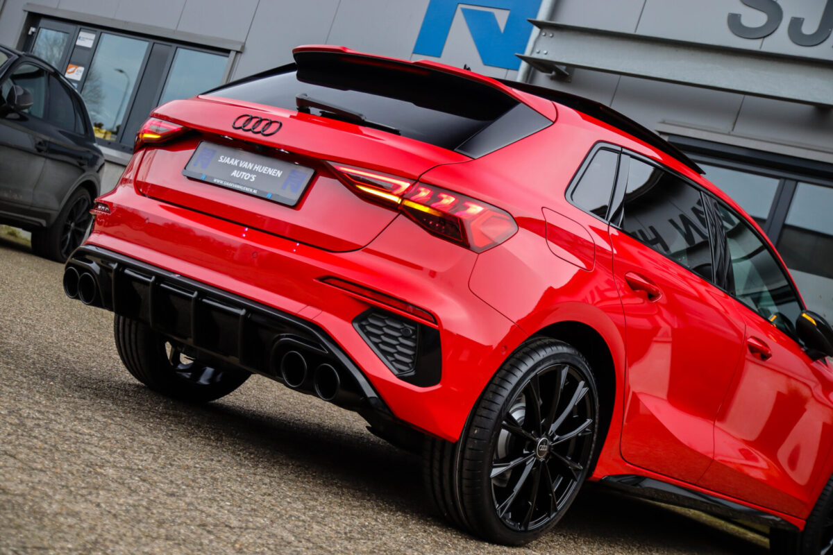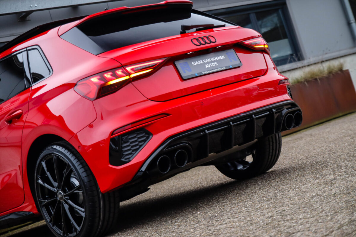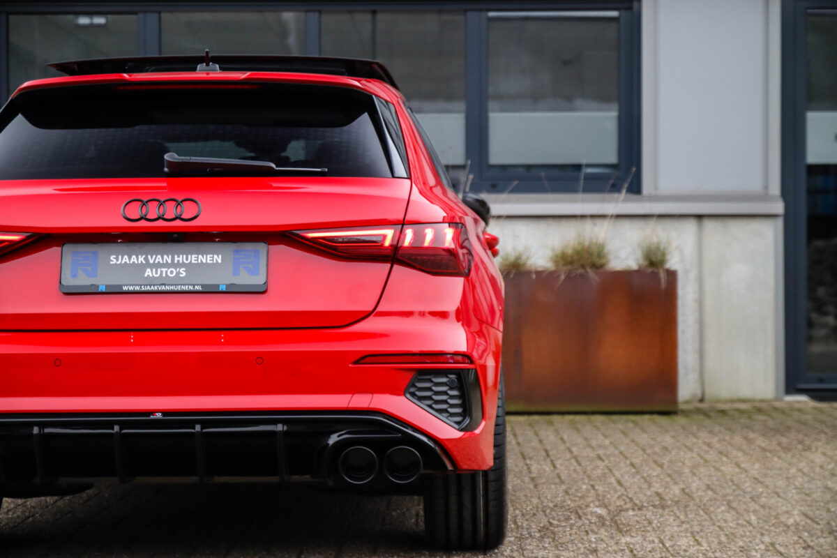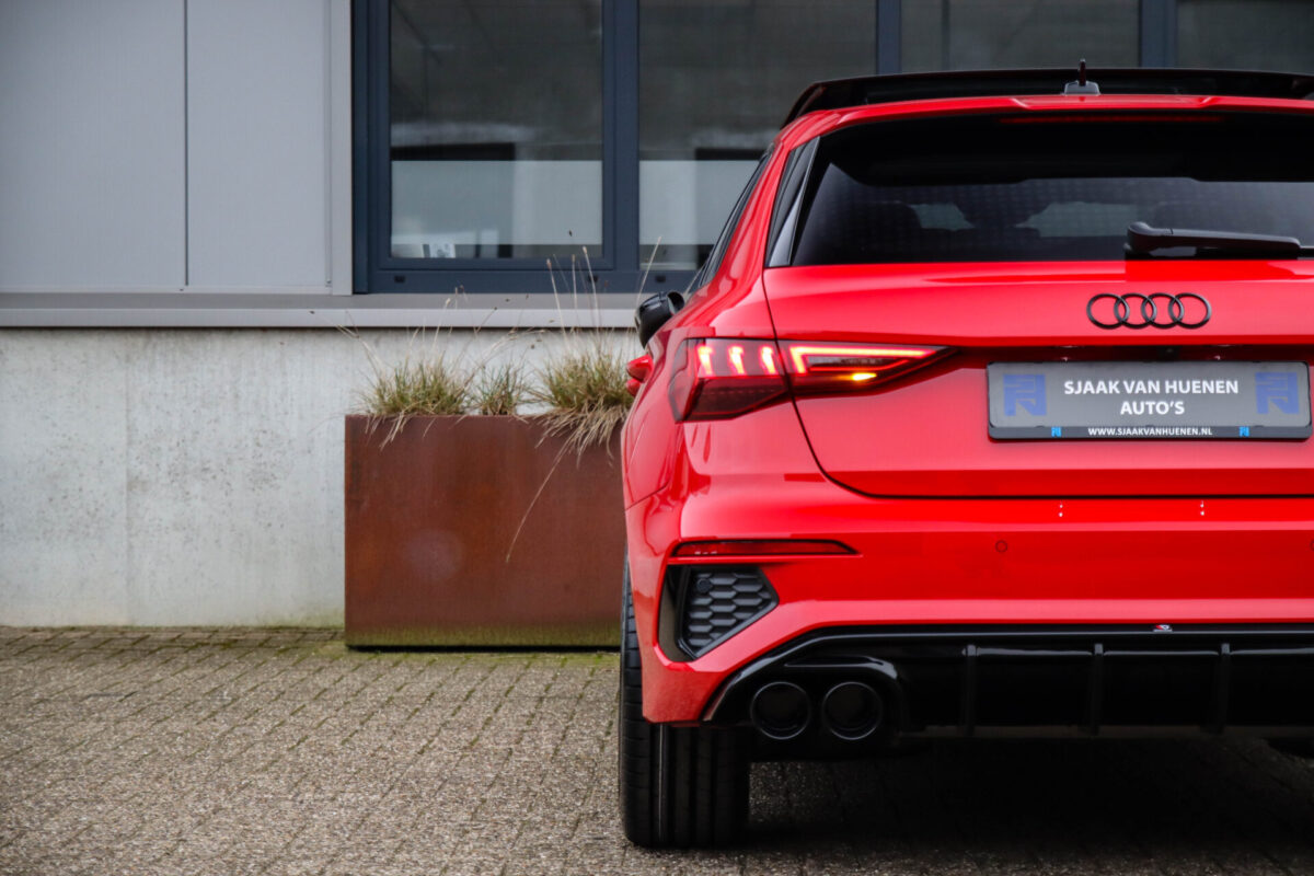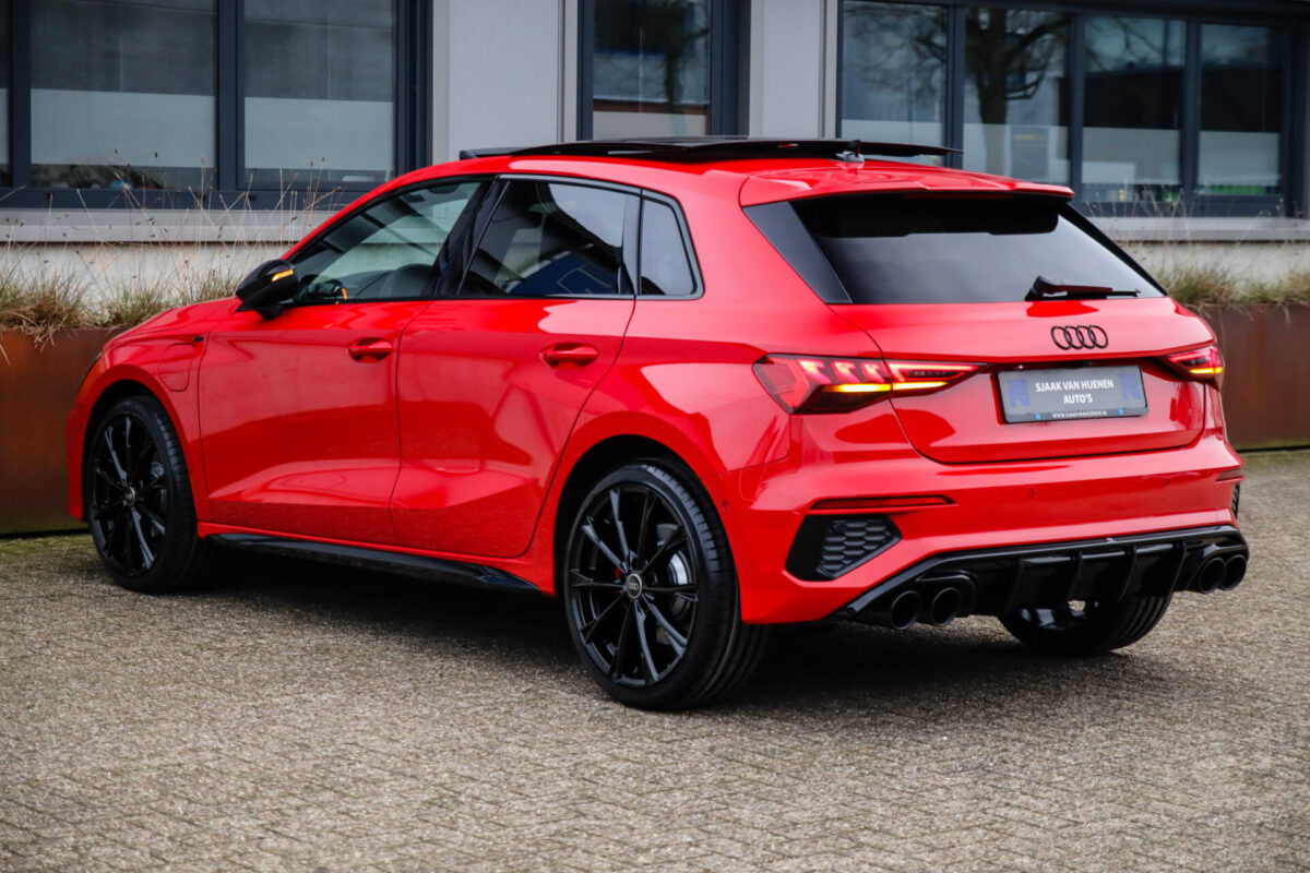 NIEUW MODEL | MODEL 2022 | MODEL 8Y! Een in smetteloze staat verkerende Audi A3 Sportback 5-Deurs 45 TFSI e 180kw/245pk S-Tronic Automaat S-Line Edition One Pro Line S! Deze Audi A3 is afkomstig van de 1e eigenaar, het betreft een Audi dealer auto met een gecontroleerde tellerstand van 56.847km. Een geweldig sportieve Sportback die voorzien is van de juiste fabrieksopties zoals het S-Line exterieur- & S-Line interieurpakket, de fantastische Tango Red Pearl lak gecombineerd met het Zwart optiekpakket, de Lederen/Alcantara S kuipstoelen incl. Diamond Cross stitching, het Panoramisch glazen schuif-/kanteldak en natuurlijk de Audi Virtual Cockpit Plus. De nieuwwaarde van bijna €55.000,- vertegenwoordigd een uitzonderlijk royaal uitrustingsniveau. Het betreft een BTW-auto, dus voor zowel de zakelijke als particuliere klant interessant. De getoonde nieuwe 19inch Black Performance velgenset met 4x GoodYear Eagle F1 zomerbanden is tegen geringe meerprijs van €1595,- te verkrijgen.