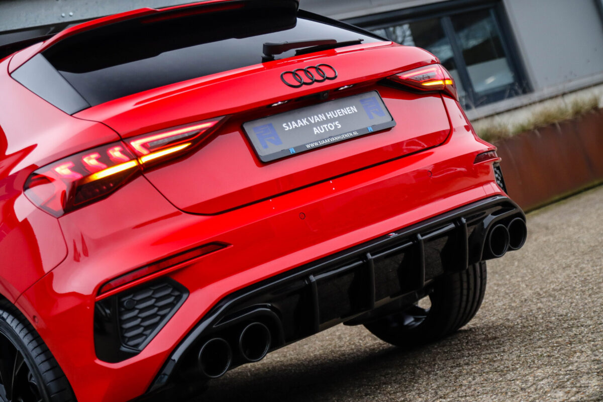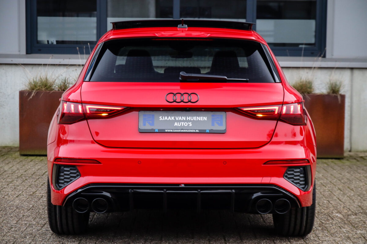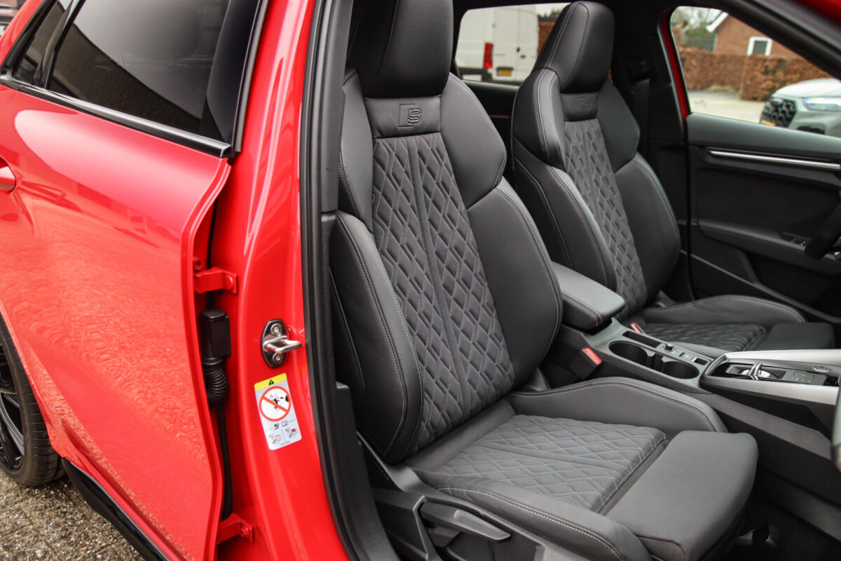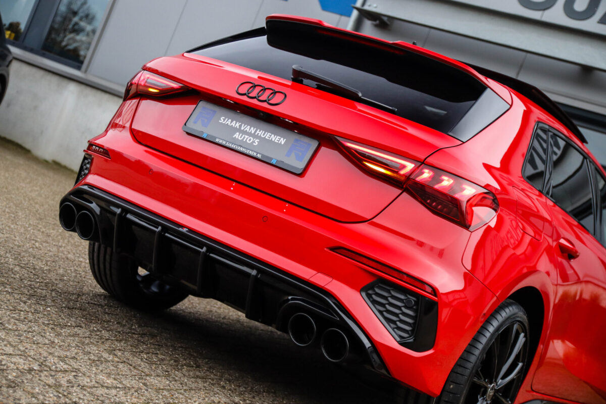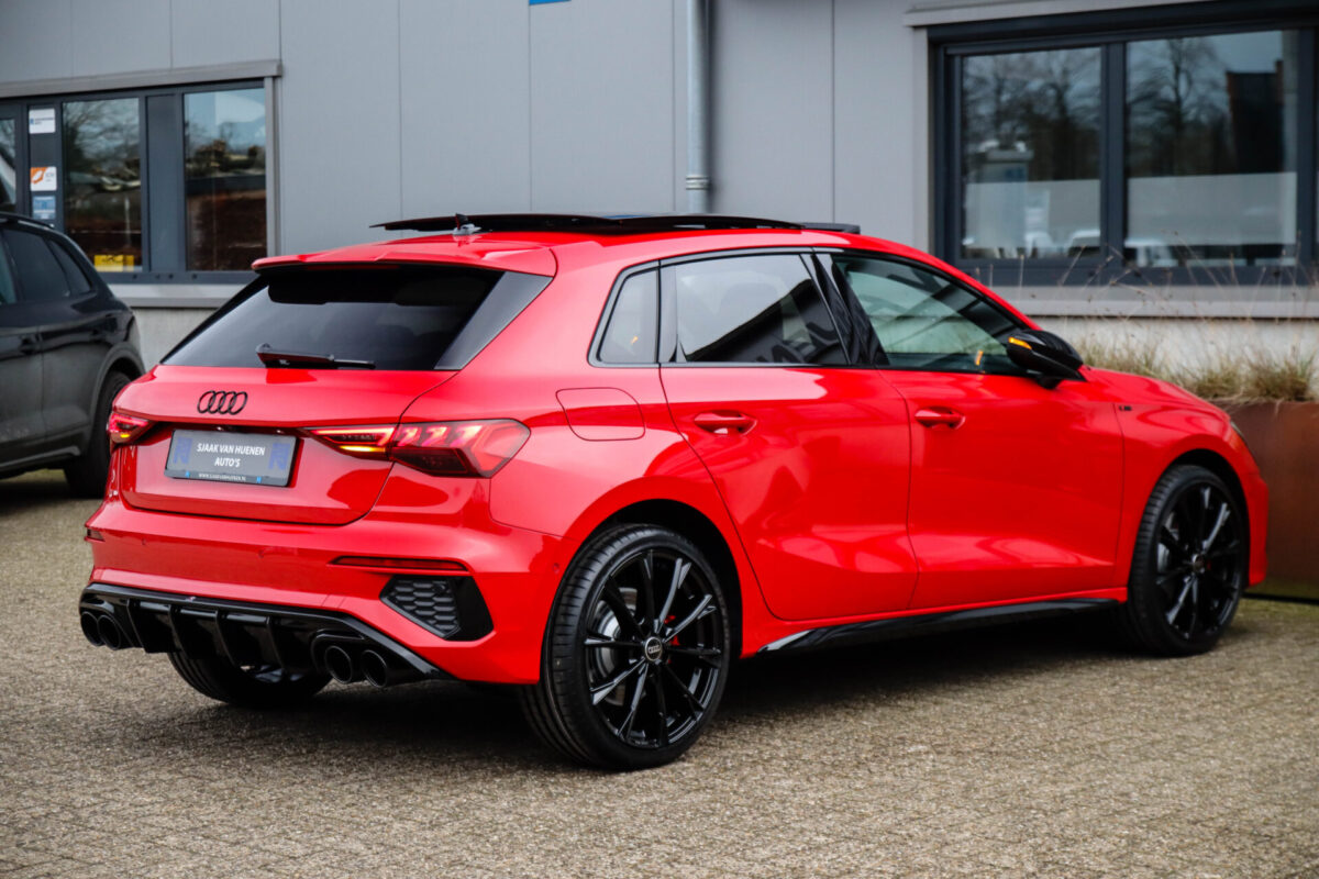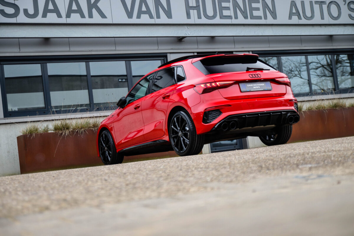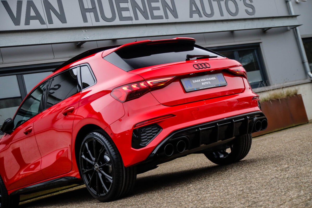 NIEUW MODEL | MODEL 2022 | MODEL 8Y! Een in smetteloze staat verkerende Audi A3 Sportback 5-Deurs 45 TFSI e 180kw/245pk S-Tronic Automaat S-Line Edition One Pro Line S! Deze Audi A3 is afkomstig van de 1e eigenaar, het betreft een Audi dealer auto met een gecontroleerde tellerstand van 56.847km. Een geweldig sportieve Sportback die voorzien is van de juiste fabrieksopties zoals het S-Line exterieur- & S-Line interieurpakket, de fantastische Tango Red Pearl lak gecombineerd met het Zwart optiekpakket, de Lederen/Alcantara S kuipstoelen incl. Diamond Cross stitching, het Panoramisch glazen schuif-/kanteldak en natuurlijk de Audi Virtual Cockpit Plus. De nieuwwaarde van bijna €55.000,- vertegenwoordigd een uitzonderlijk royaal uitrustingsniveau. Het betreft een BTW-auto, dus voor zowel de zakelijke als particuliere klant interessant. De getoonde nieuwe 19inch Black Performance velgenset met 4x GoodYear Eagle F1 zomerbanden is tegen geringe meerprijs van €1595,- te verkrijgen.