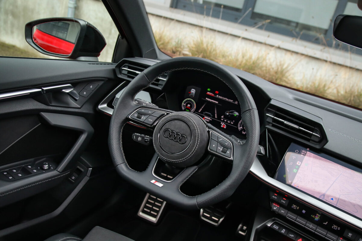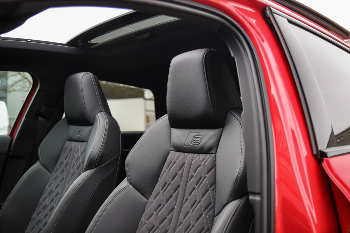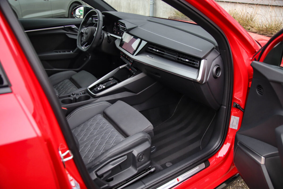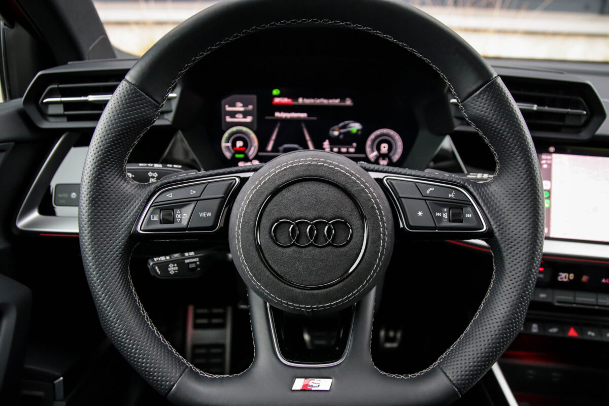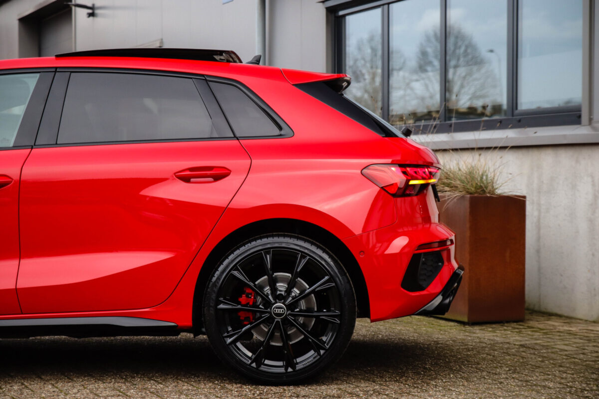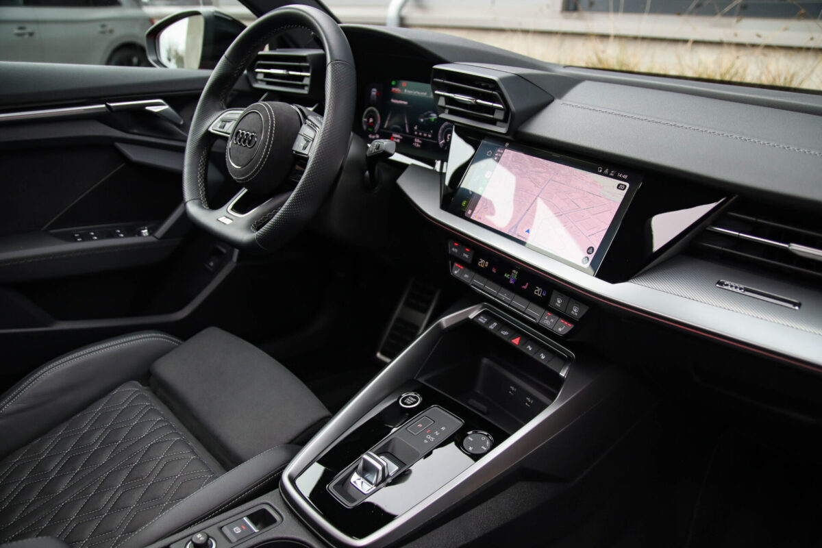 NIEUW MODEL | MODEL 2022 | MODEL 8Y! Een in smetteloze staat verkerende Audi A3 Sportback 5-Deurs 45 TFSI e 180kw/245pk S-Tronic Automaat S-Line Edition One Pro Line S! Deze Audi A3 is afkomstig van de 1e eigenaar, het betreft een Audi dealer auto met een gecontroleerde tellerstand van 56.847km. Een geweldig sportieve Sportback die voorzien is van de juiste fabrieksopties zoals het S-Line exterieur- & S-Line interieurpakket, de fantastische Tango Red Pearl lak gecombineerd met het Zwart optiekpakket, de Lederen/Alcantara S kuipstoelen incl. Diamond Cross stitching, het Panoramisch glazen schuif-/kanteldak en natuurlijk de Audi Virtual Cockpit Plus. De nieuwwaarde van bijna €55.000,- vertegenwoordigd een uitzonderlijk royaal uitrustingsniveau. Het betreft een BTW-auto, dus voor zowel de zakelijke als particuliere klant interessant. De getoonde nieuwe 19inch Black Performance velgenset met 4x GoodYear Eagle F1 zomerbanden is tegen geringe meerprijs van €1595,- te verkrijgen.