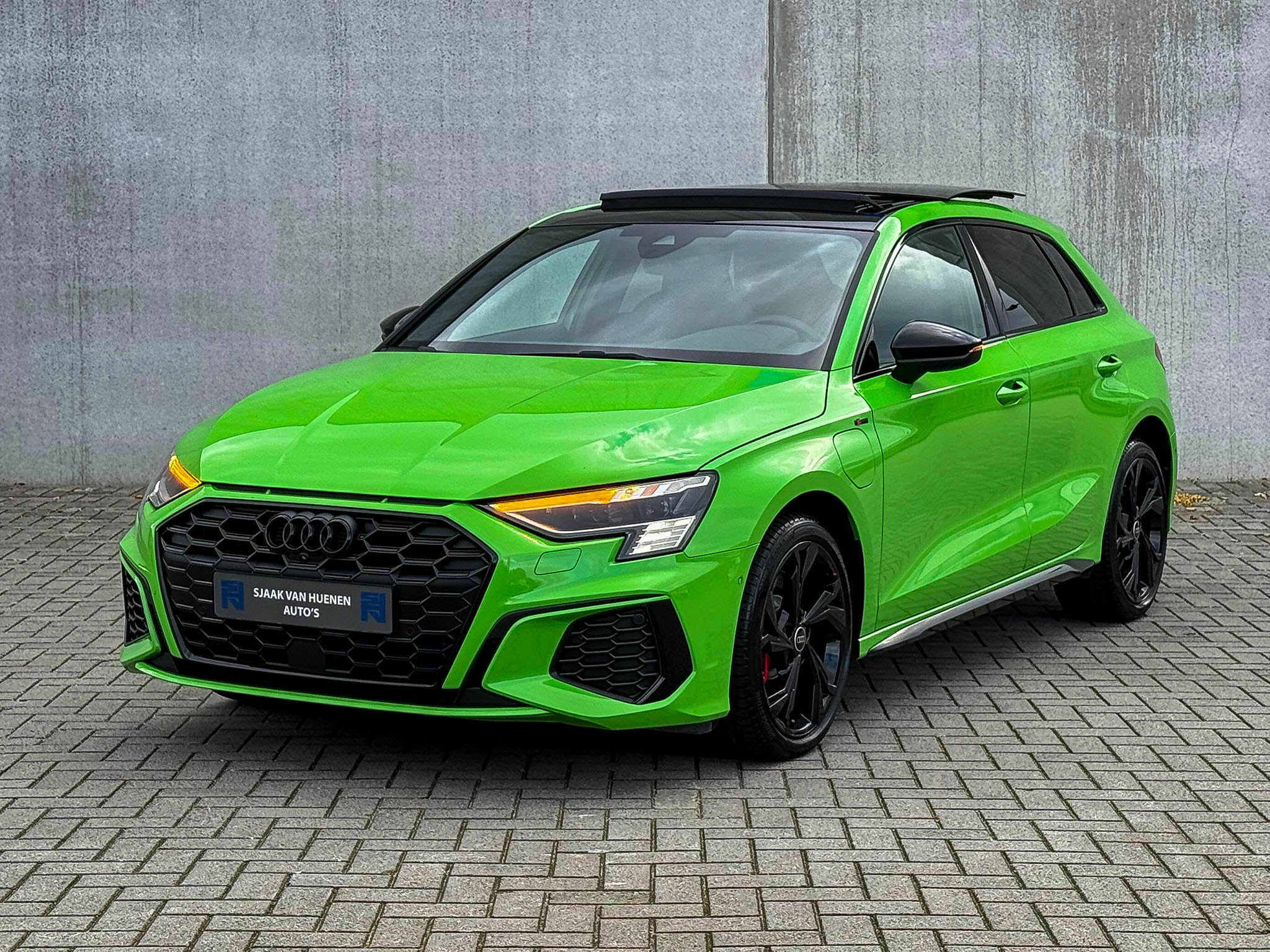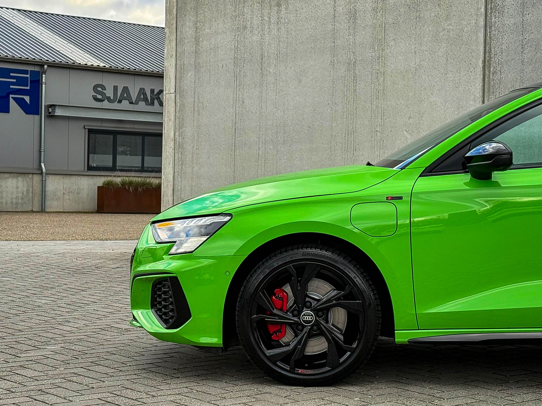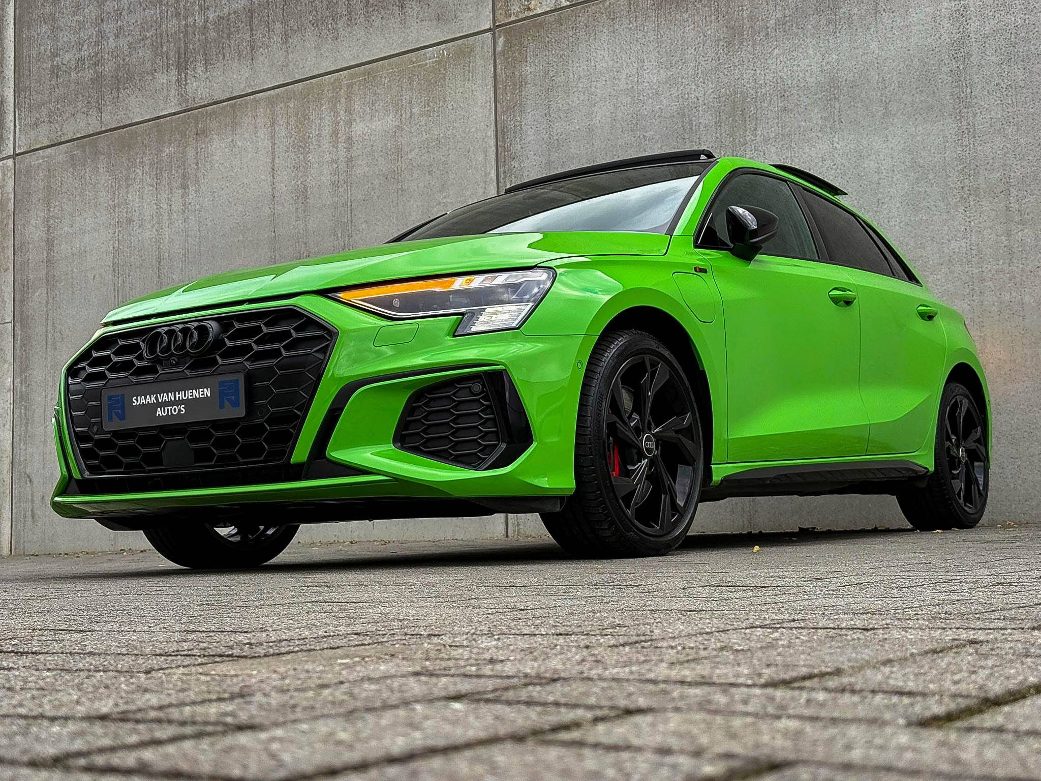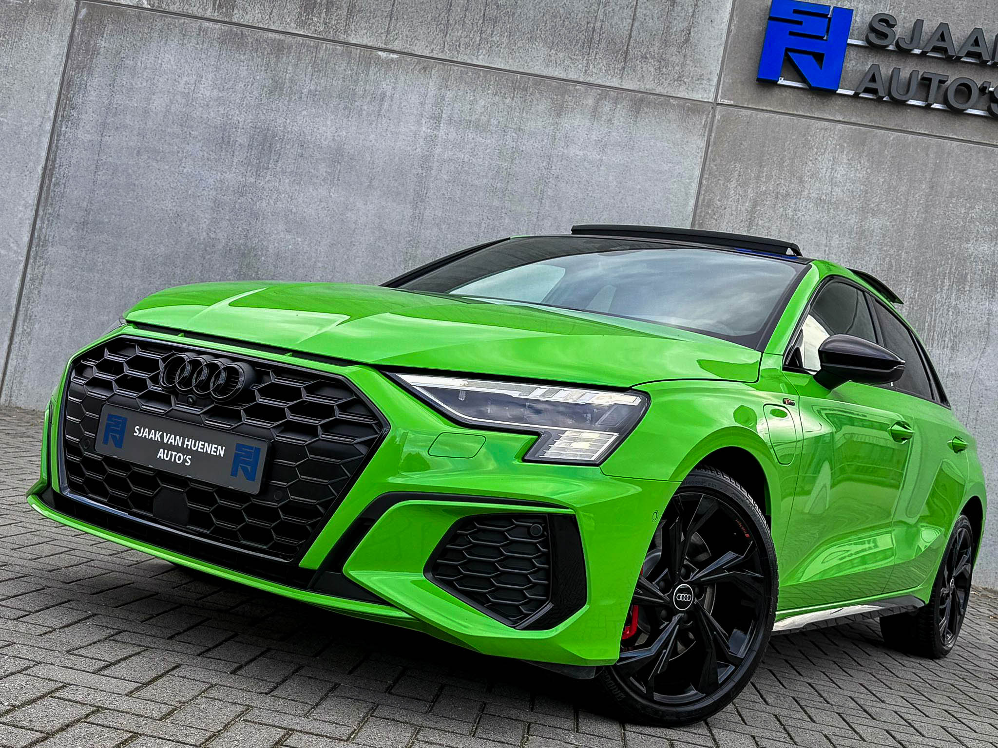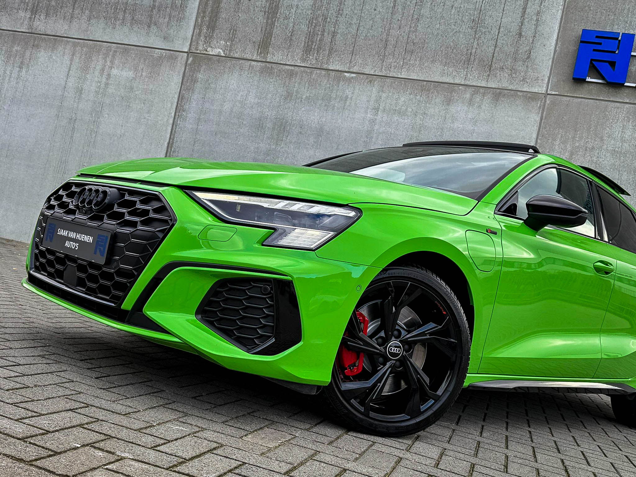 NIEUW MODEL| MODEL 2023| MODEL 8Y! Een in bijzonder nette staat verkerende Audi A3 Sportback 5-Deurs Competition 45 TFSI e 245pk S-Tronic Automaat S-Line S Edition Pro Line S! Dit UNIEKE AUDI EXCLUSIVE EXEMPLAAR is afkomstig van de 1e eigenaar, betreft een origineel Audi dealer auto met een gecontroleerde tellerstand van slechts 52.567km. Een geweldig sportieve Sportback Competition uitvoering in echte liefhebbers configuratie; het Competition S-Line exterieur- & interieurpakket en de fantastische Kyalami RS Green Audi Exclusive lak gecombineerd met het zwart optiekpakket, de elektrisch verstelbare Lederen/Alcantara S kuipstoelen incl. Diamond Cross stitching, 360° Camera/ Area View, Audi Exclusive Alcantara airbag + geperforeerd afgevlakt stuurwiel, het Panoramisch glazen schuif-/kanteldak en natuurlijk de Audi Virtual Cockpit Plus! Deze A3 Competition biedt geweldige prestaties met z’n 180kw/245pk en 400Nm koppel! DURF JIJ HEM AAN?! De nieuwwaarde van ruim €58.000,- vertegenwoordigd een uitzonderlijk royaal uitrustingsniveau. Het betreft een BTW-auto, dus voor zowel de zakelijke als particuliere klant interessant. De getoonde 18inch OEM Audi Sport Black optiek velgenset met 4x Bridgestone Turanza T005 zomerbanden is tegen geringe meerprijs van €995,- te verkrijgen.