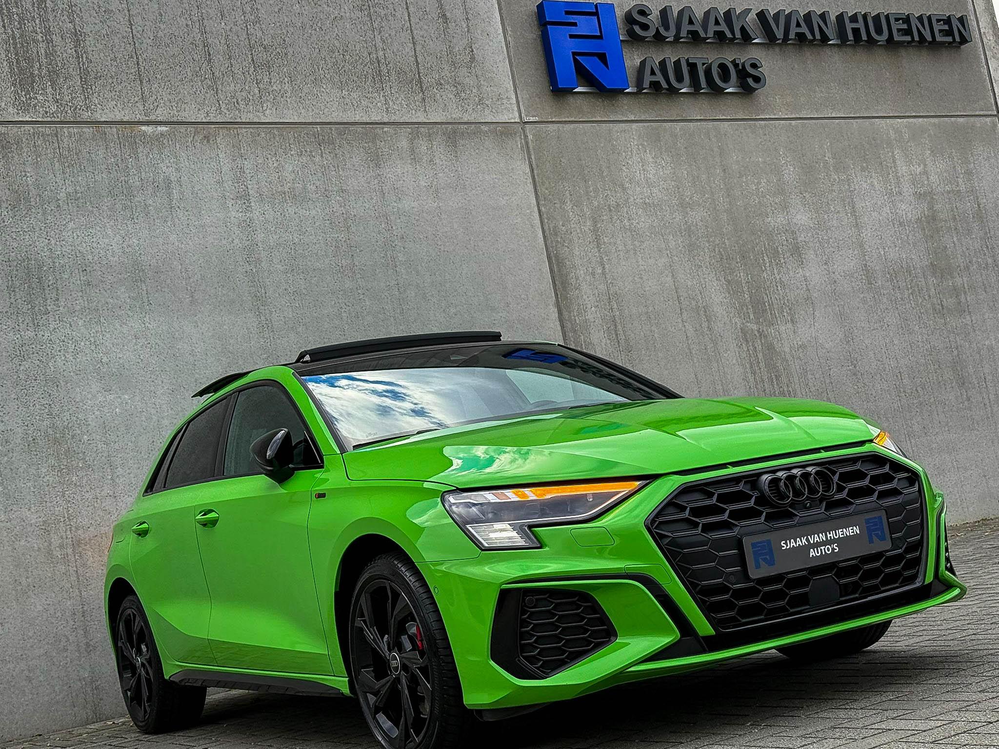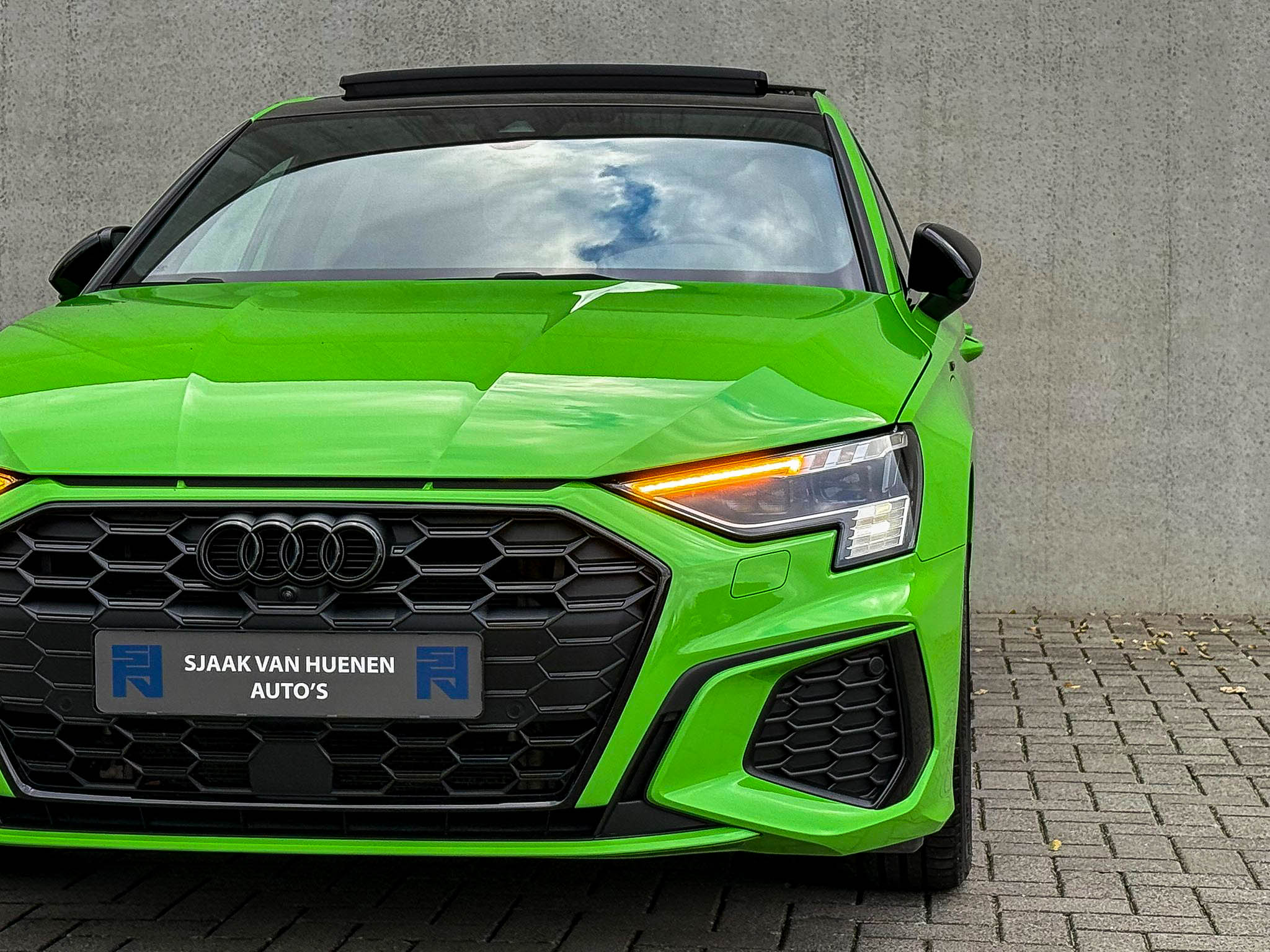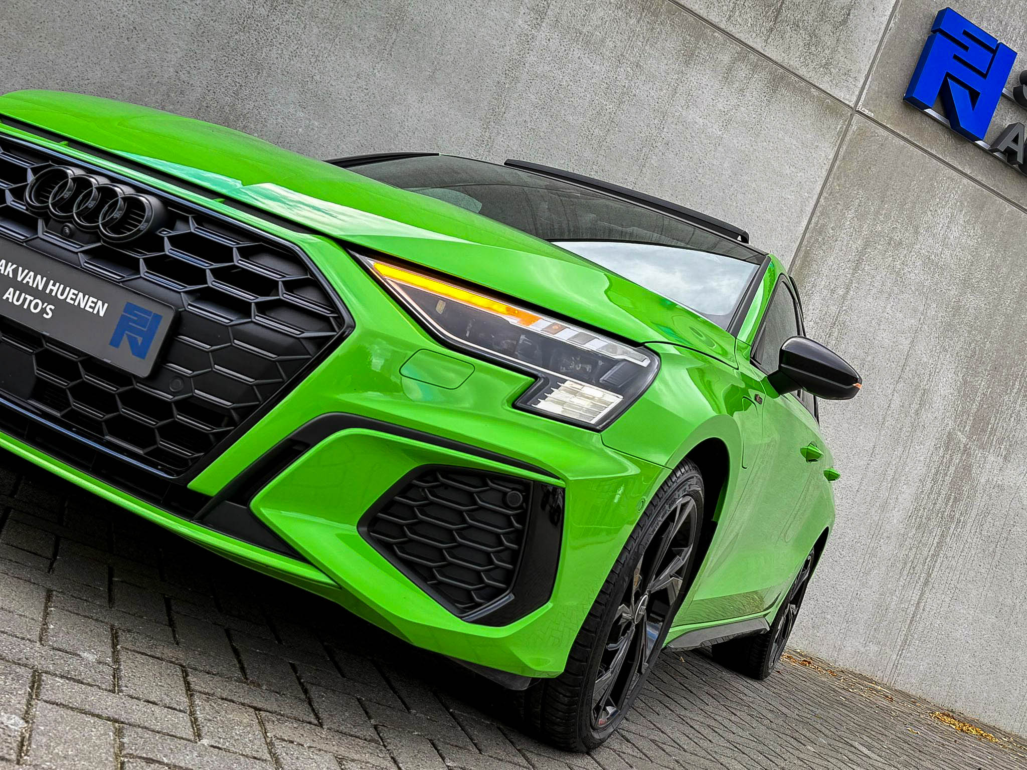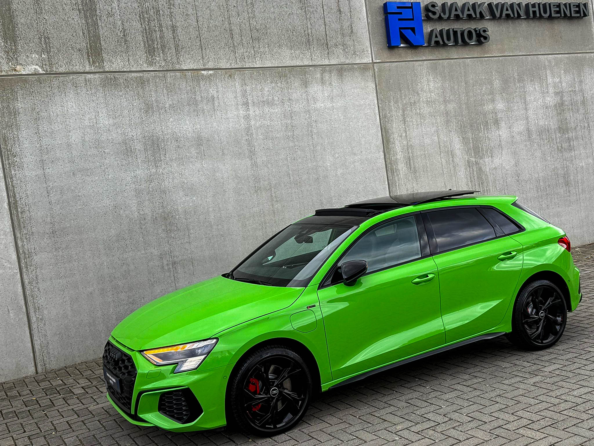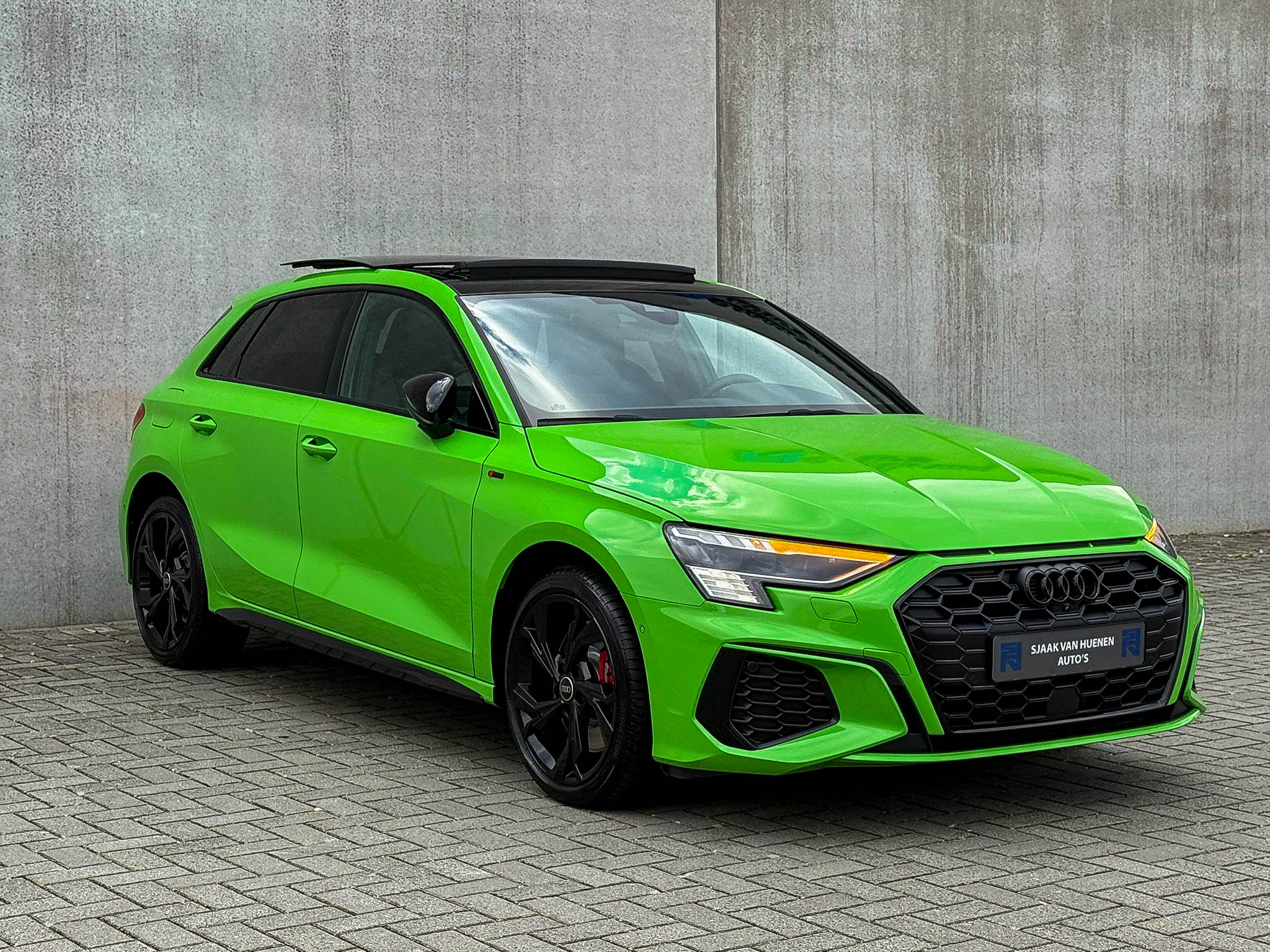 NIEUW MODEL| MODEL 2023| MODEL 8Y! Een in bijzonder nette staat verkerende Audi A3 Sportback 5-Deurs Competition 45 TFSI e 245pk S-Tronic Automaat S-Line S Edition Pro Line S! Dit UNIEKE AUDI EXCLUSIVE EXEMPLAAR is afkomstig van de 1e eigenaar, betreft een origineel Audi dealer auto met een gecontroleerde tellerstand van slechts 52.567km. Een geweldig sportieve Sportback Competition uitvoering in echte liefhebbers configuratie; het Competition S-Line exterieur- & interieurpakket en de fantastische Kyalami RS Green Audi Exclusive lak gecombineerd met het zwart optiekpakket, de elektrisch verstelbare Lederen/Alcantara S kuipstoelen incl. Diamond Cross stitching, 360° Camera/ Area View, Audi Exclusive Alcantara airbag + geperforeerd afgevlakt stuurwiel, het Panoramisch glazen schuif-/kanteldak en natuurlijk de Audi Virtual Cockpit Plus! Deze A3 Competition biedt geweldige prestaties met z’n 180kw/245pk en 400Nm koppel! DURF JIJ HEM AAN?! De nieuwwaarde van ruim €58.000,- vertegenwoordigd een uitzonderlijk royaal uitrustingsniveau. Het betreft een BTW-auto, dus voor zowel de zakelijke als particuliere klant interessant. De getoonde 18inch OEM Audi Sport Black optiek velgenset met 4x Bridgestone Turanza T005 zomerbanden is tegen geringe meerprijs van €995,- te verkrijgen.