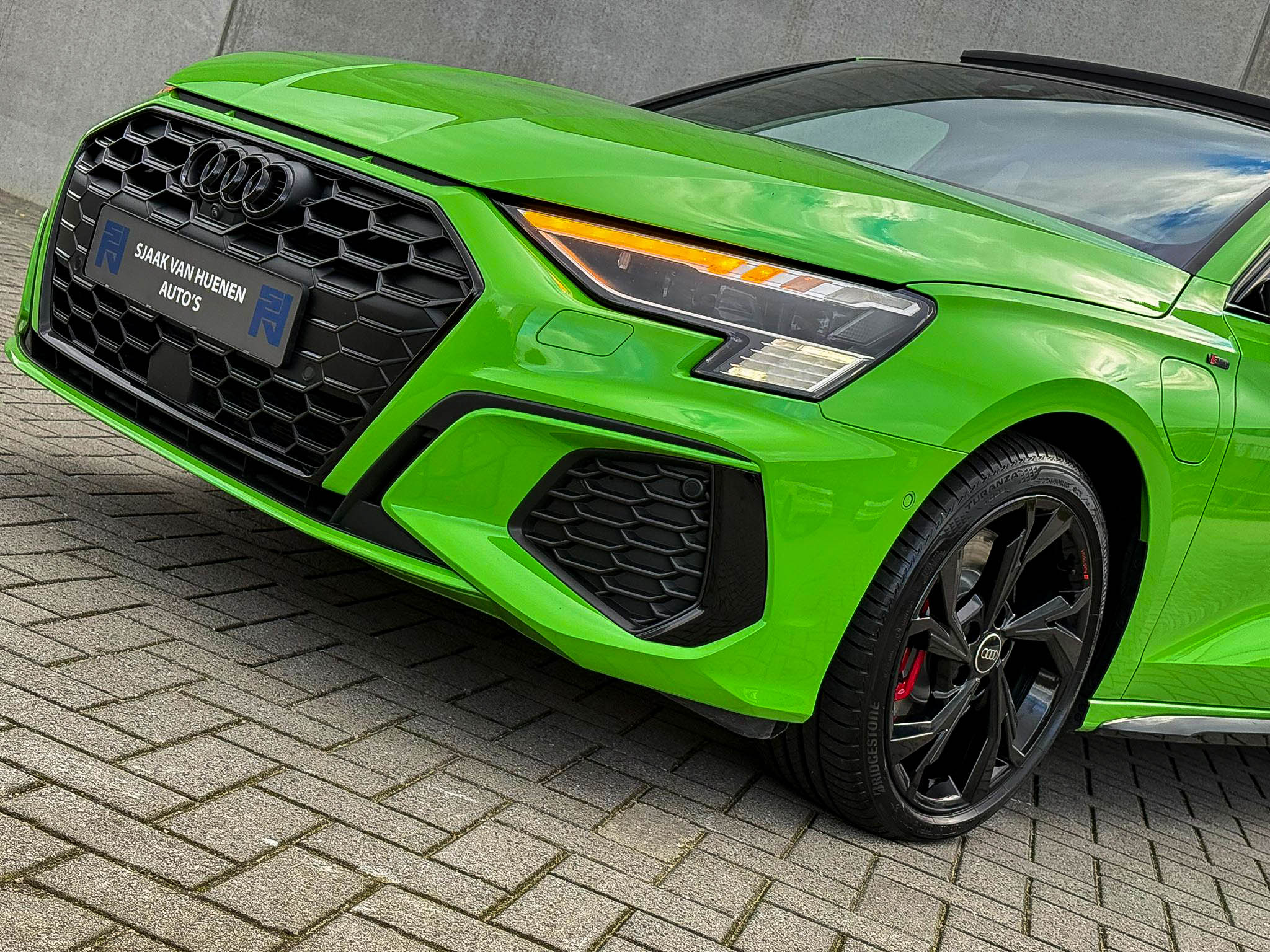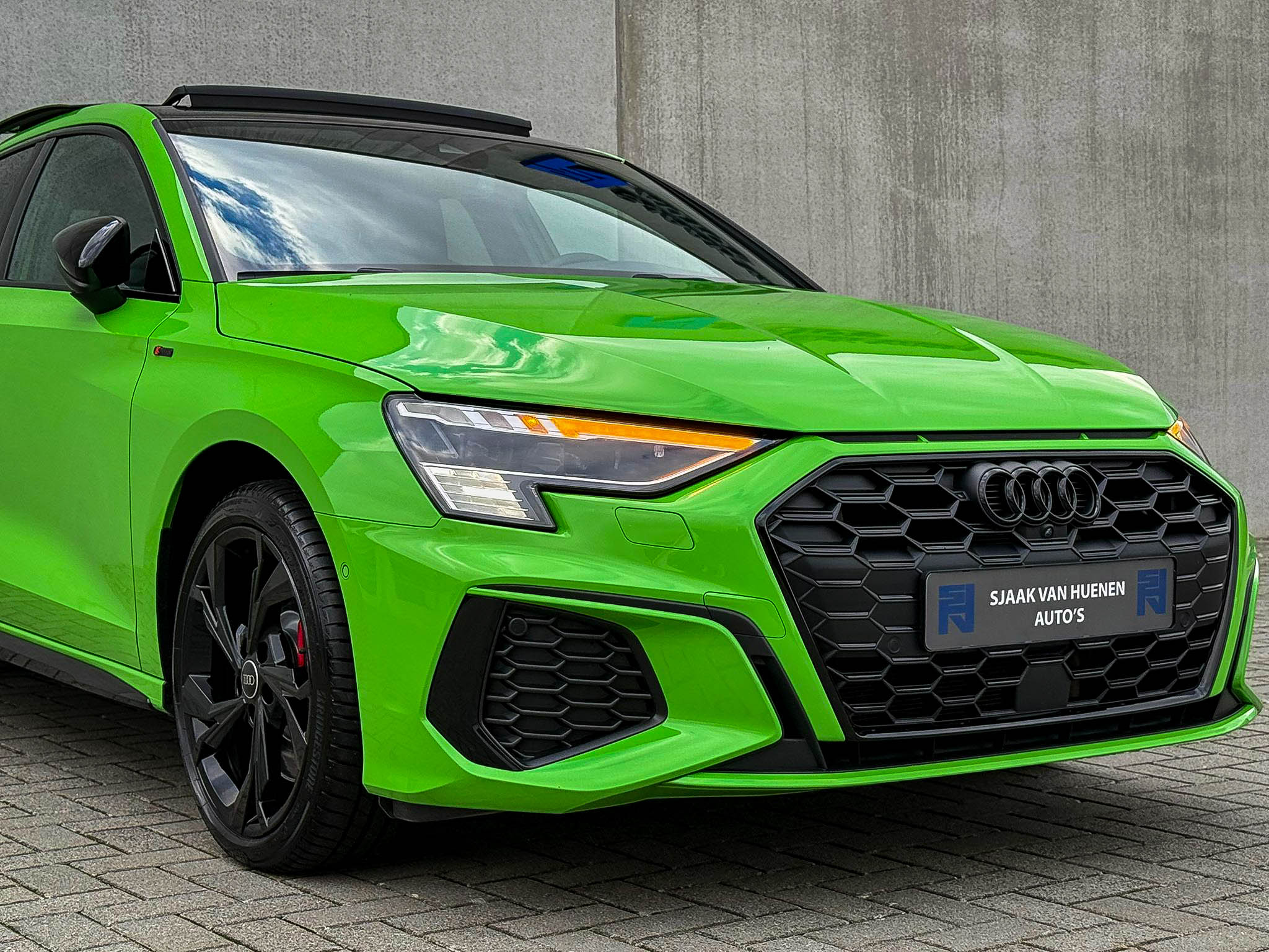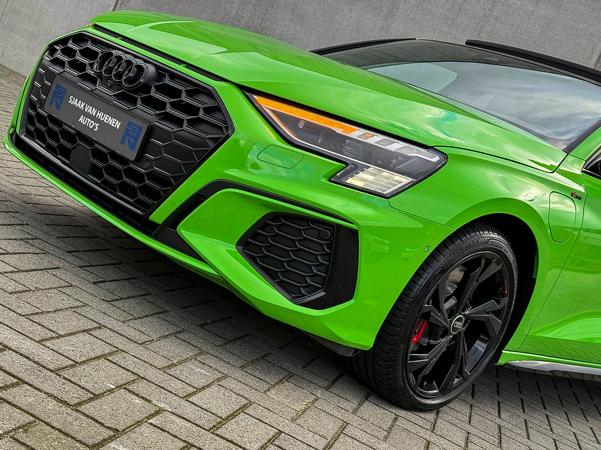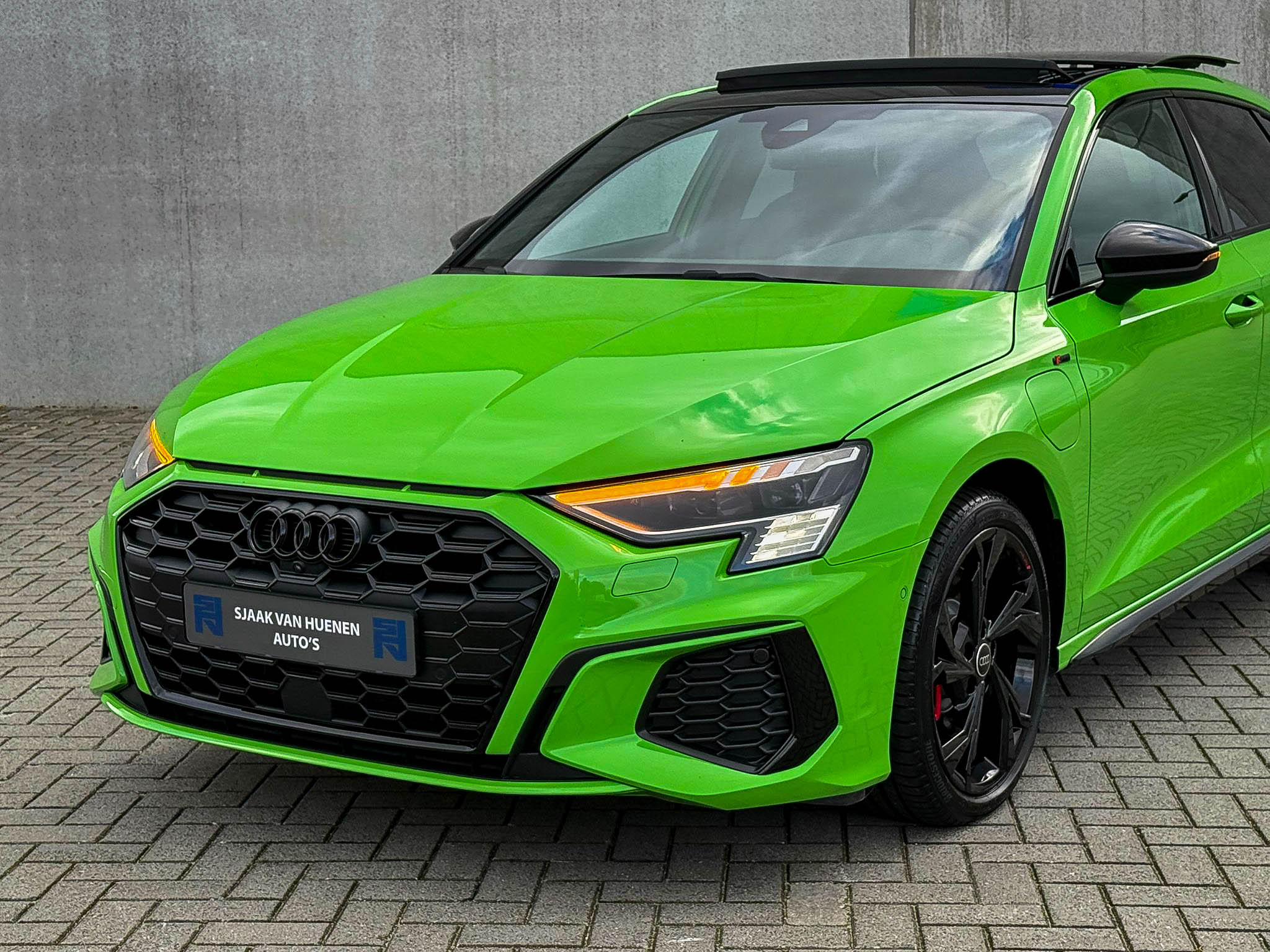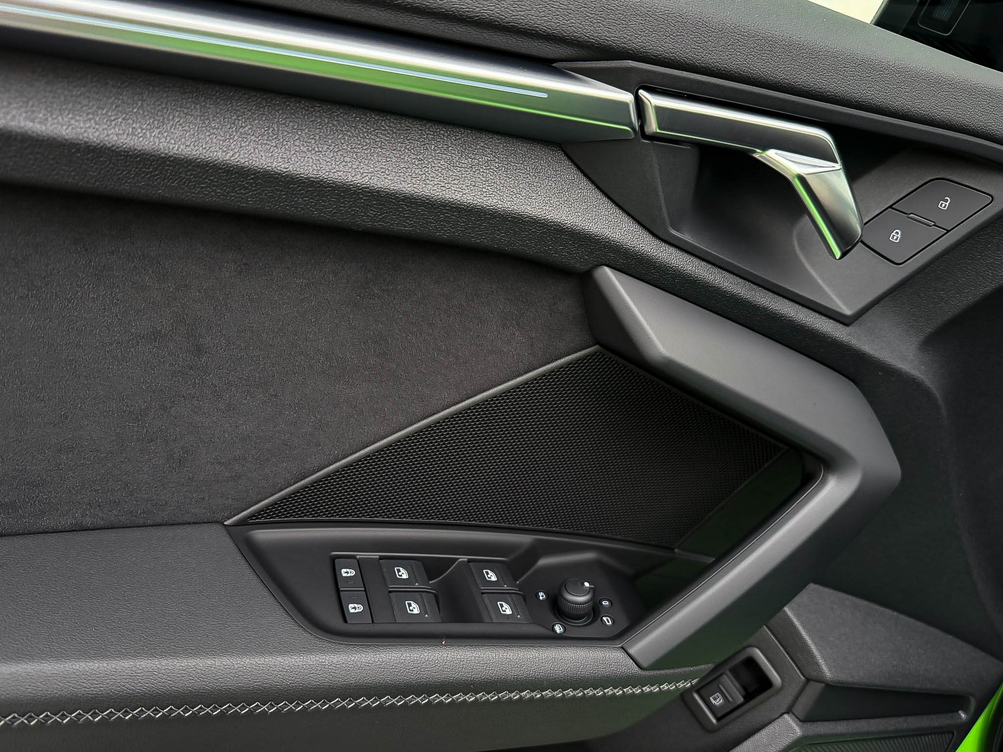 NIEUW MODEL| MODEL 2023| MODEL 8Y! Een in bijzonder nette staat verkerende Audi A3 Sportback 5-Deurs Competition 45 TFSI e 245pk S-Tronic Automaat S-Line S Edition Pro Line S! Dit UNIEKE AUDI EXCLUSIVE EXEMPLAAR is afkomstig van de 1e eigenaar, betreft een origineel Audi dealer auto met een gecontroleerde tellerstand van slechts 52.567km. Een geweldig sportieve Sportback Competition uitvoering in echte liefhebbers configuratie; het Competition S-Line exterieur- & interieurpakket en de fantastische Kyalami RS Green Audi Exclusive lak gecombineerd met het zwart optiekpakket, de elektrisch verstelbare Lederen/Alcantara S kuipstoelen incl. Diamond Cross stitching, 360° Camera/ Area View, Audi Exclusive Alcantara airbag + geperforeerd afgevlakt stuurwiel, het Panoramisch glazen schuif-/kanteldak en natuurlijk de Audi Virtual Cockpit Plus! Deze A3 Competition biedt geweldige prestaties met z’n 180kw/245pk en 400Nm koppel! DURF JIJ HEM AAN?! De nieuwwaarde van ruim €58.000,- vertegenwoordigd een uitzonderlijk royaal uitrustingsniveau. Het betreft een BTW-auto, dus voor zowel de zakelijke als particuliere klant interessant. De getoonde 18inch OEM Audi Sport Black optiek velgenset met 4x Bridgestone Turanza T005 zomerbanden is tegen geringe meerprijs van €995,- te verkrijgen.