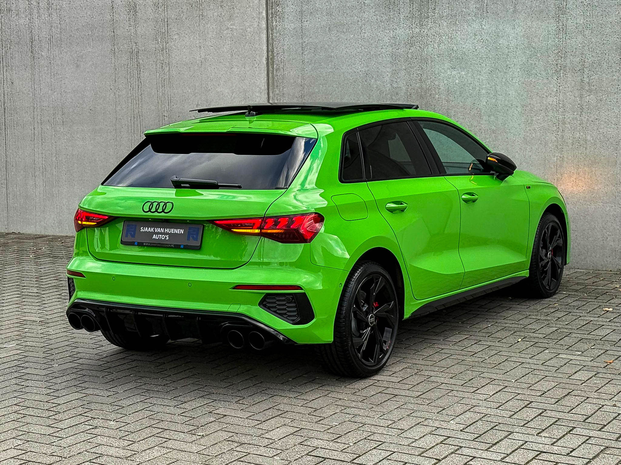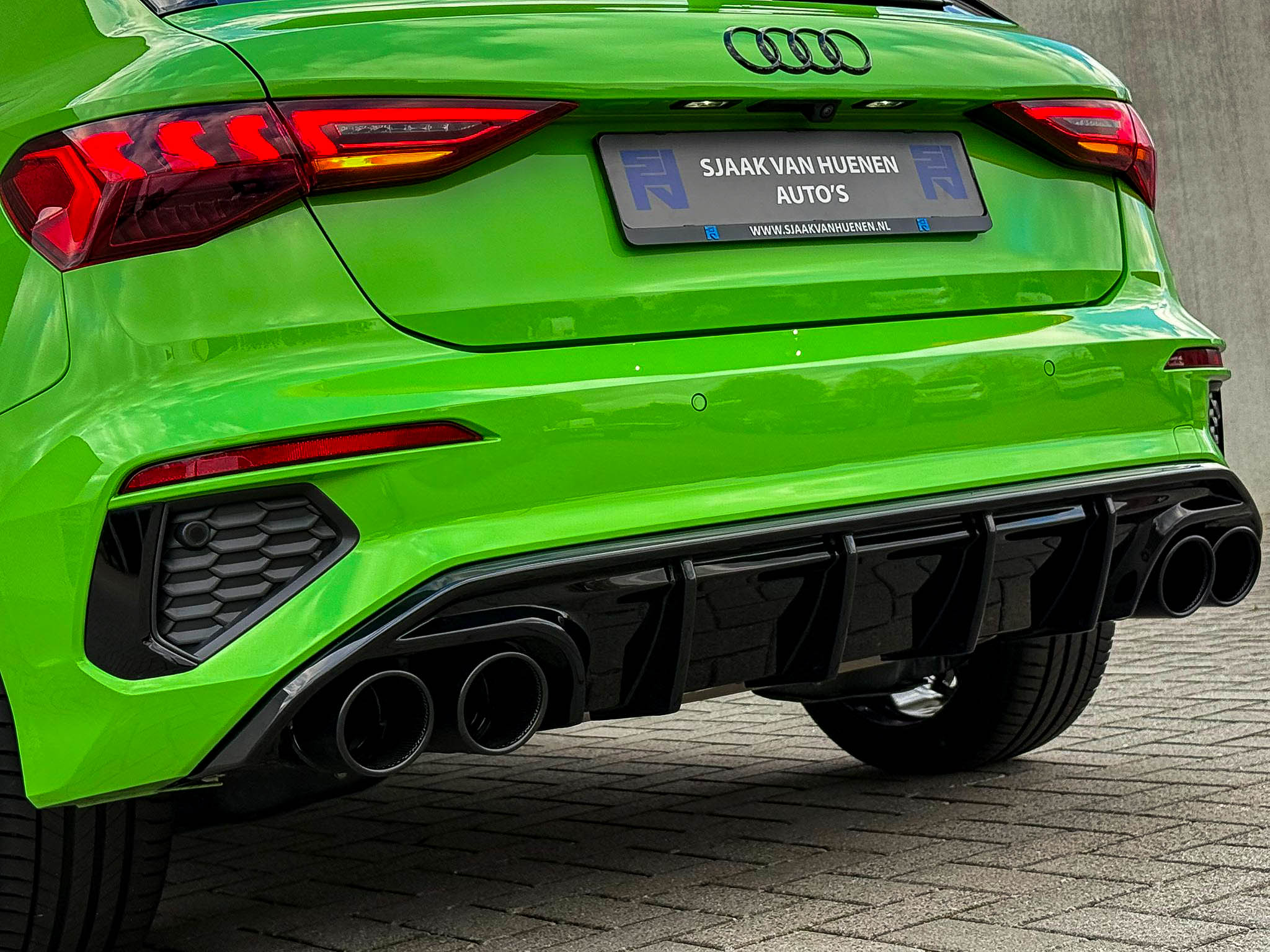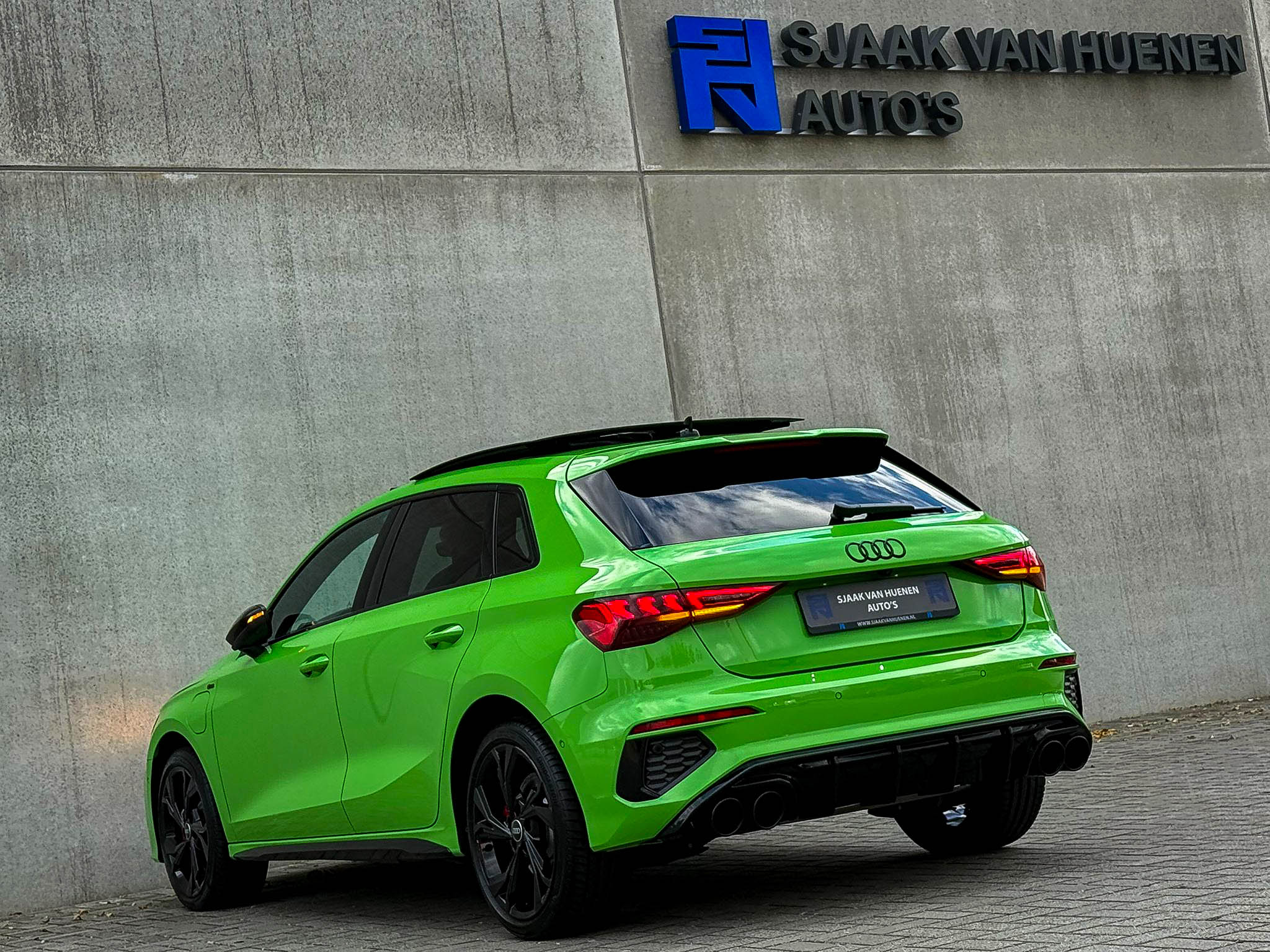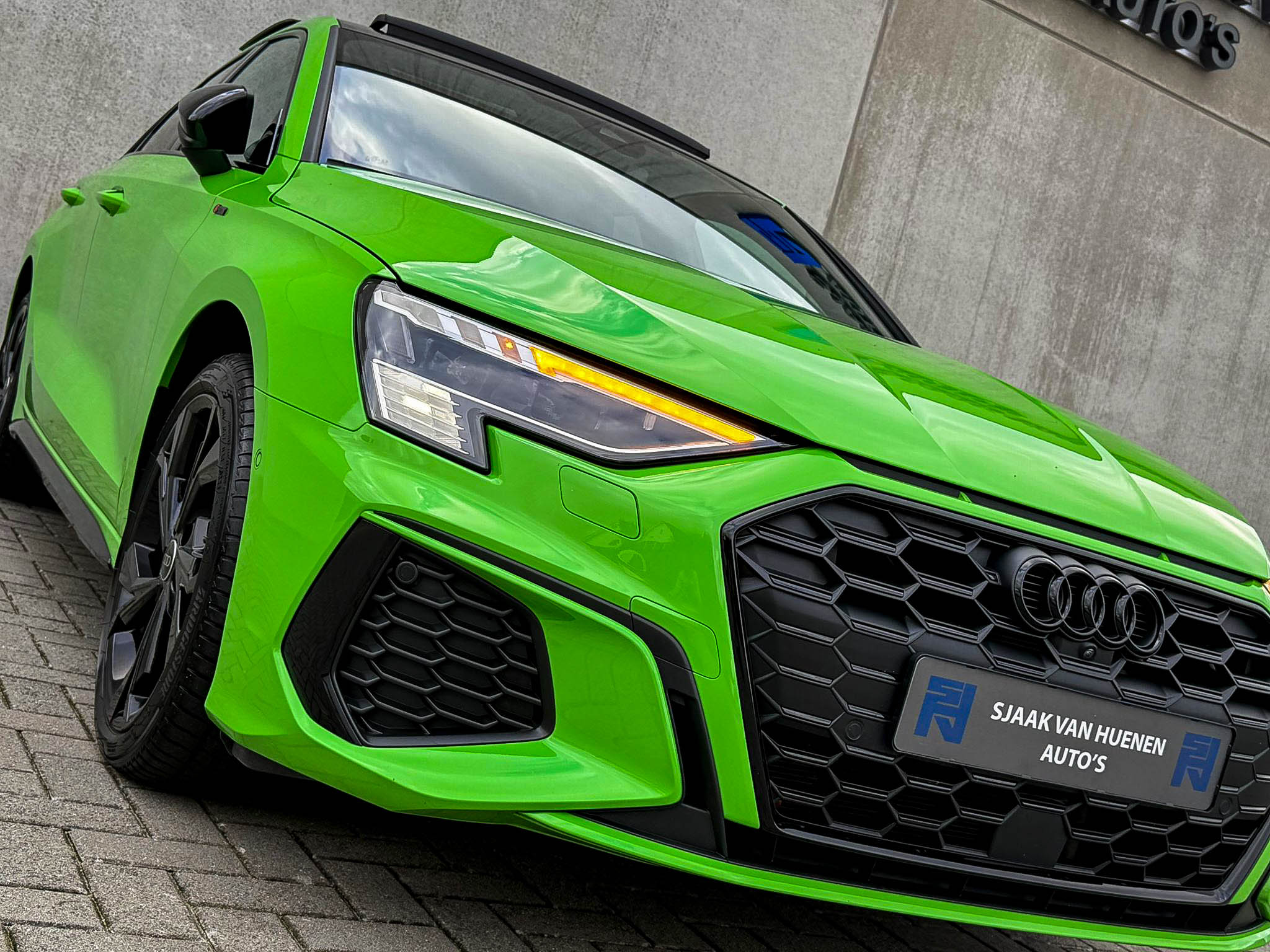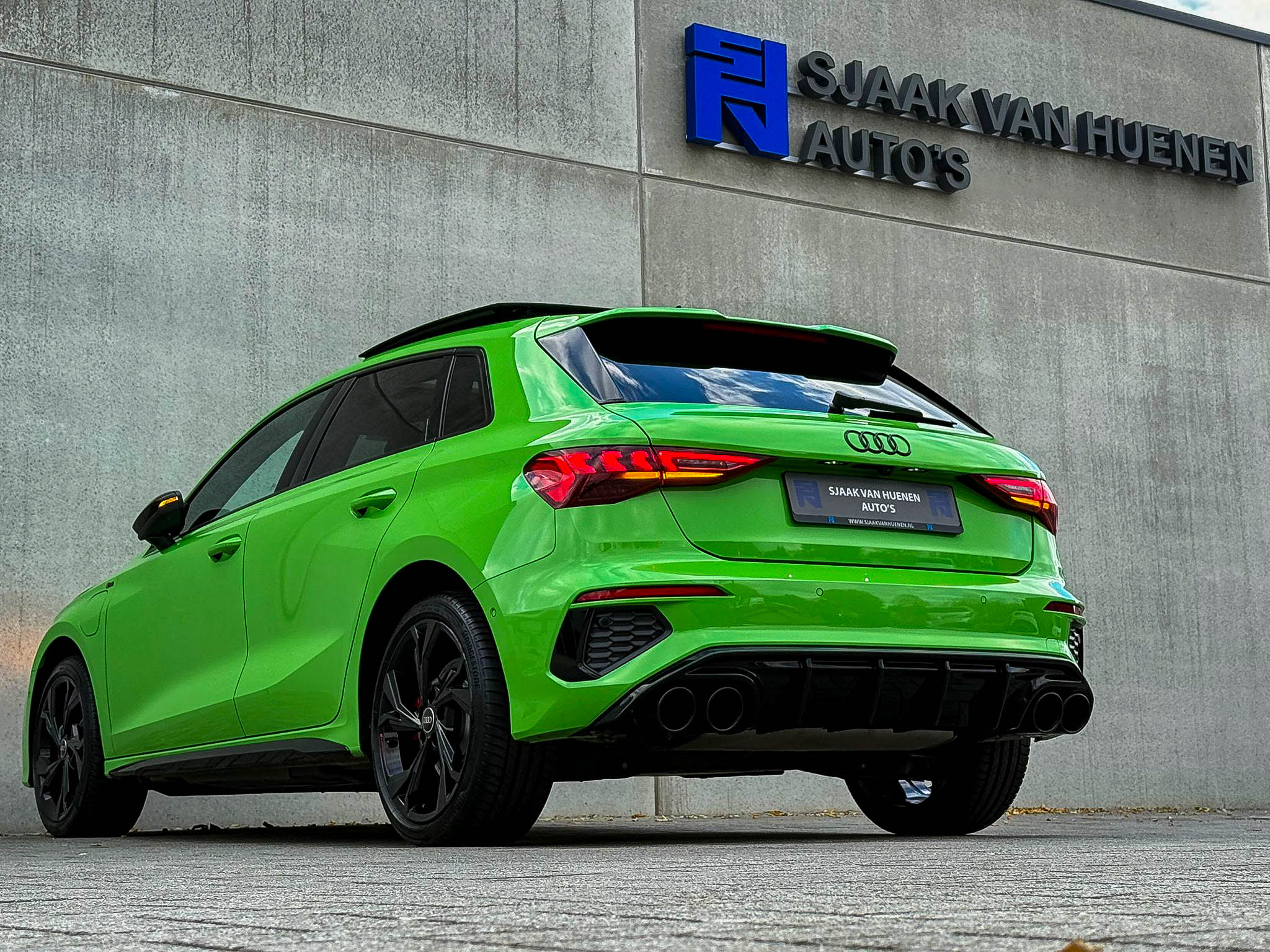 NIEUW MODEL| MODEL 2023| MODEL 8Y! Een in bijzonder nette staat verkerende Audi A3 Sportback 5-Deurs Competition 45 TFSI e 245pk S-Tronic Automaat S-Line S Edition Pro Line S! Dit UNIEKE AUDI EXCLUSIVE EXEMPLAAR is afkomstig van de 1e eigenaar, betreft een origineel Audi dealer auto met een gecontroleerde tellerstand van slechts 52.567km. Een geweldig sportieve Sportback Competition uitvoering in echte liefhebbers configuratie; het Competition S-Line exterieur- & interieurpakket en de fantastische Kyalami RS Green Audi Exclusive lak gecombineerd met het zwart optiekpakket, de elektrisch verstelbare Lederen/Alcantara S kuipstoelen incl. Diamond Cross stitching, 360° Camera/ Area View, Audi Exclusive Alcantara airbag + geperforeerd afgevlakt stuurwiel, het Panoramisch glazen schuif-/kanteldak en natuurlijk de Audi Virtual Cockpit Plus! Deze A3 Competition biedt geweldige prestaties met z’n 180kw/245pk en 400Nm koppel! DURF JIJ HEM AAN?! De nieuwwaarde van ruim €58.000,- vertegenwoordigd een uitzonderlijk royaal uitrustingsniveau. Het betreft een BTW-auto, dus voor zowel de zakelijke als particuliere klant interessant. De getoonde 18inch OEM Audi Sport Black optiek velgenset met 4x Bridgestone Turanza T005 zomerbanden is tegen geringe meerprijs van €995,- te verkrijgen.