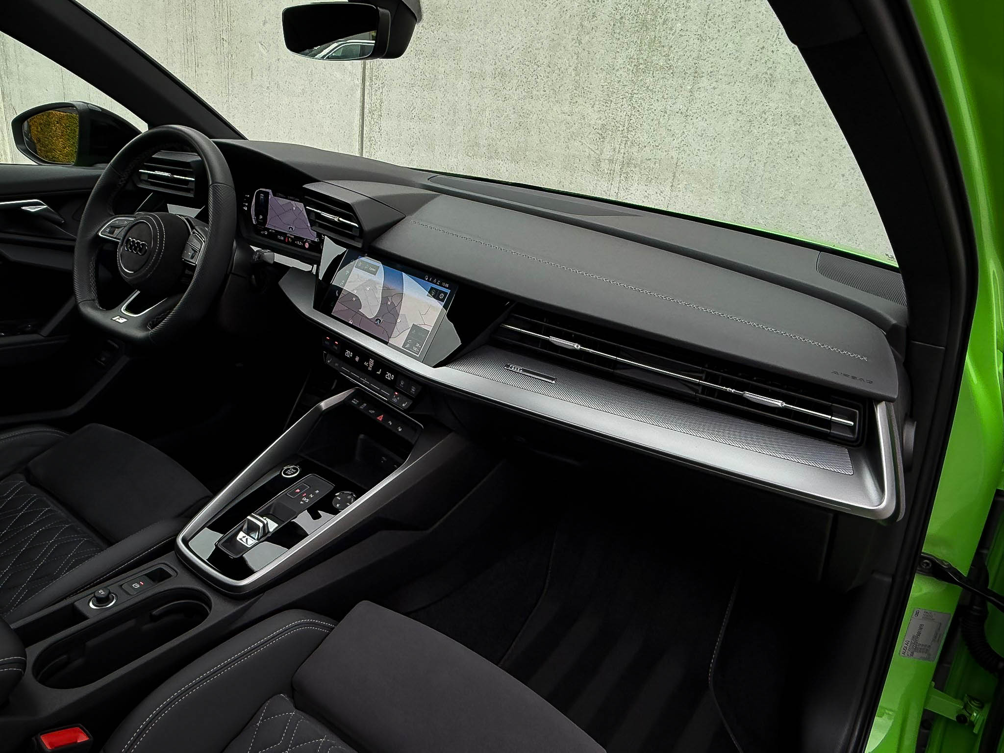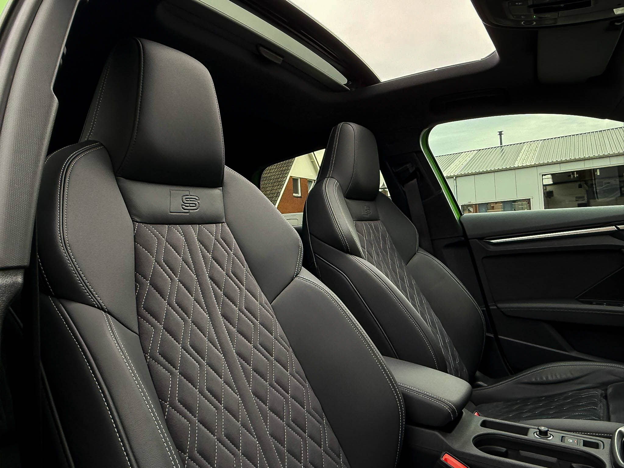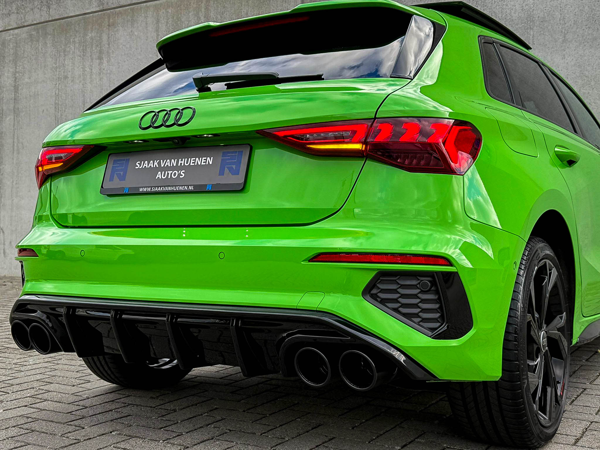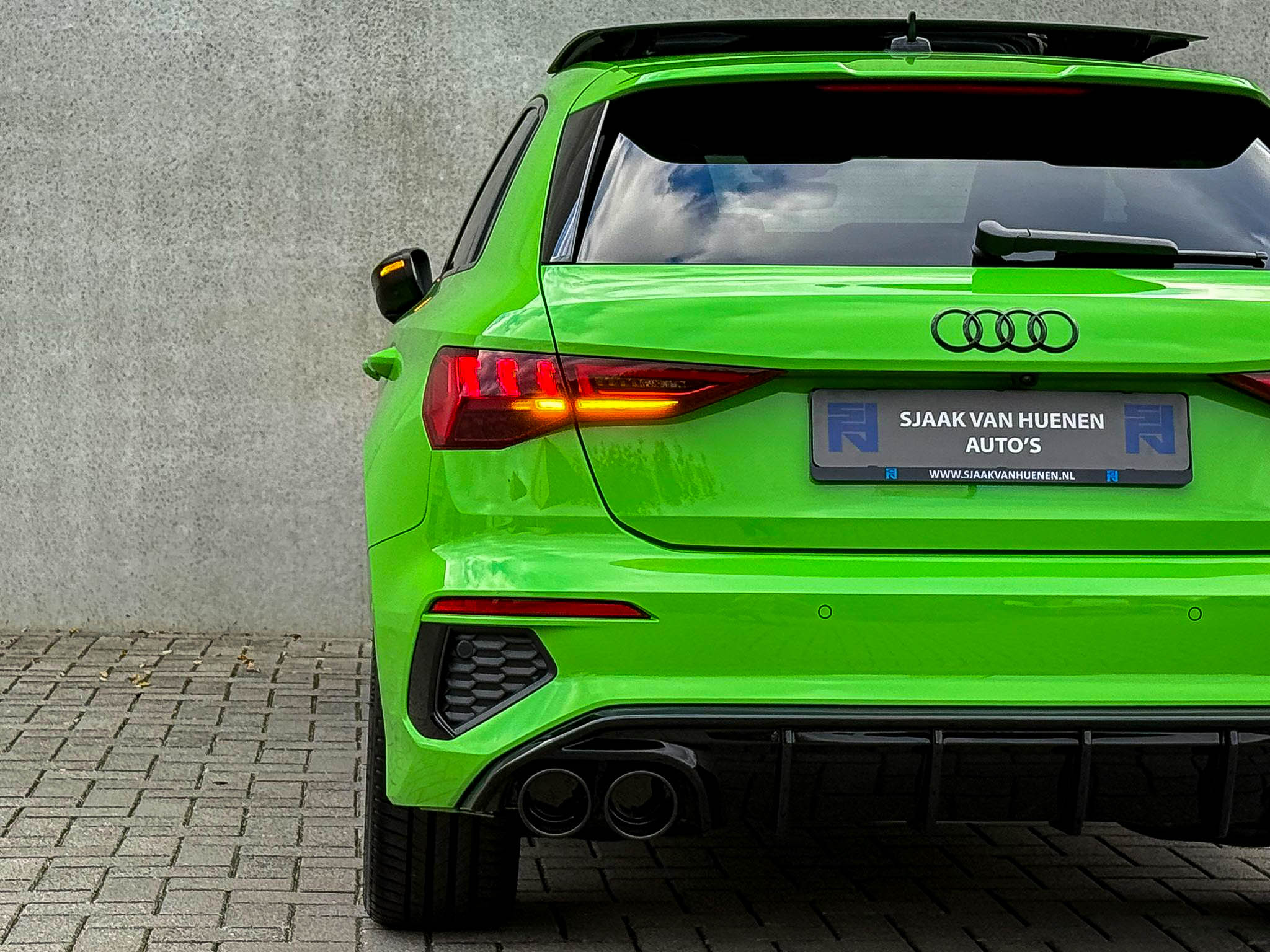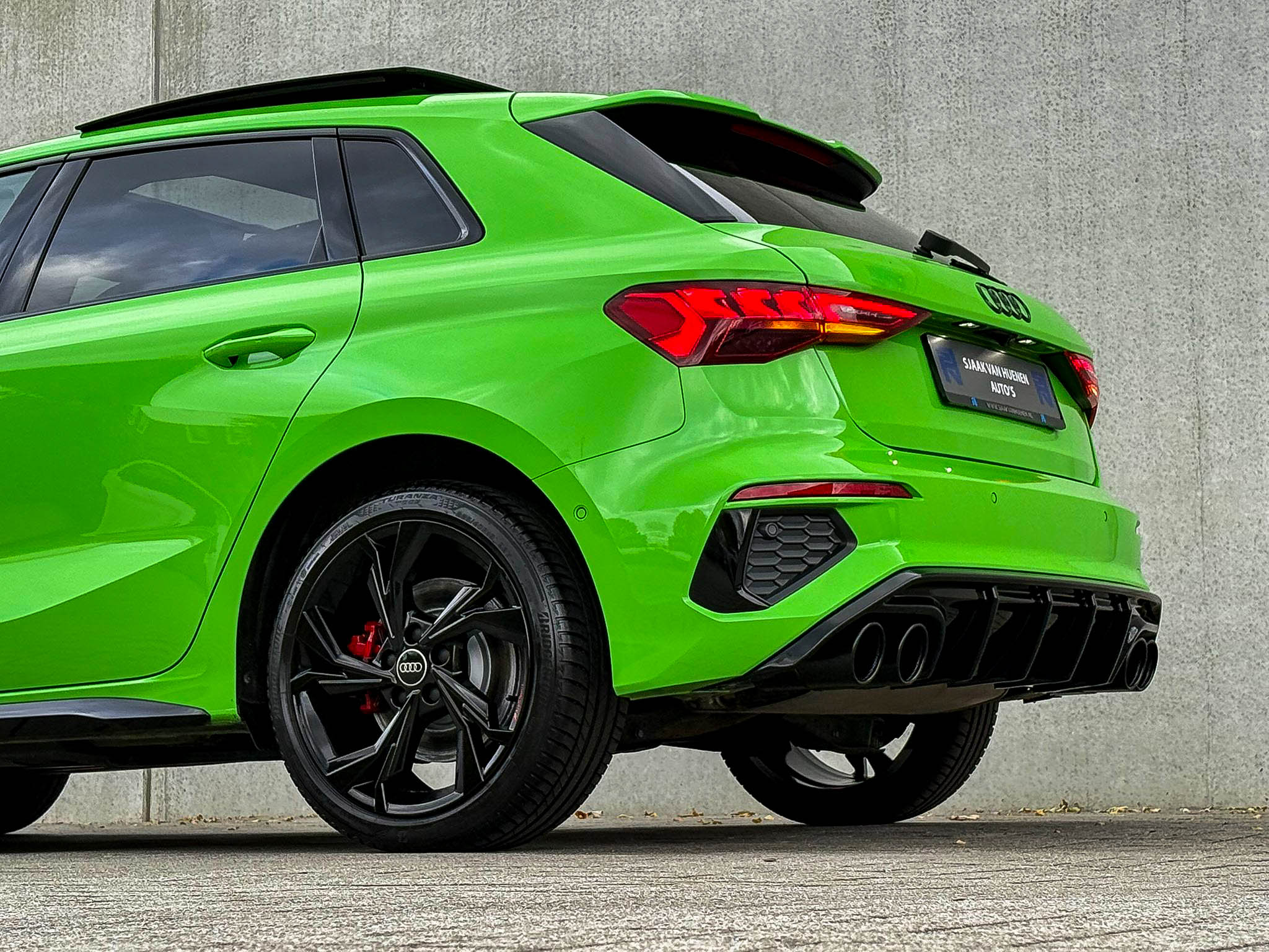 NIEUW MODEL| MODEL 2023| MODEL 8Y! Een in bijzonder nette staat verkerende Audi A3 Sportback 5-Deurs Competition 45 TFSI e 245pk S-Tronic Automaat S-Line S Edition Pro Line S! Dit UNIEKE AUDI EXCLUSIVE EXEMPLAAR is afkomstig van de 1e eigenaar, betreft een origineel Audi dealer auto met een gecontroleerde tellerstand van slechts 52.567km. Een geweldig sportieve Sportback Competition uitvoering in echte liefhebbers configuratie; het Competition S-Line exterieur- & interieurpakket en de fantastische Kyalami RS Green Audi Exclusive lak gecombineerd met het zwart optiekpakket, de elektrisch verstelbare Lederen/Alcantara S kuipstoelen incl. Diamond Cross stitching, 360° Camera/ Area View, Audi Exclusive Alcantara airbag + geperforeerd afgevlakt stuurwiel, het Panoramisch glazen schuif-/kanteldak en natuurlijk de Audi Virtual Cockpit Plus! Deze A3 Competition biedt geweldige prestaties met z’n 180kw/245pk en 400Nm koppel! DURF JIJ HEM AAN?! De nieuwwaarde van ruim €58.000,- vertegenwoordigd een uitzonderlijk royaal uitrustingsniveau. Het betreft een BTW-auto, dus voor zowel de zakelijke als particuliere klant interessant. De getoonde 18inch OEM Audi Sport Black optiek velgenset met 4x Bridgestone Turanza T005 zomerbanden is tegen geringe meerprijs van €995,- te verkrijgen.