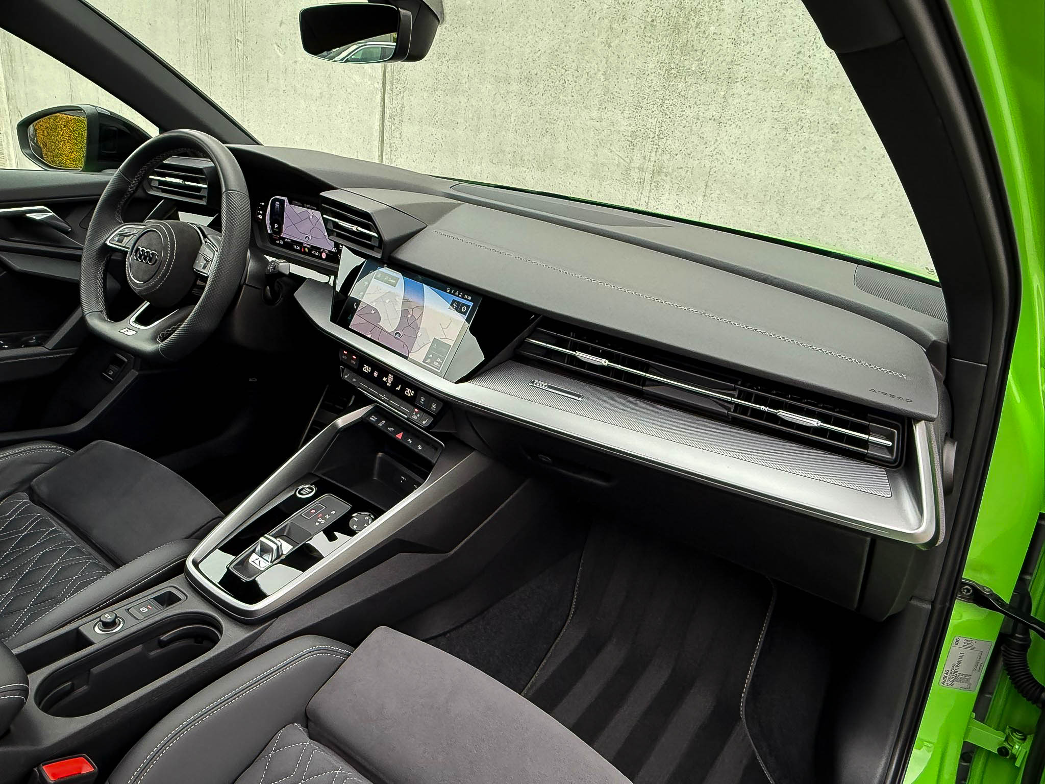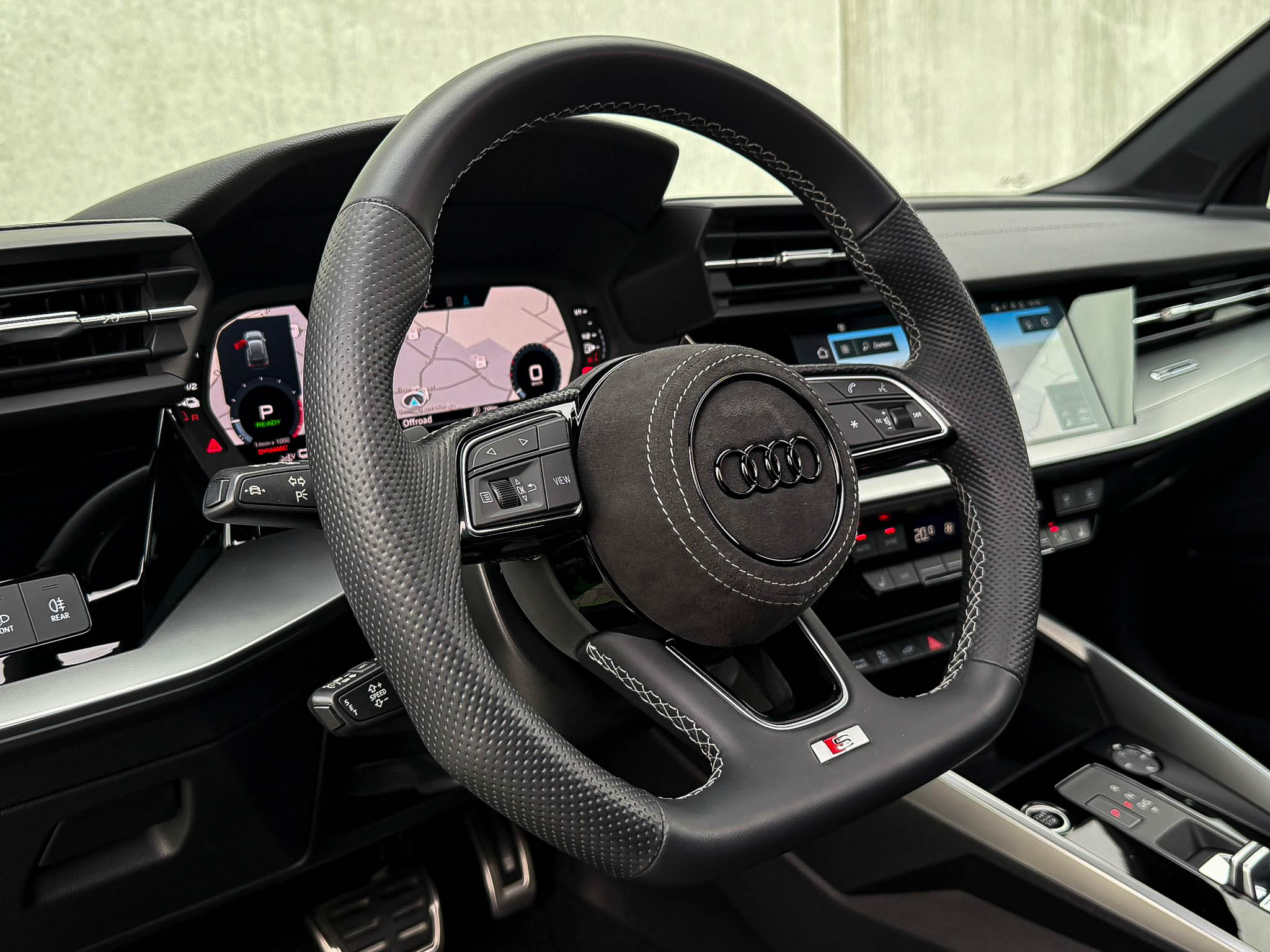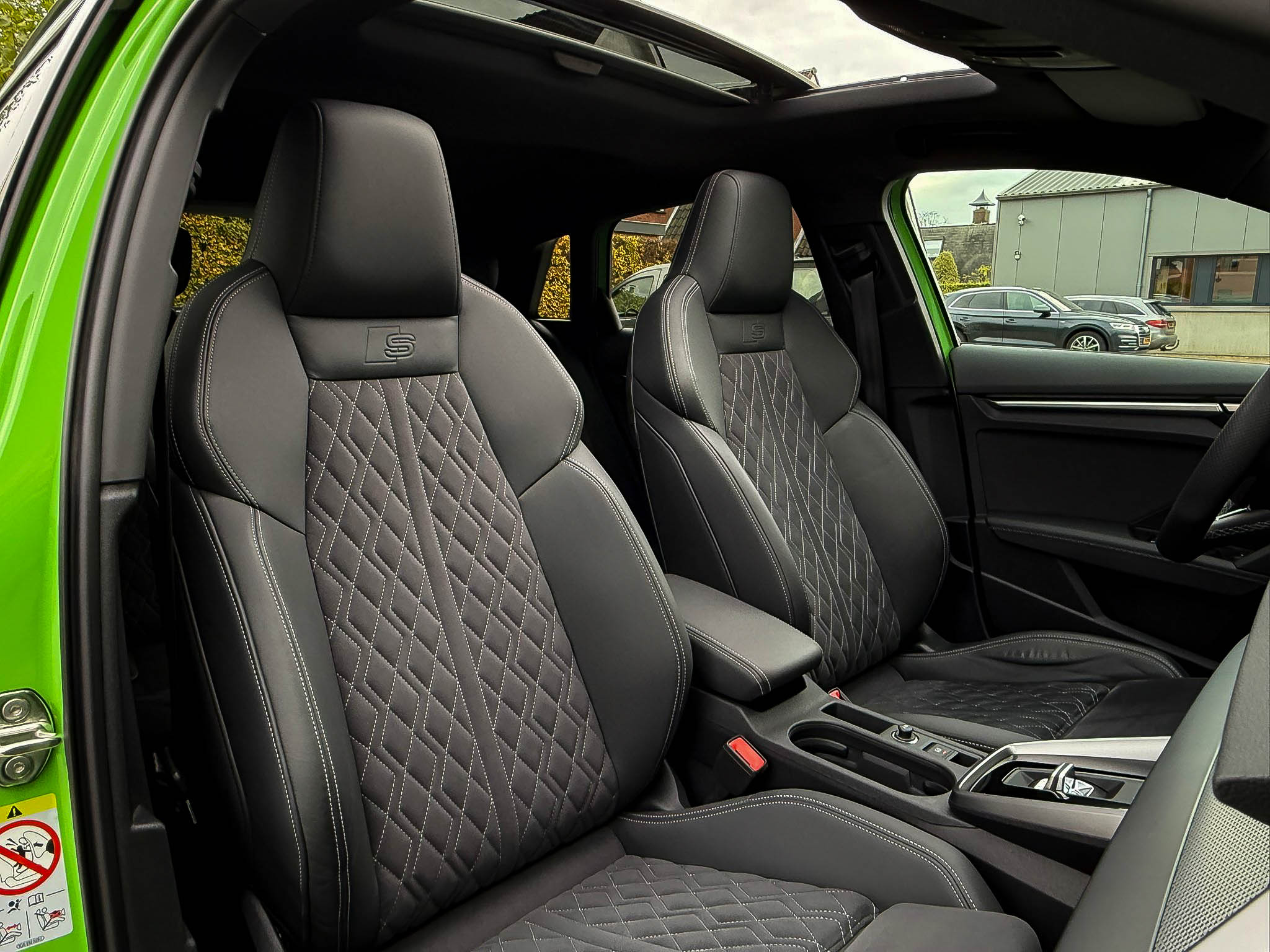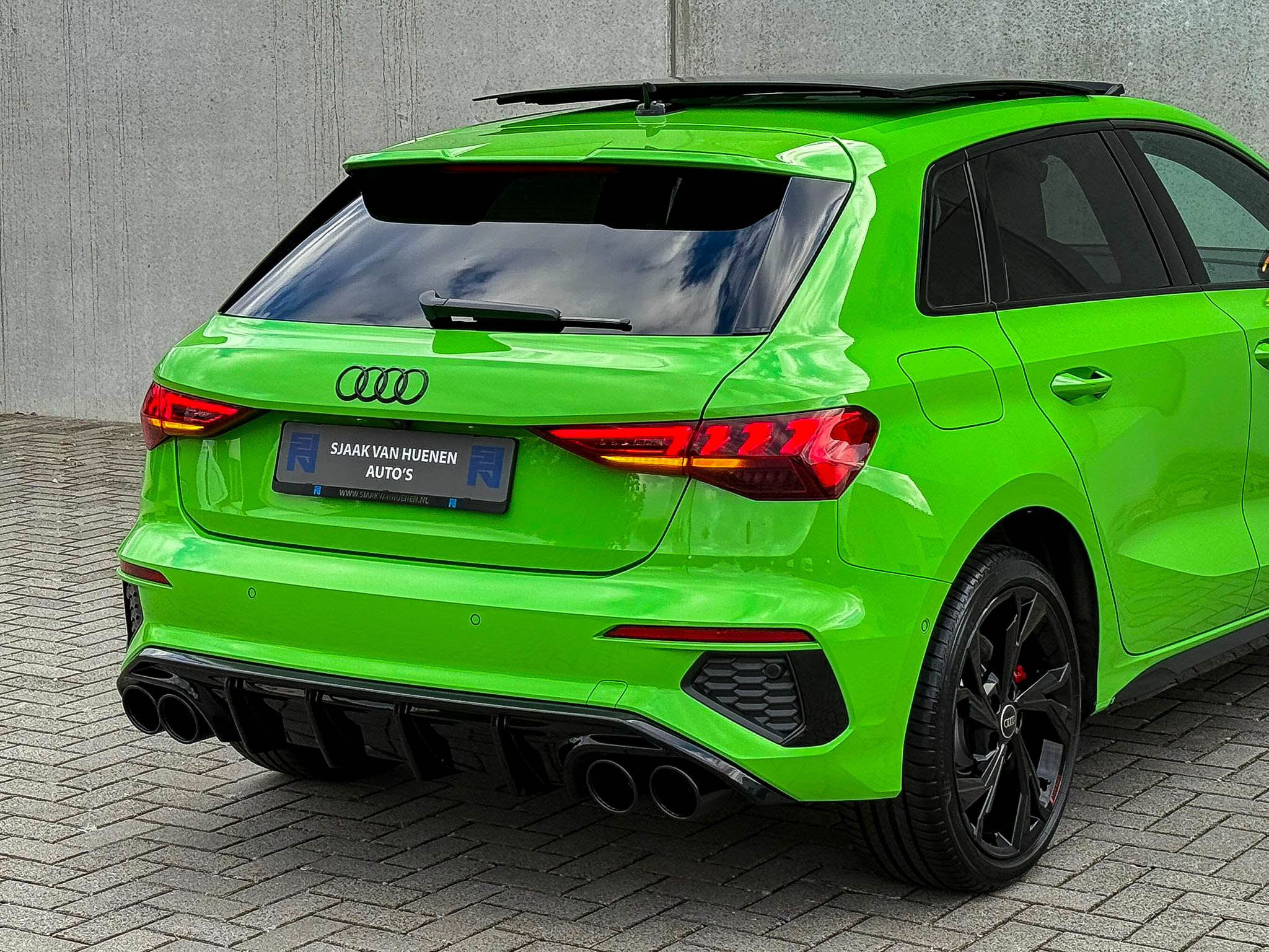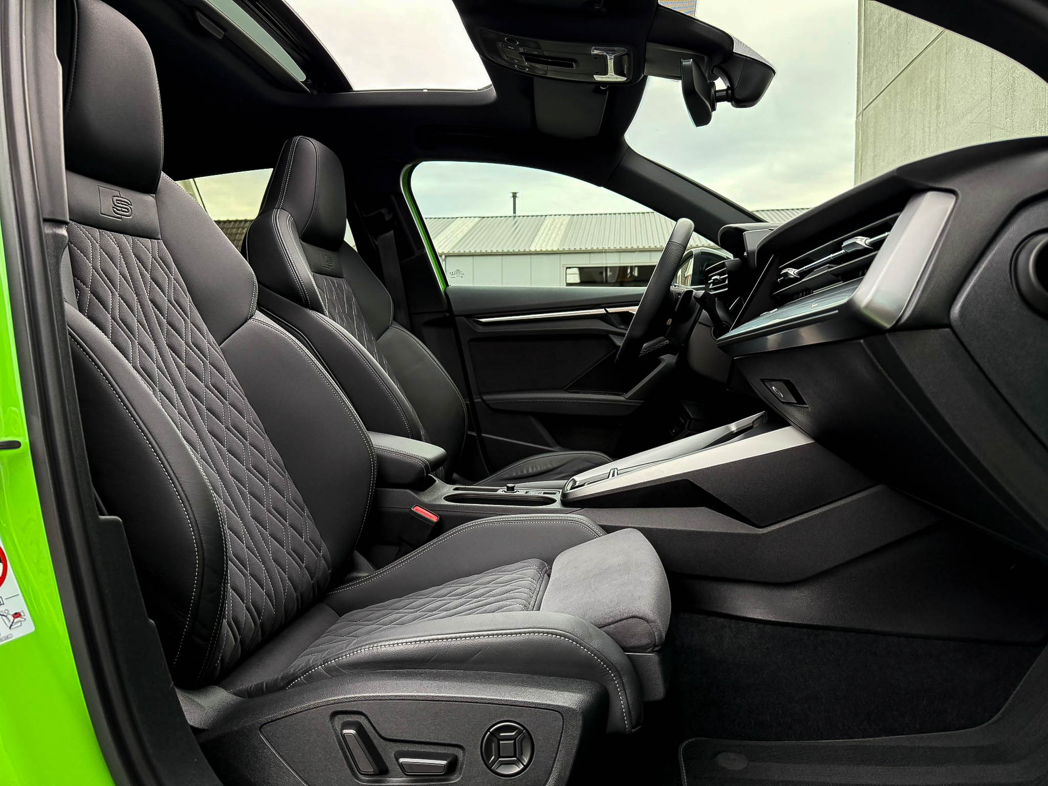 NIEUW MODEL| MODEL 2023| MODEL 8Y! Een in bijzonder nette staat verkerende Audi A3 Sportback 5-Deurs Competition 45 TFSI e 245pk S-Tronic Automaat S-Line S Edition Pro Line S! Dit UNIEKE AUDI EXCLUSIVE EXEMPLAAR is afkomstig van de 1e eigenaar, betreft een origineel Audi dealer auto met een gecontroleerde tellerstand van slechts 52.567km. Een geweldig sportieve Sportback Competition uitvoering in echte liefhebbers configuratie; het Competition S-Line exterieur- & interieurpakket en de fantastische Kyalami RS Green Audi Exclusive lak gecombineerd met het zwart optiekpakket, de elektrisch verstelbare Lederen/Alcantara S kuipstoelen incl. Diamond Cross stitching, 360° Camera/ Area View, Audi Exclusive Alcantara airbag + geperforeerd afgevlakt stuurwiel, het Panoramisch glazen schuif-/kanteldak en natuurlijk de Audi Virtual Cockpit Plus! Deze A3 Competition biedt geweldige prestaties met z’n 180kw/245pk en 400Nm koppel! DURF JIJ HEM AAN?! De nieuwwaarde van ruim €58.000,- vertegenwoordigd een uitzonderlijk royaal uitrustingsniveau. Het betreft een BTW-auto, dus voor zowel de zakelijke als particuliere klant interessant. De getoonde 18inch OEM Audi Sport Black optiek velgenset met 4x Bridgestone Turanza T005 zomerbanden is tegen geringe meerprijs van €995,- te verkrijgen.