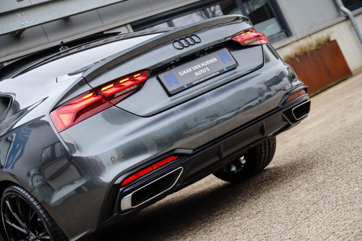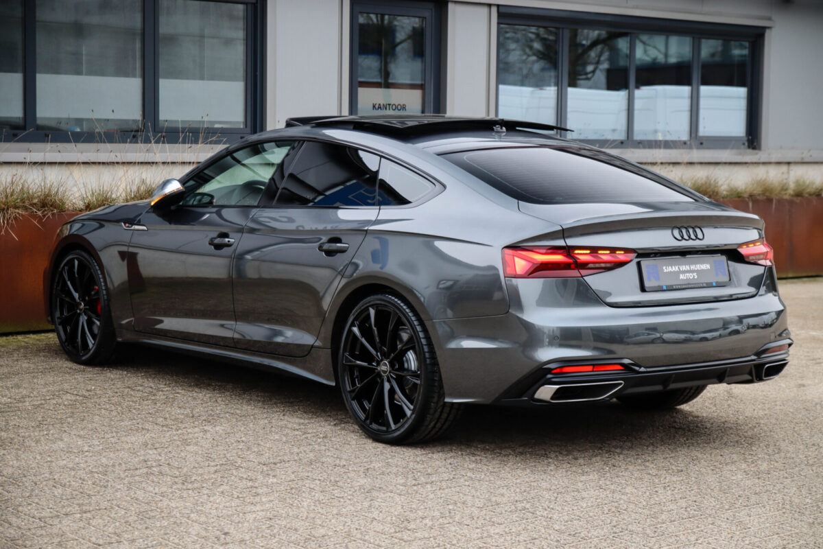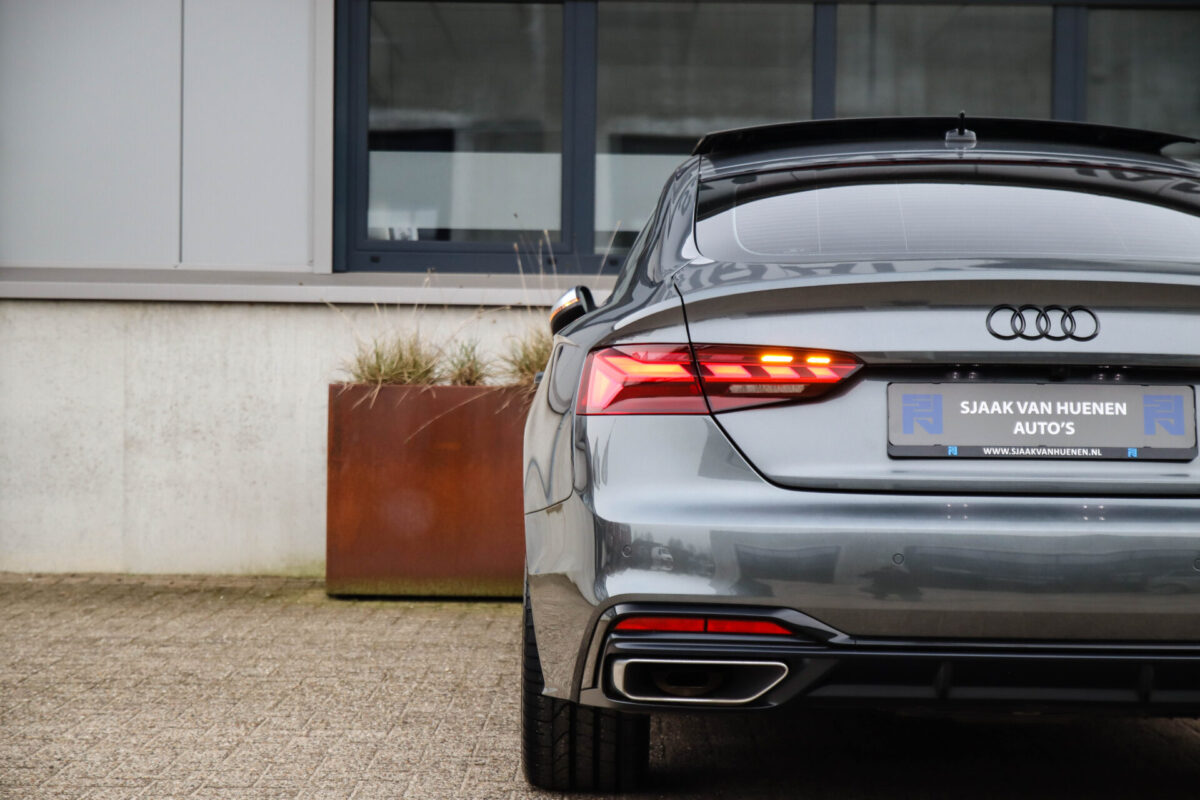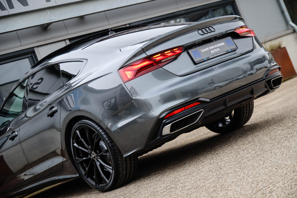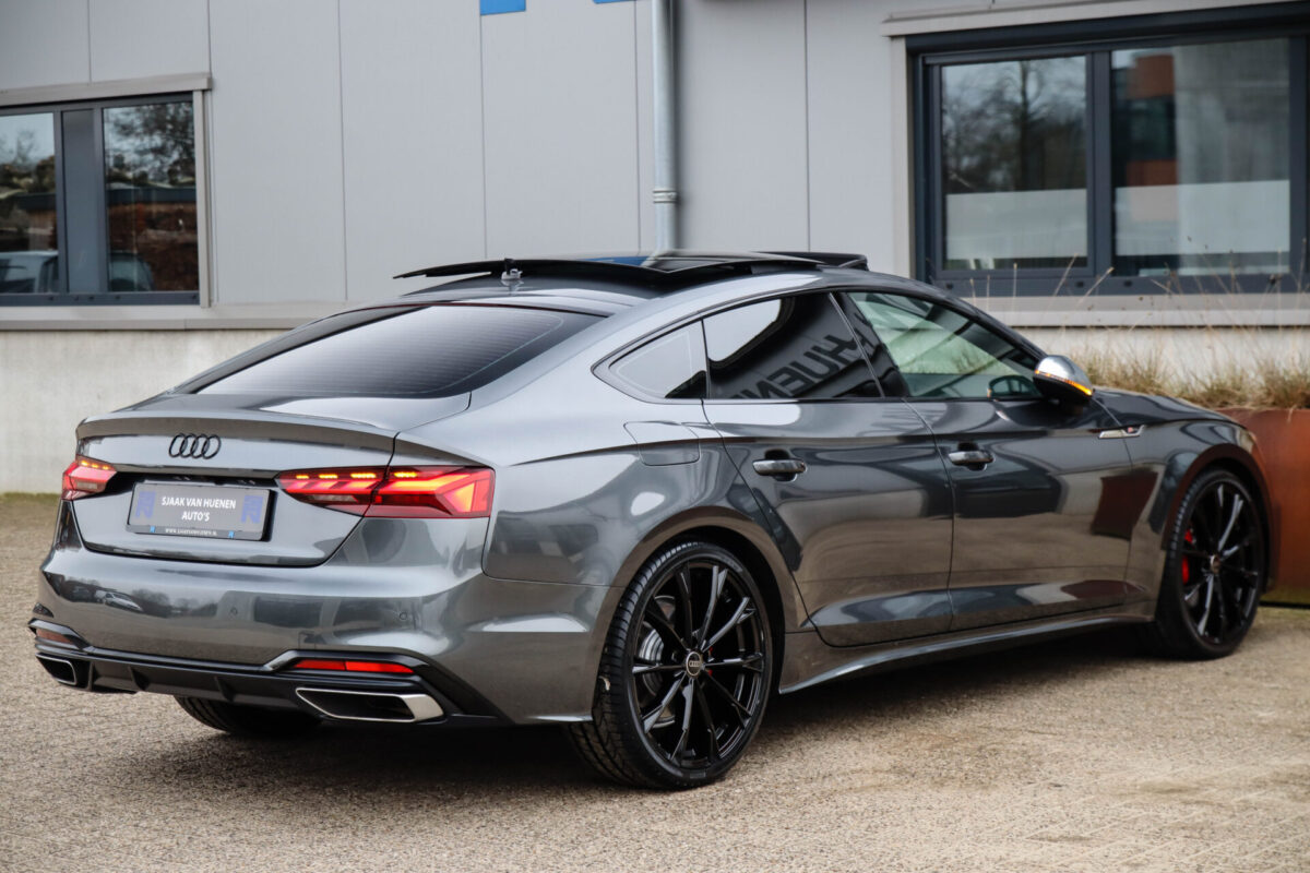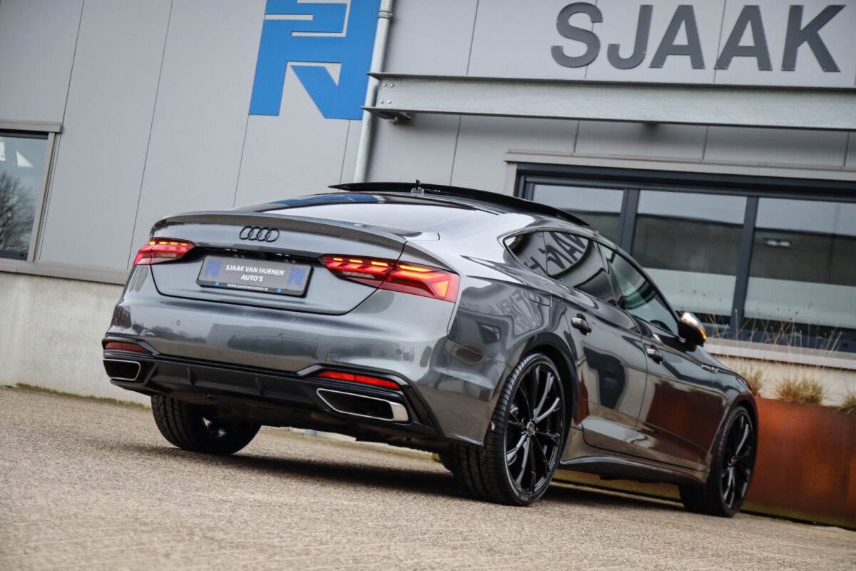 NIEUW MODEL 2021 | B9 FACELIFT! Een in uiterst nette staat verkerende Audi A5 Sportback B9 Facelift 40 2.0TFSI 150kw/204pk S-Tronic S-Line! Deze origineel Nederlands geleverde Audi A5 Sportback is afkomstig van de 1e eigenaar, is uiteraard volledig Audi dealer onderhouden en heeft een zeer interessant gecontroleerde tellerstand van slechts 64.967km. Voorzien van bijzonder fraaie fabrieksopties zoals de gave Daytona Grey Pearl lak gecombineerd met het Zwart optiekpakket, het Panoramisch glazen schuif-/kanteldak en natuurlijk de Audi Virtual Cockpit. Het betreft een BTW-auto, dus voor zowel de zakelijke als particuliere klant interessant. De getoonde 20inch Black Performance velgenset met 4x Pirelli PZERO zomerbanden is tegen geringe meerprijs van €1995,- te verkrijgen.