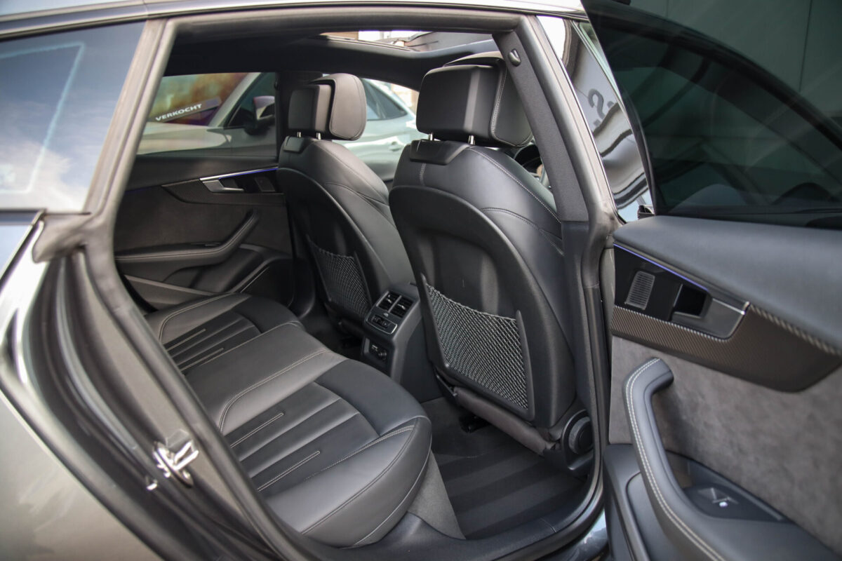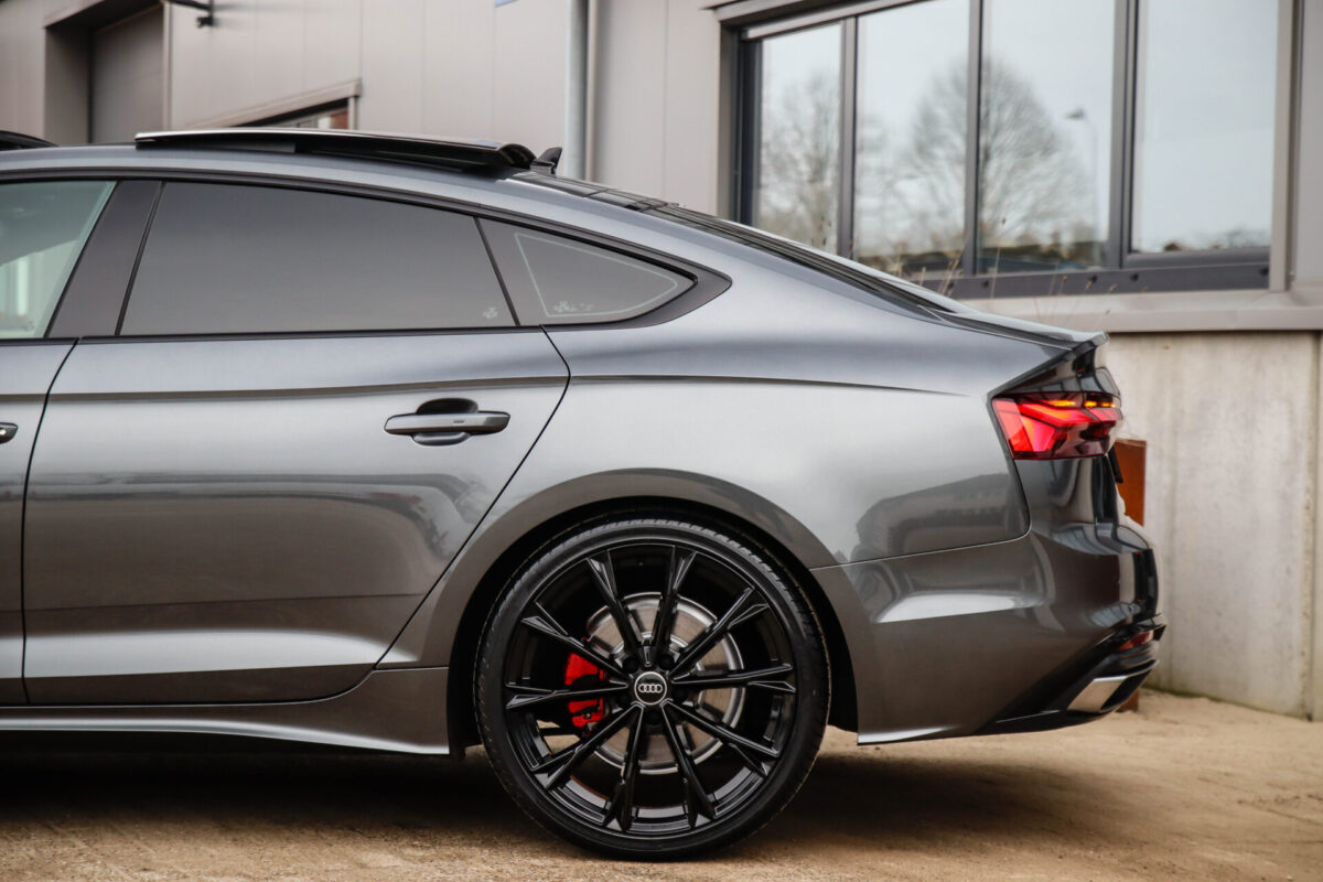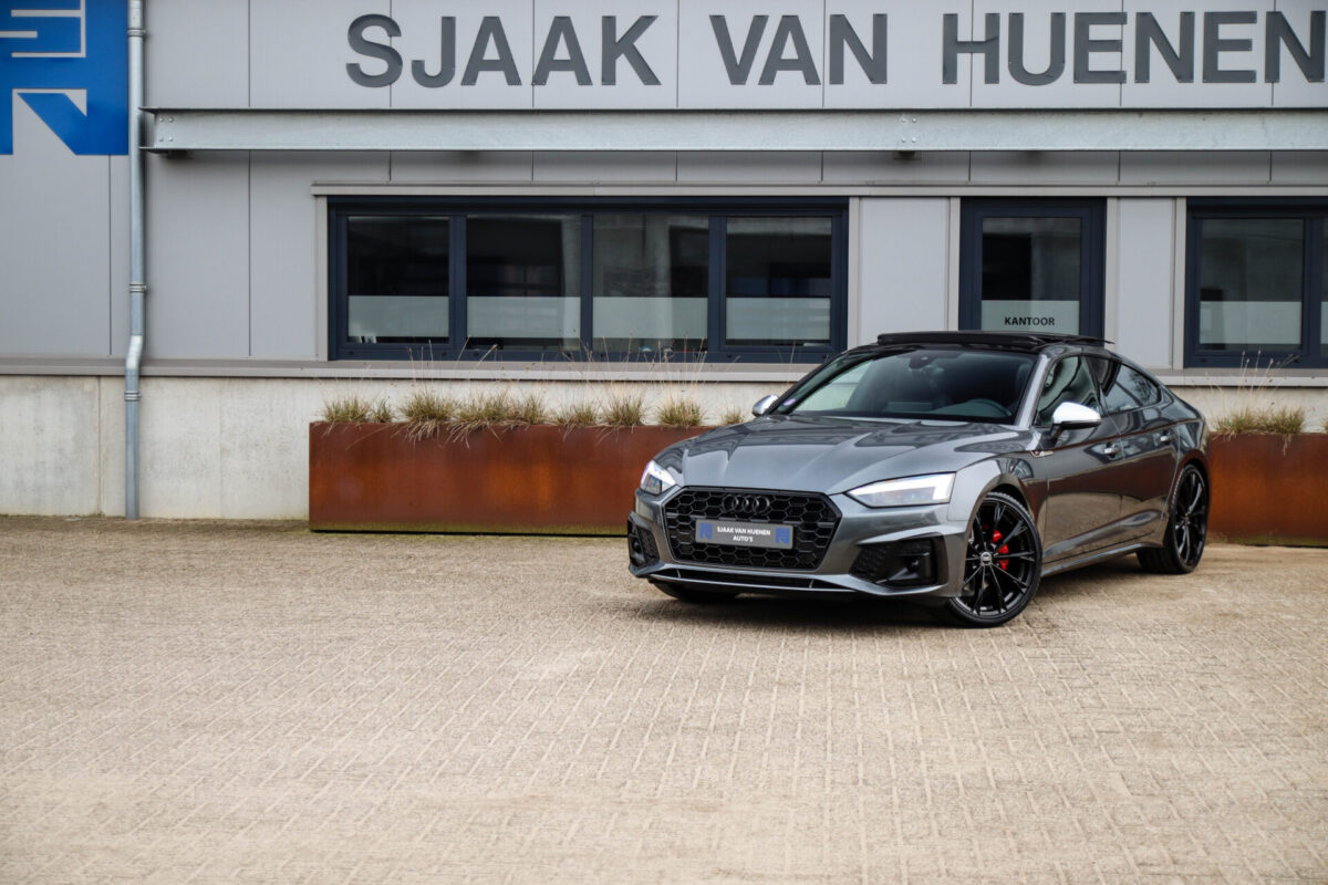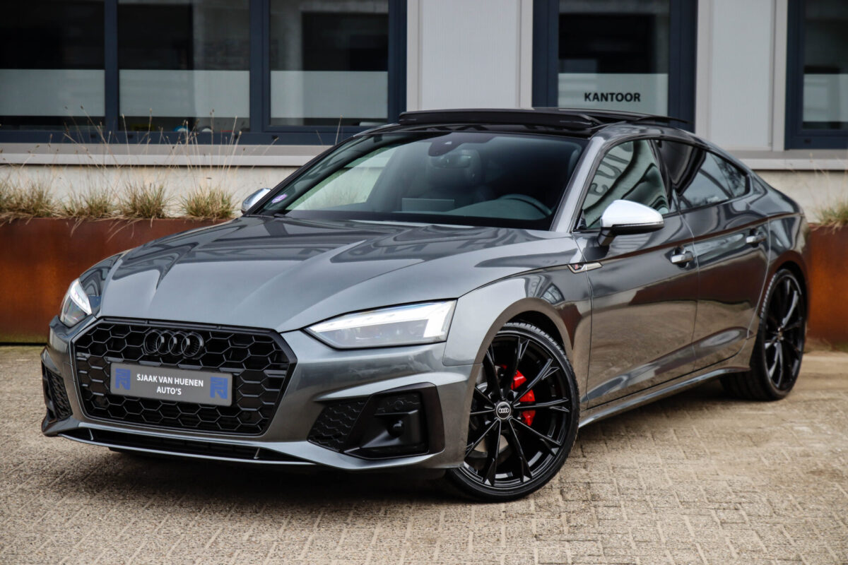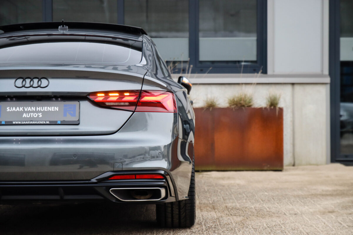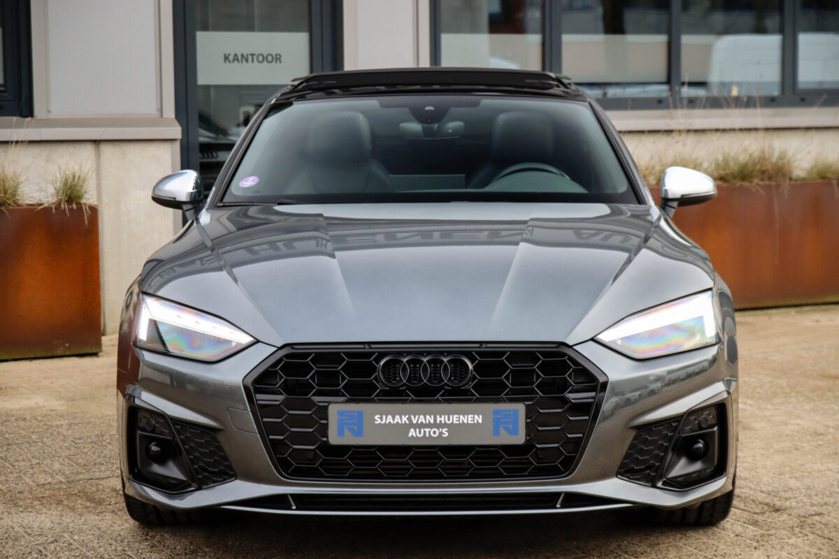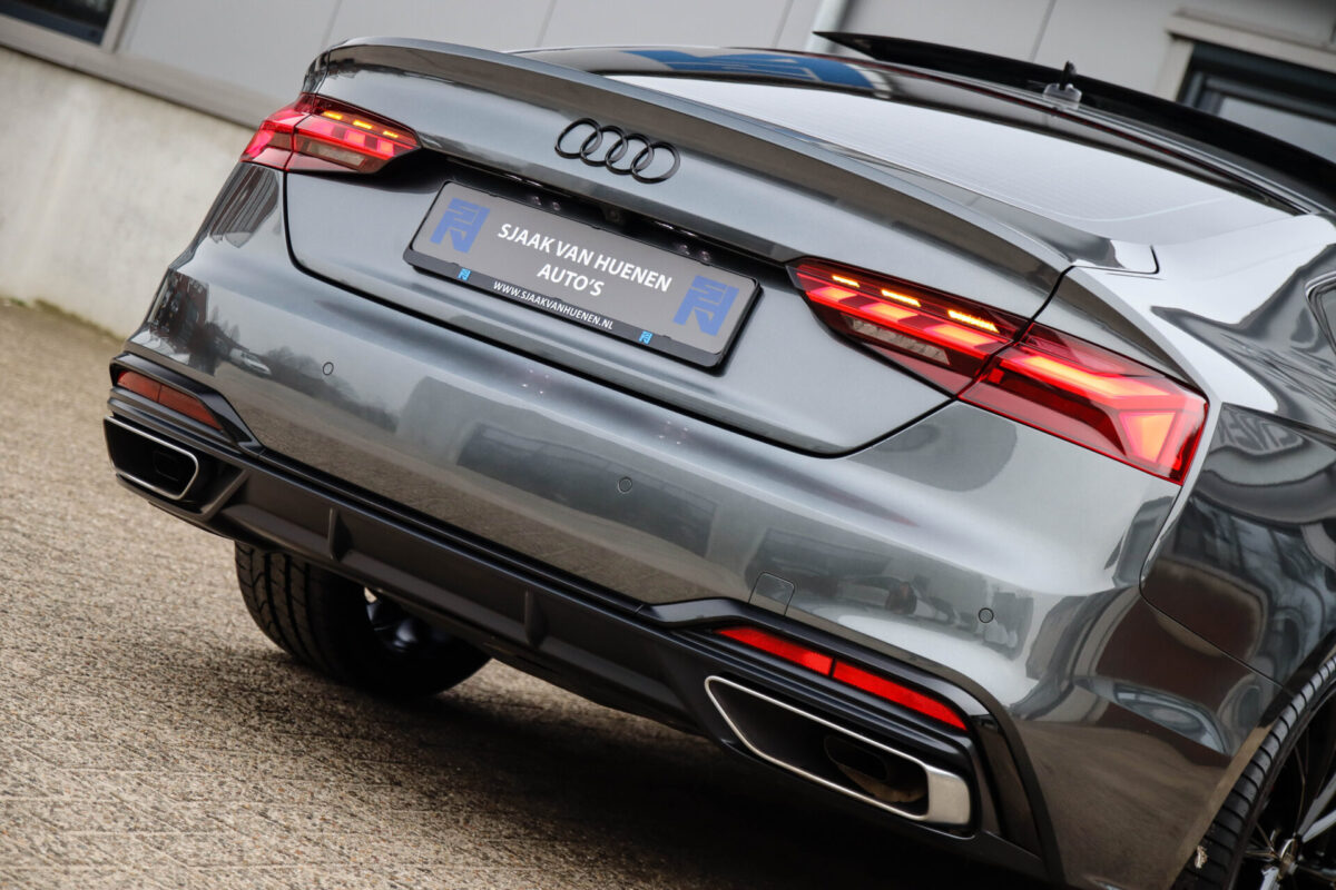 NIEUW MODEL 2021 | B9 FACELIFT! Een in uiterst nette staat verkerende Audi A5 Sportback B9 Facelift 40 2.0TFSI 150kw/204pk S-Tronic S-Line! Deze origineel Nederlands geleverde Audi A5 Sportback is afkomstig van de 1e eigenaar, is uiteraard volledig Audi dealer onderhouden en heeft een zeer interessant gecontroleerde tellerstand van slechts 64.967km. Voorzien van bijzonder fraaie fabrieksopties zoals de gave Daytona Grey Pearl lak gecombineerd met het Zwart optiekpakket, het Panoramisch glazen schuif-/kanteldak en natuurlijk de Audi Virtual Cockpit. Het betreft een BTW-auto, dus voor zowel de zakelijke als particuliere klant interessant. De getoonde 20inch Black Performance velgenset met 4x Pirelli PZERO zomerbanden is tegen geringe meerprijs van €1995,- te verkrijgen.