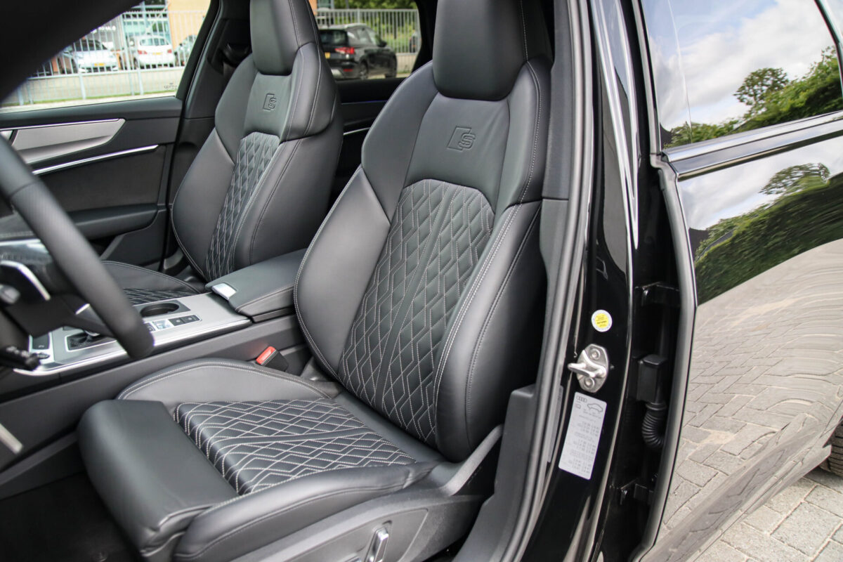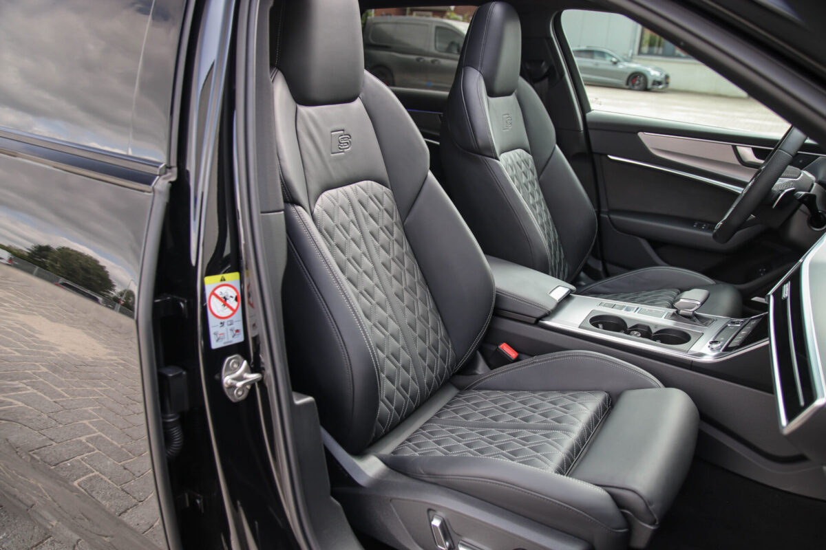 NIEUW MODEL | MODEL 2022 C8 | In uitmuntende staat verkerende Audi A6 Avant 55 TFSI e 270kw/367pk QUATTRO Competition S-Tronic Automaat Pro Line S S-Line! Afkomstig van 1e eigenaar en volledig Audi dealer onderhouden met een zeer interessante tellerstand van slechts 49.533 kilometer. Met een nieuwprijs van ruim €90.000,- betreft dit een bijzonder royaal geconfigureerde Audi A6 welke voorzien is van onderscheidende opties, denk aan de Mythos Black metallic lak gecombineerd met het Zwart optiekpakket, de Valcona lederen Supersport schaalstoelen incl. Diamond Cross stitching, HD Matrix LED koplampen, de Virtual Cockpit en natuurlijk het Panoramisch glazen-/schuifkanteldak. Deze Audi biedt met de 367pk en 500Nm sterke 2.0 liter TFSI turbomotor, gekoppeld aan de Audi Quattro 4-wielaandrijving een trekvermogen van 2000kg. Het betreft een BTW-auto, dus voor zowel de zakelijke als particuliere klant interessant. De getoonde 22inch Black Performance velgenset met 4x Hankook Ventus S1 EVO3 zomerbanden is tegen geringe meerprijs van €2595,- te verkrijgen.