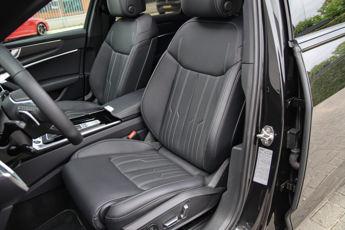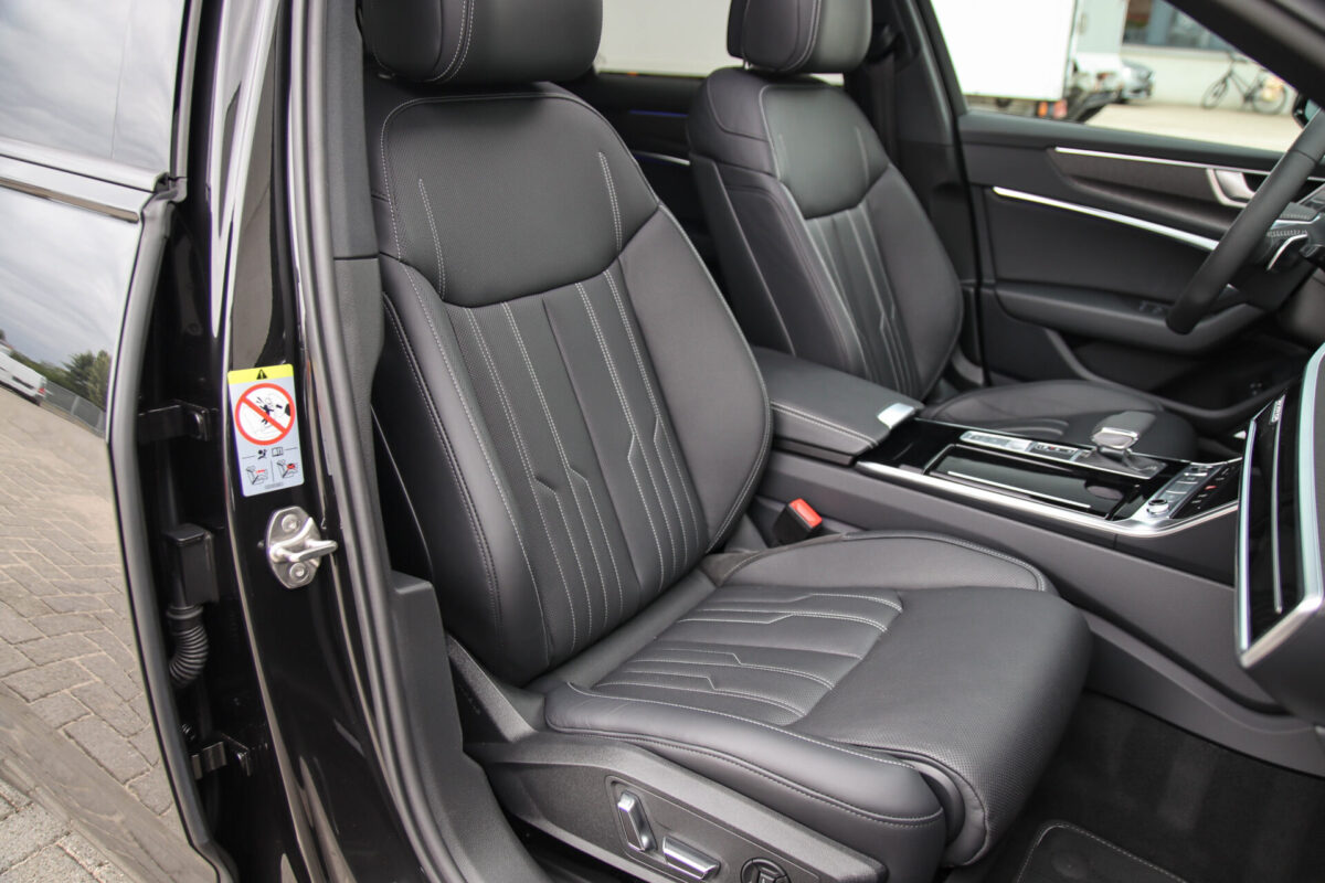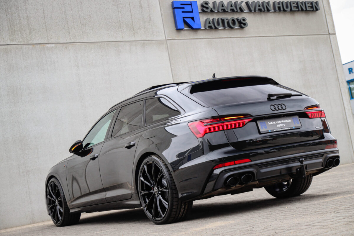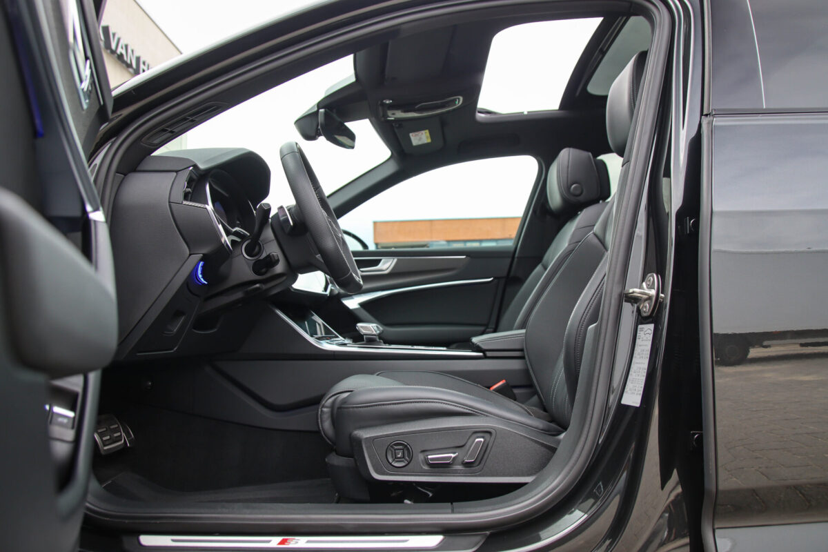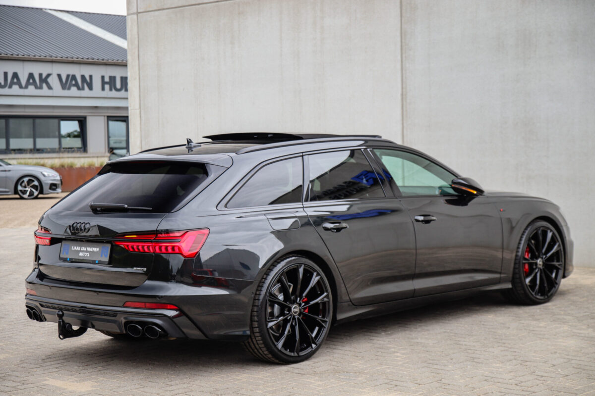 NIEUW MODEL | MODEL 2022 C8 | In uitmuntende staat verkerende Audi A6 Avant 55 TFSI e 270kw/367pk QUATTRO Competition S-Tronic Automaat Pro Line S S-Line! Afkomstig van 1e eigenaar en volledig Audi dealer onderhouden met een zeer interessante tellerstand van slechts 43.281 kilometer. Met een nieuwprijs ruim €95.000,- betreft dit een bijzonder royaal geconfigureerde Audi A6 welke voorzien is van onderscheidende opties, denk aan de prachtige Vesuv Grey metallic lak gecombineerd met het Zwart optiekpakket, de Elektrisch verstelbare geperforeerd lederen stoelen incl. massagefunctie + ventilatie, HD Matrix LED koplampen, de Virtual Cockpit en natuurlijk het Panoramisch glazen-/schuifkanteldak. Deze Audi biedt met de 367pk en 500Nm sterke 2.0 liter TFSI turbomotor, gekoppeld aan de Audi Quattro 4-wielaandrijving een trekvermogen van 2000kg. De getoonde 22inch Black Performance velgenset met 4x Hankook Ventus S1 EVO3 zomerbanden is tegen geringe meerprijs van €2595,- te verkrijgen.