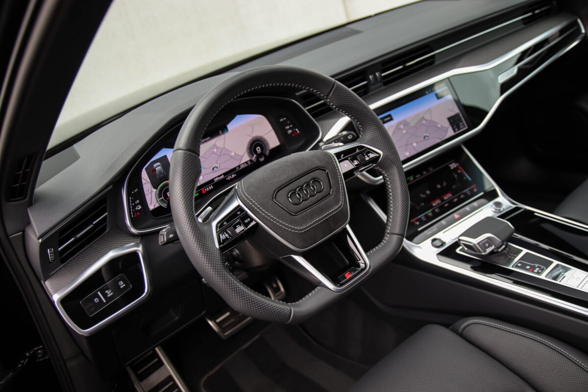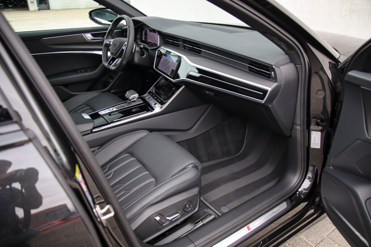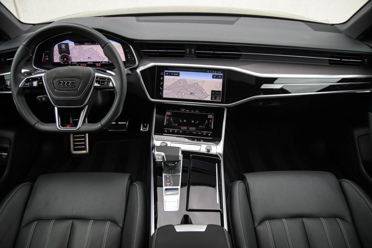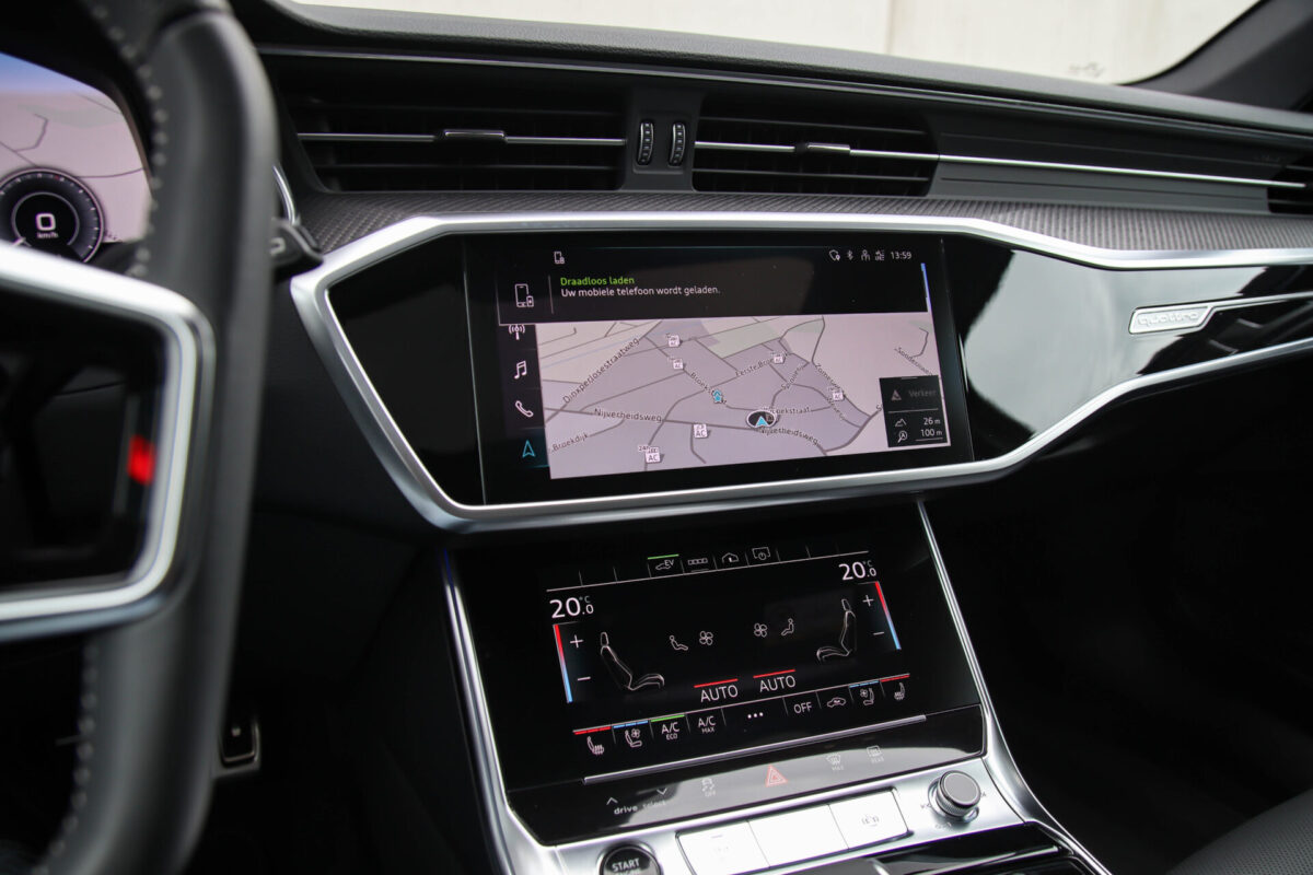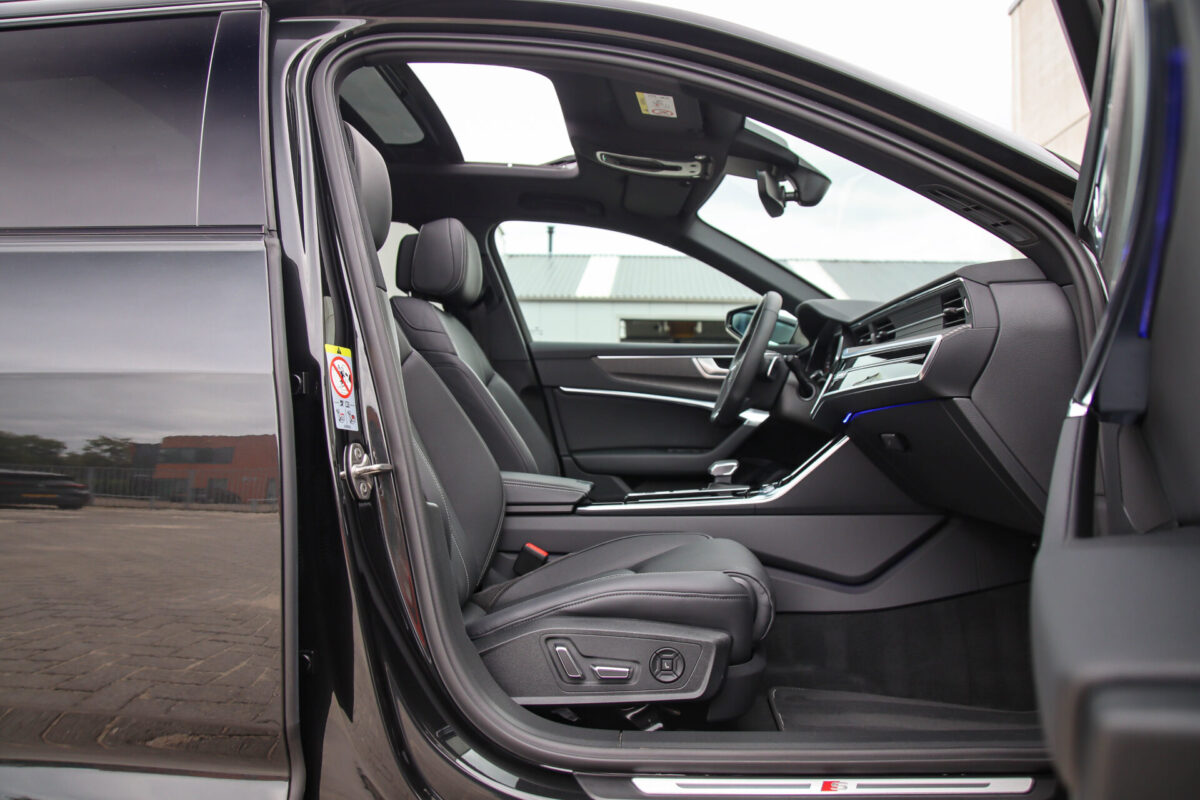 NIEUW MODEL | MODEL 2022 C8 | In uitmuntende staat verkerende Audi A6 Avant 55 TFSI e 270kw/367pk QUATTRO Competition S-Tronic Automaat Pro Line S S-Line! Afkomstig van 1e eigenaar en volledig Audi dealer onderhouden met een zeer interessante tellerstand van slechts 43.281 kilometer. Met een nieuwprijs ruim €95.000,- betreft dit een bijzonder royaal geconfigureerde Audi A6 welke voorzien is van onderscheidende opties, denk aan de prachtige Vesuv Grey metallic lak gecombineerd met het Zwart optiekpakket, de Elektrisch verstelbare geperforeerd lederen stoelen incl. massagefunctie + ventilatie, HD Matrix LED koplampen, de Virtual Cockpit en natuurlijk het Panoramisch glazen-/schuifkanteldak. Deze Audi biedt met de 367pk en 500Nm sterke 2.0 liter TFSI turbomotor, gekoppeld aan de Audi Quattro 4-wielaandrijving een trekvermogen van 2000kg. De getoonde 22inch Black Performance velgenset met 4x Hankook Ventus S1 EVO3 zomerbanden is tegen geringe meerprijs van €2595,- te verkrijgen.
