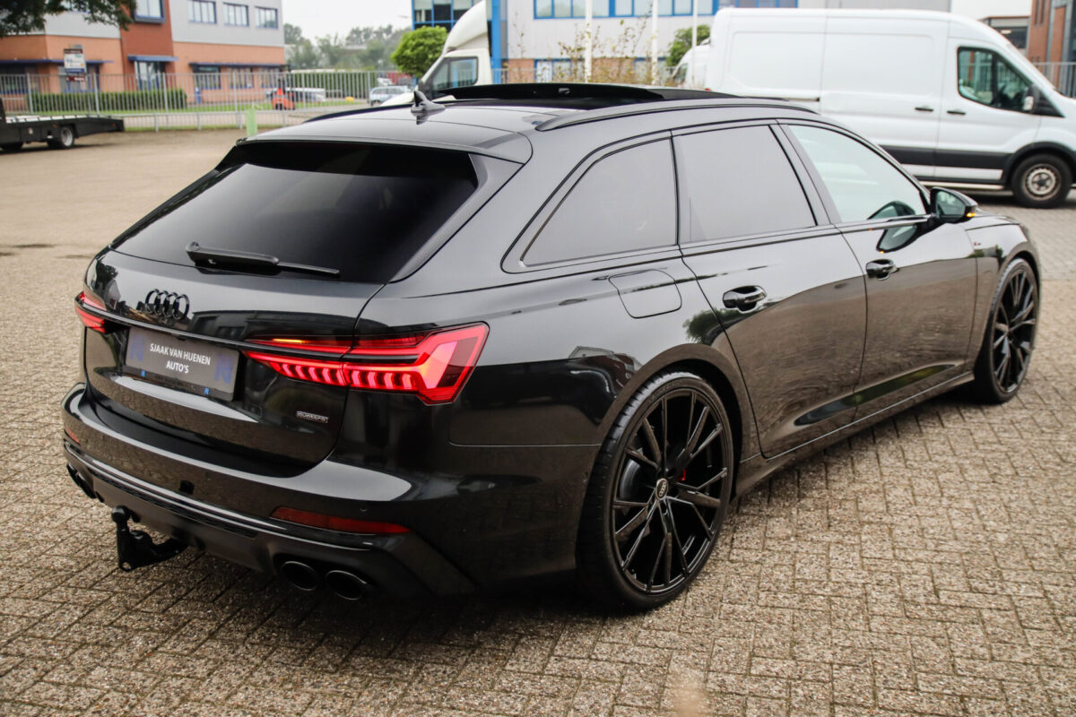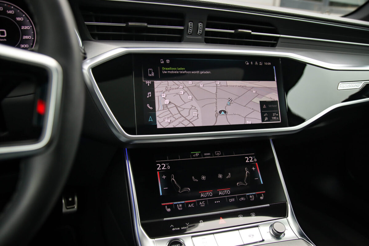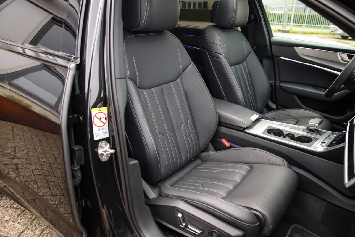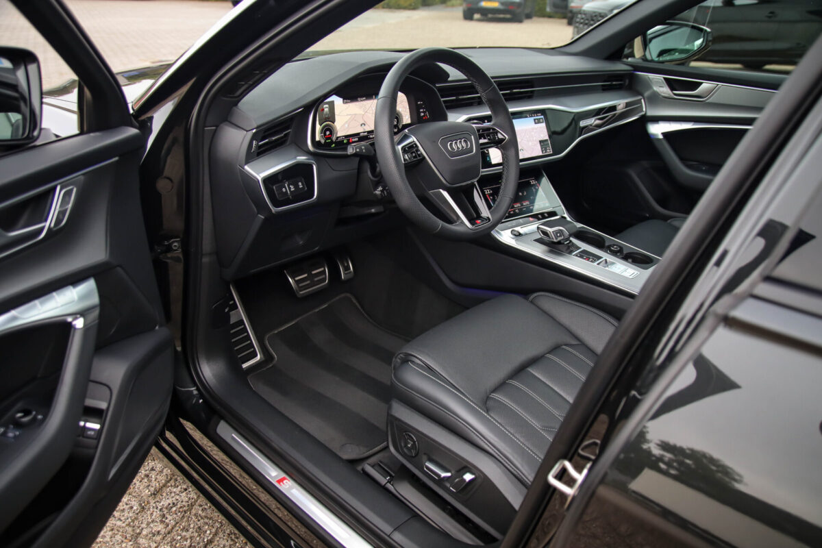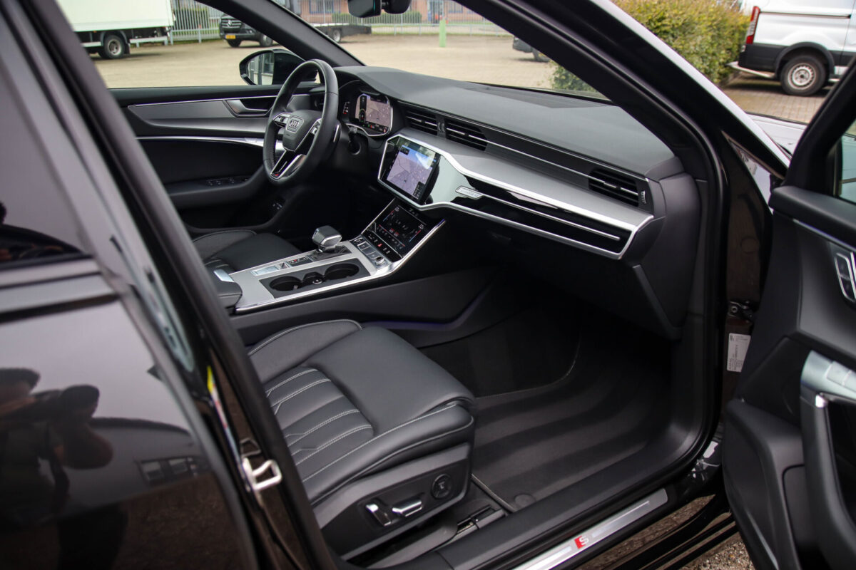 NIEUW MODEL | MODEL 2022 C8 | In prachtige staat verkerende Audi A6 Avant 55 TFSI e 270kw/367pk QUATTRO Competition S-Tronic Automaat Pro Line S S-Line! Afkomstig van 1e particuliere eigenaar en volledig Audi dealer onderhouden met een zeer interessante tellerstand van slechts 40.917 kilometer. Met een nieuwprijs van €100.000,- betreft dit een bijzonder royaal geconfigureerde Audi A6 welke voorzien is van onderscheidende opties, denk aan de prachtige Vesuv Grey metallic lak gecombineerd met het Zwart optiekpakket, de Elektrisch verstelbare geperforeerd lederen stoelen incl. massagefunctie + ventilatie, HD Matrix LED koplampen, de Virtual Cockpit en natuurlijk het Panoramisch glazen-/schuifkanteldak. Deze Audi biedt met de 367pk en 500Nm sterke 2.0 liter TFSI turbomotor, gekoppeld aan de Audi Quattro 4-wielaandrijving een trekvermogen van 2000kg. De getoonde 22inch Black Performance velgenset met 4x Hankook Ventus S1 EVO3 zomerbanden is tegen geringe meerprijs van €2595,- te verkrijgen.