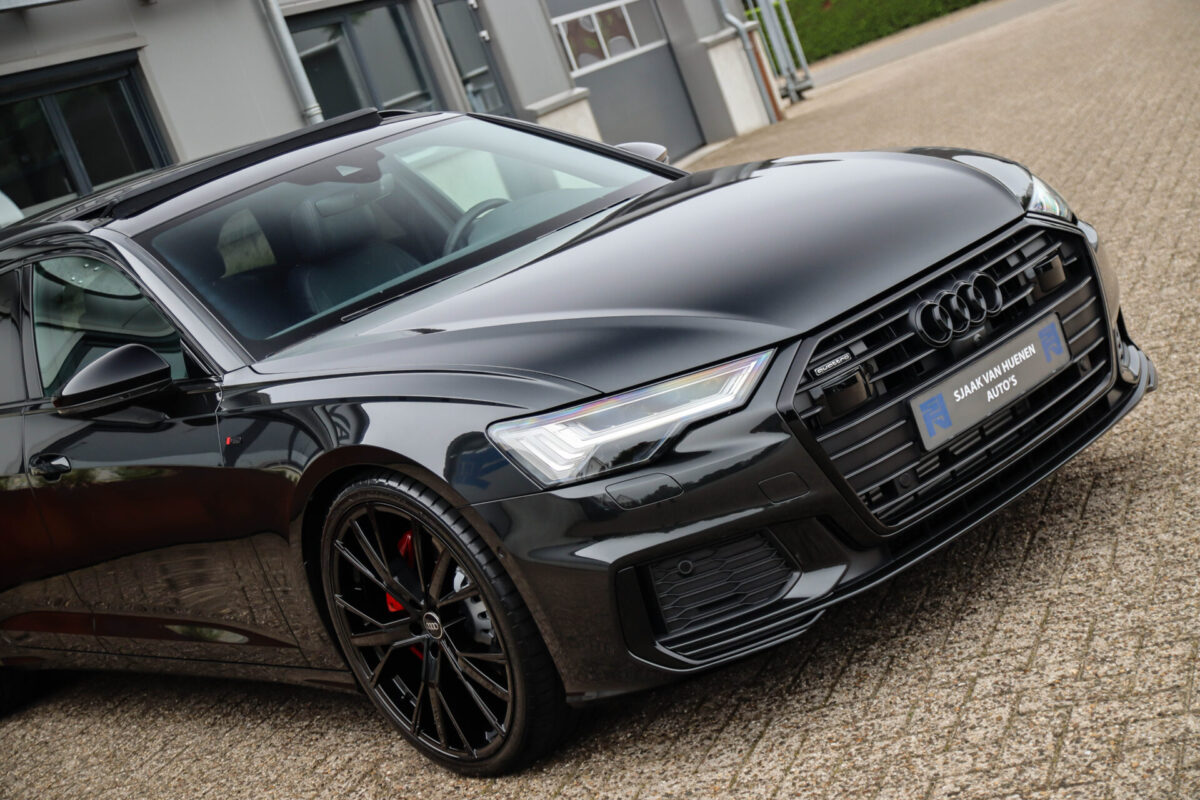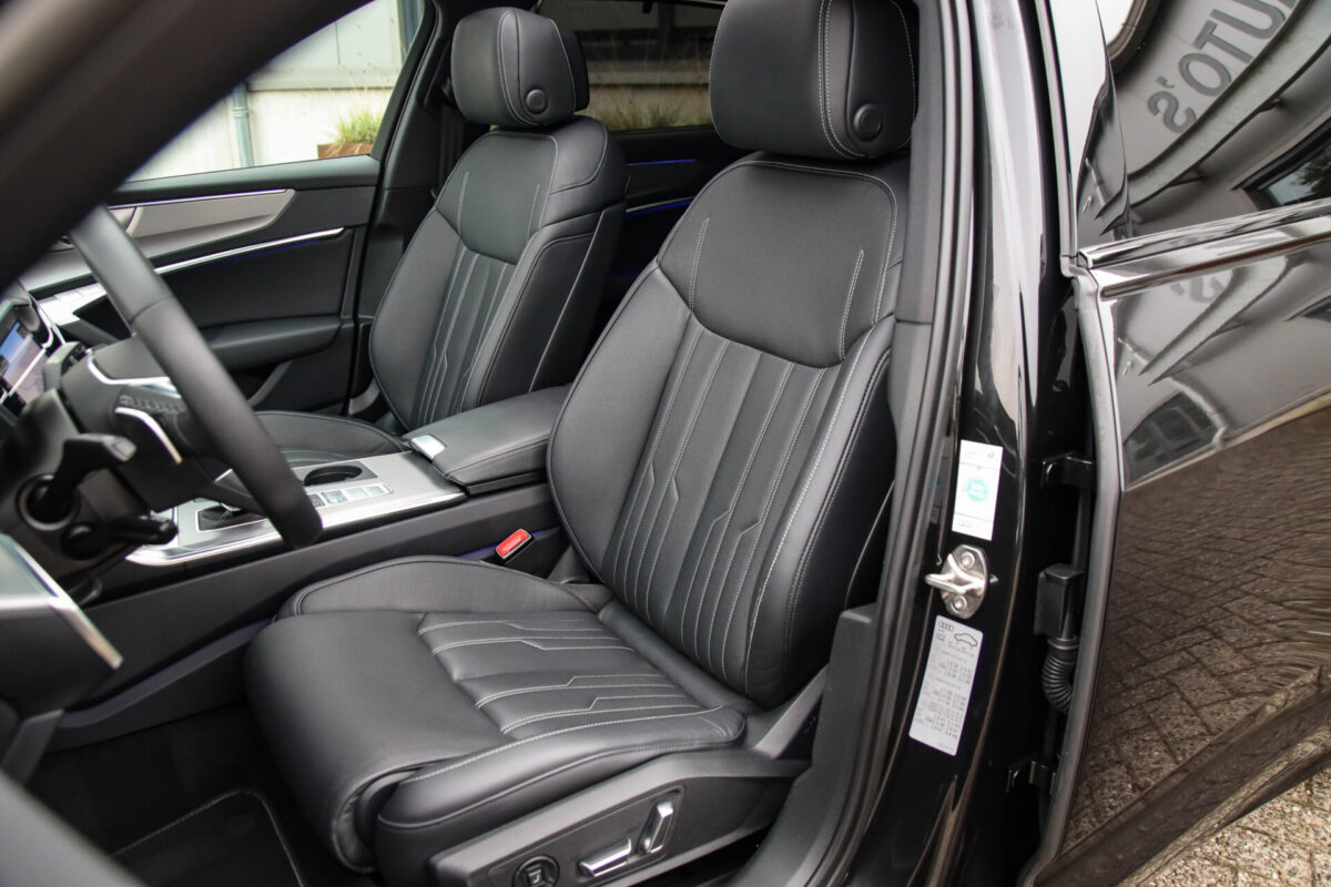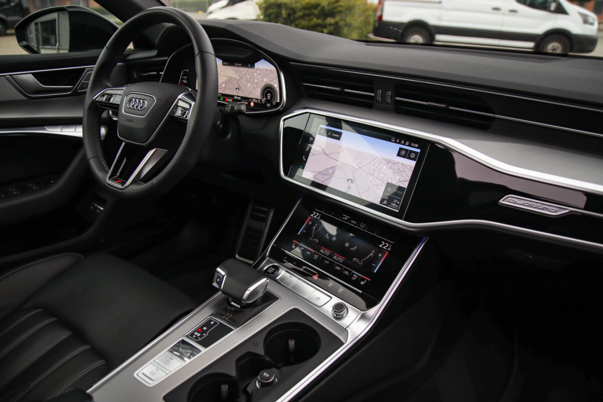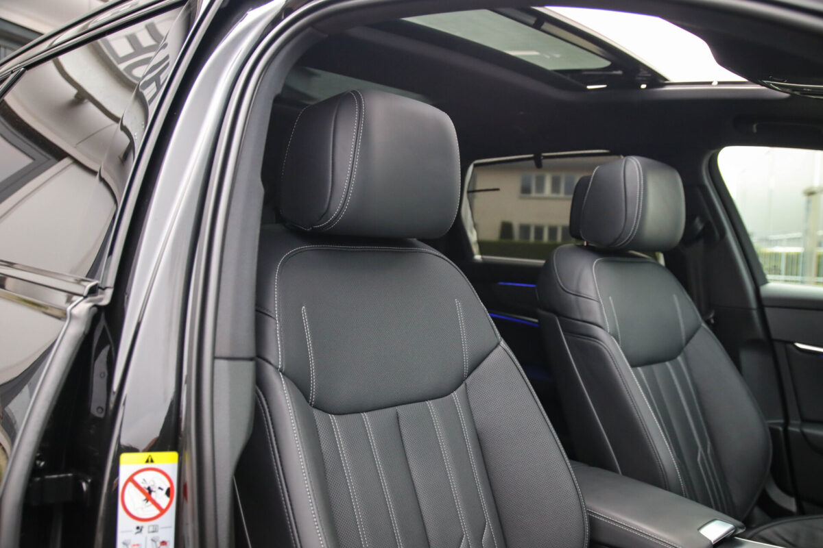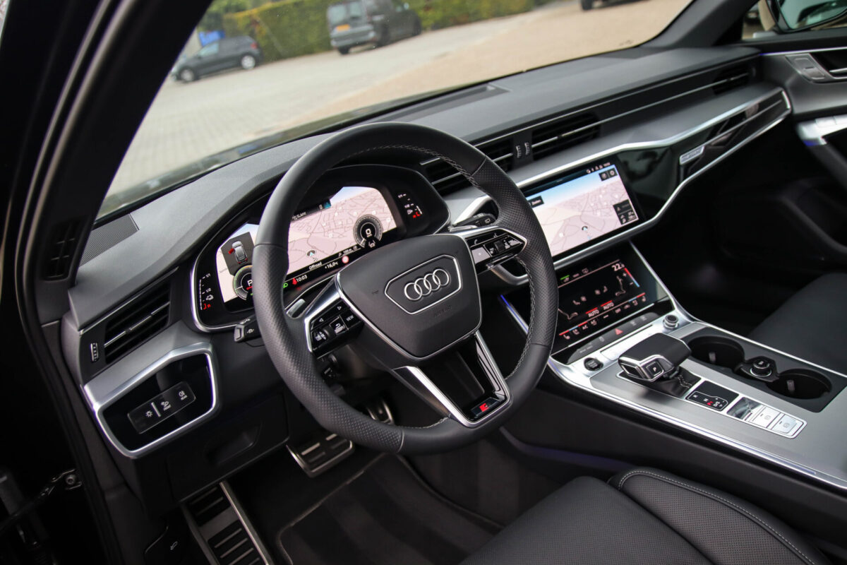 NIEUW MODEL | MODEL 2022 C8 | In prachtige staat verkerende Audi A6 Avant 55 TFSI e 270kw/367pk QUATTRO Competition S-Tronic Automaat Pro Line S S-Line! Afkomstig van 1e particuliere eigenaar en volledig Audi dealer onderhouden met een zeer interessante tellerstand van slechts 40.917 kilometer. Met een nieuwprijs van €100.000,- betreft dit een bijzonder royaal geconfigureerde Audi A6 welke voorzien is van onderscheidende opties, denk aan de prachtige Vesuv Grey metallic lak gecombineerd met het Zwart optiekpakket, de Elektrisch verstelbare geperforeerd lederen stoelen incl. massagefunctie + ventilatie, HD Matrix LED koplampen, de Virtual Cockpit en natuurlijk het Panoramisch glazen-/schuifkanteldak. Deze Audi biedt met de 367pk en 500Nm sterke 2.0 liter TFSI turbomotor, gekoppeld aan de Audi Quattro 4-wielaandrijving een trekvermogen van 2000kg. De getoonde 22inch Black Performance velgenset met 4x Hankook Ventus S1 EVO3 zomerbanden is tegen geringe meerprijs van €2595,- te verkrijgen.