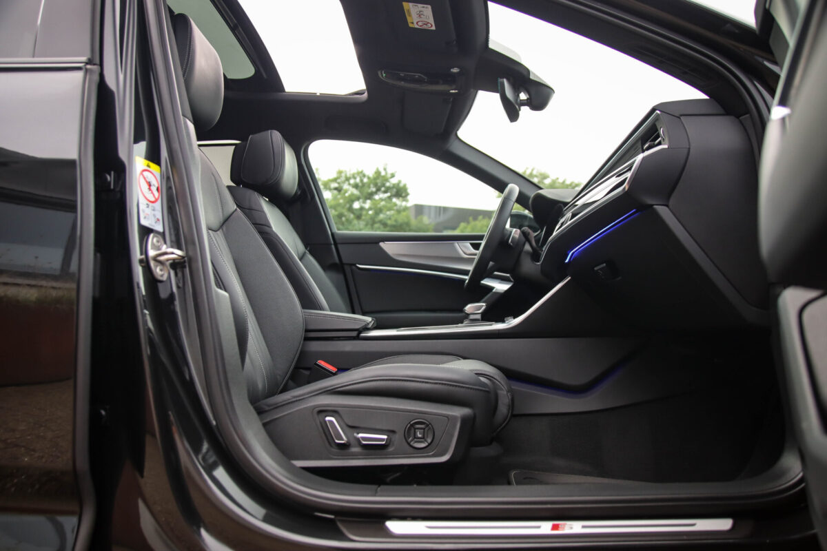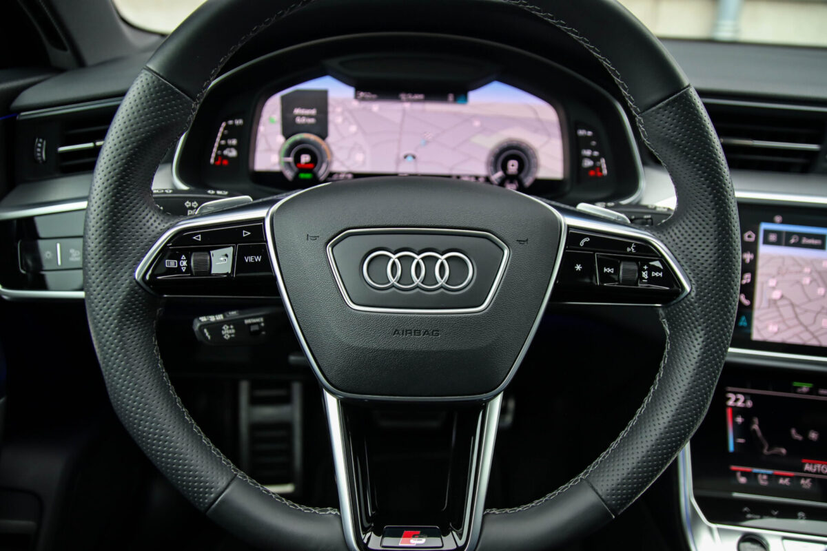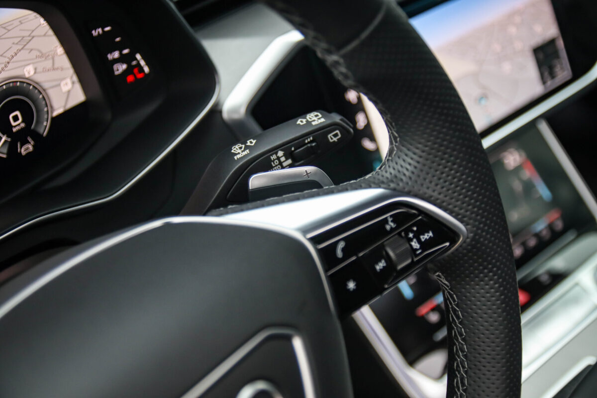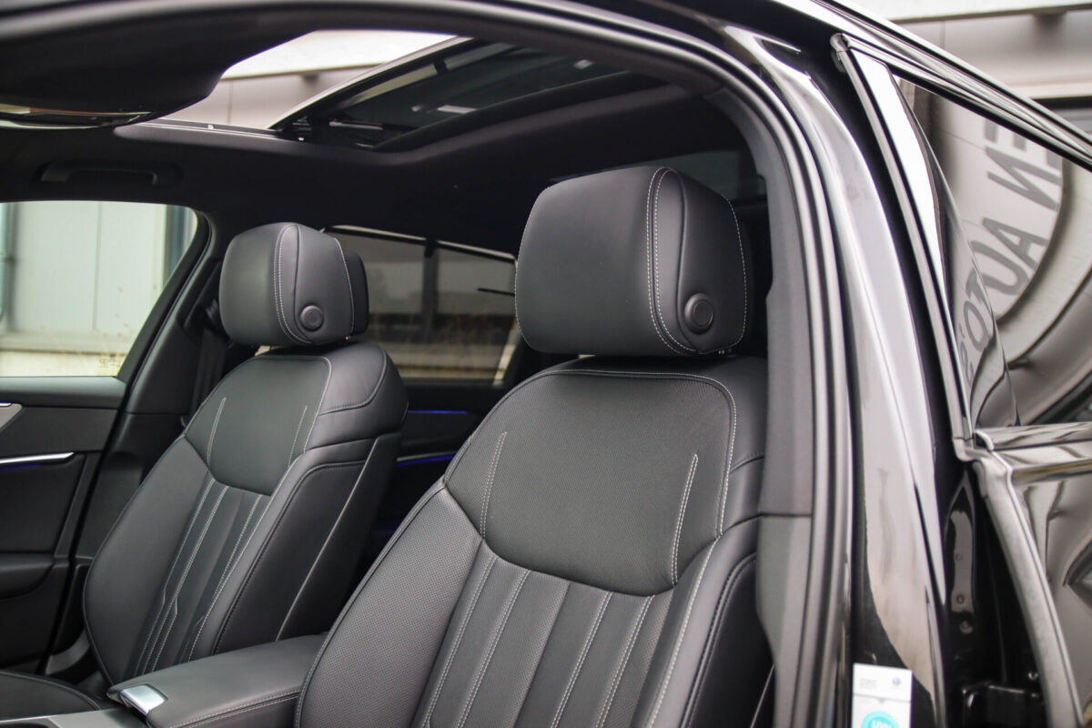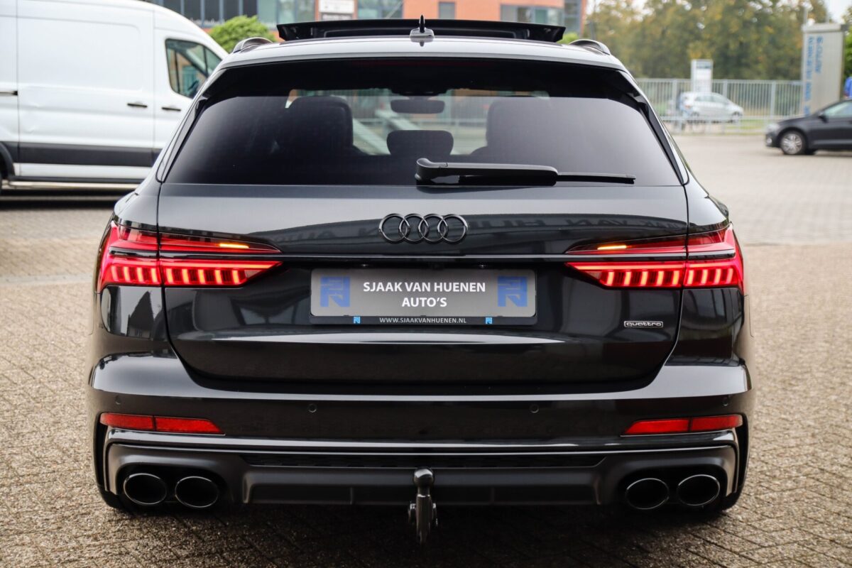 NIEUW MODEL | MODEL 2022 C8 | In prachtige staat verkerende Audi A6 Avant 55 TFSI e 270kw/367pk QUATTRO Competition S-Tronic Automaat Pro Line S S-Line! Afkomstig van 1e particuliere eigenaar en volledig Audi dealer onderhouden met een zeer interessante tellerstand van slechts 40.917 kilometer. Met een nieuwprijs van €100.000,- betreft dit een bijzonder royaal geconfigureerde Audi A6 welke voorzien is van onderscheidende opties, denk aan de prachtige Vesuv Grey metallic lak gecombineerd met het Zwart optiekpakket, de Elektrisch verstelbare geperforeerd lederen stoelen incl. massagefunctie + ventilatie, HD Matrix LED koplampen, de Virtual Cockpit en natuurlijk het Panoramisch glazen-/schuifkanteldak. Deze Audi biedt met de 367pk en 500Nm sterke 2.0 liter TFSI turbomotor, gekoppeld aan de Audi Quattro 4-wielaandrijving een trekvermogen van 2000kg. De getoonde 22inch Black Performance velgenset met 4x Hankook Ventus S1 EVO3 zomerbanden is tegen geringe meerprijs van €2595,- te verkrijgen.