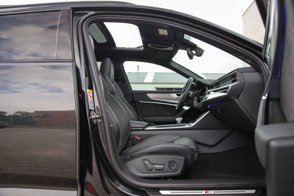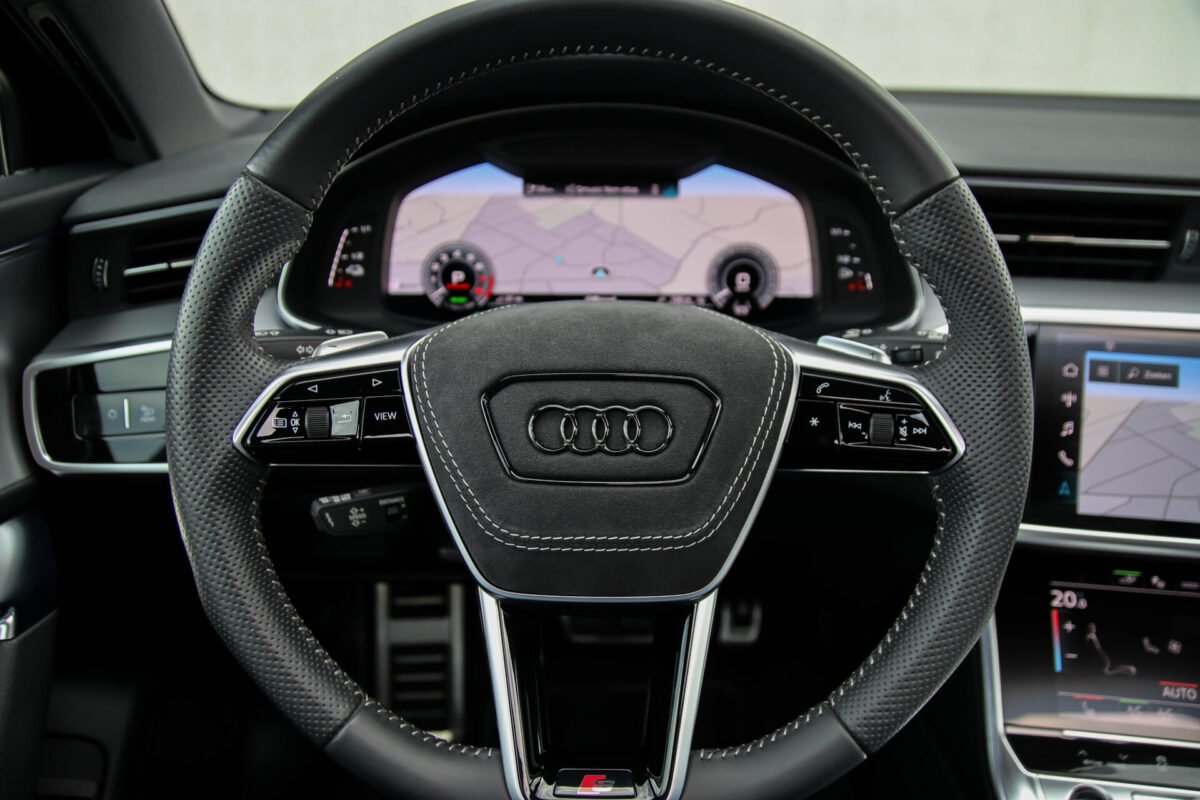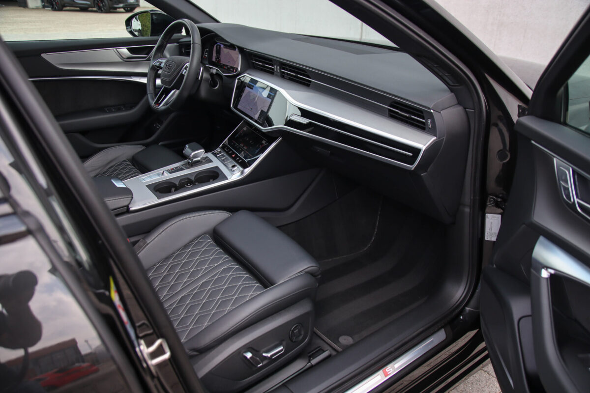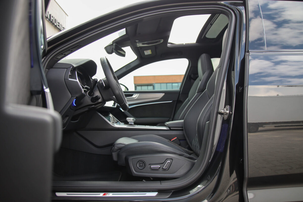 NIEUW MODEL | MODEL 2022 C8 | In uitmuntende staat verkerende Audi A6 Avant 55 TFSI e 270kw/367pk QUATTRO Competition S-Tronic Automaat Pro Line S S-Line! Afkomstig van 1e eigenaar en volledig Audi dealer onderhouden! Met een nieuwprijs van bijna €90.000,- betreft dit een bijzonder royaal geconfigureerde Audi A6 welke voorzien is van fantastische fabrieksopties, denk aan de prachtige Vesuv Grey metallic lak gecombineerd met het Zwart optiekpakket, de Valcona lederen Supersport schaalstoelen incl. Diamond Cross stitching, LED Matrix koplampen, de Virtual Cockpit en natuurlijk het Panoramisch glazen-/schuifkanteldak. Deze Audi biedt met de 367pk en 500Nm sterke 2.0 liter TFSI turbomotor, gekoppeld aan de Audi Quattro 4-wielaandrijving een trekvermogen van 2000kg. Het betreft een BTW-auto, dus voor zowel de zakelijke als particuliere klant interessant. De getoonde 22inch Black Performance velgenset met 4x Hankook Ventus S1 EVO3 zomerbanden is tegen geringe meerprijs van €2595,- te verkrijgen.