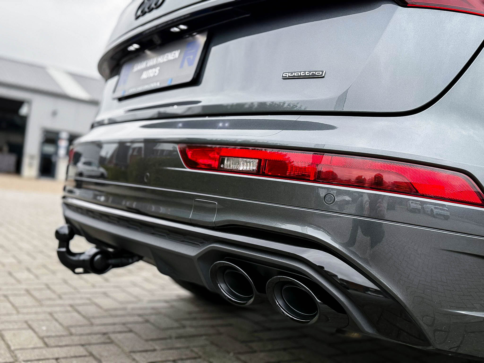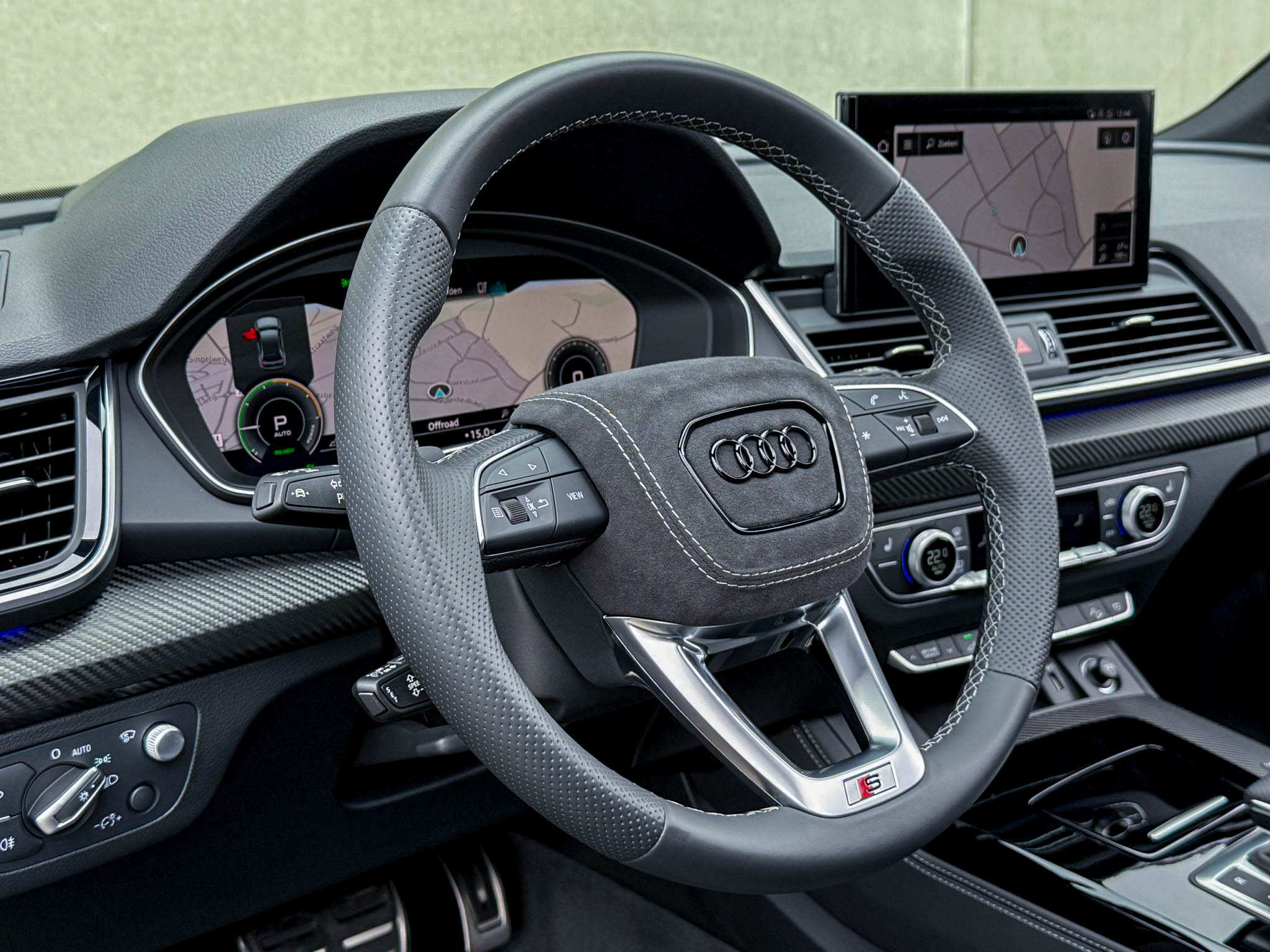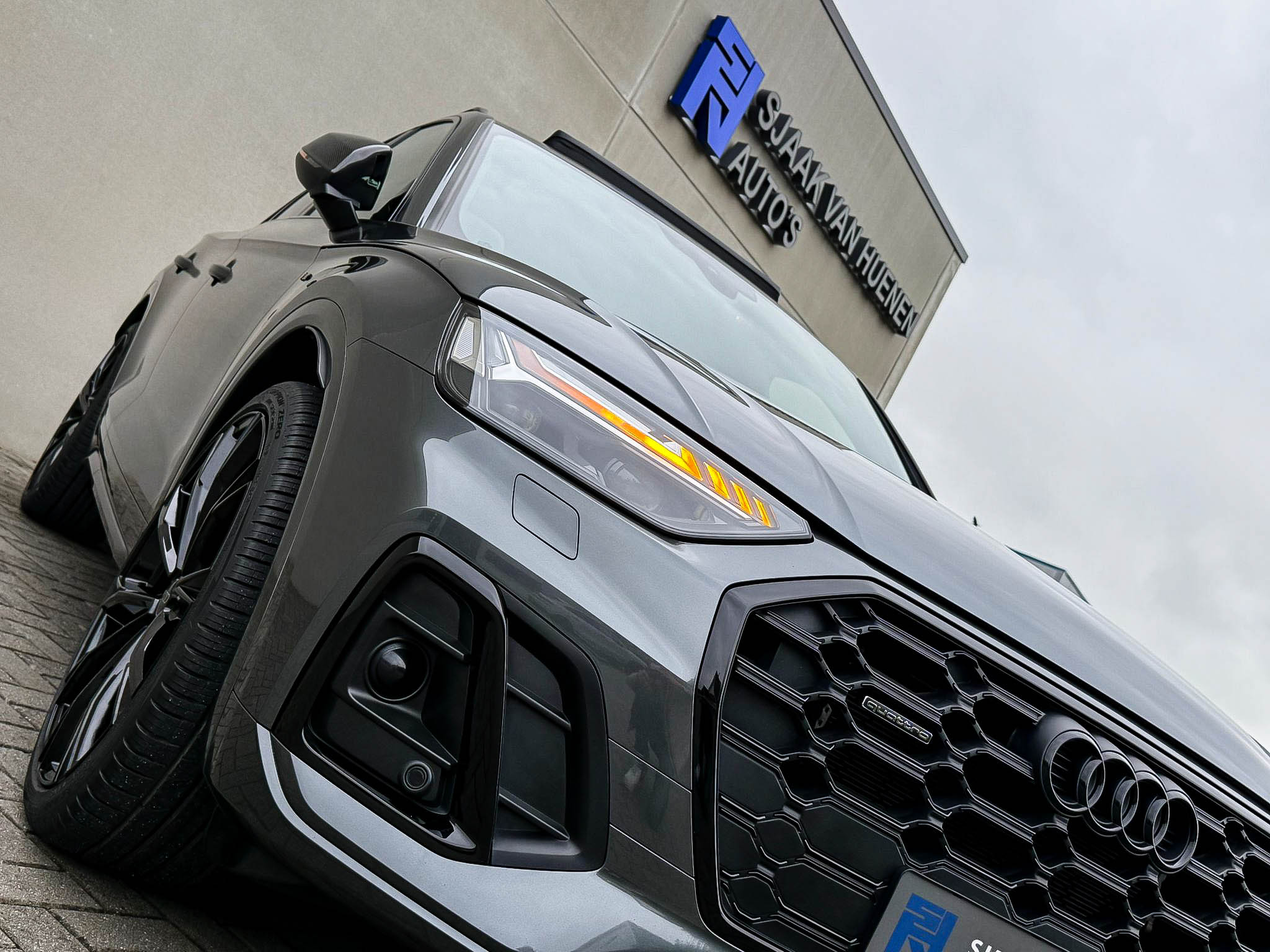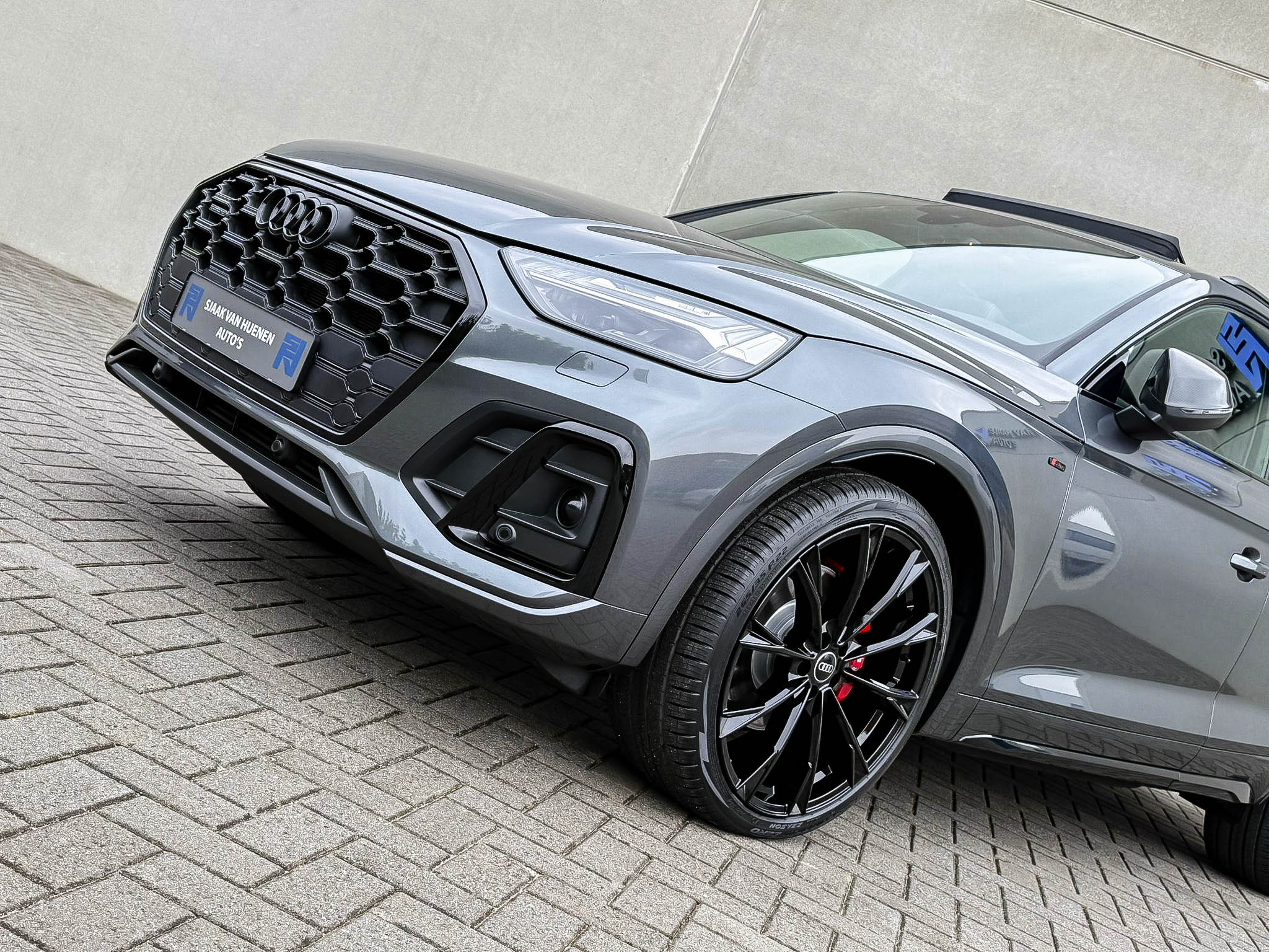 NIEUW MODEL | MODEL 2022! Een in nieuwstaat verkerende Audi Q5 50 TFSI e 220kw/299pk Quattro Competition S-Tronic Automaat Pro Line S S-Line! Audi dealer afkomstig, van de 1e eigenaar met een bijzonder interessant gecontroleerde tellerstand van slechts 32.521km. In unieke en perfecte fabrieksconfiguratie; Daytona Grey parel lak gecombineerd met het Zwart optiekpakket, de comfortabele instelbare Luchtvering, de Elektrisch verstelbare zwart lederen/alcantara S-line sportstoelen incl. massage- & geheugenfunctie + Audi Exclusive Alcantara airbag, het Panoramisch glazen schuif-/kanteldak en natuurlijk de Audi Virtual Cockpit! Deze Audi biedt met de 299pk en 450Nm sterke 2.0 liter TFSI turbomotor, gekoppeld aan de Audi Quattro 4-wielaandrijving een trekvermogen van 2000kg. Het betreft een BTW-auto, dus voor zowel de zakelijke als particuliere klant interessant. De getoonde 22inch Black Performance velgenset met 4x Pirelli Scorpion ZERO Allseason banden is tegen geringe meerprijs van €2595,- te verkrijgen.