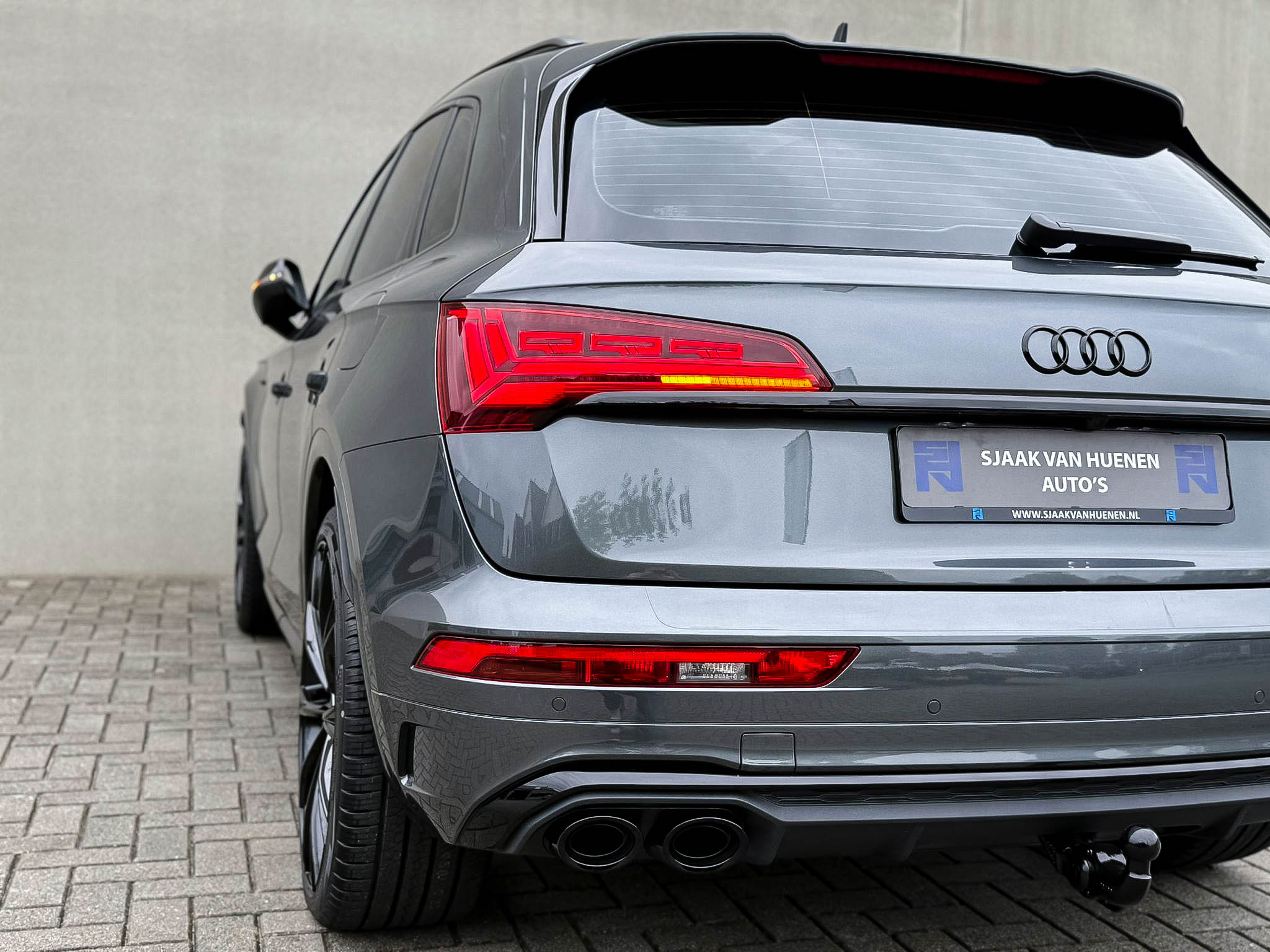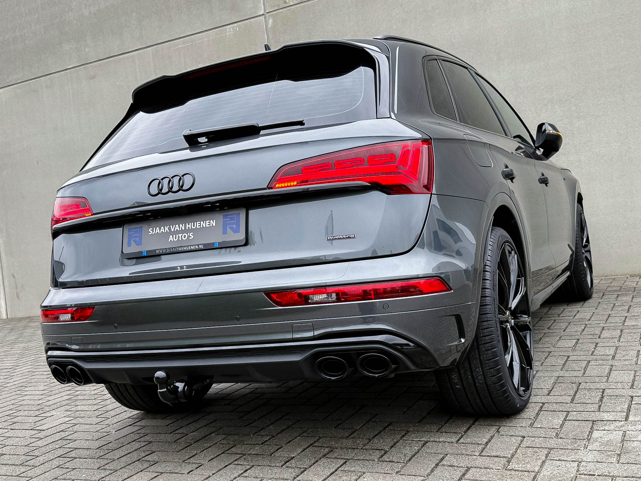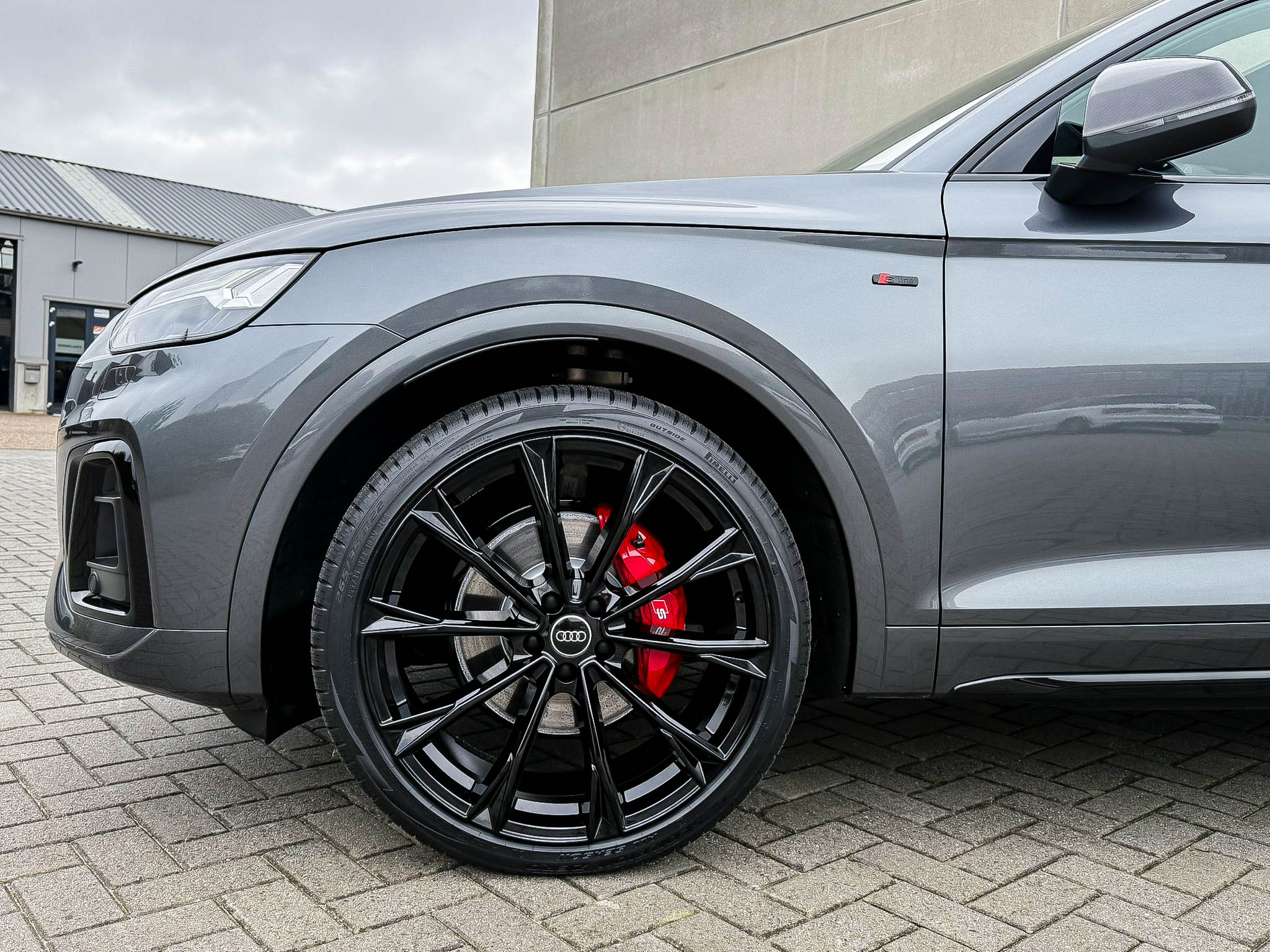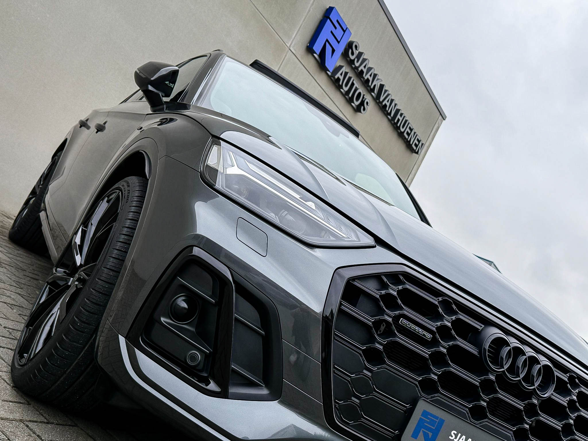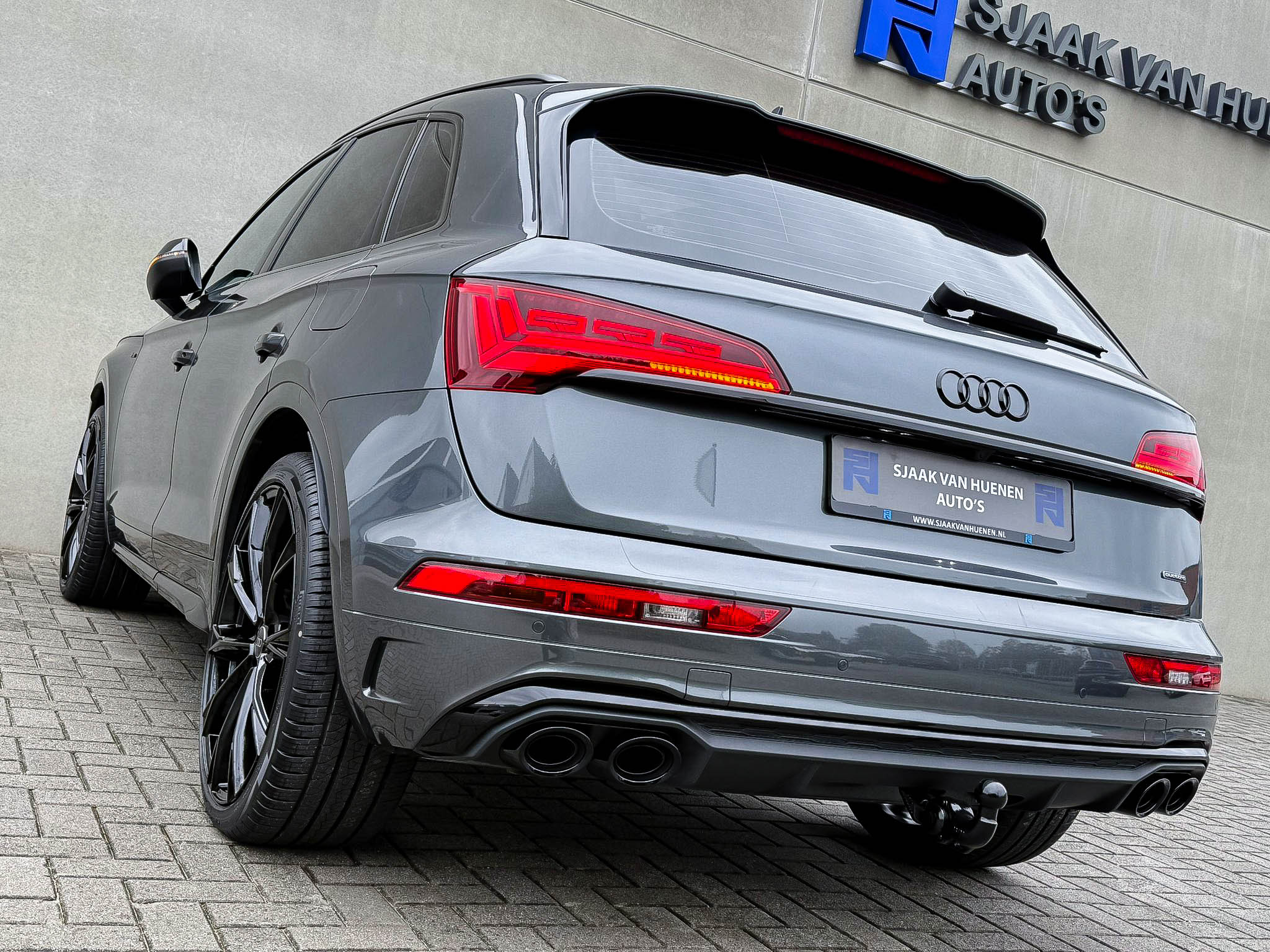 NIEUW MODEL | MODEL 2022! Een in nieuwstaat verkerende Audi Q5 50 TFSI e 220kw/299pk Quattro Competition S-Tronic Automaat Pro Line S S-Line! Audi dealer afkomstig, van de 1e eigenaar met een bijzonder interessant gecontroleerde tellerstand van slechts 32.521km. In unieke en perfecte fabrieksconfiguratie; Daytona Grey parel lak gecombineerd met het Zwart optiekpakket, de comfortabele instelbare Luchtvering, de Elektrisch verstelbare zwart lederen/alcantara S-line sportstoelen incl. massage- & geheugenfunctie + Audi Exclusive Alcantara airbag, het Panoramisch glazen schuif-/kanteldak en natuurlijk de Audi Virtual Cockpit! Deze Audi biedt met de 299pk en 450Nm sterke 2.0 liter TFSI turbomotor, gekoppeld aan de Audi Quattro 4-wielaandrijving een trekvermogen van 2000kg. Het betreft een BTW-auto, dus voor zowel de zakelijke als particuliere klant interessant. De getoonde 22inch Black Performance velgenset met 4x Pirelli Scorpion ZERO Allseason banden is tegen geringe meerprijs van €2595,- te verkrijgen.
