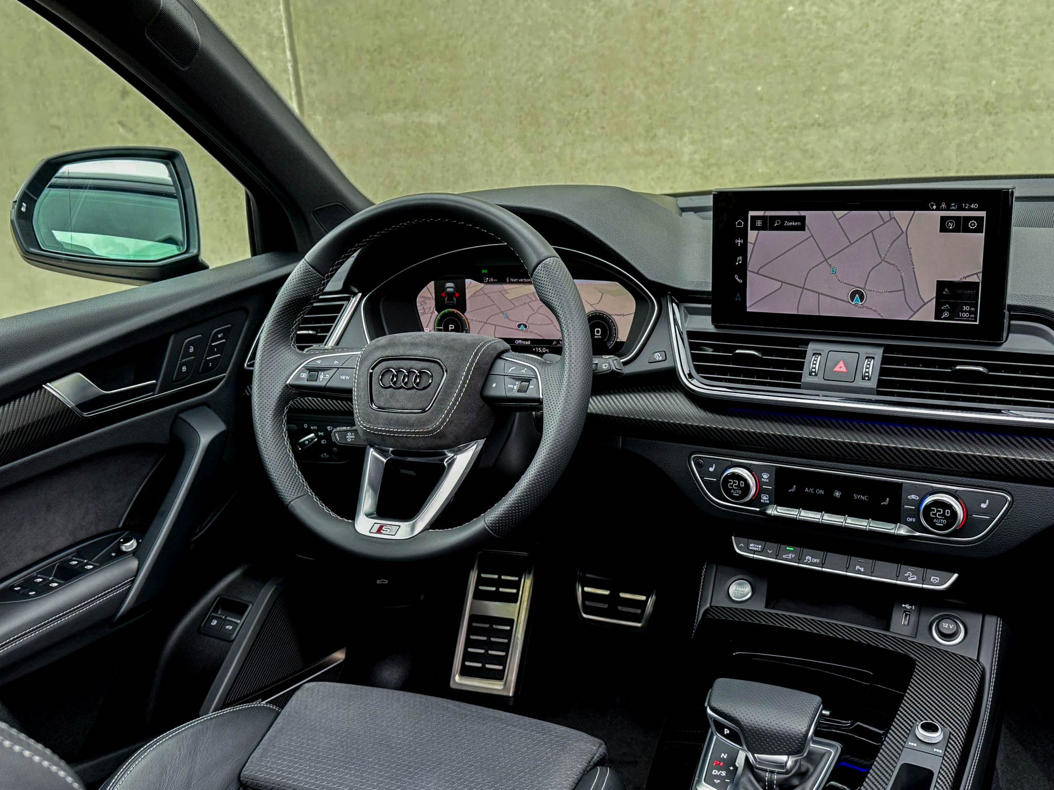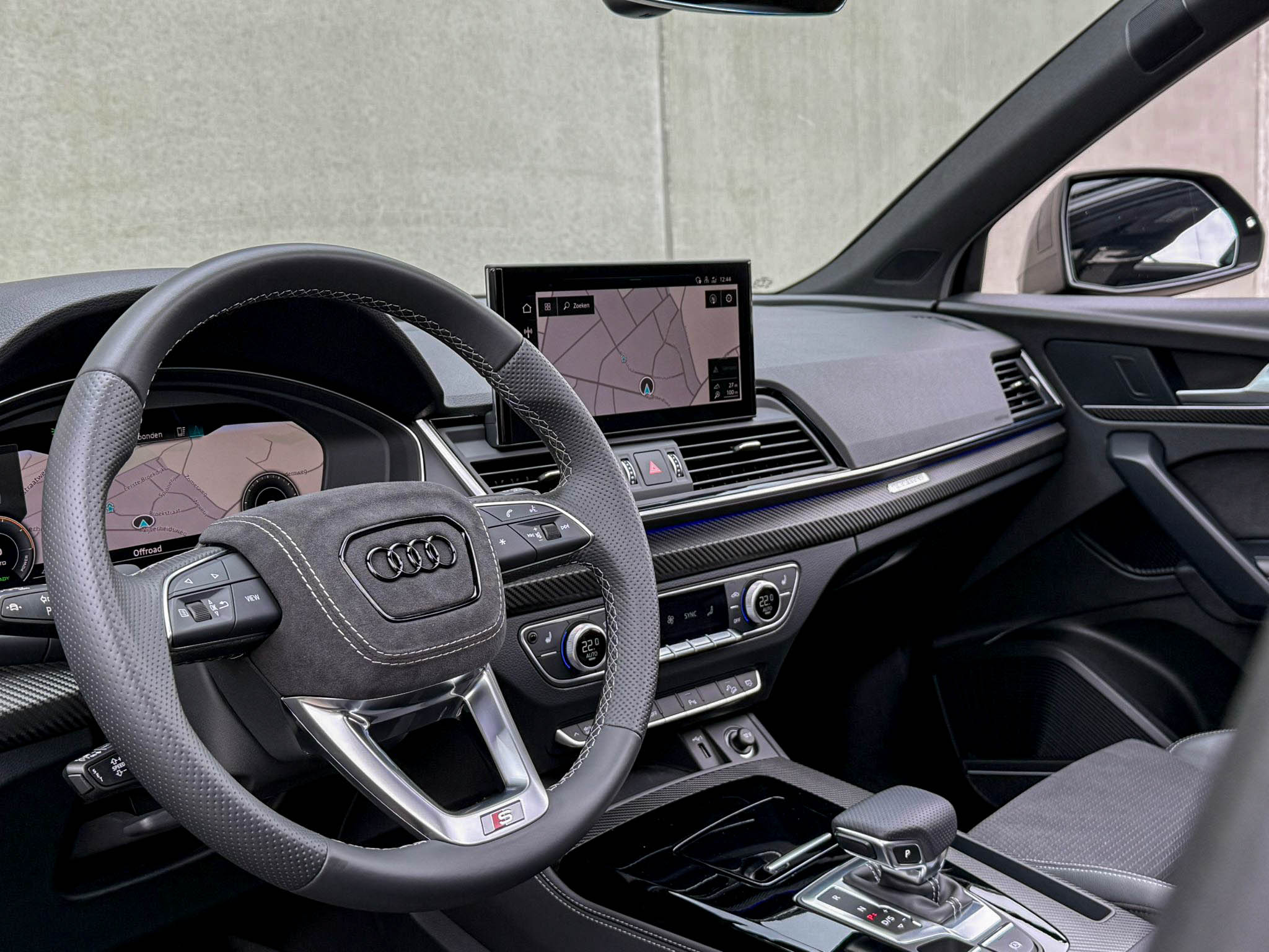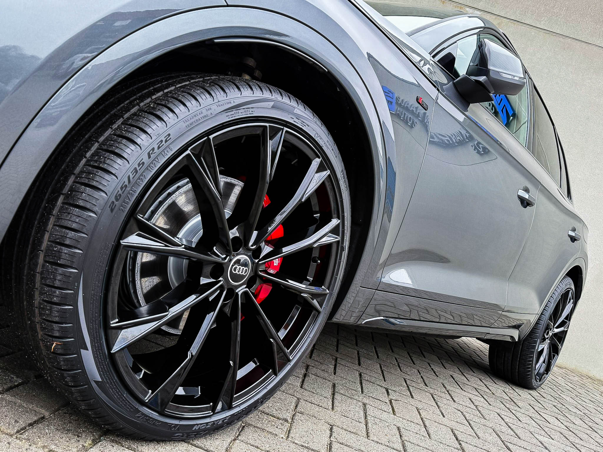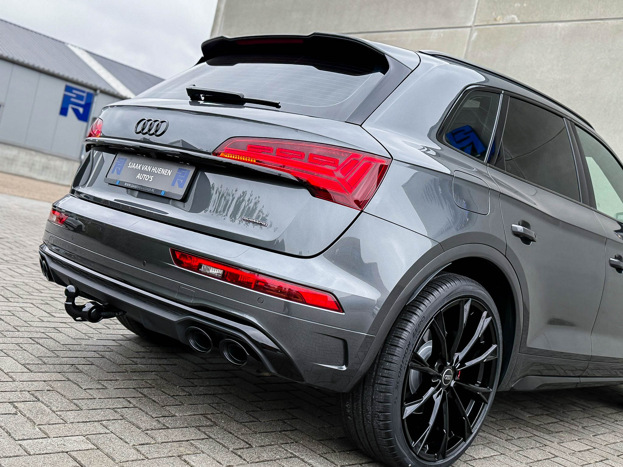 NIEUW MODEL | MODEL 2022! Een in nieuwstaat verkerende Audi Q5 50 TFSI e 220kw/299pk Quattro Competition S-Tronic Automaat Pro Line S S-Line! Audi dealer afkomstig, van de 1e eigenaar met een bijzonder interessant gecontroleerde tellerstand van slechts 32.521km. In unieke en perfecte fabrieksconfiguratie; Daytona Grey parel lak gecombineerd met het Zwart optiekpakket, de comfortabele instelbare Luchtvering, de Elektrisch verstelbare zwart lederen/alcantara S-line sportstoelen incl. massage- & geheugenfunctie + Audi Exclusive Alcantara airbag, het Panoramisch glazen schuif-/kanteldak en natuurlijk de Audi Virtual Cockpit! Deze Audi biedt met de 299pk en 450Nm sterke 2.0 liter TFSI turbomotor, gekoppeld aan de Audi Quattro 4-wielaandrijving een trekvermogen van 2000kg. Het betreft een BTW-auto, dus voor zowel de zakelijke als particuliere klant interessant. De getoonde 22inch Black Performance velgenset met 4x Pirelli Scorpion ZERO Allseason banden is tegen geringe meerprijs van €2595,- te verkrijgen.