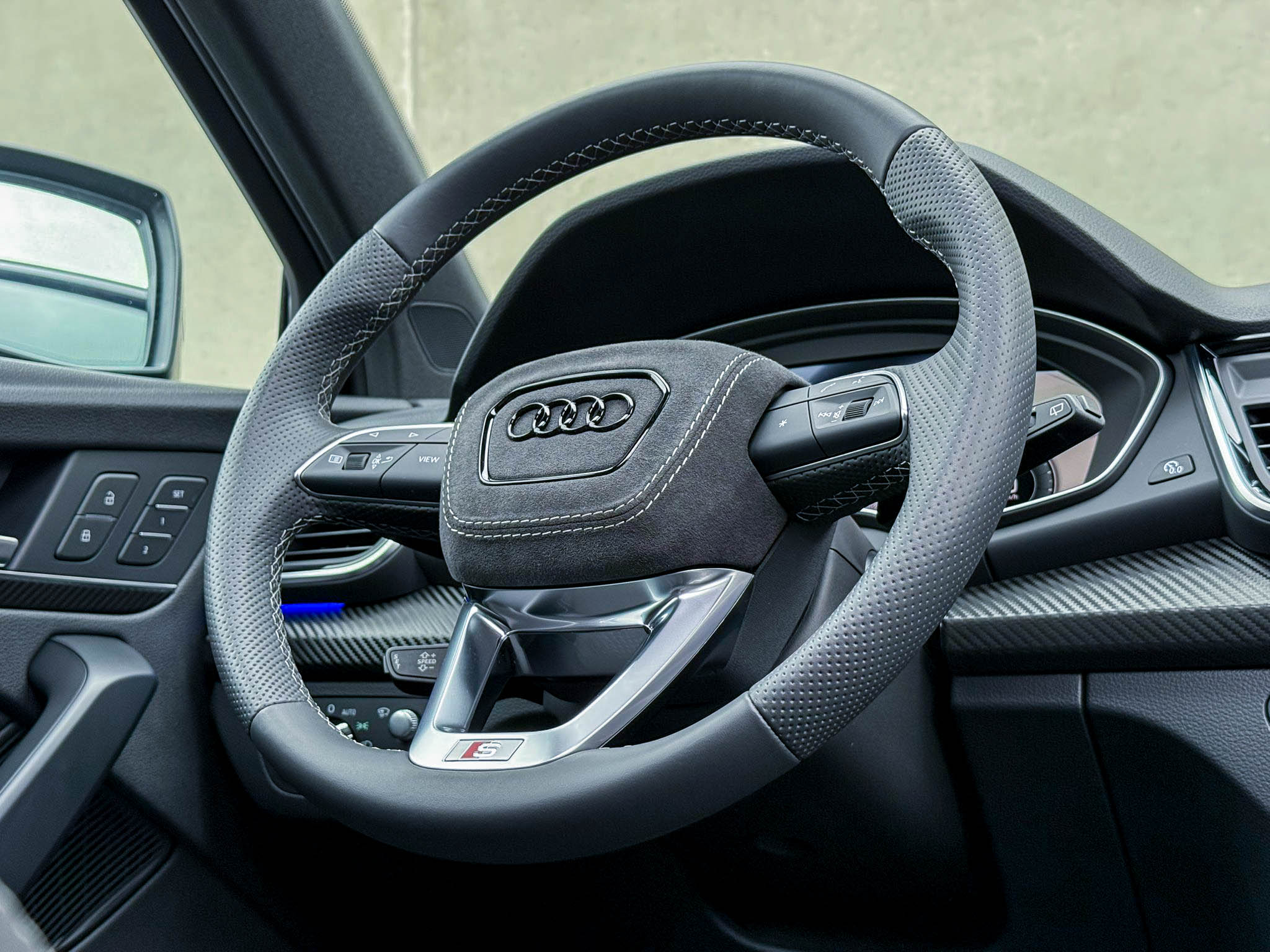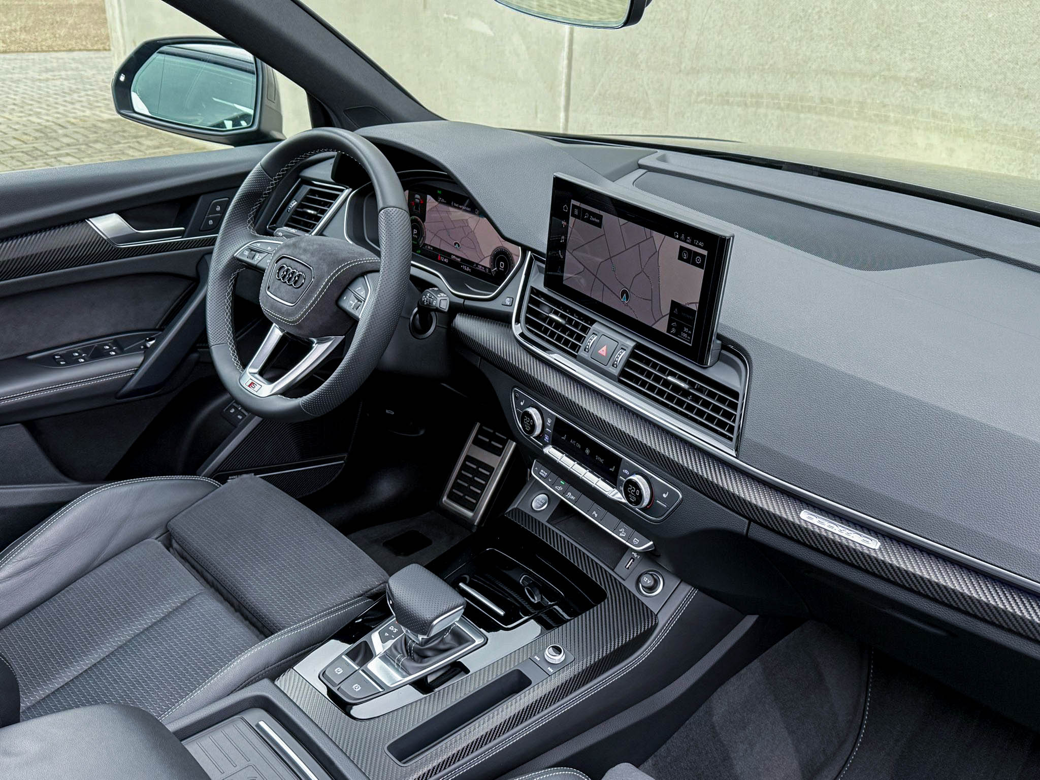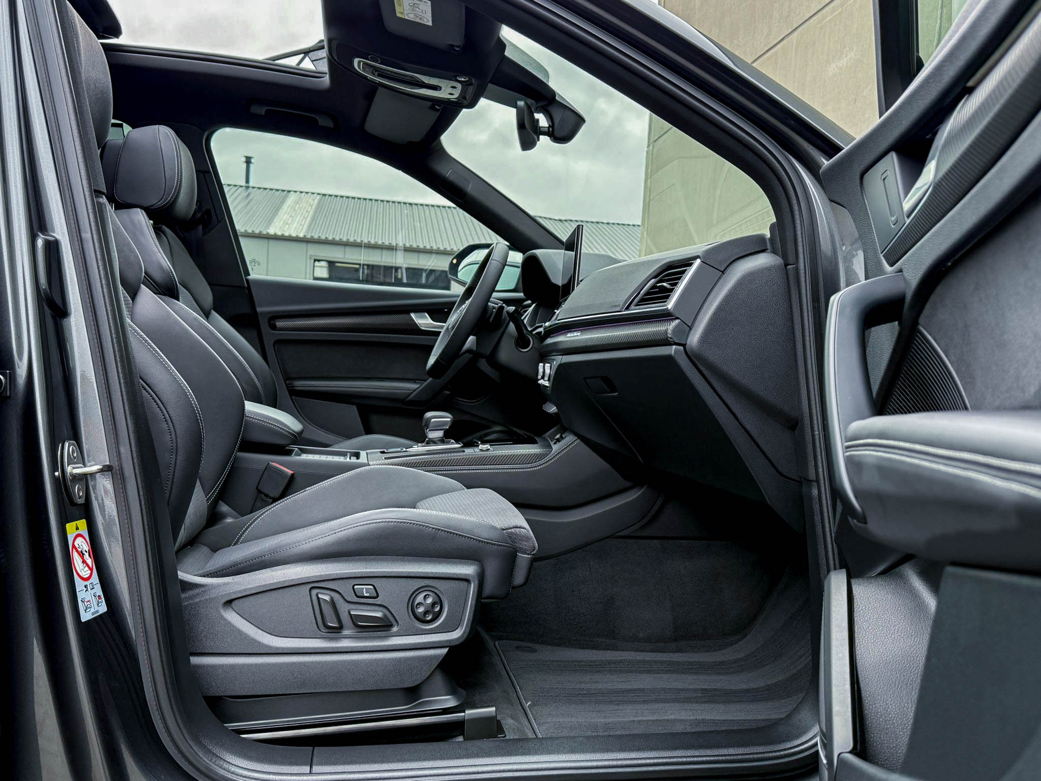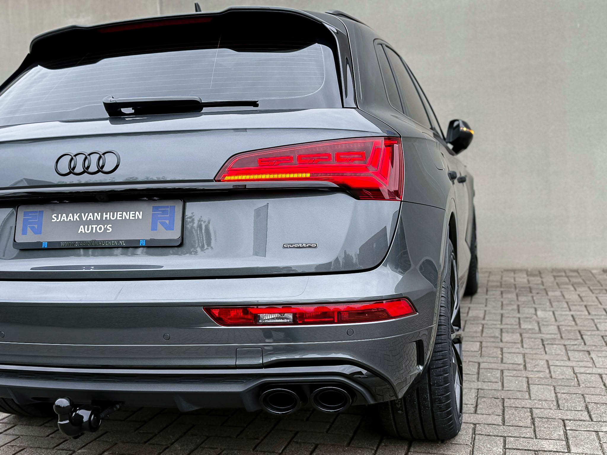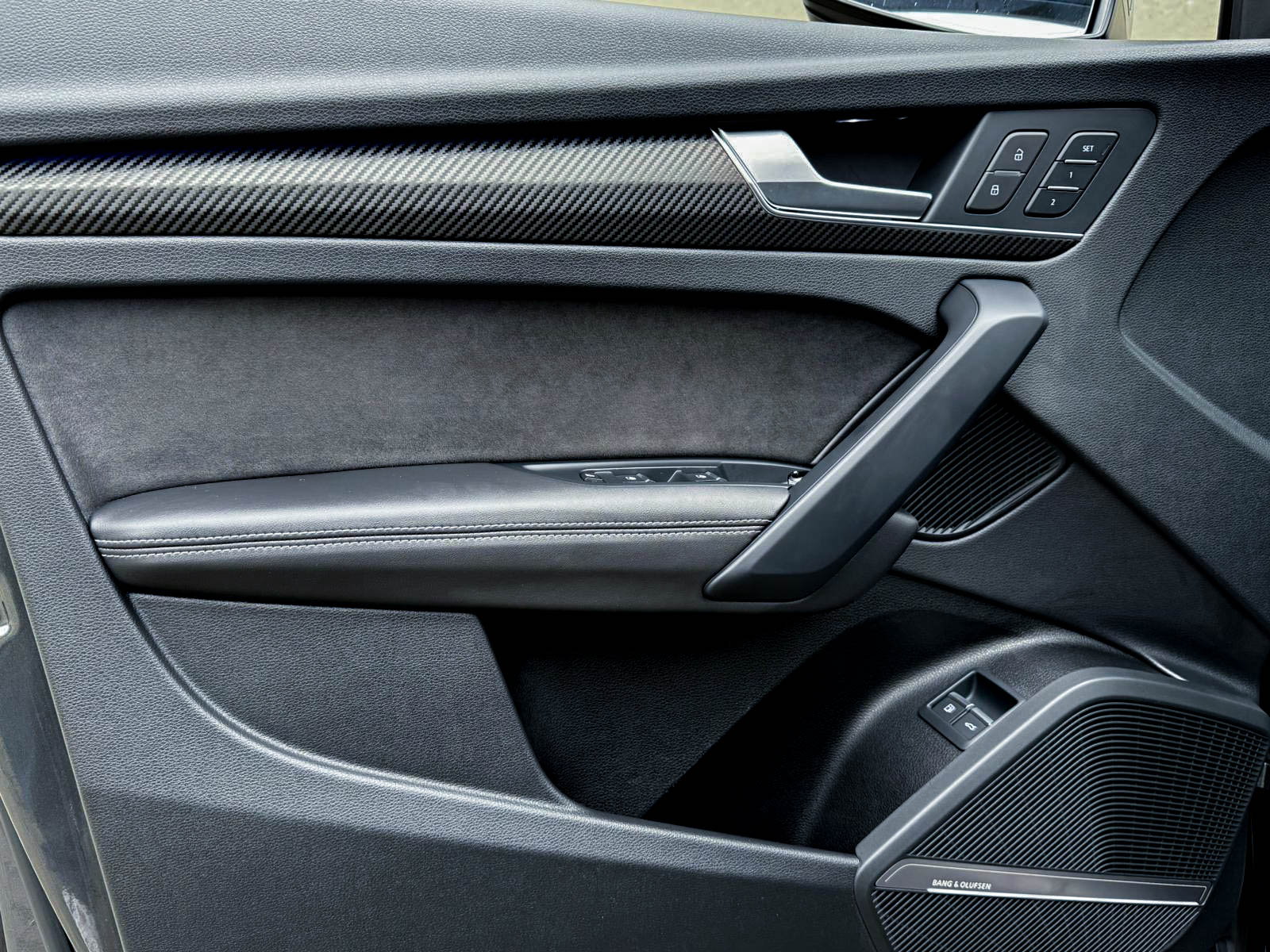 NIEUW MODEL | MODEL 2022! Een in nieuwstaat verkerende Audi Q5 50 TFSI e 220kw/299pk Quattro Competition S-Tronic Automaat Pro Line S S-Line! Audi dealer afkomstig, van de 1e eigenaar met een bijzonder interessant gecontroleerde tellerstand van slechts 32.521km. In unieke en perfecte fabrieksconfiguratie; Daytona Grey parel lak gecombineerd met het Zwart optiekpakket, de comfortabele instelbare Luchtvering, de Elektrisch verstelbare zwart lederen/alcantara S-line sportstoelen incl. massage- & geheugenfunctie + Audi Exclusive Alcantara airbag, het Panoramisch glazen schuif-/kanteldak en natuurlijk de Audi Virtual Cockpit! Deze Audi biedt met de 299pk en 450Nm sterke 2.0 liter TFSI turbomotor, gekoppeld aan de Audi Quattro 4-wielaandrijving een trekvermogen van 2000kg. Het betreft een BTW-auto, dus voor zowel de zakelijke als particuliere klant interessant. De getoonde 22inch Black Performance velgenset met 4x Pirelli Scorpion ZERO Allseason banden is tegen geringe meerprijs van €2595,- te verkrijgen.