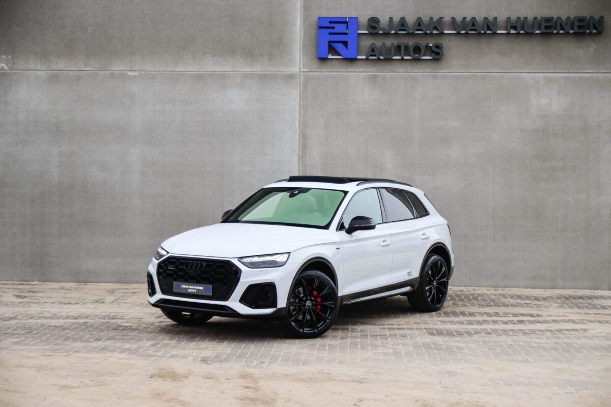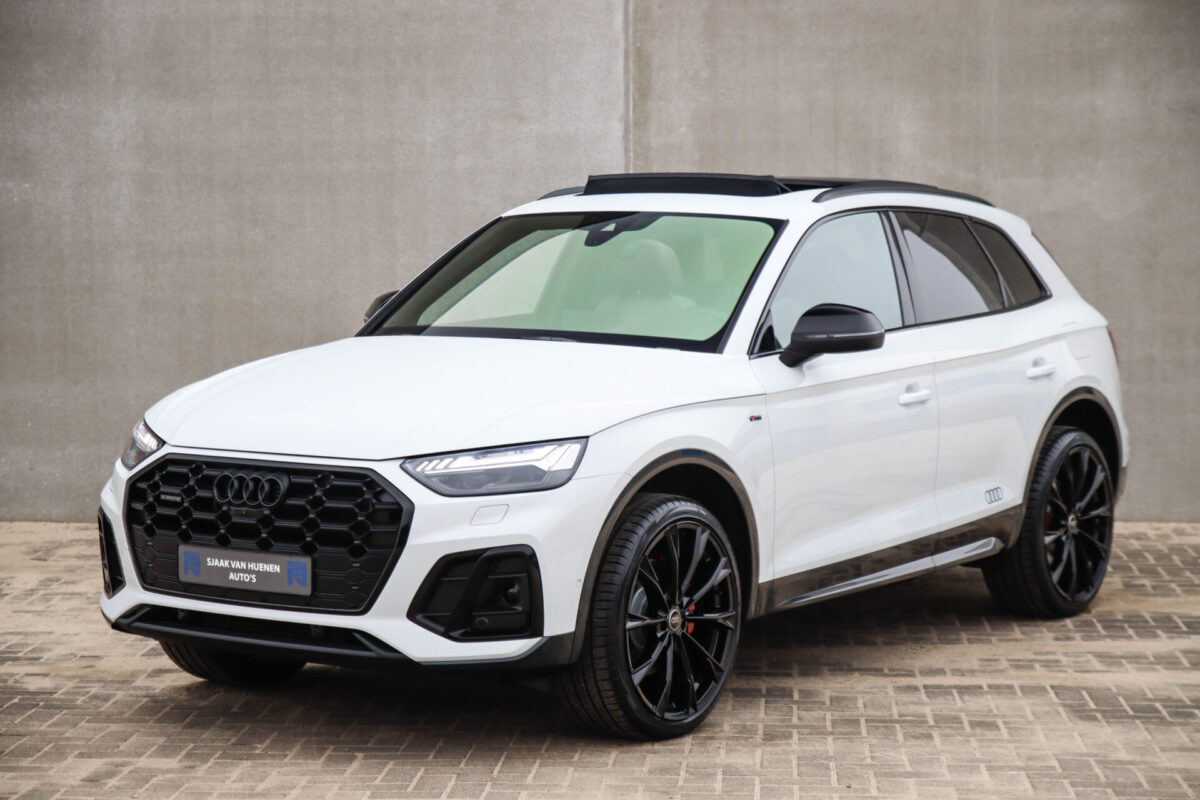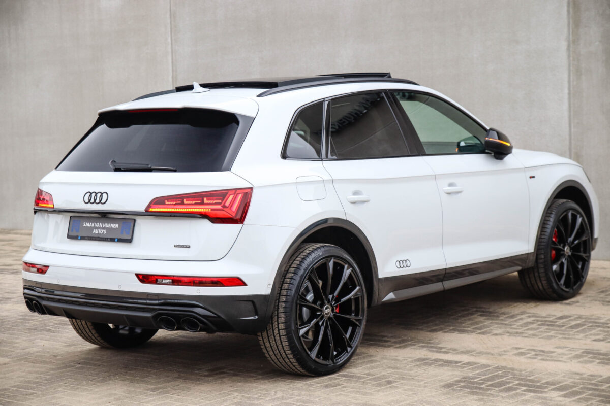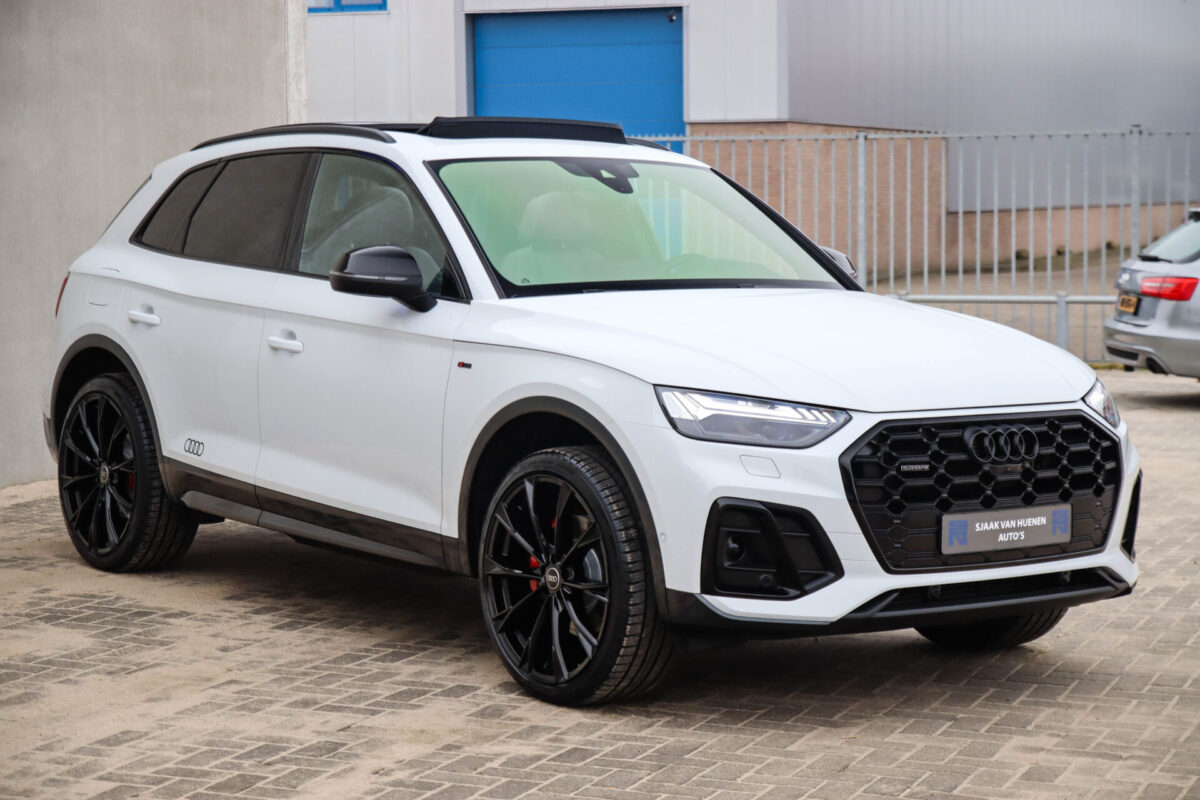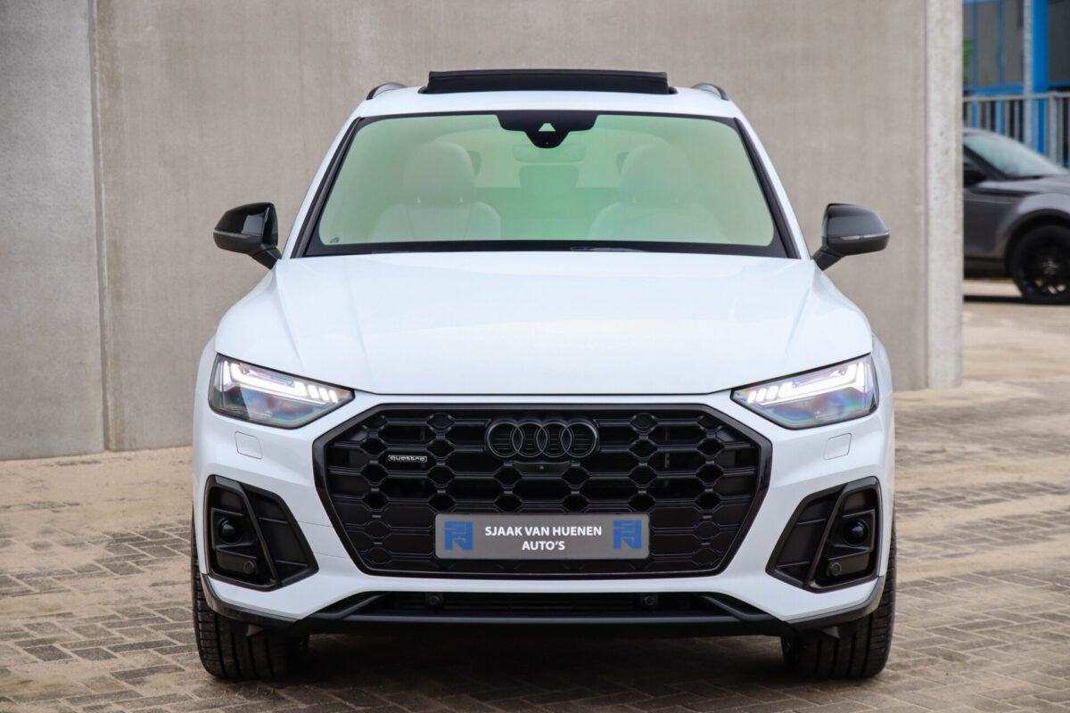 NIEUW MODEL | MODEL 2022! Een in prachtige staat verkerende Audi Q5 50 TFSI e 220kw/299pk Quattro Competition S-Tronic Automaat Pro Line S S-Line! Audi dealer afkomstig, van de 1e eigenaar met een zeer interessant gecontroleerde tellerstand van slechts 42.922km. In fraaie fabrieksconfiguratie; Gletsjer White parel lak gecombineerd met het Zwart optiekpakket, de lederen S kuipstoelen met Diamond Cross stitching + Audi Exclusive Alcantara airbag, het Panoramisch glazen schuif-/kanteldak en natuurlijk de Audi Virtual Cockpit! Deze Audi biedt met de 299pk en 450Nm sterke 2.0 liter TFSI turbomotor, gekoppeld aan de Audi Quattro 4-wielaandrijving een trekvermogen van 2000kg. Het betreft een BTW-auto, dus voor zowel de zakelijke als particuliere klant interessant. De getoonde 22inch Black Performance velgenset met 4x Pirelli Scorpion ZERO Allseason banden is tegen geringe meerprijs van €2595,- te verkrijgen.