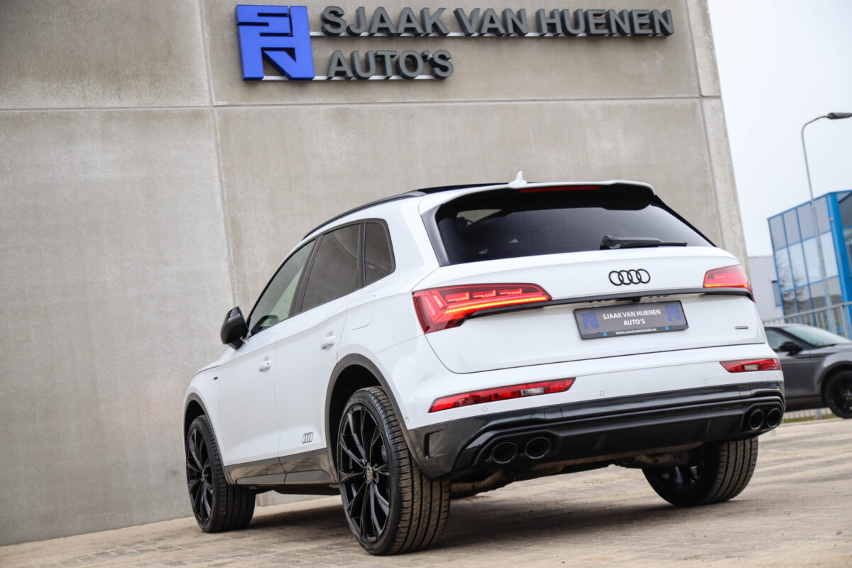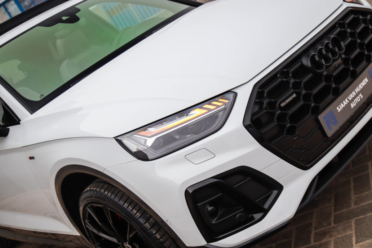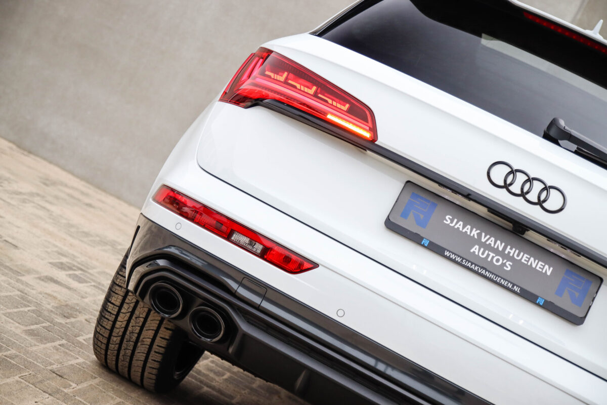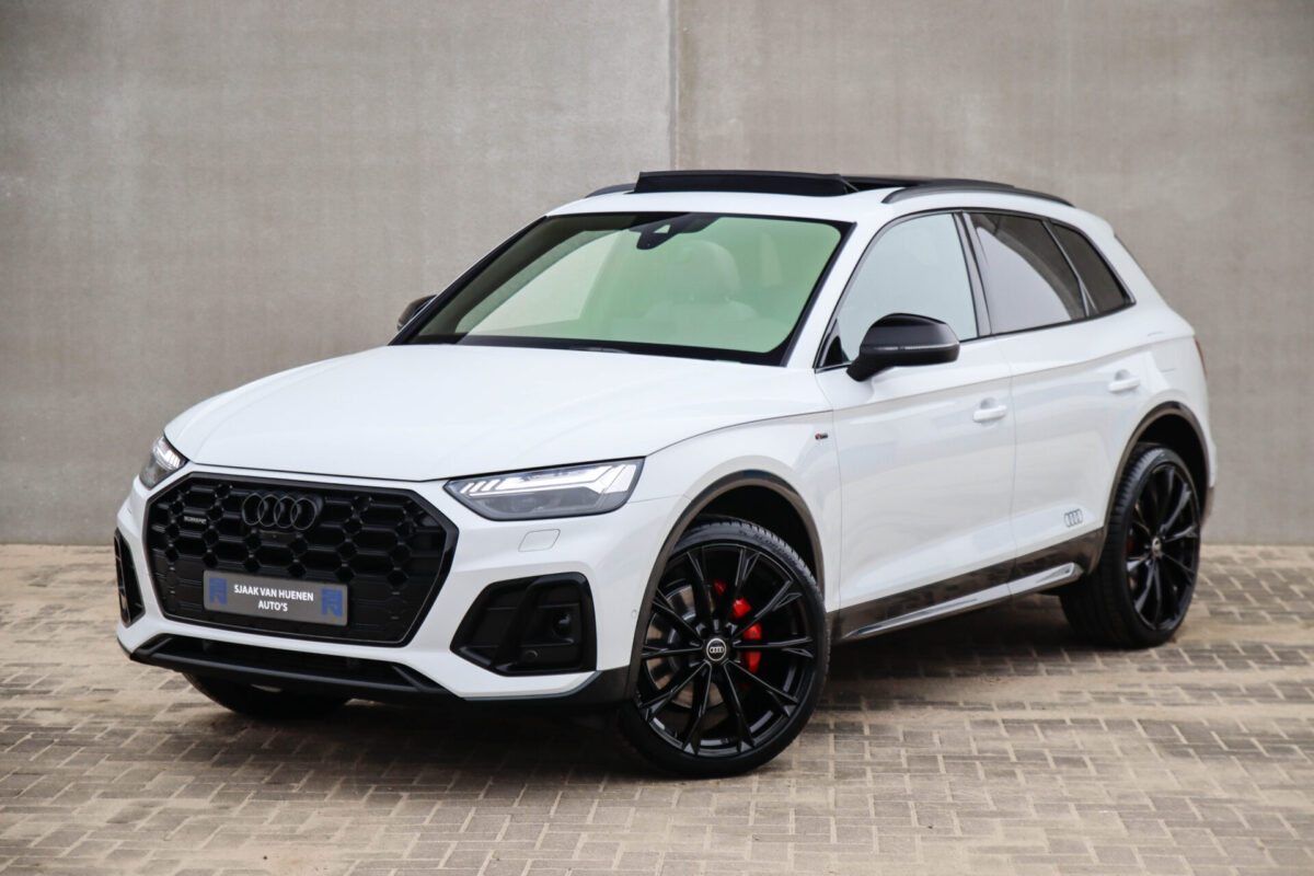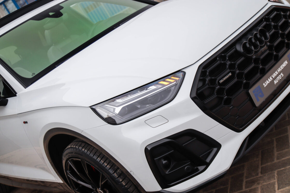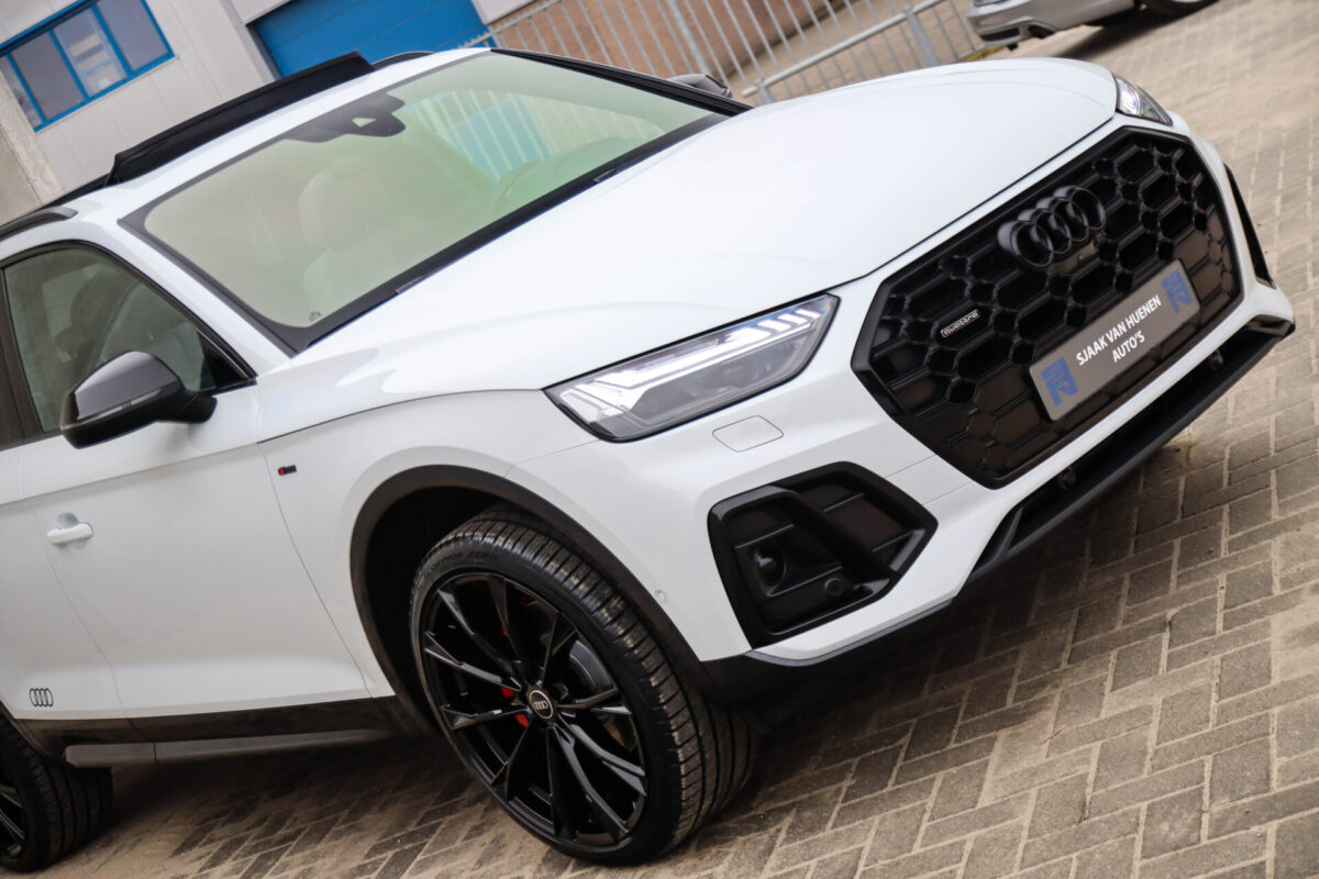 NIEUW MODEL | MODEL 2022! Een in prachtige staat verkerende Audi Q5 50 TFSI e 220kw/299pk Quattro Competition S-Tronic Automaat Pro Line S S-Line! Audi dealer afkomstig, van de 1e eigenaar met een zeer interessant gecontroleerde tellerstand van slechts 42.922km. In fraaie fabrieksconfiguratie; Gletsjer White parel lak gecombineerd met het Zwart optiekpakket, de lederen S kuipstoelen met Diamond Cross stitching + Audi Exclusive Alcantara airbag, het Panoramisch glazen schuif-/kanteldak en natuurlijk de Audi Virtual Cockpit! Deze Audi biedt met de 299pk en 450Nm sterke 2.0 liter TFSI turbomotor, gekoppeld aan de Audi Quattro 4-wielaandrijving een trekvermogen van 2000kg. Het betreft een BTW-auto, dus voor zowel de zakelijke als particuliere klant interessant. De getoonde 22inch Black Performance velgenset met 4x Pirelli Scorpion ZERO Allseason banden is tegen geringe meerprijs van €2595,- te verkrijgen.
