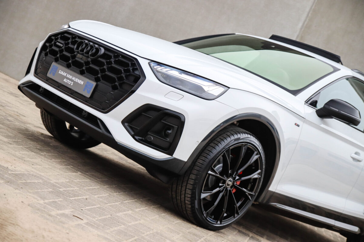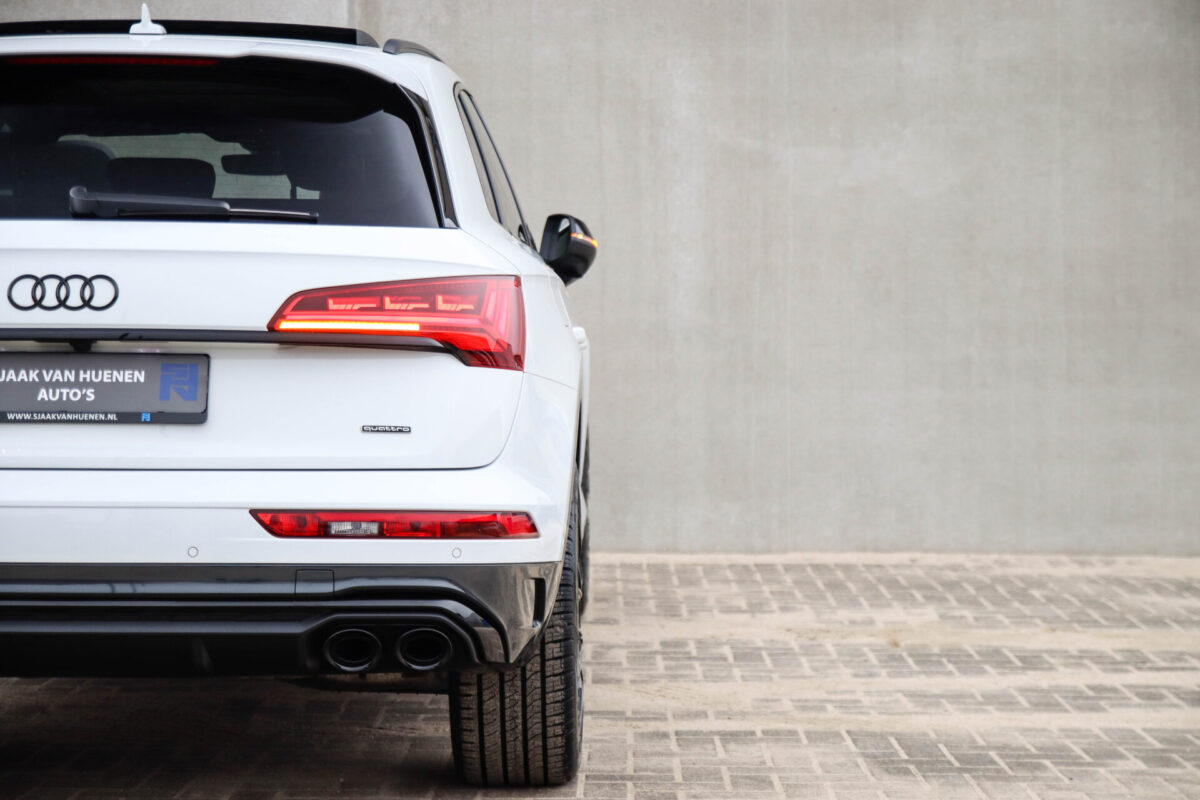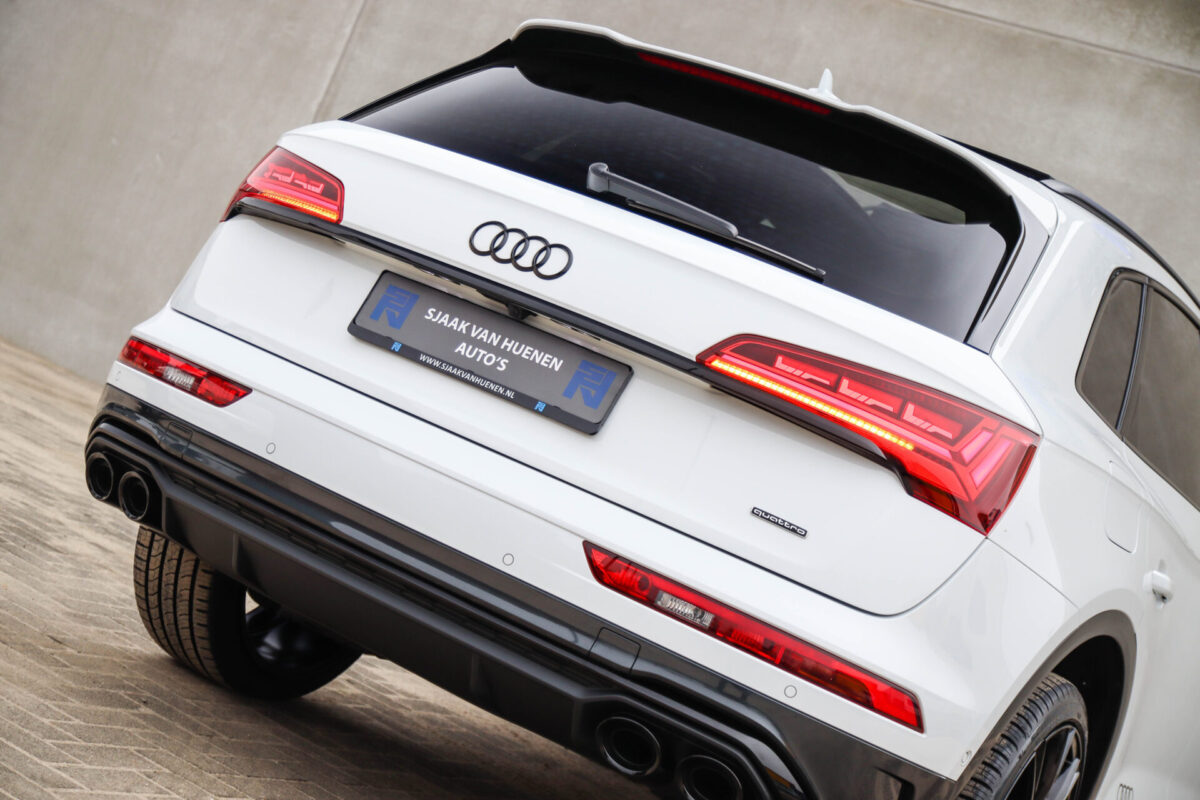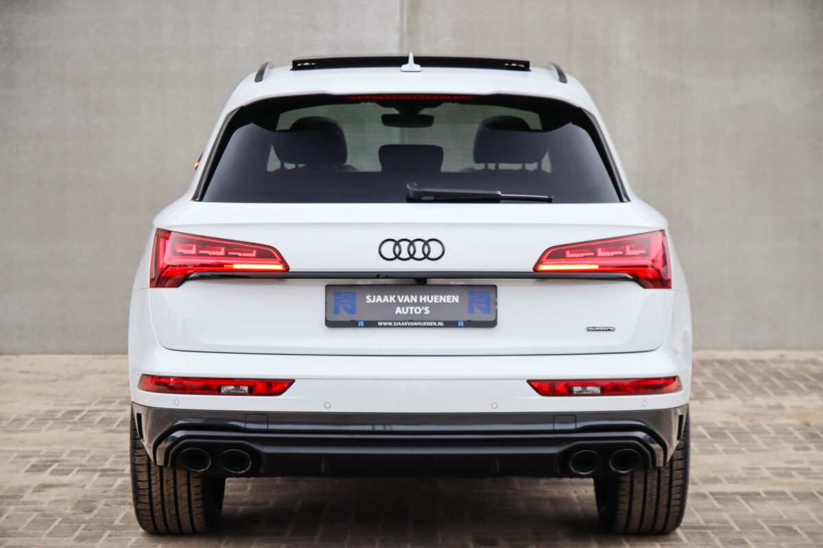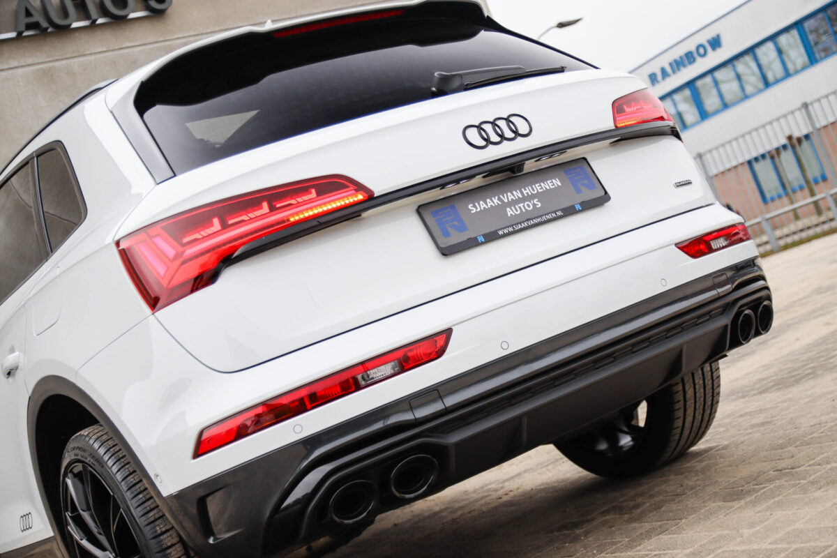 NIEUW MODEL | MODEL 2022! Een in prachtige staat verkerende Audi Q5 50 TFSI e 220kw/299pk Quattro Competition S-Tronic Automaat Pro Line S S-Line! Audi dealer afkomstig, van de 1e eigenaar met een zeer interessant gecontroleerde tellerstand van slechts 42.922km. In fraaie fabrieksconfiguratie; Gletsjer White parel lak gecombineerd met het Zwart optiekpakket, de lederen S kuipstoelen met Diamond Cross stitching + Audi Exclusive Alcantara airbag, het Panoramisch glazen schuif-/kanteldak en natuurlijk de Audi Virtual Cockpit! Deze Audi biedt met de 299pk en 450Nm sterke 2.0 liter TFSI turbomotor, gekoppeld aan de Audi Quattro 4-wielaandrijving een trekvermogen van 2000kg. Het betreft een BTW-auto, dus voor zowel de zakelijke als particuliere klant interessant. De getoonde 22inch Black Performance velgenset met 4x Pirelli Scorpion ZERO Allseason banden is tegen geringe meerprijs van €2595,- te verkrijgen.
