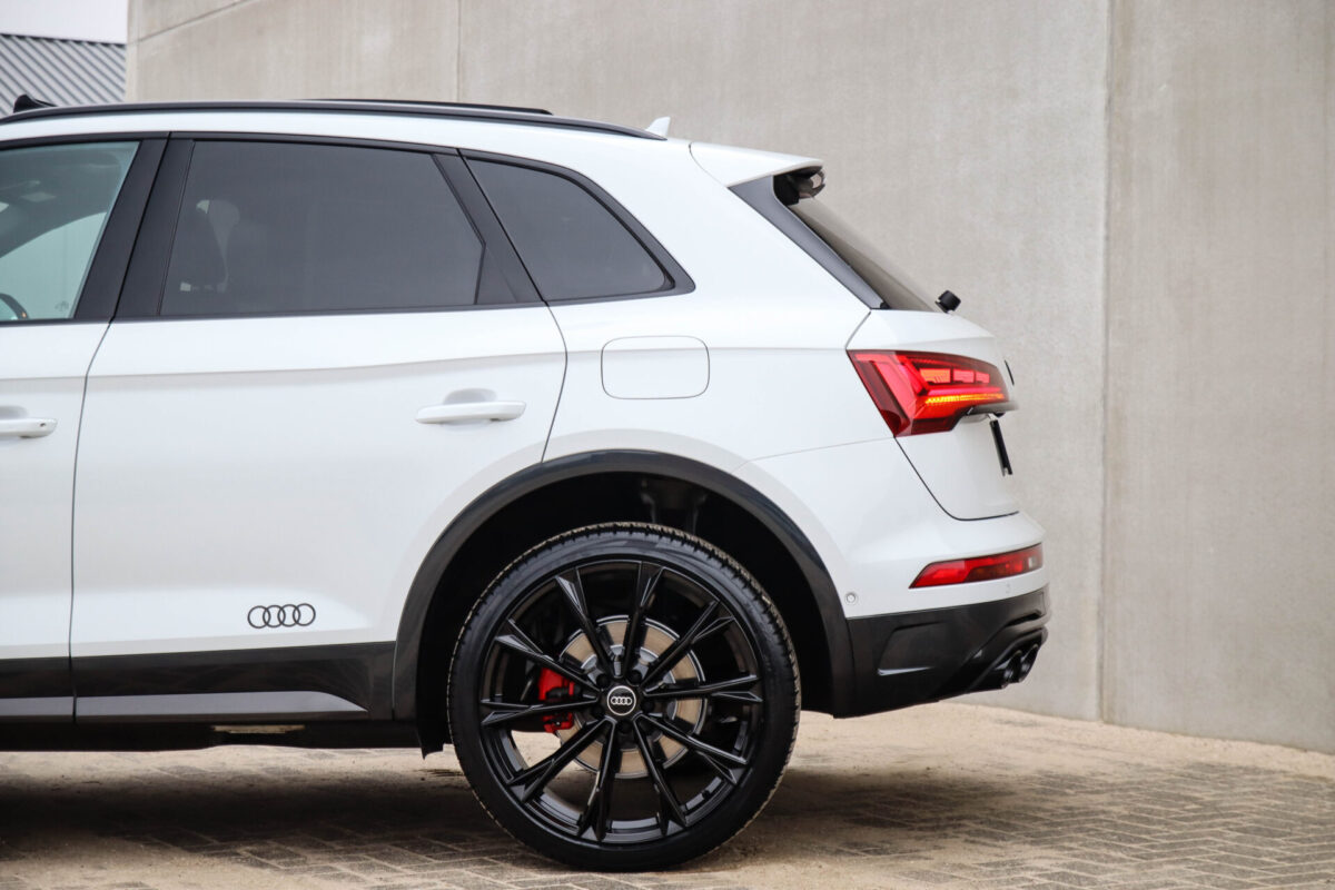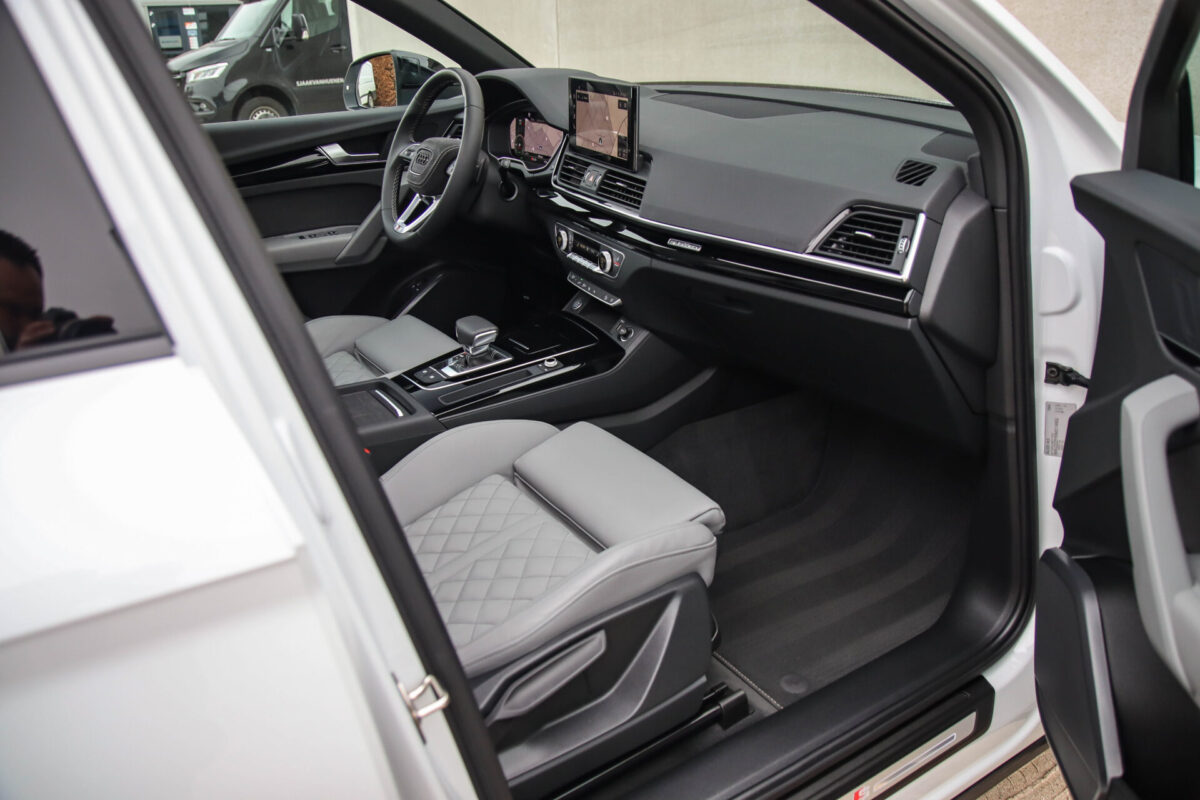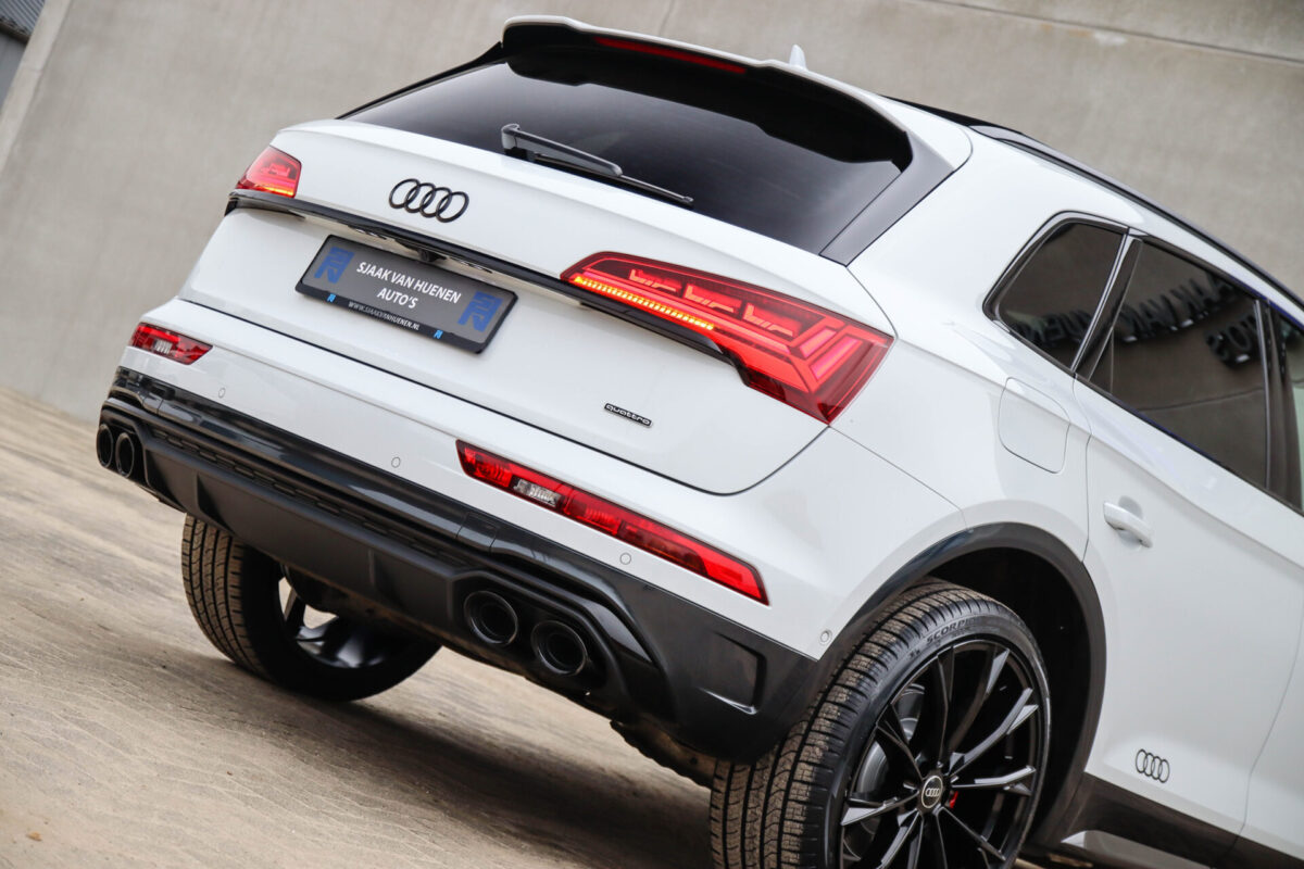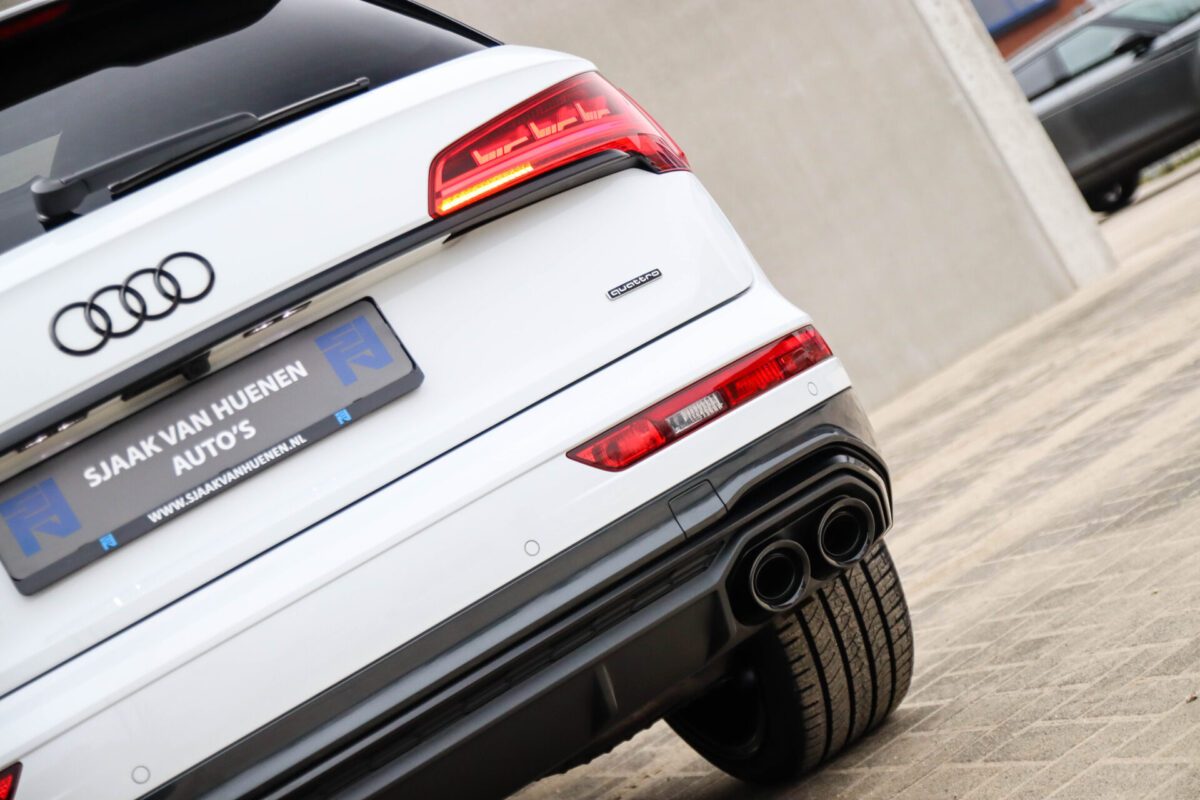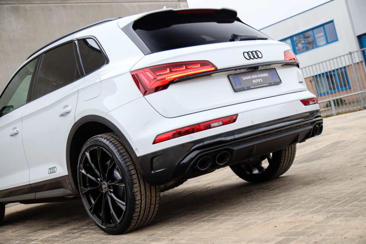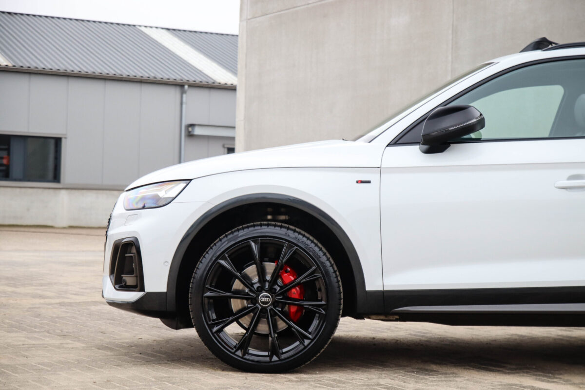NIEUW MODEL | MODEL 2022! Een in prachtige staat verkerende Audi Q5 50 TFSI e 220kw/299pk Quattro Competition S-Tronic Automaat Pro Line S S-Line! Audi dealer afkomstig, van de 1e eigenaar met een zeer interessant gecontroleerde tellerstand van slechts 42.922km. In fraaie fabrieksconfiguratie; Gletsjer White parel lak gecombineerd met het Zwart optiekpakket, de lederen S kuipstoelen met Diamond Cross stitching + Audi Exclusive Alcantara airbag, het Panoramisch glazen schuif-/kanteldak en natuurlijk de Audi Virtual Cockpit! Deze Audi biedt met de 299pk en 450Nm sterke 2.0 liter TFSI turbomotor, gekoppeld aan de Audi Quattro 4-wielaandrijving een trekvermogen van 2000kg. Het betreft een BTW-auto, dus voor zowel de zakelijke als particuliere klant interessant. De getoonde 22inch Black Performance velgenset met 4x Pirelli Scorpion ZERO Allseason banden is tegen geringe meerprijs van €2595,- te verkrijgen.