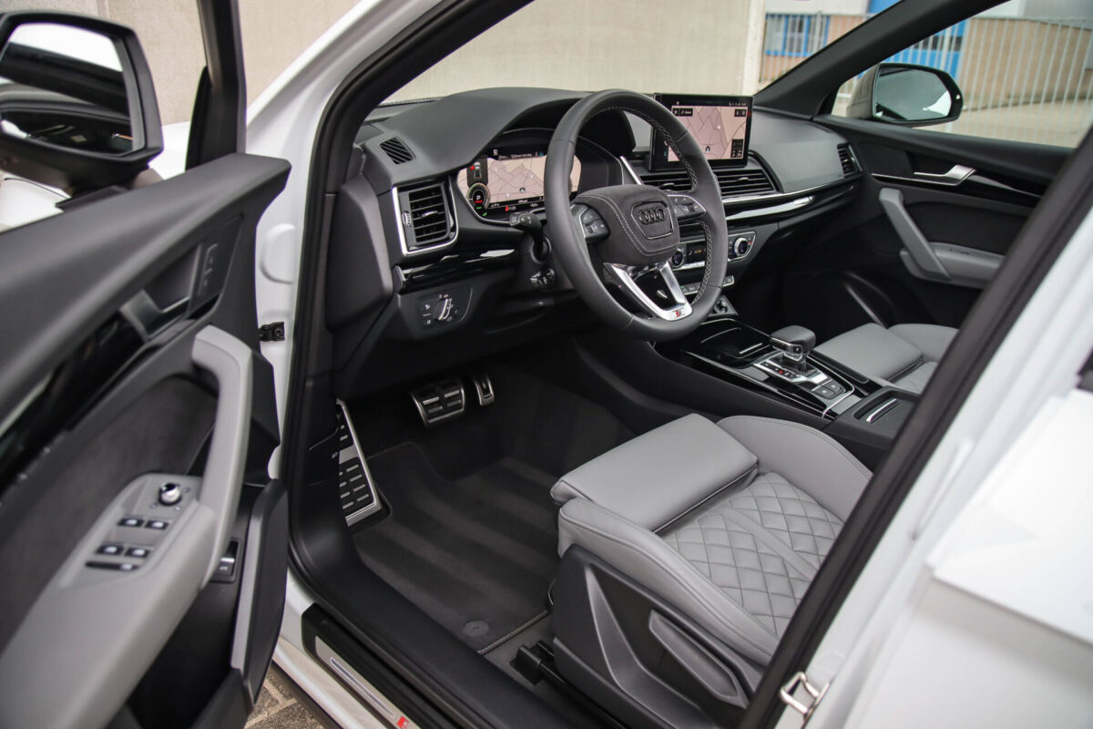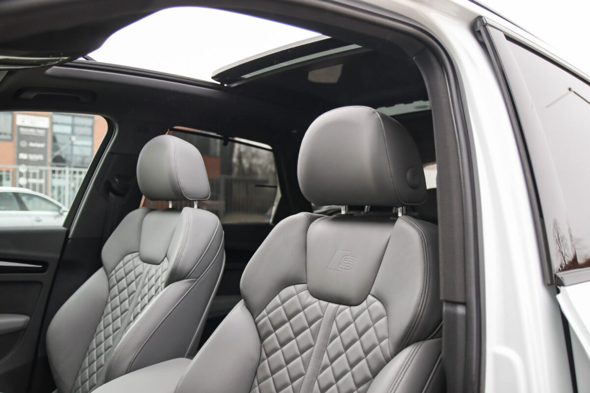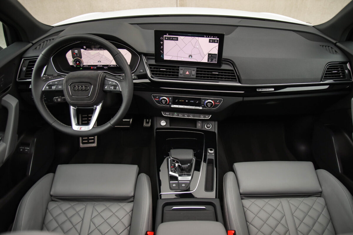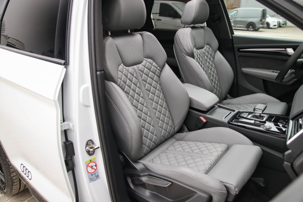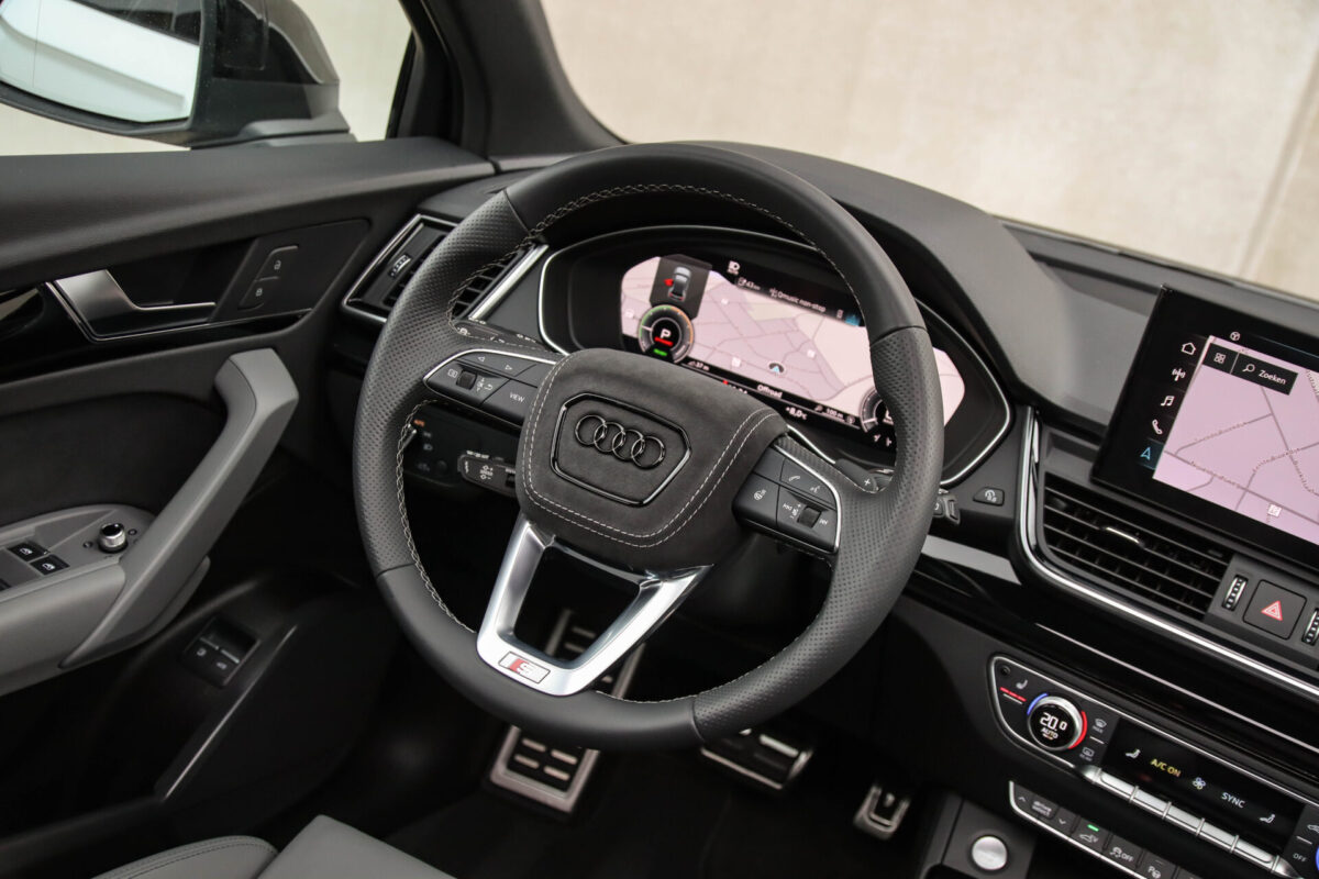 NIEUW MODEL | MODEL 2022! Een in prachtige staat verkerende Audi Q5 50 TFSI e 220kw/299pk Quattro Competition S-Tronic Automaat Pro Line S S-Line! Audi dealer afkomstig, van de 1e eigenaar met een zeer interessant gecontroleerde tellerstand van slechts 42.922km. In fraaie fabrieksconfiguratie; Gletsjer White parel lak gecombineerd met het Zwart optiekpakket, de lederen S kuipstoelen met Diamond Cross stitching + Audi Exclusive Alcantara airbag, het Panoramisch glazen schuif-/kanteldak en natuurlijk de Audi Virtual Cockpit! Deze Audi biedt met de 299pk en 450Nm sterke 2.0 liter TFSI turbomotor, gekoppeld aan de Audi Quattro 4-wielaandrijving een trekvermogen van 2000kg. Het betreft een BTW-auto, dus voor zowel de zakelijke als particuliere klant interessant. De getoonde 22inch Black Performance velgenset met 4x Pirelli Scorpion ZERO Allseason banden is tegen geringe meerprijs van €2595,- te verkrijgen.