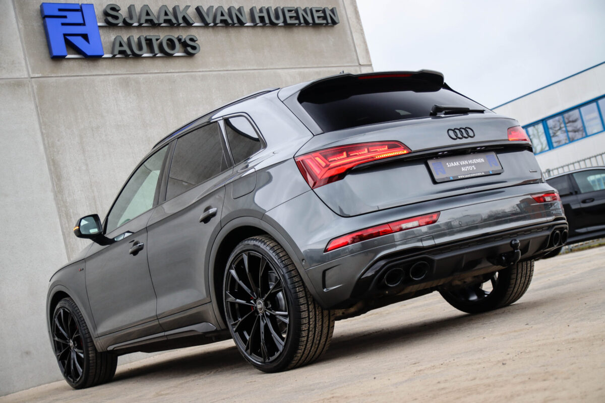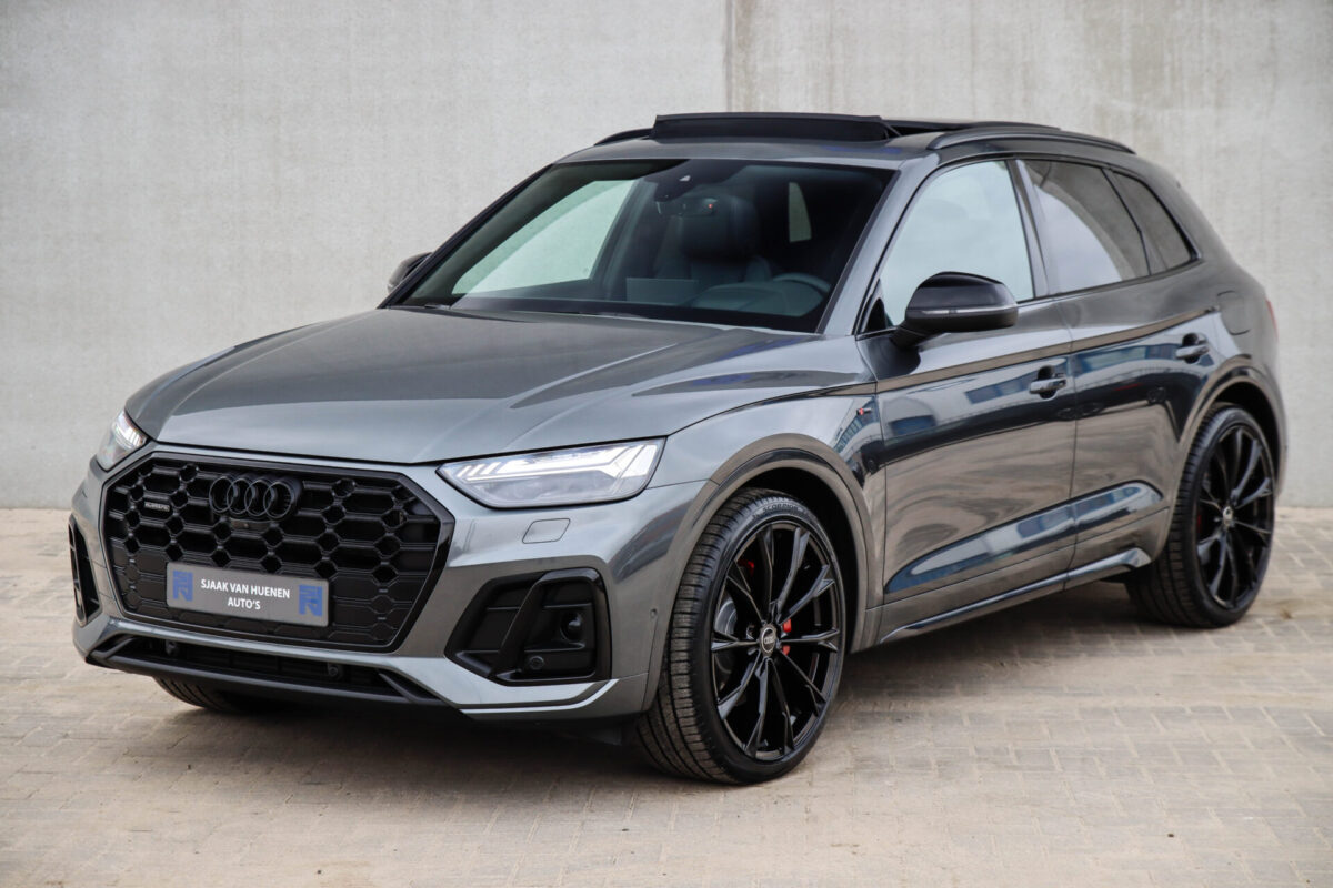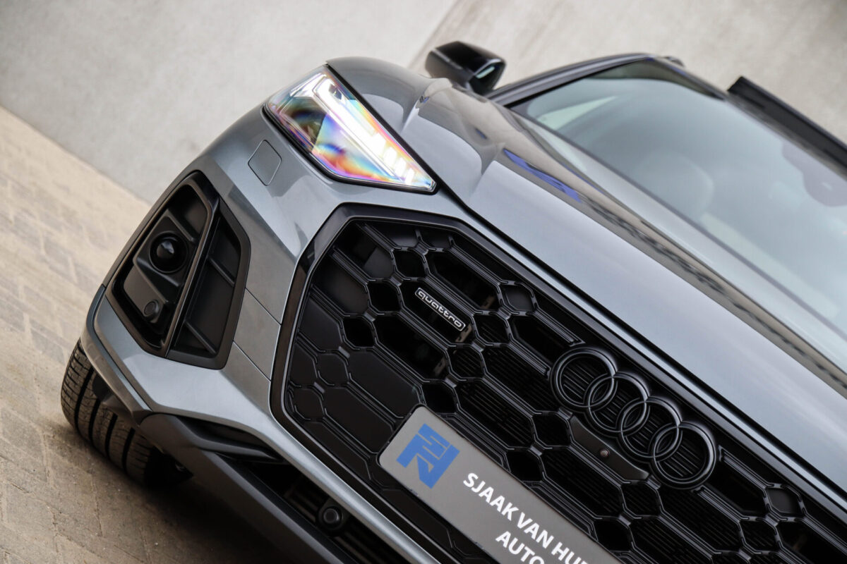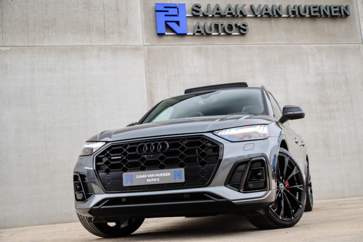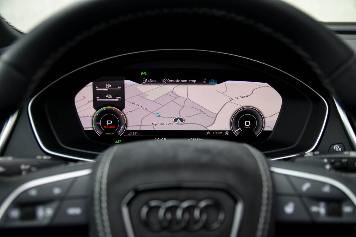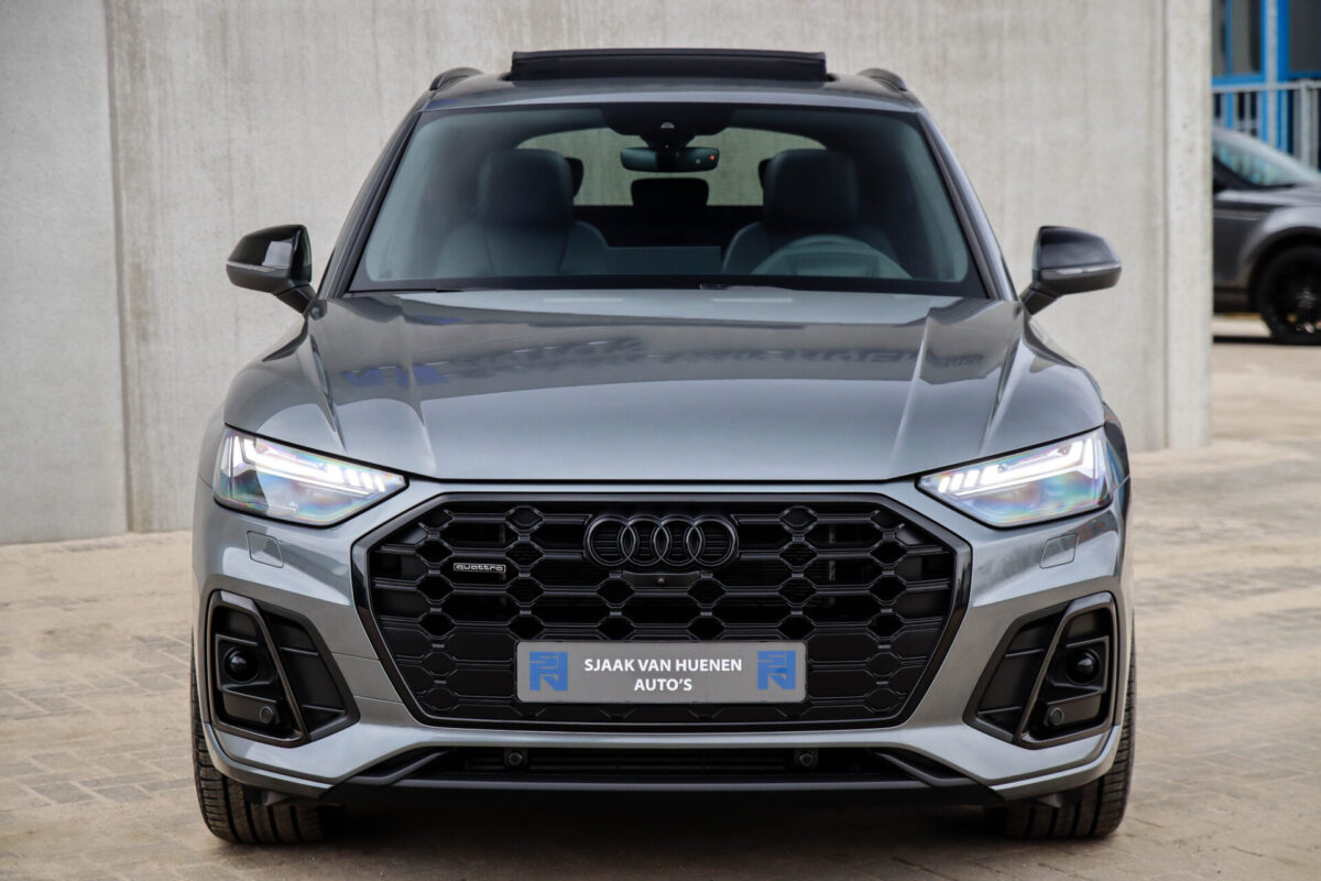 NIEUW MODEL | MODEL 2022! Een in nieuwstaat verkerende Audi Q5 50 TFSI e 220kw/299pk Quattro Competition S-Tronic Automaat Pro Line S S-Line! Audi dealer afkomstig, van de 1e eigenaar met een bijzonder interessant gecontroleerde tellerstand van slechts 30.230km. In unieke en perfecte fabrieksconfiguratie; Daytona Grey parel lak gecombineerd met het Zwart optiekpakket, de comfortabele instelbare Luchtvering, de Elektrisch verstelbare zwart lederen S kuipstoelen met Diamond Cross stitching incl. Massagefunctie + Audi Exclusive Alcantara airbag, het Panoramisch glazen schuif-/kanteldak en natuurlijk de Audi Virtual Cockpit! Deze Audi biedt met de 299pk en 450Nm sterke 2.0 liter TFSI turbomotor, gekoppeld aan de Audi Quattro 4-wielaandrijving een trekvermogen van 2000kg. Het betreft een BTW-auto, dus voor zowel de zakelijke als particuliere klant interessant. De getoonde 22inch Black Performance velgenset met 4x Pirelli Scorpion ZERO Allseason banden is tegen geringe meerprijs van €2595,- te verkrijgen.