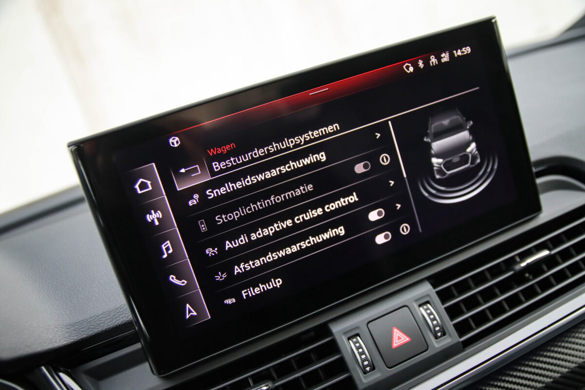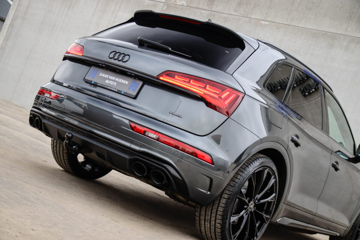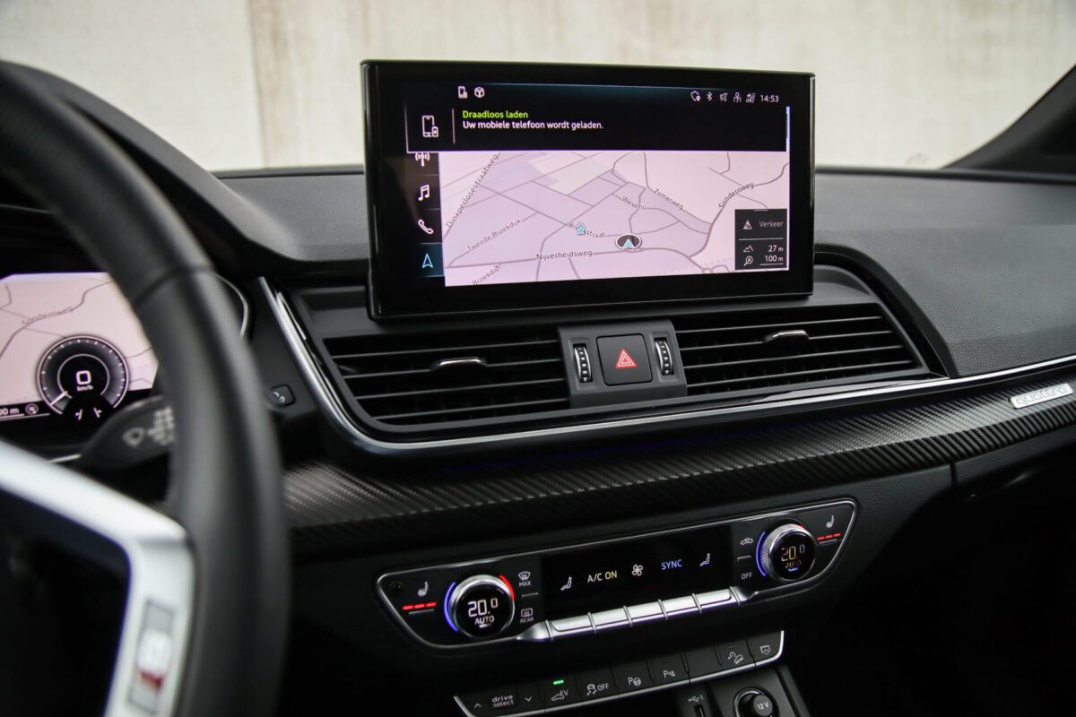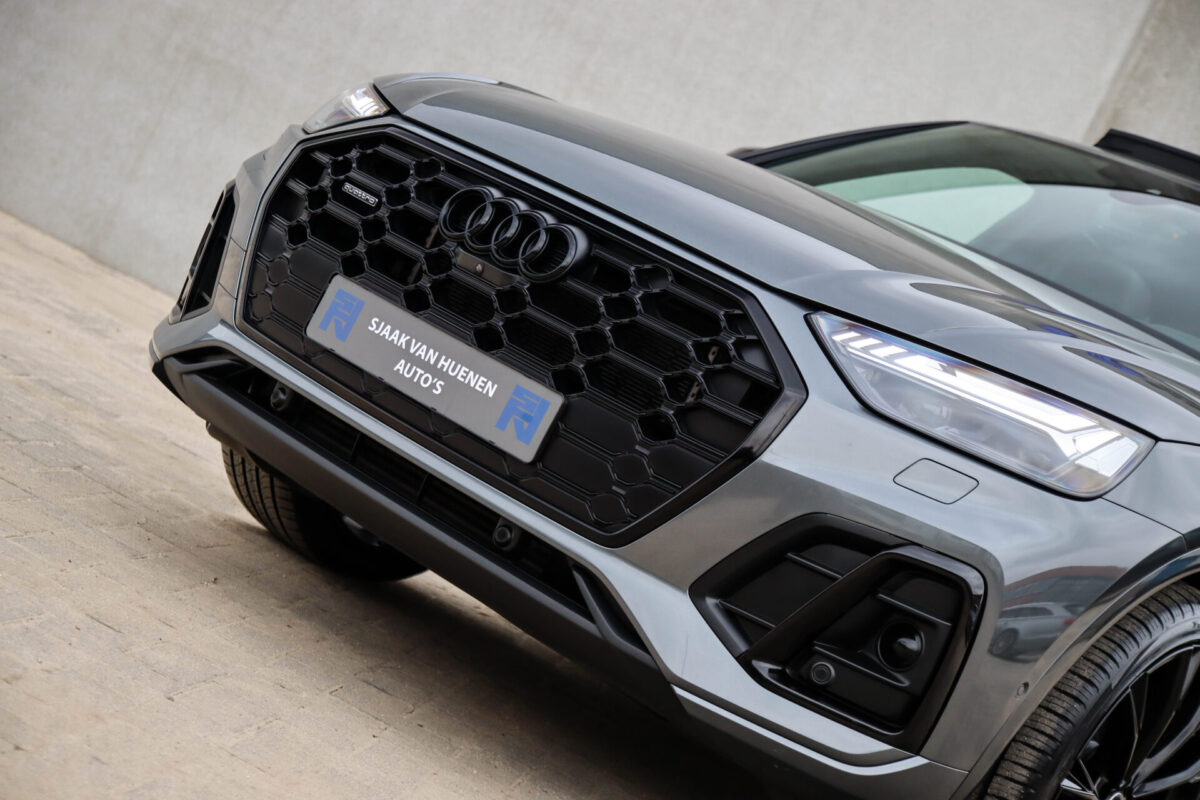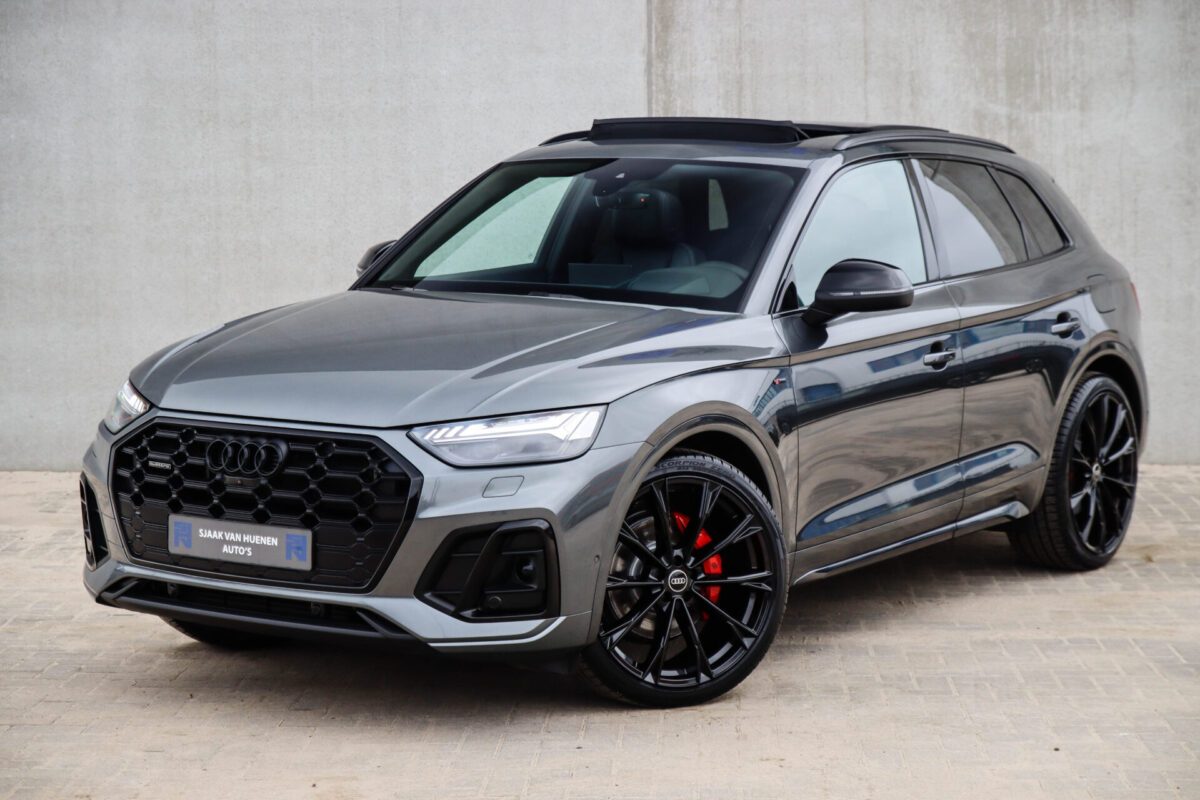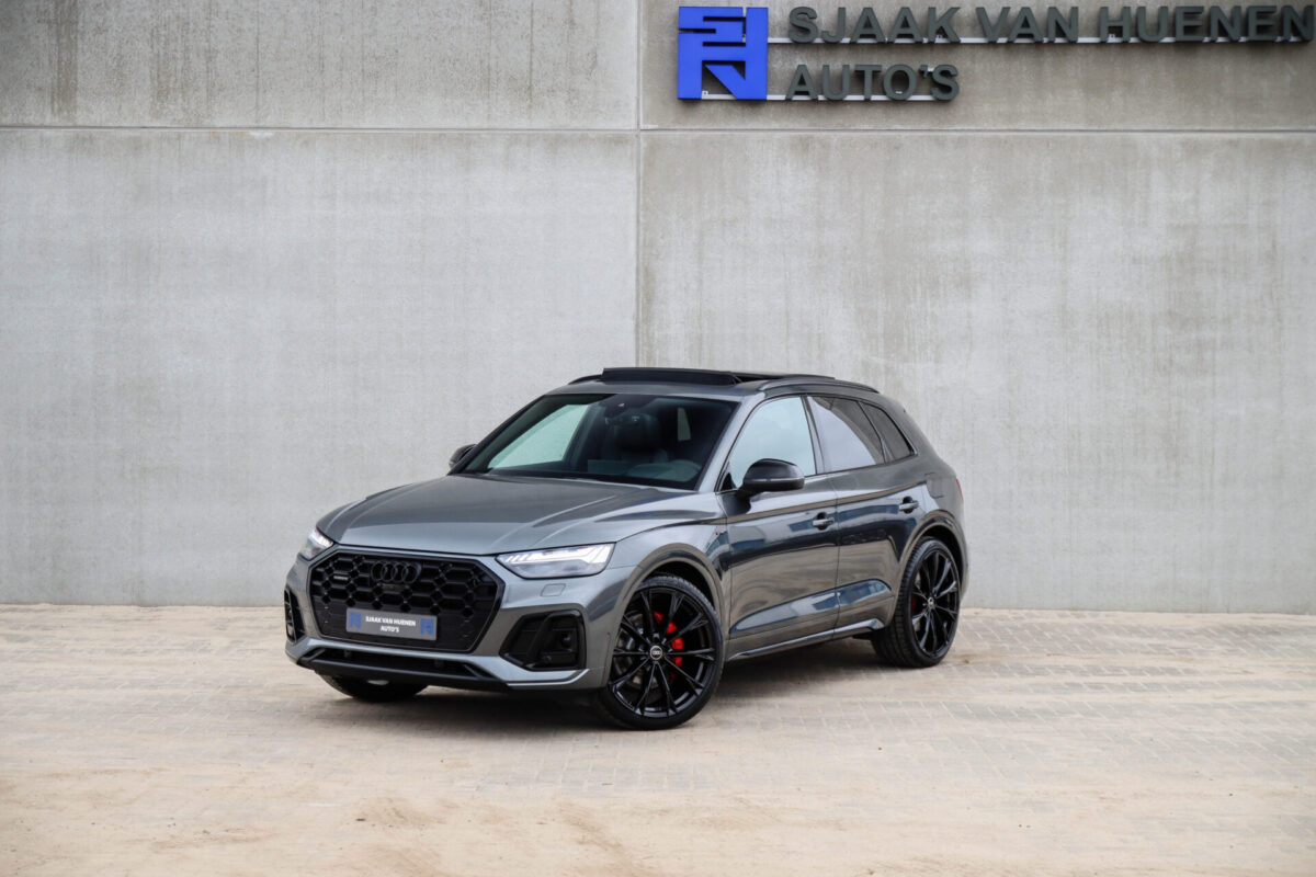 NIEUW MODEL | MODEL 2022! Een in nieuwstaat verkerende Audi Q5 50 TFSI e 220kw/299pk Quattro Competition S-Tronic Automaat Pro Line S S-Line! Audi dealer afkomstig, van de 1e eigenaar met een bijzonder interessant gecontroleerde tellerstand van slechts 30.230km. In unieke en perfecte fabrieksconfiguratie; Daytona Grey parel lak gecombineerd met het Zwart optiekpakket, de comfortabele instelbare Luchtvering, de Elektrisch verstelbare zwart lederen S kuipstoelen met Diamond Cross stitching incl. Massagefunctie + Audi Exclusive Alcantara airbag, het Panoramisch glazen schuif-/kanteldak en natuurlijk de Audi Virtual Cockpit! Deze Audi biedt met de 299pk en 450Nm sterke 2.0 liter TFSI turbomotor, gekoppeld aan de Audi Quattro 4-wielaandrijving een trekvermogen van 2000kg. Het betreft een BTW-auto, dus voor zowel de zakelijke als particuliere klant interessant. De getoonde 22inch Black Performance velgenset met 4x Pirelli Scorpion ZERO Allseason banden is tegen geringe meerprijs van €2595,- te verkrijgen.
