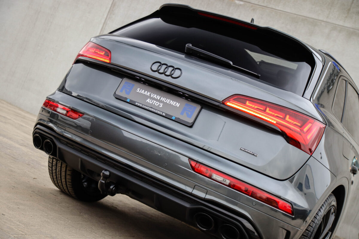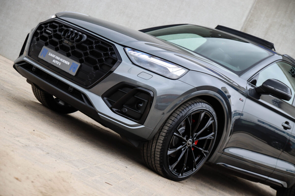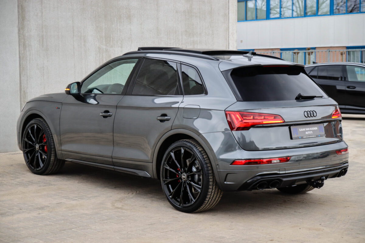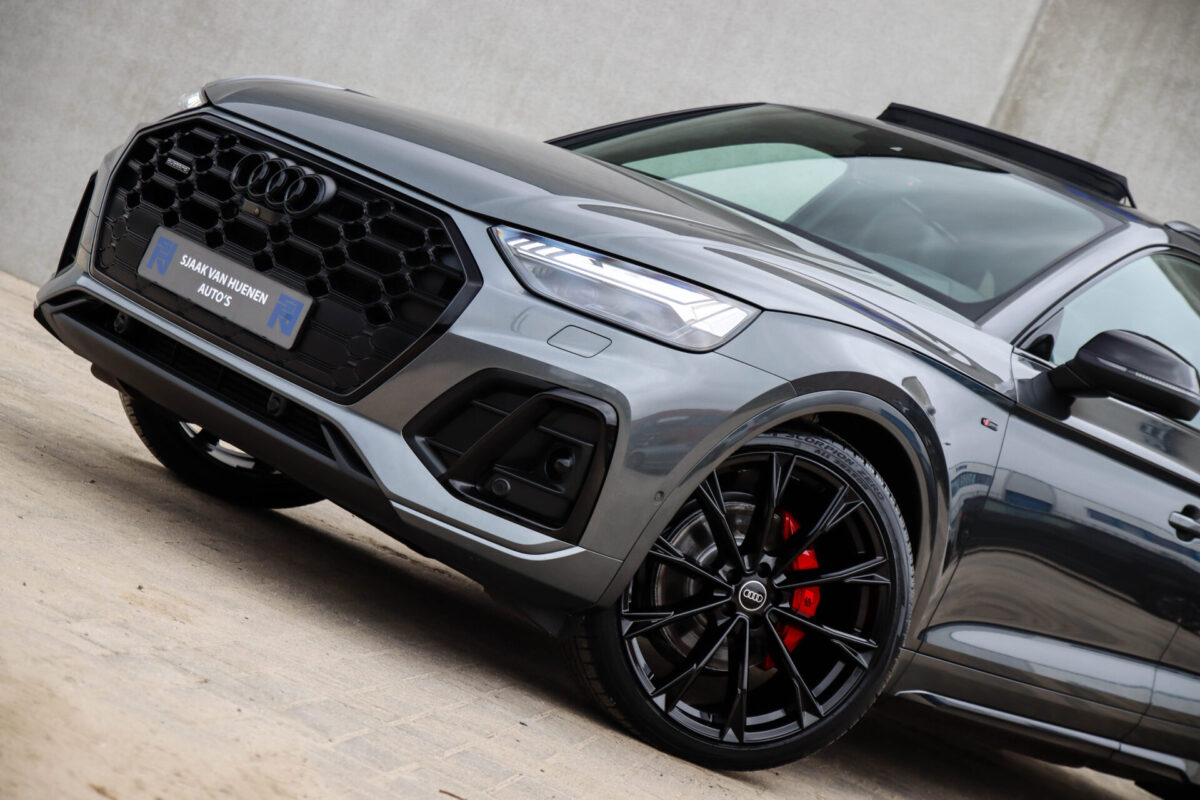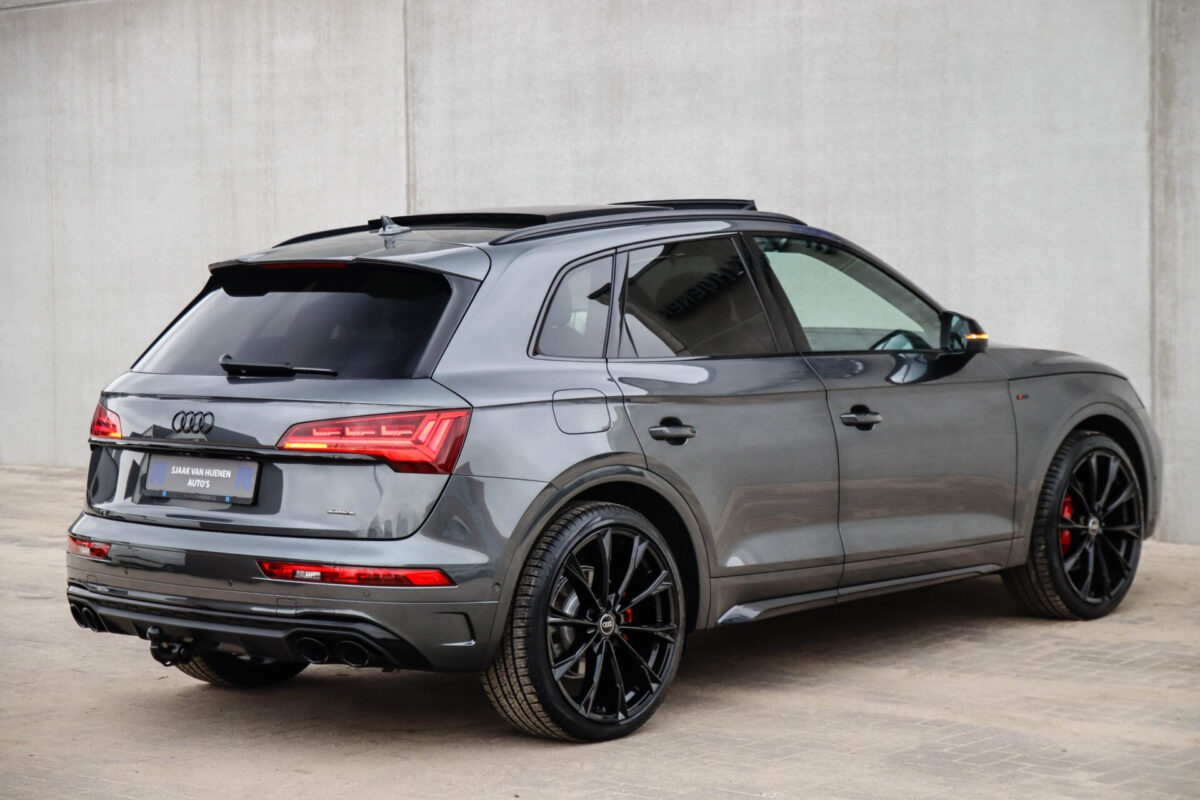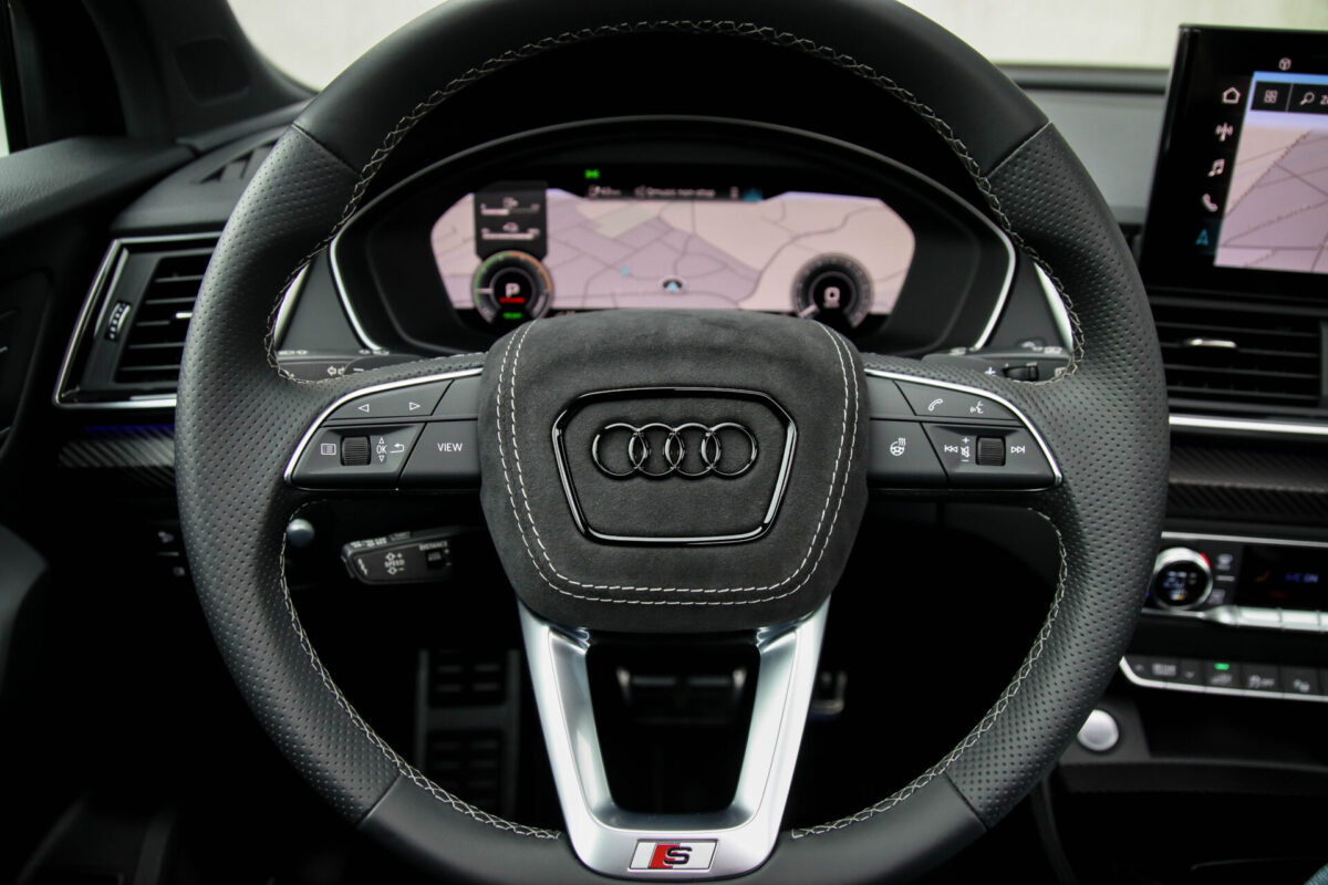 NIEUW MODEL | MODEL 2022! Een in nieuwstaat verkerende Audi Q5 50 TFSI e 220kw/299pk Quattro Competition S-Tronic Automaat Pro Line S S-Line! Audi dealer afkomstig, van de 1e eigenaar met een bijzonder interessant gecontroleerde tellerstand van slechts 30.230km. In unieke en perfecte fabrieksconfiguratie; Daytona Grey parel lak gecombineerd met het Zwart optiekpakket, de comfortabele instelbare Luchtvering, de Elektrisch verstelbare zwart lederen S kuipstoelen met Diamond Cross stitching incl. Massagefunctie + Audi Exclusive Alcantara airbag, het Panoramisch glazen schuif-/kanteldak en natuurlijk de Audi Virtual Cockpit! Deze Audi biedt met de 299pk en 450Nm sterke 2.0 liter TFSI turbomotor, gekoppeld aan de Audi Quattro 4-wielaandrijving een trekvermogen van 2000kg. Het betreft een BTW-auto, dus voor zowel de zakelijke als particuliere klant interessant. De getoonde 22inch Black Performance velgenset met 4x Pirelli Scorpion ZERO Allseason banden is tegen geringe meerprijs van €2595,- te verkrijgen.