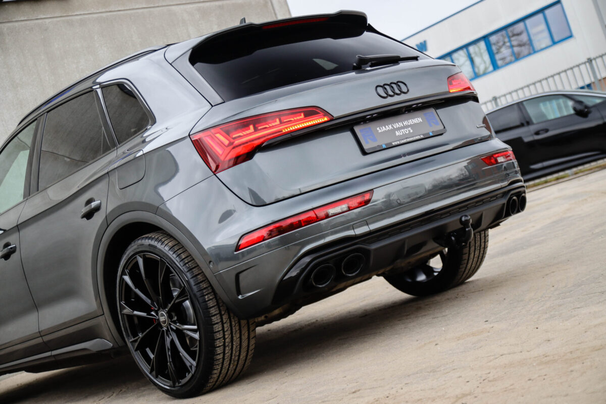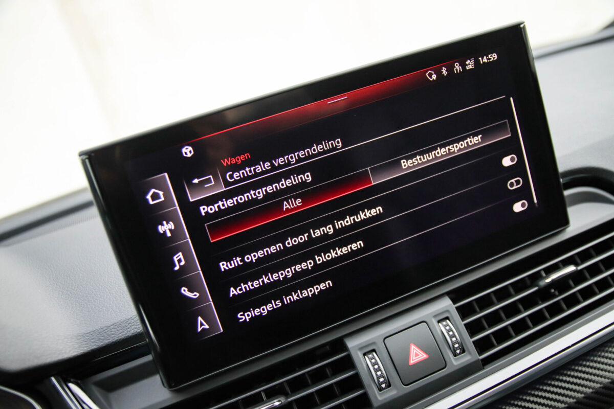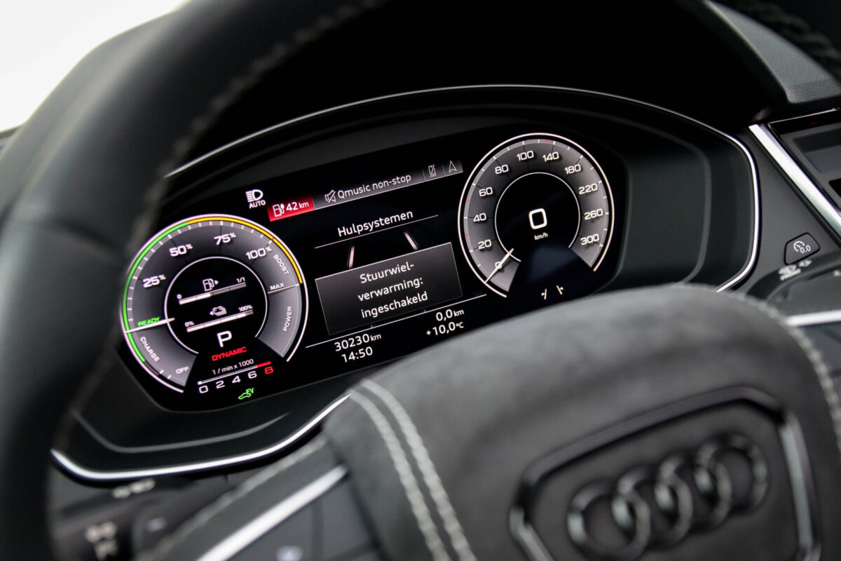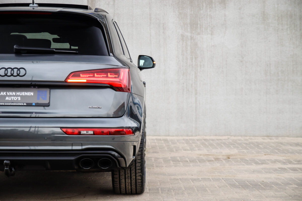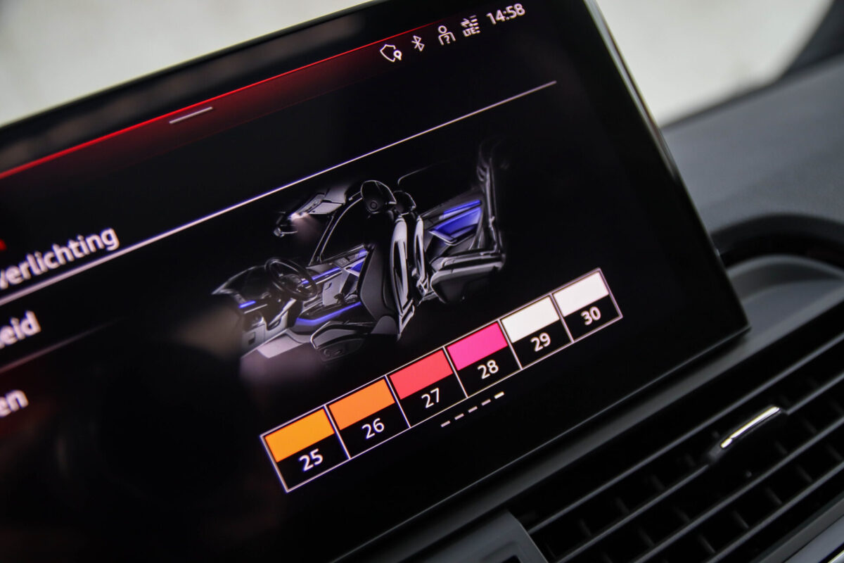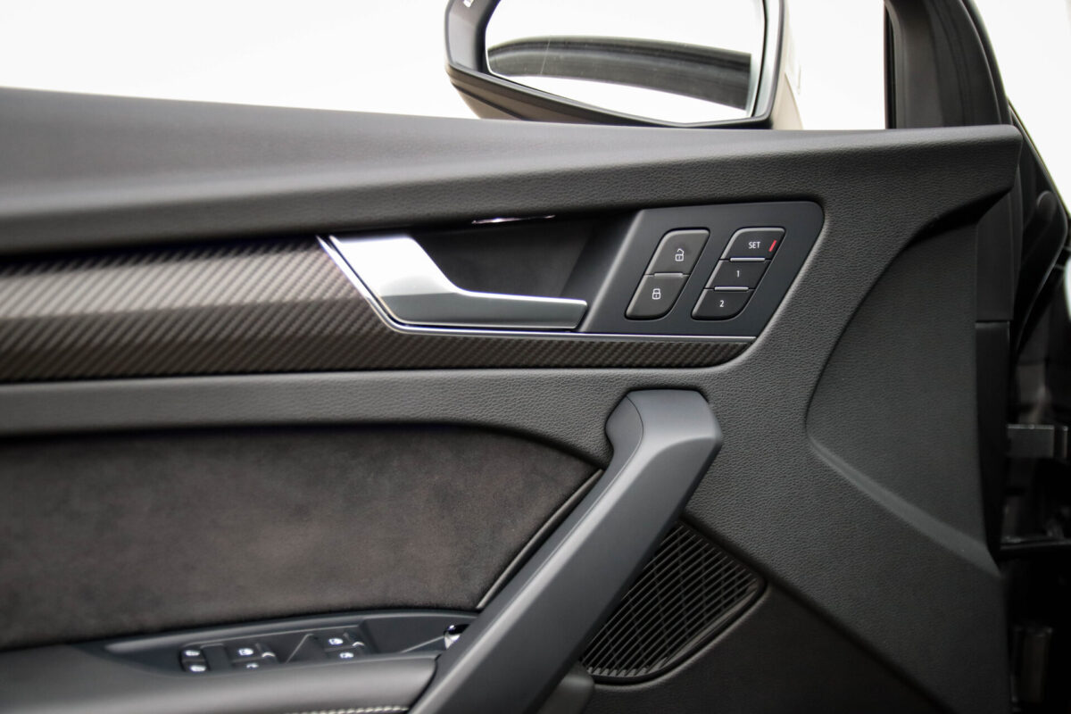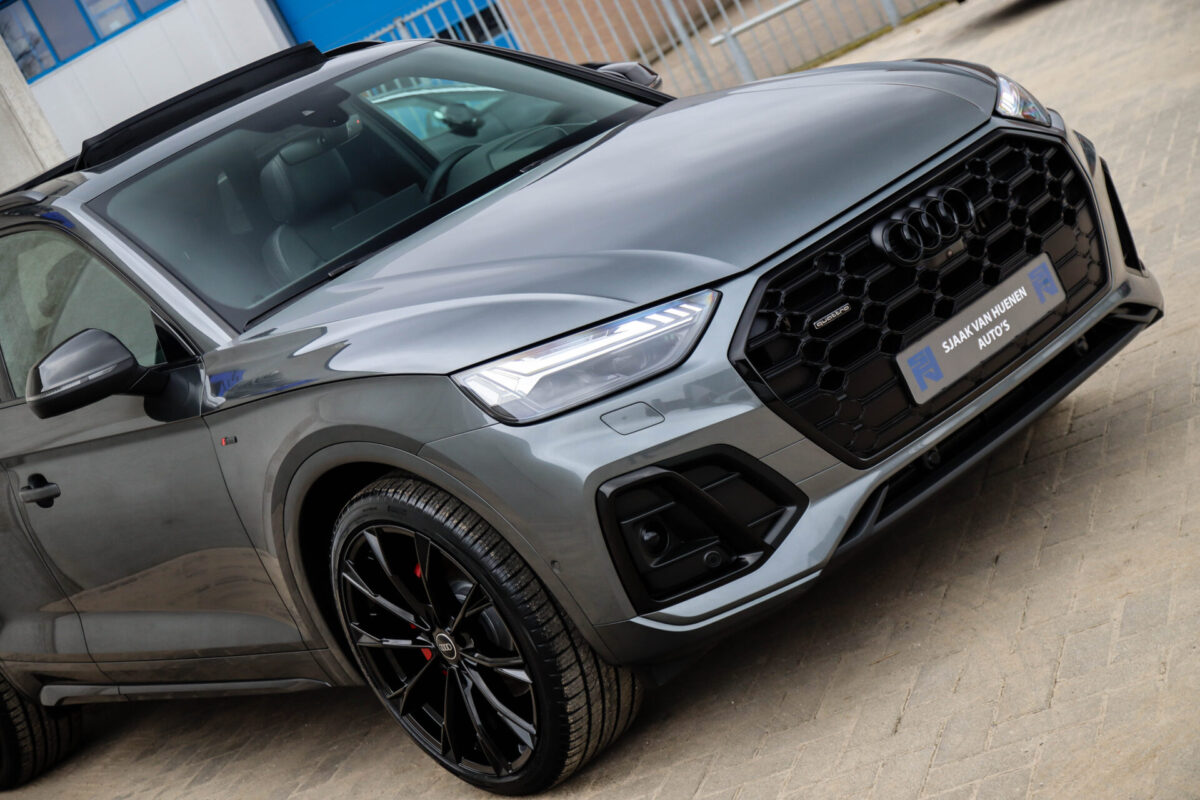 NIEUW MODEL | MODEL 2022! Een in nieuwstaat verkerende Audi Q5 50 TFSI e 220kw/299pk Quattro Competition S-Tronic Automaat Pro Line S S-Line! Audi dealer afkomstig, van de 1e eigenaar met een bijzonder interessant gecontroleerde tellerstand van slechts 30.230km. In unieke en perfecte fabrieksconfiguratie; Daytona Grey parel lak gecombineerd met het Zwart optiekpakket, de comfortabele instelbare Luchtvering, de Elektrisch verstelbare zwart lederen S kuipstoelen met Diamond Cross stitching incl. Massagefunctie + Audi Exclusive Alcantara airbag, het Panoramisch glazen schuif-/kanteldak en natuurlijk de Audi Virtual Cockpit! Deze Audi biedt met de 299pk en 450Nm sterke 2.0 liter TFSI turbomotor, gekoppeld aan de Audi Quattro 4-wielaandrijving een trekvermogen van 2000kg. Het betreft een BTW-auto, dus voor zowel de zakelijke als particuliere klant interessant. De getoonde 22inch Black Performance velgenset met 4x Pirelli Scorpion ZERO Allseason banden is tegen geringe meerprijs van €2595,- te verkrijgen.