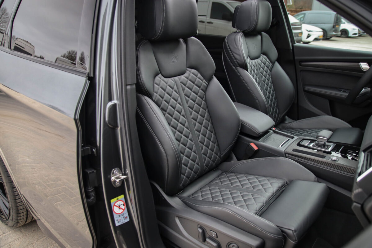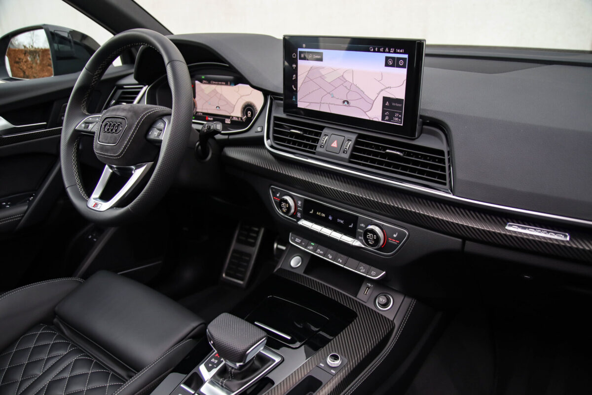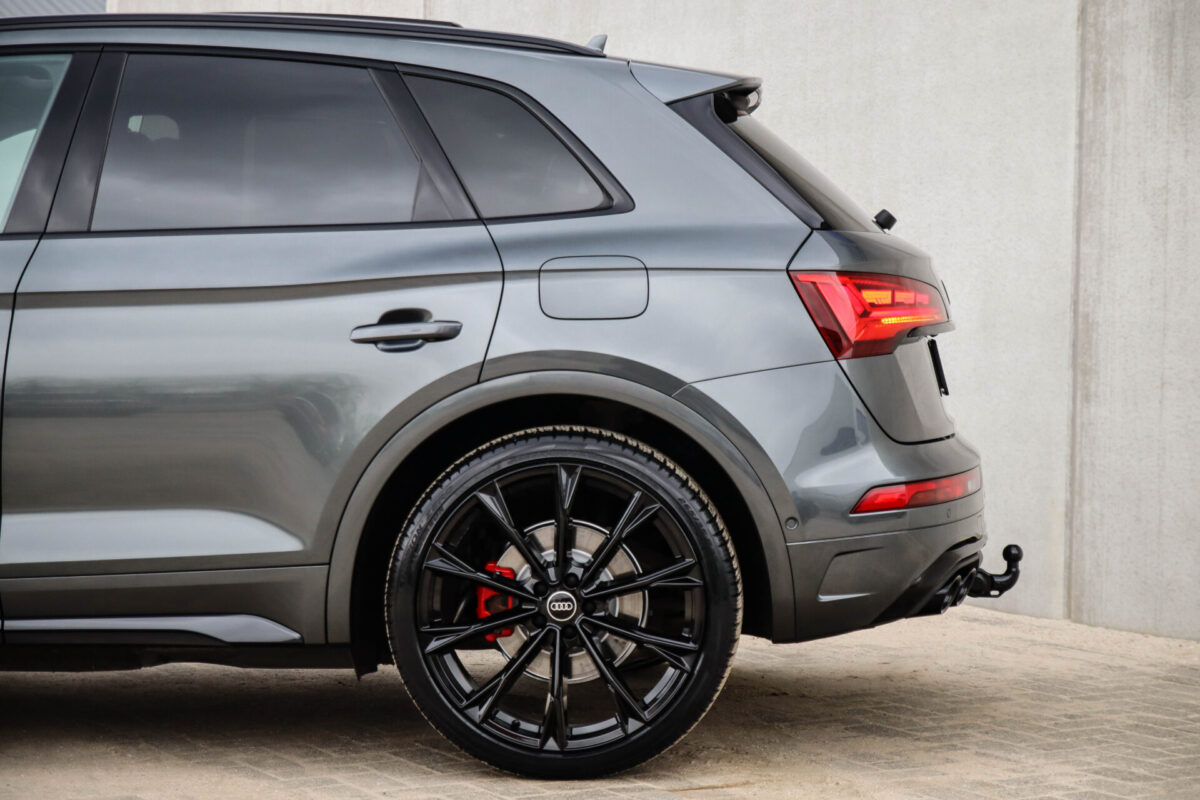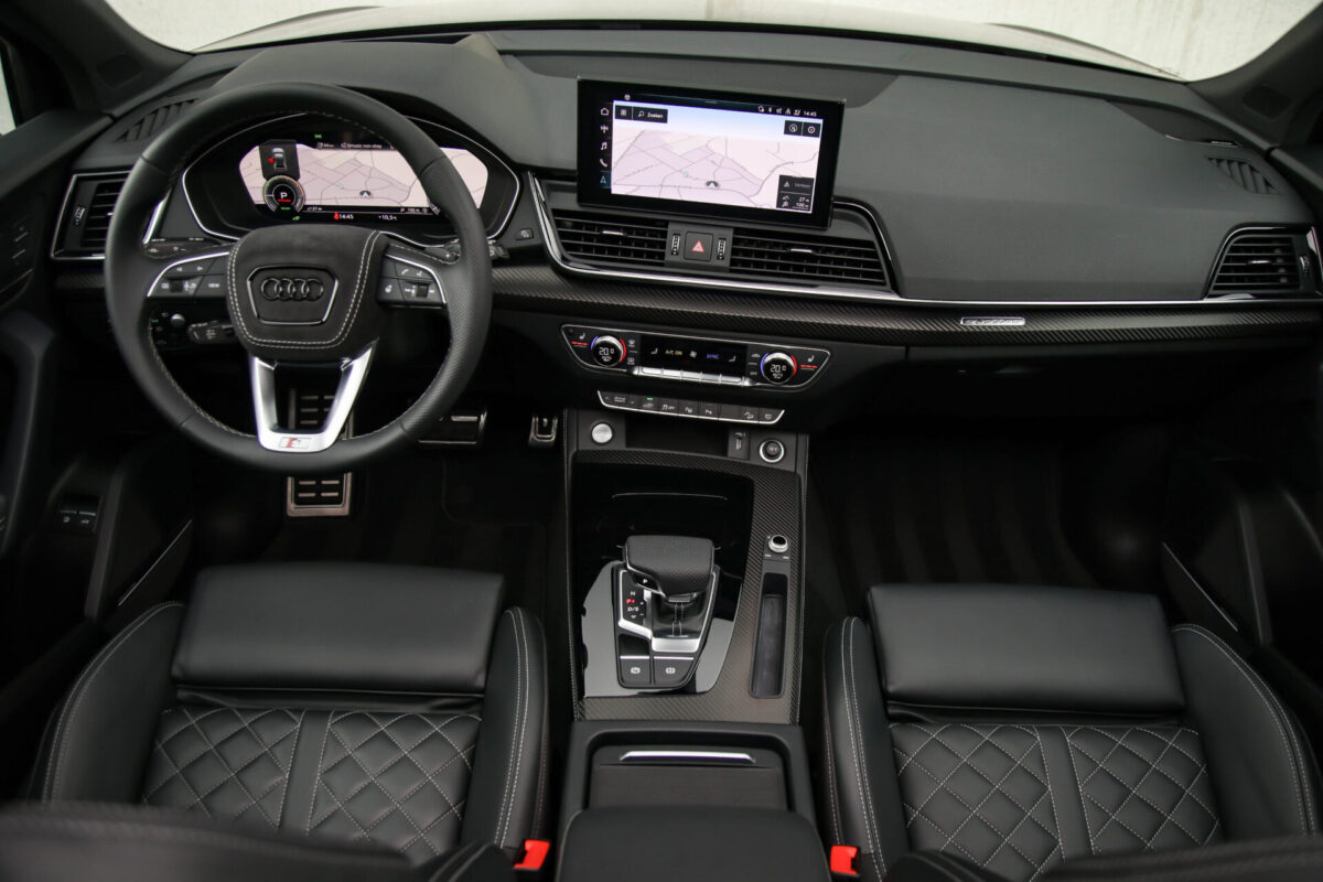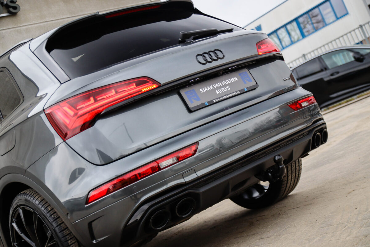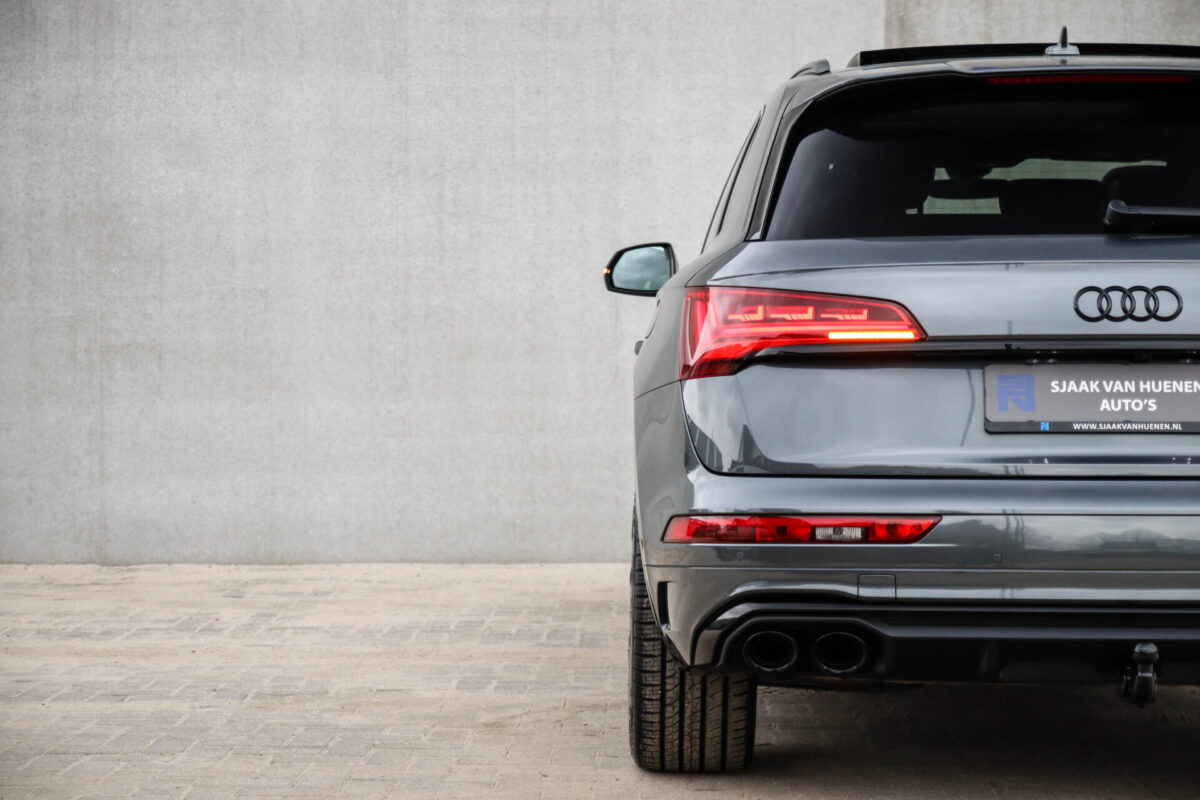 NIEUW MODEL | MODEL 2022! Een in nieuwstaat verkerende Audi Q5 50 TFSI e 220kw/299pk Quattro Competition S-Tronic Automaat Pro Line S S-Line! Audi dealer afkomstig, van de 1e eigenaar met een bijzonder interessant gecontroleerde tellerstand van slechts 30.230km. In unieke en perfecte fabrieksconfiguratie; Daytona Grey parel lak gecombineerd met het Zwart optiekpakket, de comfortabele instelbare Luchtvering, de Elektrisch verstelbare zwart lederen S kuipstoelen met Diamond Cross stitching incl. Massagefunctie + Audi Exclusive Alcantara airbag, het Panoramisch glazen schuif-/kanteldak en natuurlijk de Audi Virtual Cockpit! Deze Audi biedt met de 299pk en 450Nm sterke 2.0 liter TFSI turbomotor, gekoppeld aan de Audi Quattro 4-wielaandrijving een trekvermogen van 2000kg. Het betreft een BTW-auto, dus voor zowel de zakelijke als particuliere klant interessant. De getoonde 22inch Black Performance velgenset met 4x Pirelli Scorpion ZERO Allseason banden is tegen geringe meerprijs van €2595,- te verkrijgen.