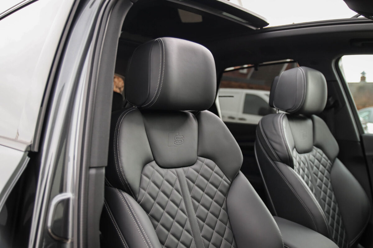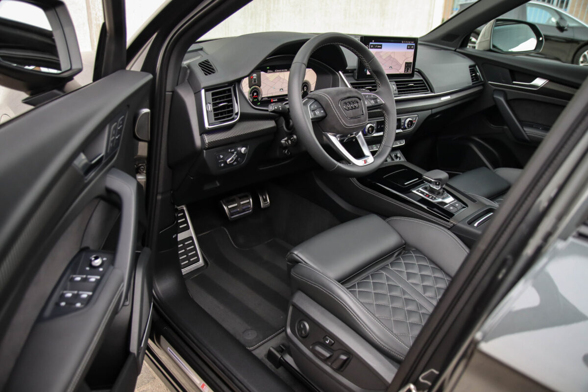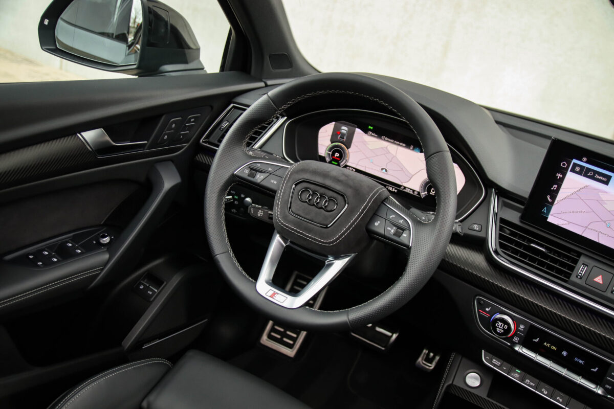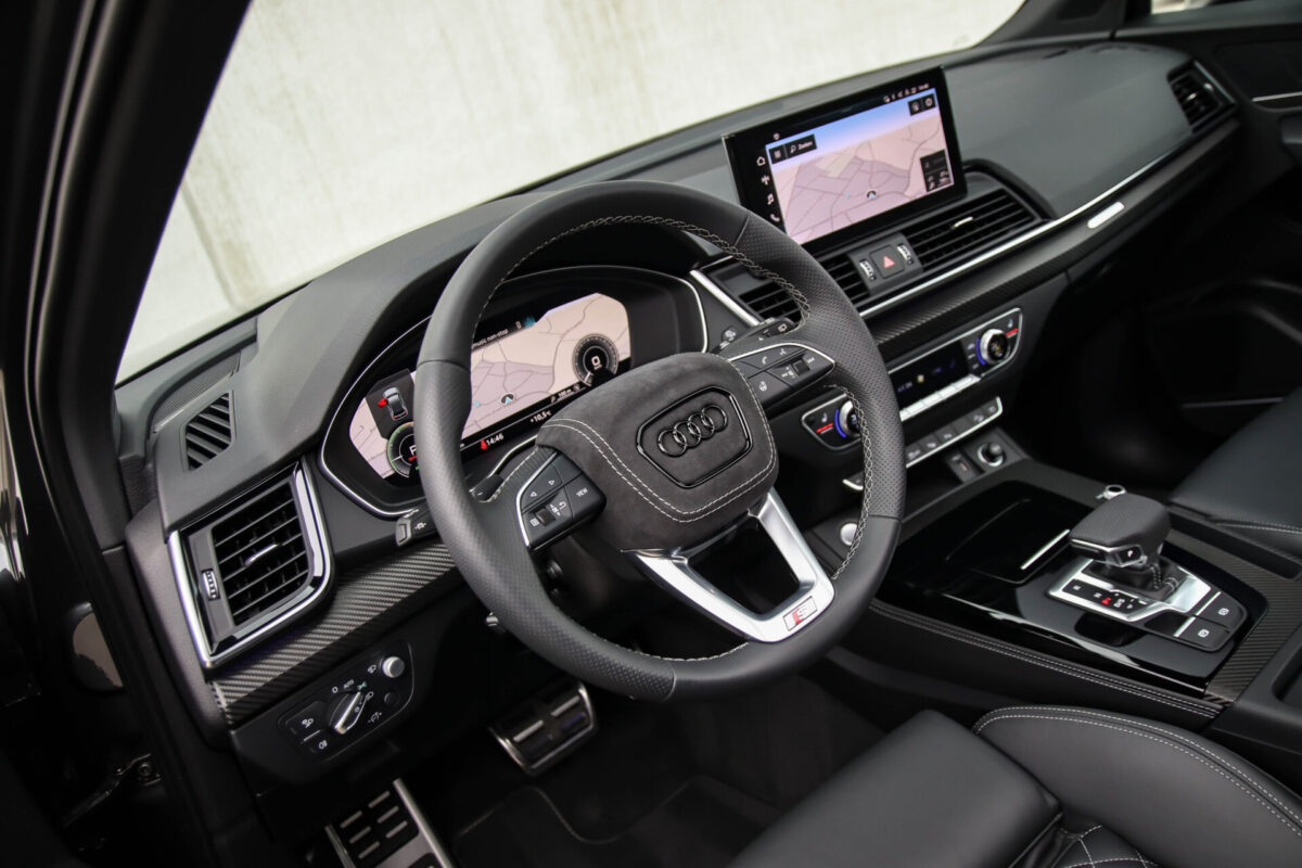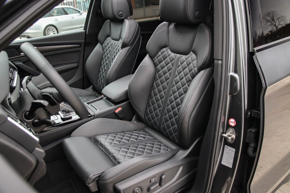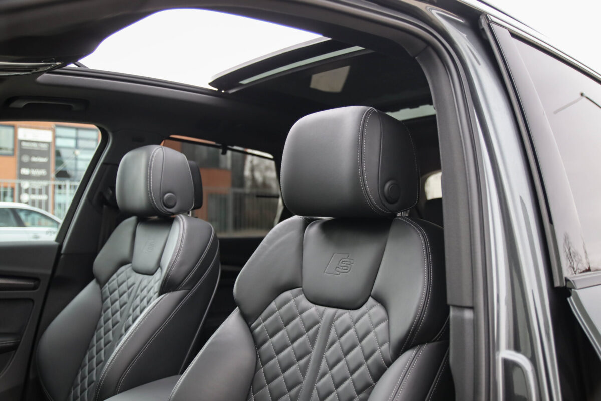 NIEUW MODEL | MODEL 2022! Een in nieuwstaat verkerende Audi Q5 50 TFSI e 220kw/299pk Quattro Competition S-Tronic Automaat Pro Line S S-Line! Audi dealer afkomstig, van de 1e eigenaar met een bijzonder interessant gecontroleerde tellerstand van slechts 30.230km. In unieke en perfecte fabrieksconfiguratie; Daytona Grey parel lak gecombineerd met het Zwart optiekpakket, de comfortabele instelbare Luchtvering, de Elektrisch verstelbare zwart lederen S kuipstoelen met Diamond Cross stitching incl. Massagefunctie + Audi Exclusive Alcantara airbag, het Panoramisch glazen schuif-/kanteldak en natuurlijk de Audi Virtual Cockpit! Deze Audi biedt met de 299pk en 450Nm sterke 2.0 liter TFSI turbomotor, gekoppeld aan de Audi Quattro 4-wielaandrijving een trekvermogen van 2000kg. Het betreft een BTW-auto, dus voor zowel de zakelijke als particuliere klant interessant. De getoonde 22inch Black Performance velgenset met 4x Pirelli Scorpion ZERO Allseason banden is tegen geringe meerprijs van €2595,- te verkrijgen.