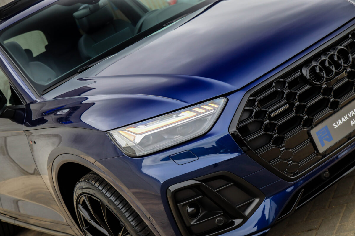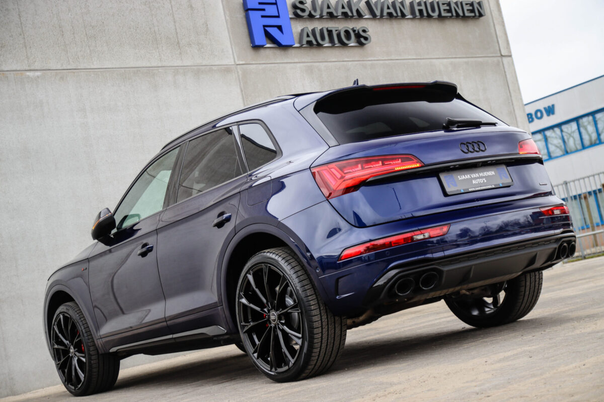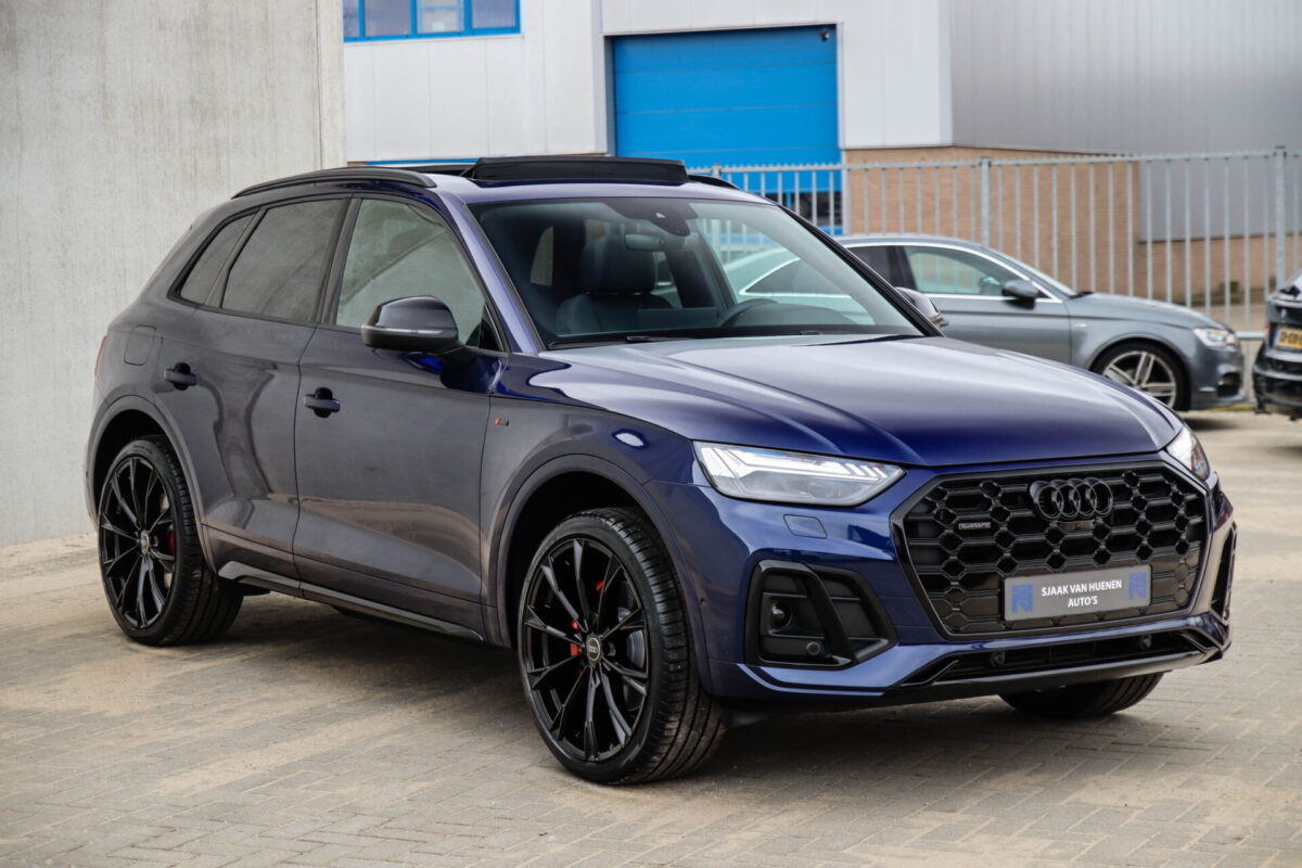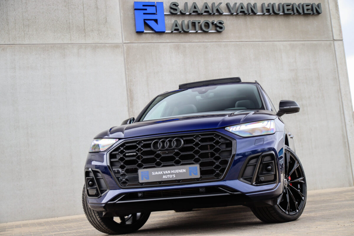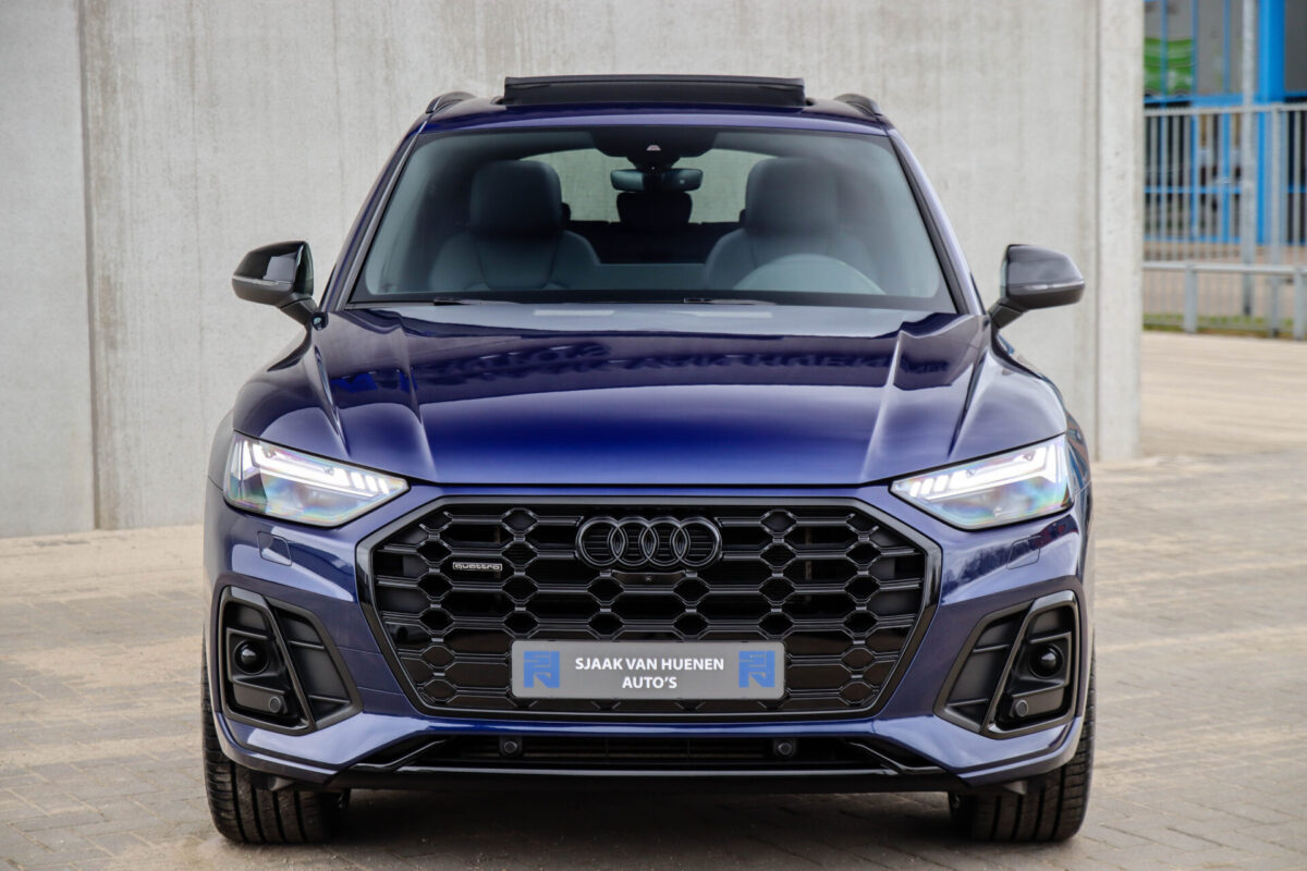 NIEUW MODEL | MODEL 2022! Een in uitmuntende staat verkerende Audi Q5 50 TFSI e 220kw/299pk Quattro Competition S-Tronic Automaat Pro Line S S-Line! Wederom een prachtig Audi dealer exemplaar, afkomstig van de 1e eigenaar en uiteraard volledig Audi dealer onderhouden met een zeer interessante gecontroleerde tellerstand van slechts 33.665km. Een geweldig sportieve uitstraling door de Navarra Blue parel lak gecombineerd met het Zwart optiekpakket, het Panoramisch glazen schuif-/kanteldak en natuurlijk de Audi Virtual Cockpit! Deze Audi biedt met de 299pk en 450Nm sterke 2.0 liter TFSI turbomotor, gekoppeld aan de Audi Quattro 4-wielaandrijving een trekvermogen van 2000kg. Het betreft een BTW-auto, dus voor zowel de zakelijke als particuliere klant interessant. De getoonde 22inch Black Performance velgenset met 4x Pirelli Scorpion ZERO Allseason banden is tegen geringe meerprijs van €2595,- te verkrijgen.