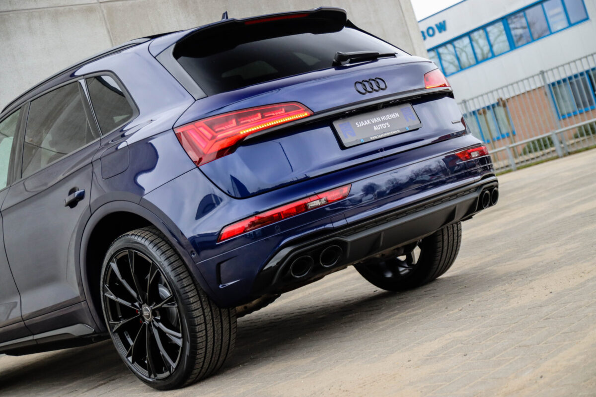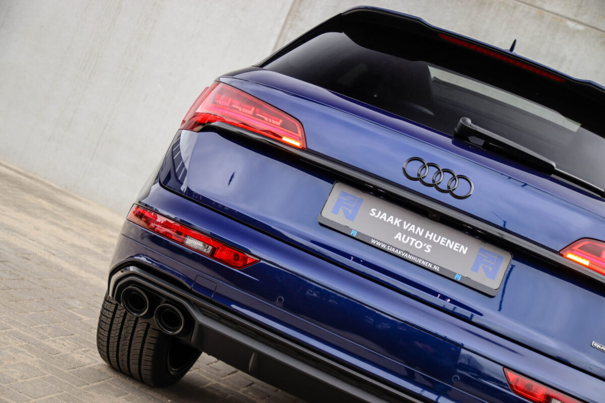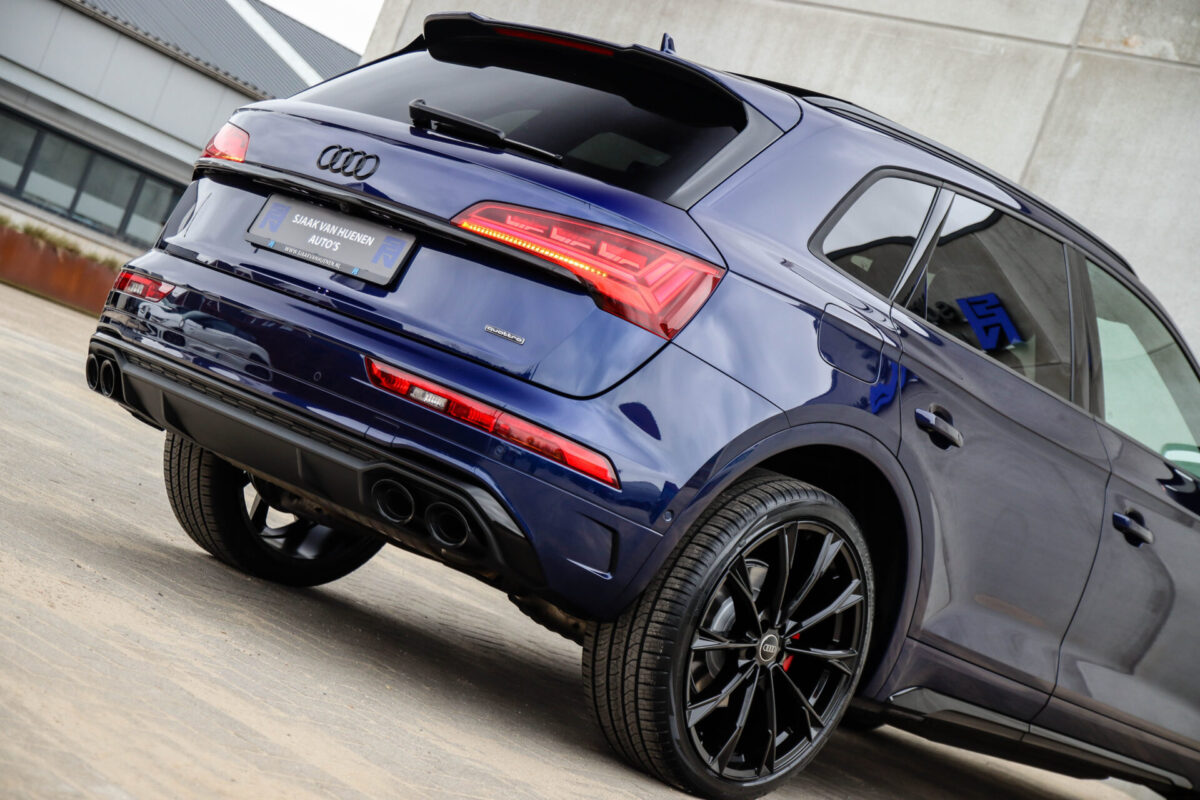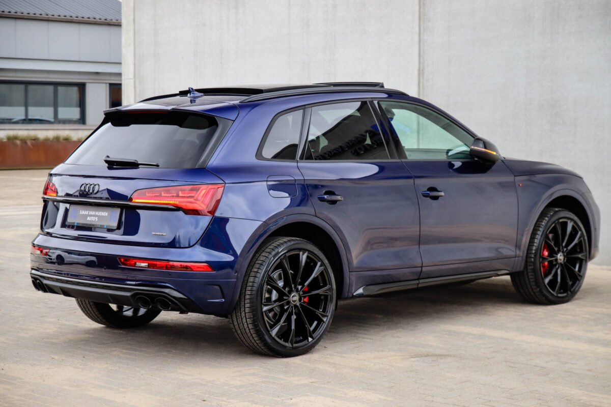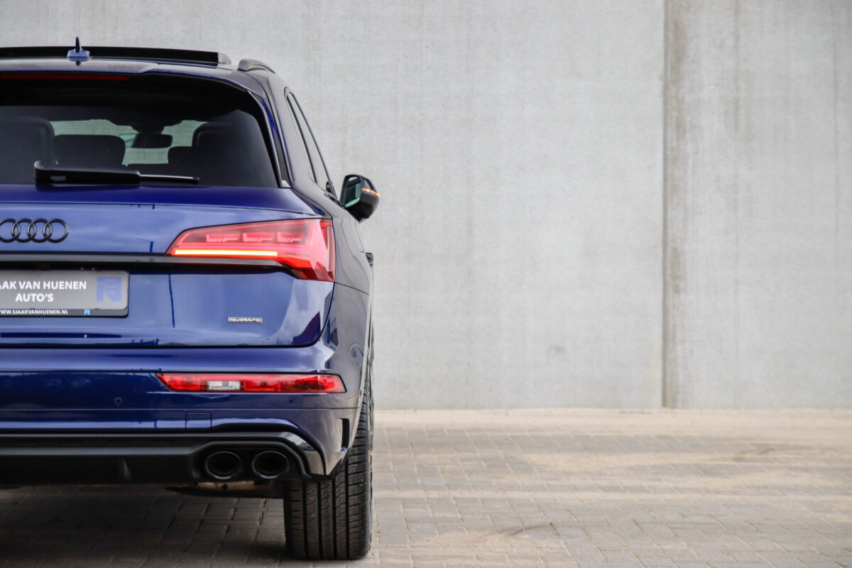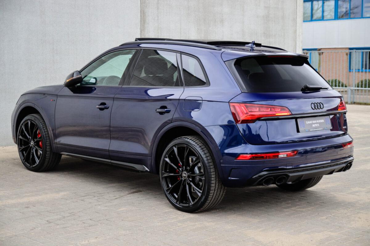 NIEUW MODEL | MODEL 2022! Een in uitmuntende staat verkerende Audi Q5 50 TFSI e 220kw/299pk Quattro Competition S-Tronic Automaat Pro Line S S-Line! Wederom een prachtig Audi dealer exemplaar, afkomstig van de 1e eigenaar en uiteraard volledig Audi dealer onderhouden met een zeer interessante gecontroleerde tellerstand van slechts 33.665km. Een geweldig sportieve uitstraling door de Navarra Blue parel lak gecombineerd met het Zwart optiekpakket, het Panoramisch glazen schuif-/kanteldak en natuurlijk de Audi Virtual Cockpit! Deze Audi biedt met de 299pk en 450Nm sterke 2.0 liter TFSI turbomotor, gekoppeld aan de Audi Quattro 4-wielaandrijving een trekvermogen van 2000kg. Het betreft een BTW-auto, dus voor zowel de zakelijke als particuliere klant interessant. De getoonde 22inch Black Performance velgenset met 4x Pirelli Scorpion ZERO Allseason banden is tegen geringe meerprijs van €2595,- te verkrijgen.