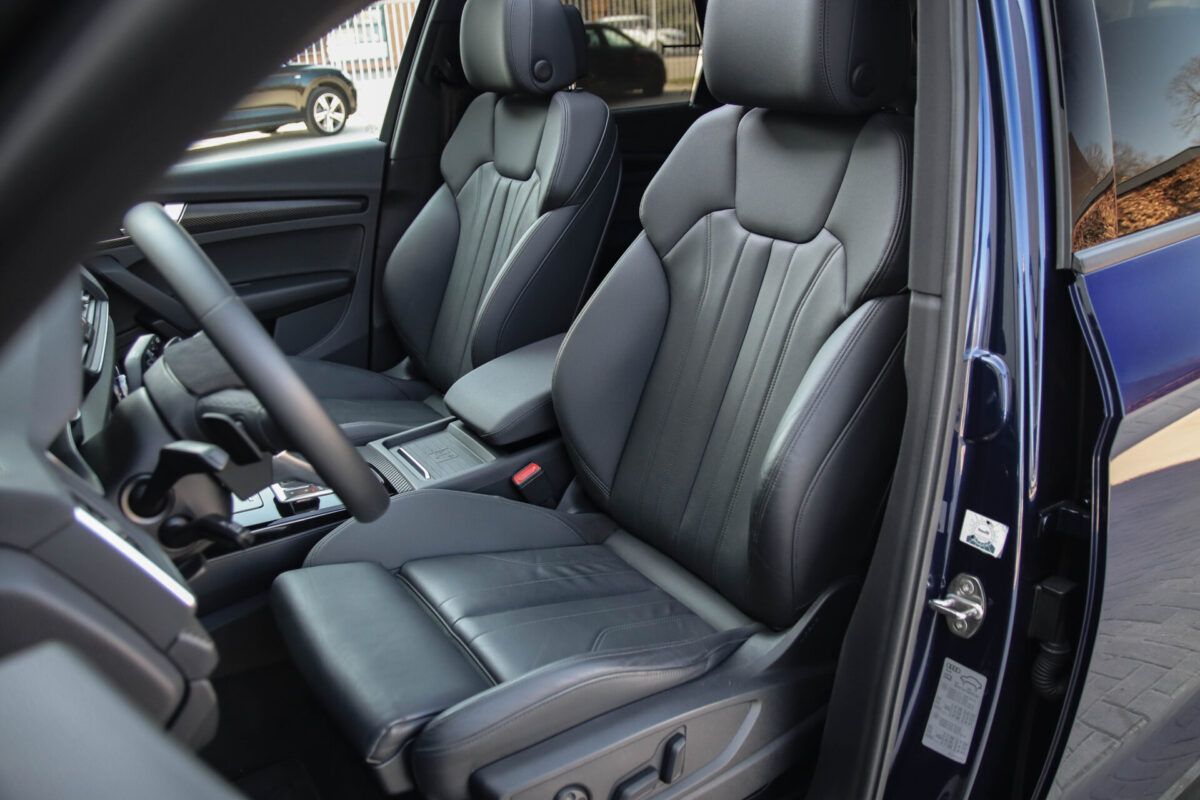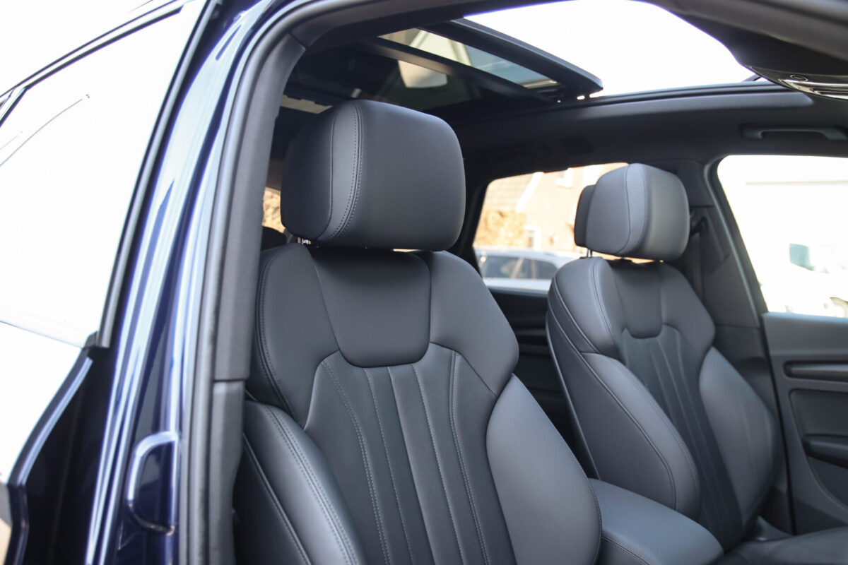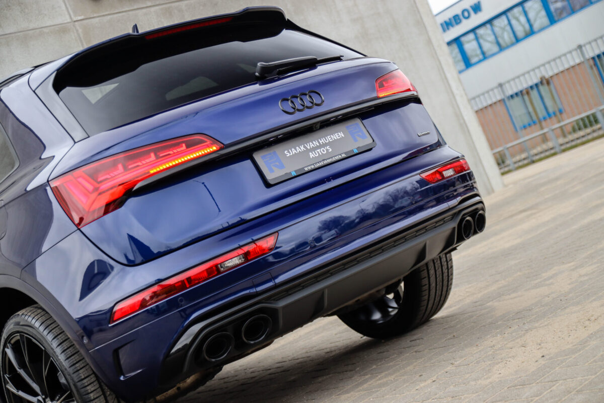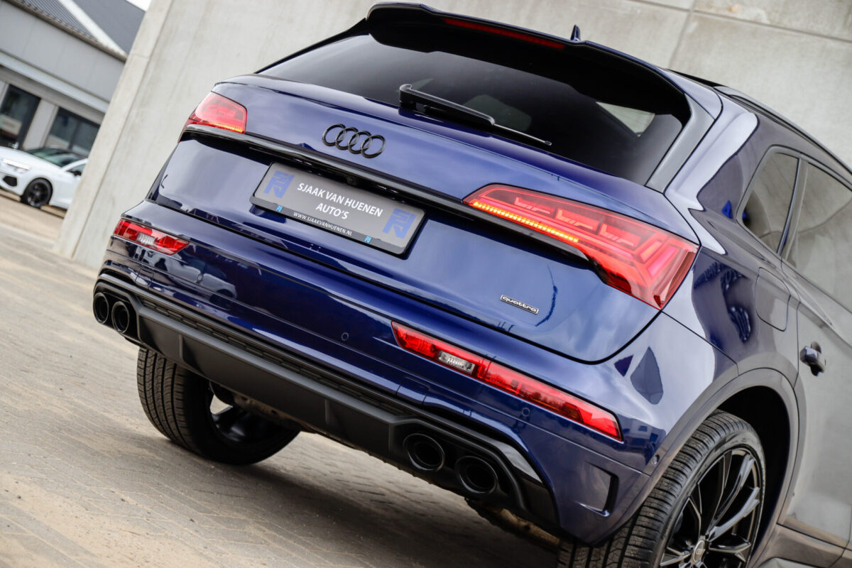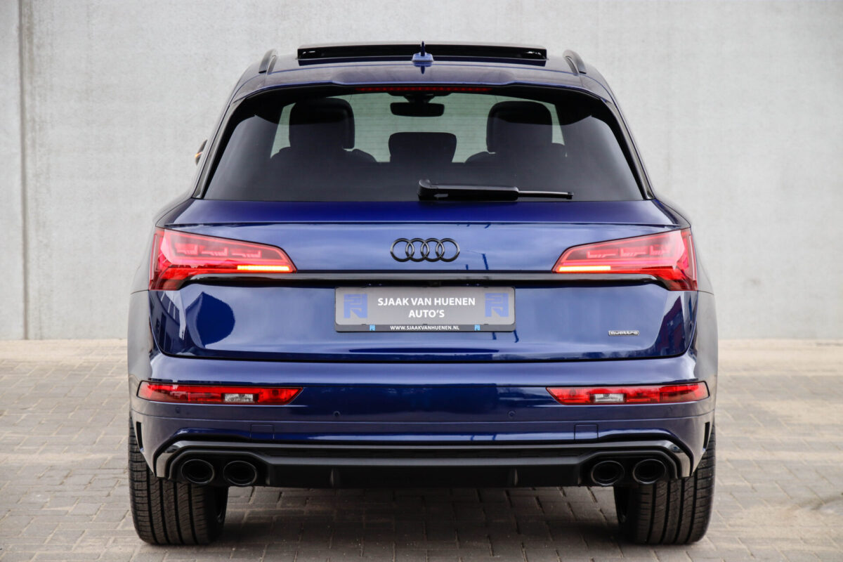 NIEUW MODEL | MODEL 2022! Een in uitmuntende staat verkerende Audi Q5 50 TFSI e 220kw/299pk Quattro Competition S-Tronic Automaat Pro Line S S-Line! Wederom een prachtig Audi dealer exemplaar, afkomstig van de 1e eigenaar en uiteraard volledig Audi dealer onderhouden met een zeer interessante gecontroleerde tellerstand van slechts 33.665km. Een geweldig sportieve uitstraling door de Navarra Blue parel lak gecombineerd met het Zwart optiekpakket, het Panoramisch glazen schuif-/kanteldak en natuurlijk de Audi Virtual Cockpit! Deze Audi biedt met de 299pk en 450Nm sterke 2.0 liter TFSI turbomotor, gekoppeld aan de Audi Quattro 4-wielaandrijving een trekvermogen van 2000kg. Het betreft een BTW-auto, dus voor zowel de zakelijke als particuliere klant interessant. De getoonde 22inch Black Performance velgenset met 4x Pirelli Scorpion ZERO Allseason banden is tegen geringe meerprijs van €2595,- te verkrijgen.
