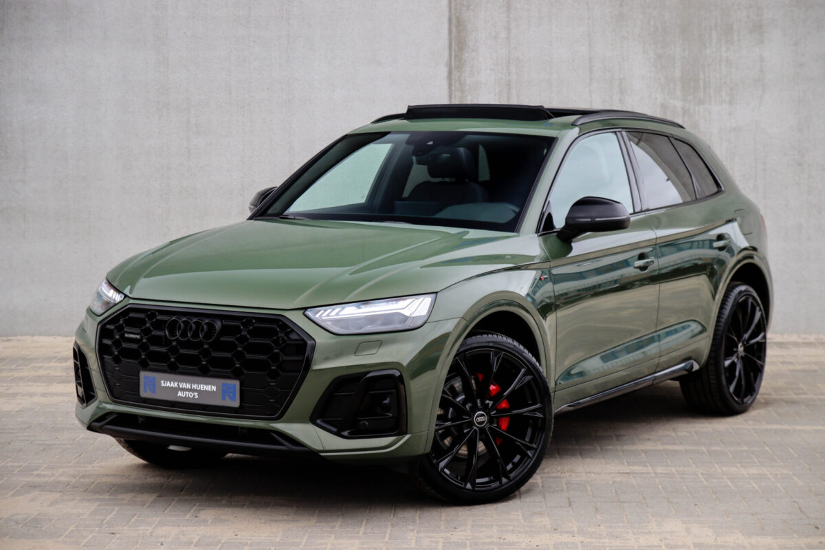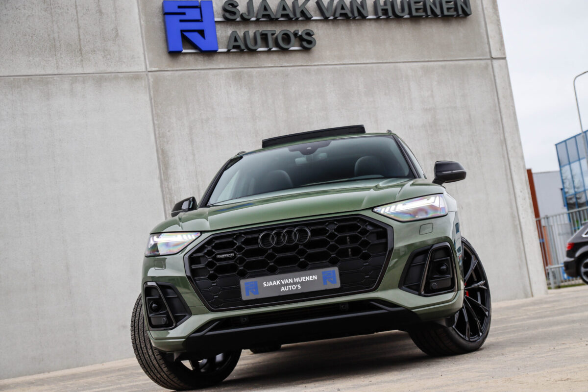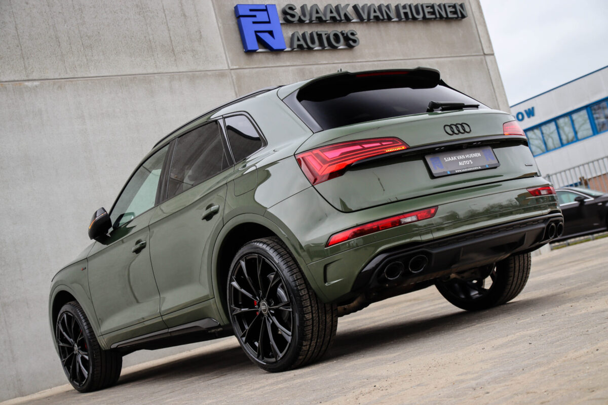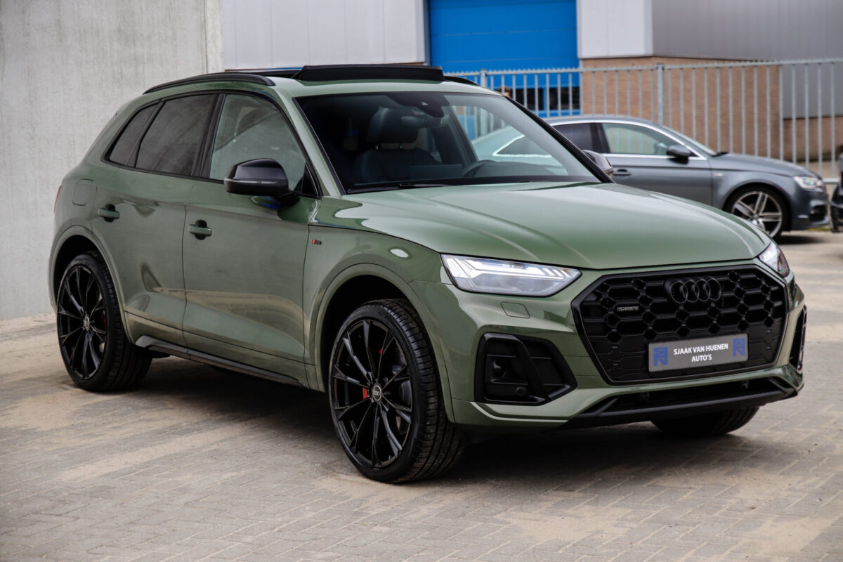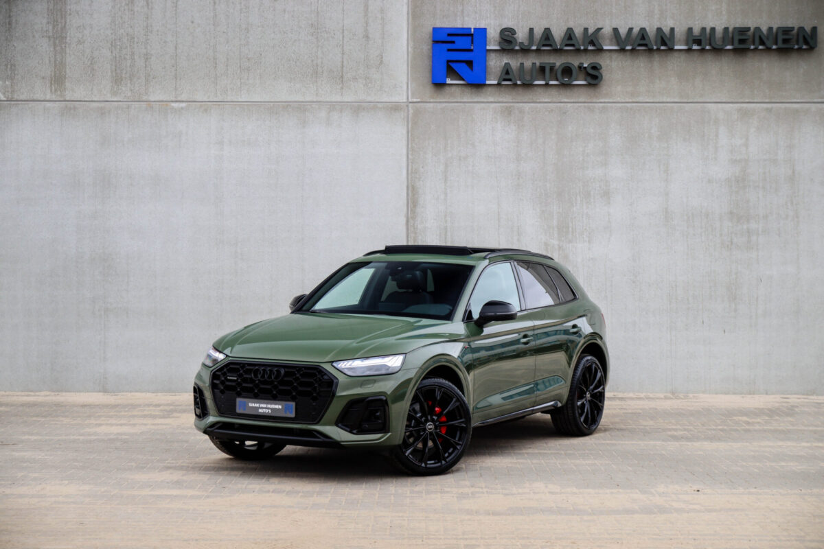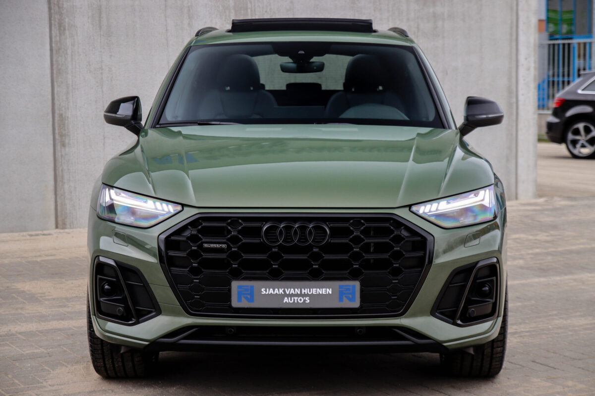 NIEUW MODEL | MODEL 2022! Een fantastisch mooie Audi Q5 50 TFSI e 220kw/299pk Quattro Competition S-Tronic Automaat Pro Line S S-Line! Door ons rechtstreeks aangekocht bij de Audi dealer, afkomstig van de 1e eigenaar en uiteraard volledig Audi dealer onderhouden met een gecontroleerde tellerstand van slechts 55.177km. Een bijzonder gave uitstraling door de District Green parel lak gecombineerd met het Zwart optiekpakket, het Panoramisch glazen schuif-/kanteldak en natuurlijk de Audi Virtual Cockpit! Deze Audi biedt met de 299pk en 450Nm sterke 2.0 liter TFSI turbomotor, gekoppeld aan de Audi Quattro 4-wielaandrijving een trekvermogen van 2000kg. Het betreft een BTW-auto, dus voor zowel de zakelijke als particuliere klant interessant. De getoonde 22inch Black Performance velgenset met 4x Pirelli Scorpion ZERO Allseason banden is tegen geringe meerprijs van €2595,- te verkrijgen.