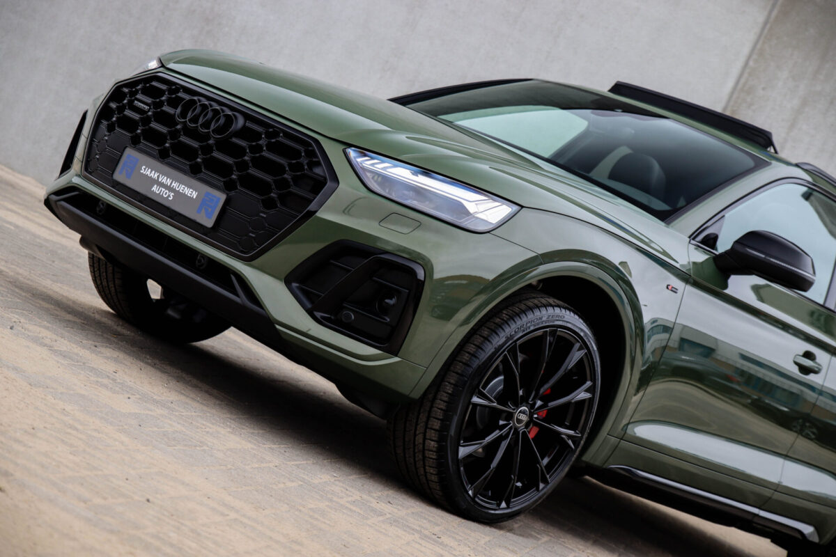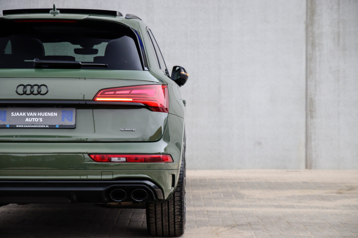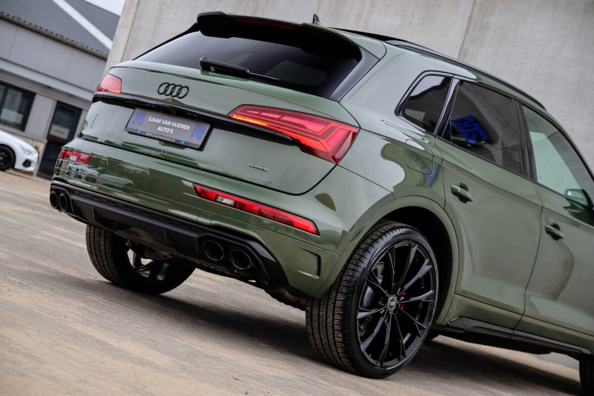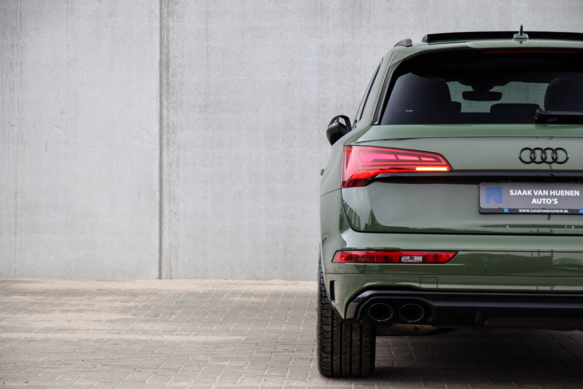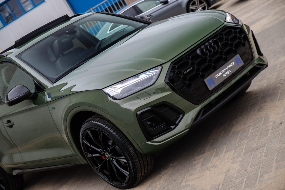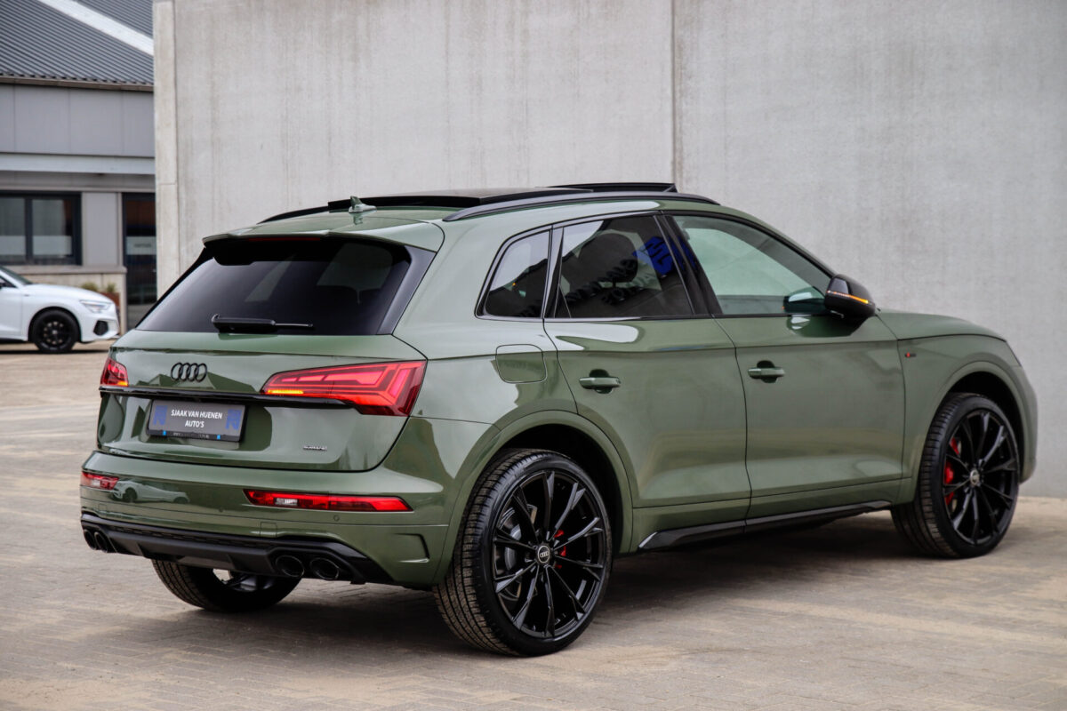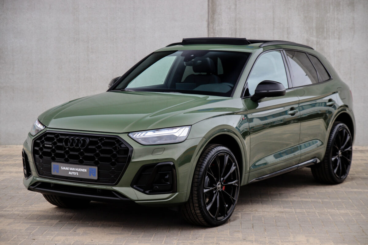 NIEUW MODEL | MODEL 2022! Een fantastisch mooie Audi Q5 50 TFSI e 220kw/299pk Quattro Competition S-Tronic Automaat Pro Line S S-Line! Door ons rechtstreeks aangekocht bij de Audi dealer, afkomstig van de 1e eigenaar en uiteraard volledig Audi dealer onderhouden met een gecontroleerde tellerstand van slechts 55.177km. Een bijzonder gave uitstraling door de District Green parel lak gecombineerd met het Zwart optiekpakket, het Panoramisch glazen schuif-/kanteldak en natuurlijk de Audi Virtual Cockpit! Deze Audi biedt met de 299pk en 450Nm sterke 2.0 liter TFSI turbomotor, gekoppeld aan de Audi Quattro 4-wielaandrijving een trekvermogen van 2000kg. Het betreft een BTW-auto, dus voor zowel de zakelijke als particuliere klant interessant. De getoonde 22inch Black Performance velgenset met 4x Pirelli Scorpion ZERO Allseason banden is tegen geringe meerprijs van €2595,- te verkrijgen.