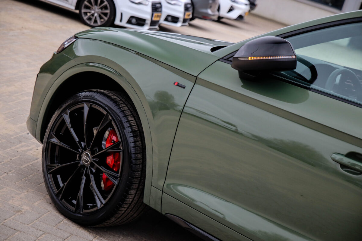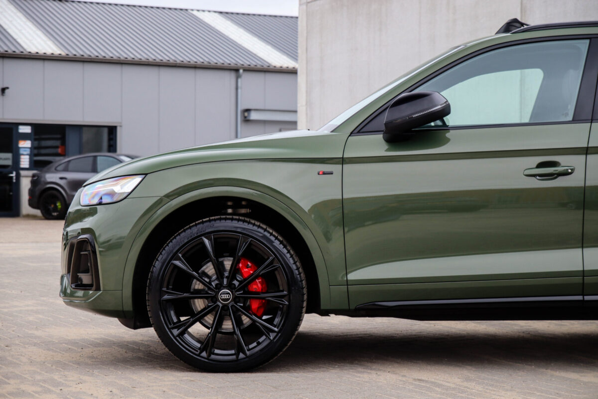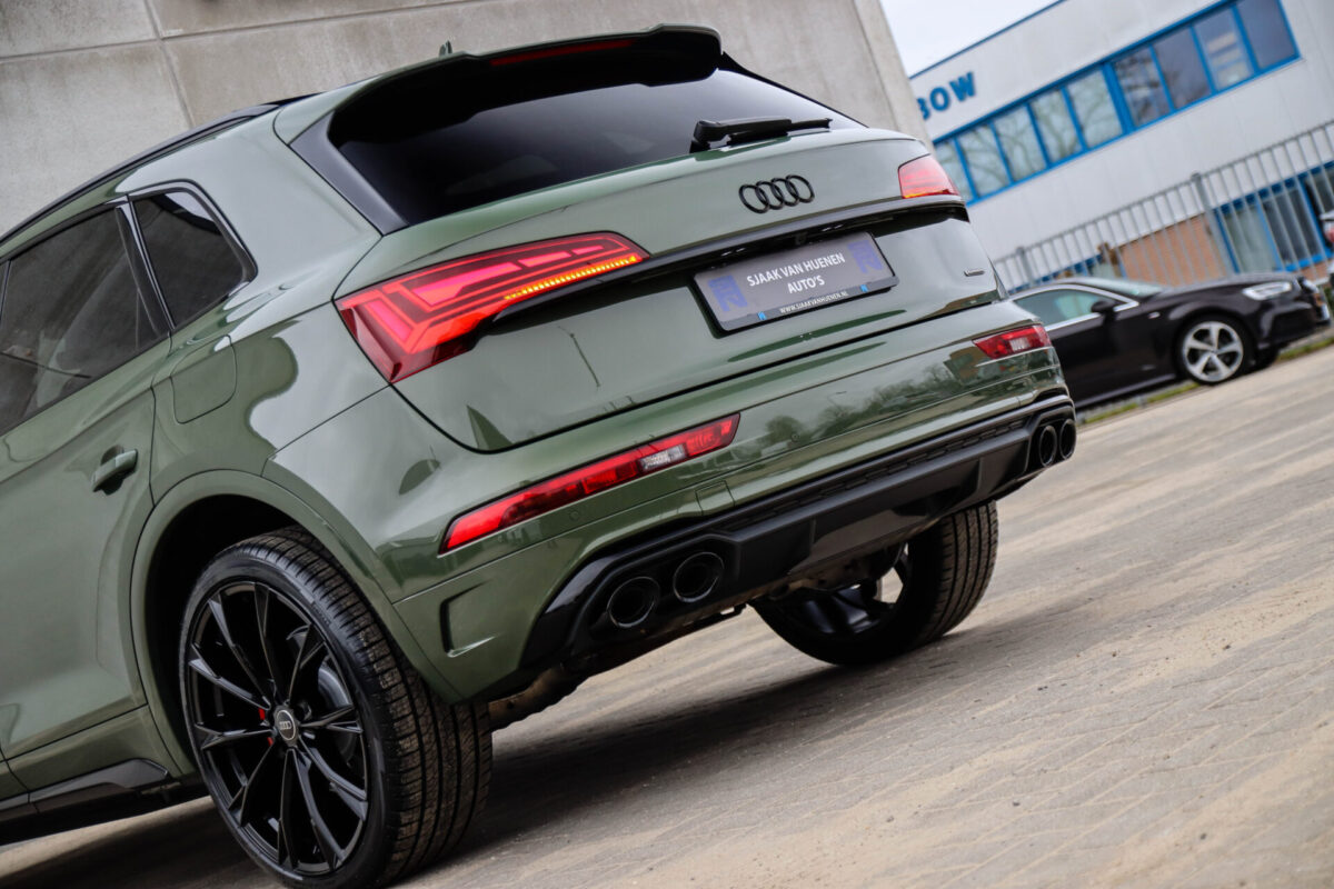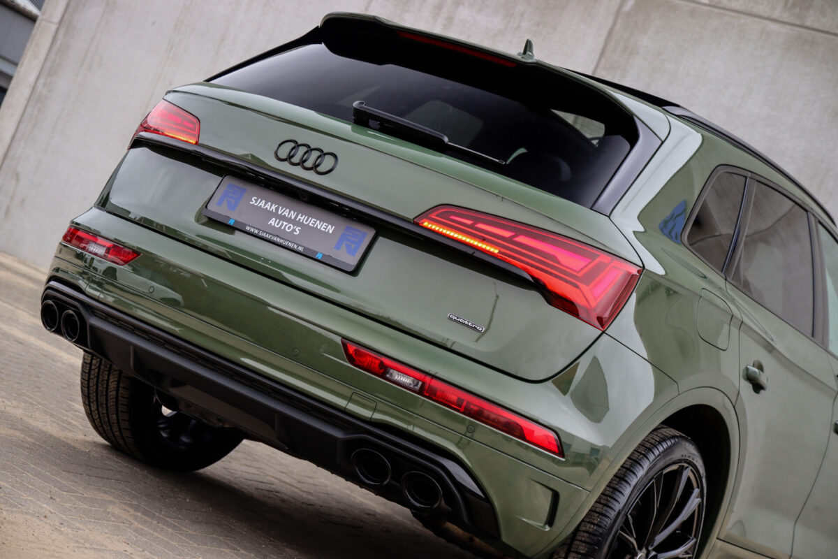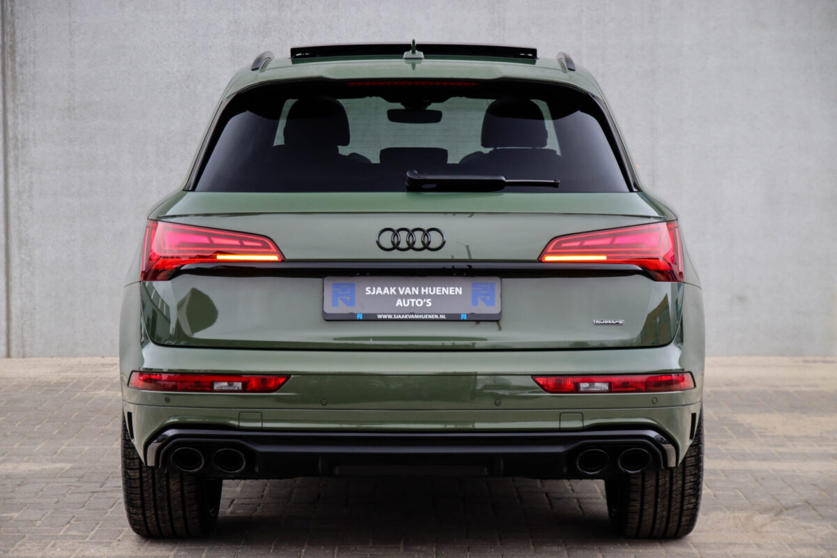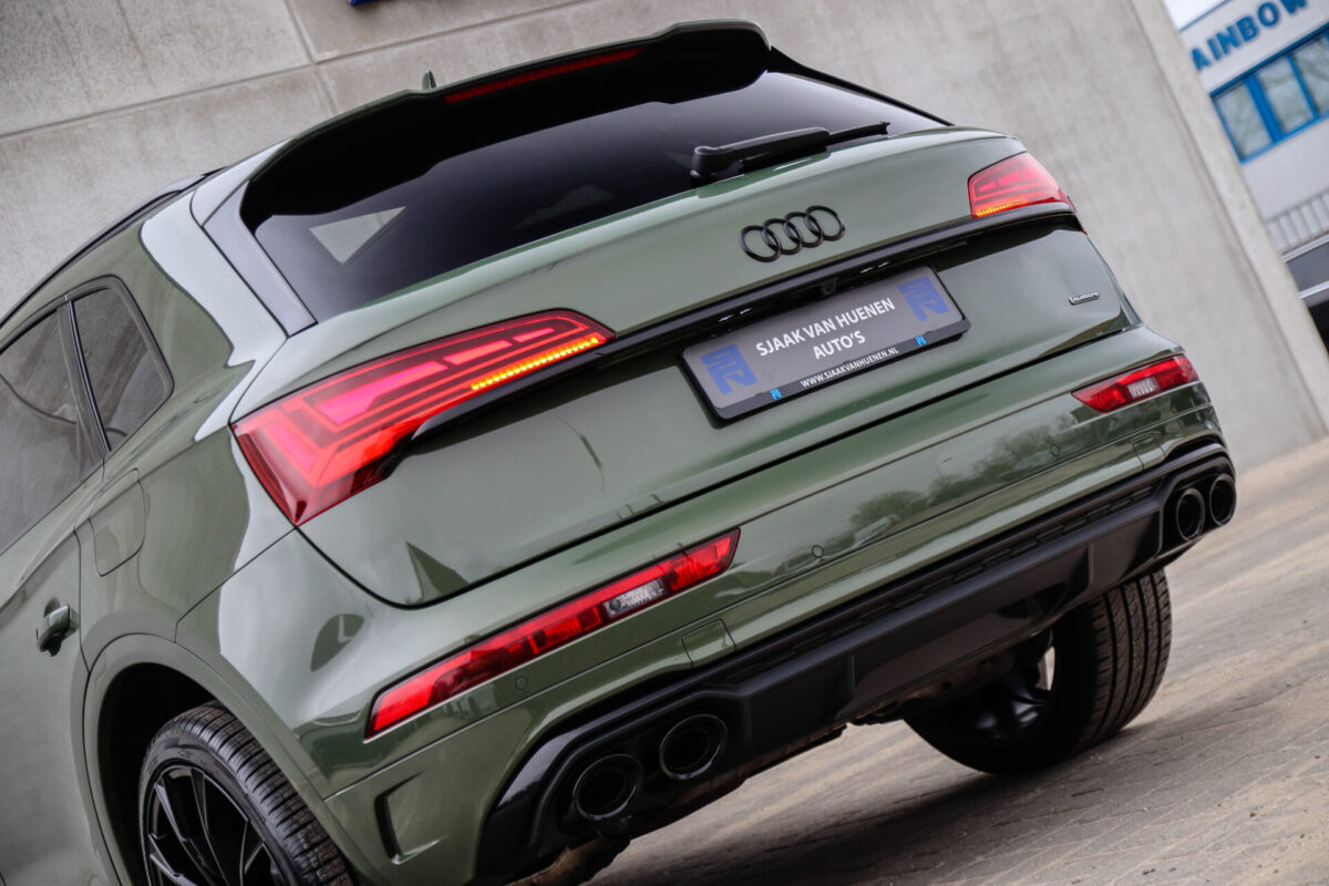 NIEUW MODEL | MODEL 2022! Een fantastisch mooie Audi Q5 50 TFSI e 220kw/299pk Quattro Competition S-Tronic Automaat Pro Line S S-Line! Door ons rechtstreeks aangekocht bij de Audi dealer, afkomstig van de 1e eigenaar en uiteraard volledig Audi dealer onderhouden met een gecontroleerde tellerstand van slechts 55.177km. Een bijzonder gave uitstraling door de District Green parel lak gecombineerd met het Zwart optiekpakket, het Panoramisch glazen schuif-/kanteldak en natuurlijk de Audi Virtual Cockpit! Deze Audi biedt met de 299pk en 450Nm sterke 2.0 liter TFSI turbomotor, gekoppeld aan de Audi Quattro 4-wielaandrijving een trekvermogen van 2000kg. Het betreft een BTW-auto, dus voor zowel de zakelijke als particuliere klant interessant. De getoonde 22inch Black Performance velgenset met 4x Pirelli Scorpion ZERO Allseason banden is tegen geringe meerprijs van €2595,- te verkrijgen.