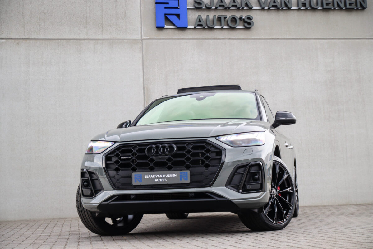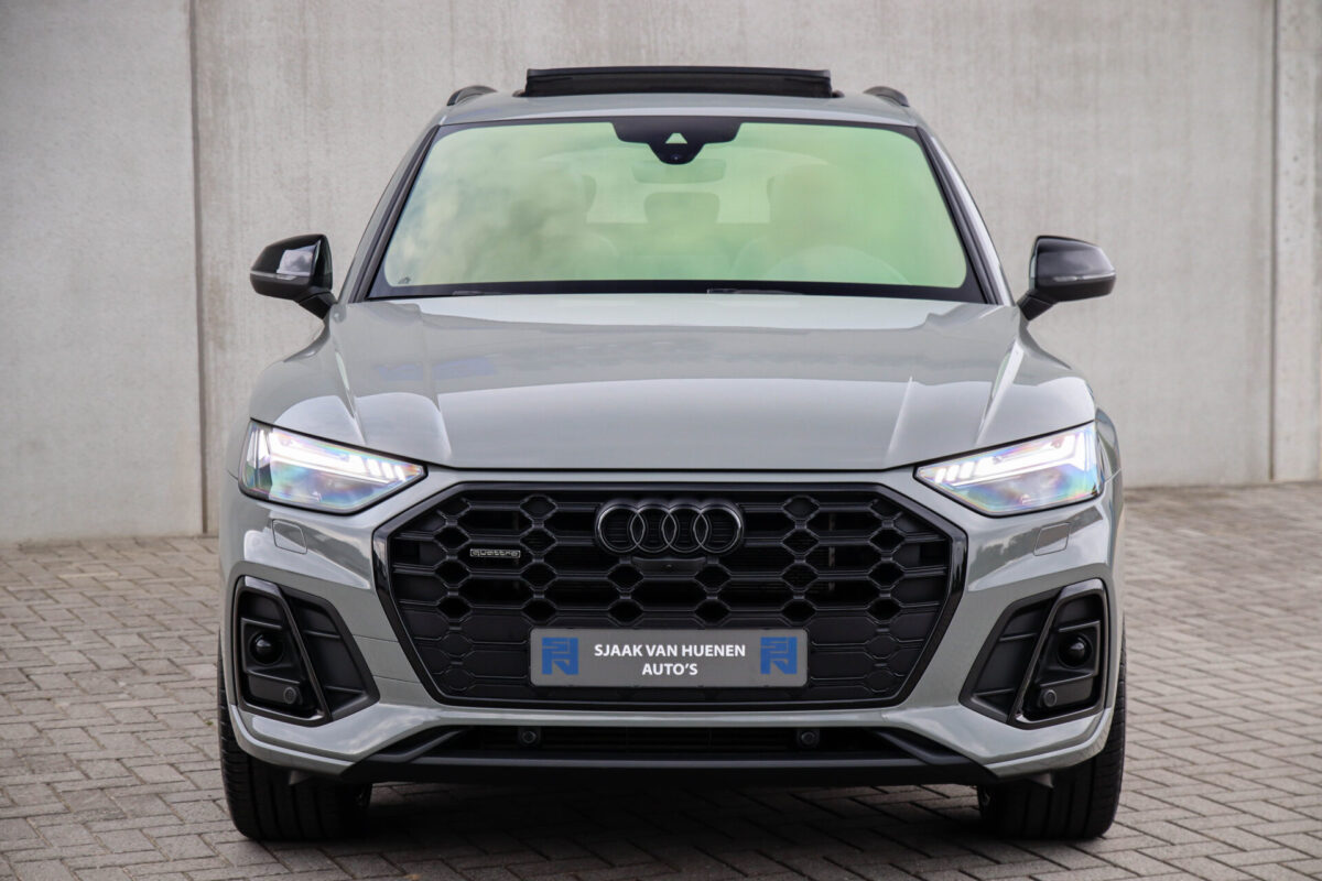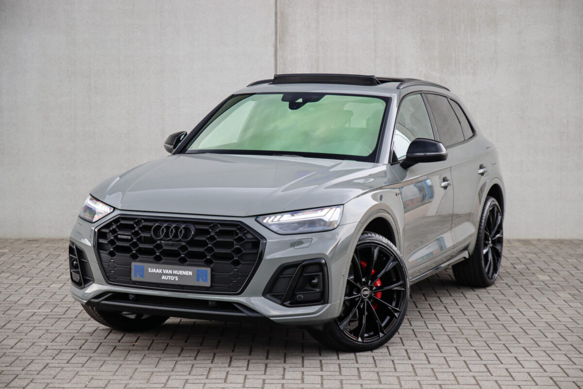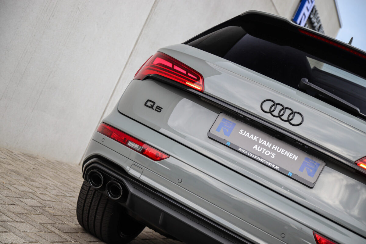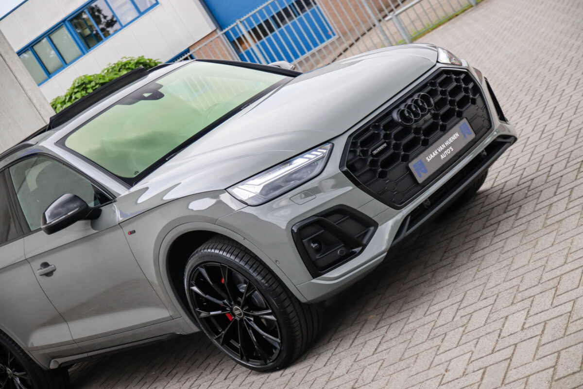 NIEUW MODEL | MODEL 2022! Een in uitmuntende staat verkerende Audi Q5 50 TFSI e 220kw/299pk Quattro Competition S-Tronic Automaat Pro Line S S-Line! Rechtstreeks aangekocht bij de Audi dealer, afkomstig van de 1e eigenaar met een uiterst interessant gecontroleerde tellerstand van slechts 55.588km. In perfecte fabrieksconfiguratie; Quantum Grey parel lak gecombineerd met het Zwart optiekpakket, de Elektrisch verstelbare zwart lederen S kuipstoelen met Diamond Cross stitching met stoelmassage + Audi Exclusive Alcantara airbag, het Panoramisch glazen schuif-/kanteldak en natuurlijk de Audi Virtual Cockpit! Deze Audi biedt met de 299pk en 450Nm sterke 2.0 liter TFSI turbomotor, gekoppeld aan de Audi Quattro 4-wielaandrijving een trekvermogen van 2000kg. Het betreft een BTW-auto, dus voor zowel de zakelijke als particuliere klant interessant. De getoonde 22inch Black Performance velgenset met 4x Pirelli Scorpion ZERO Allseason banden is tegen geringe meerprijs van €2595,- te verkrijgen.