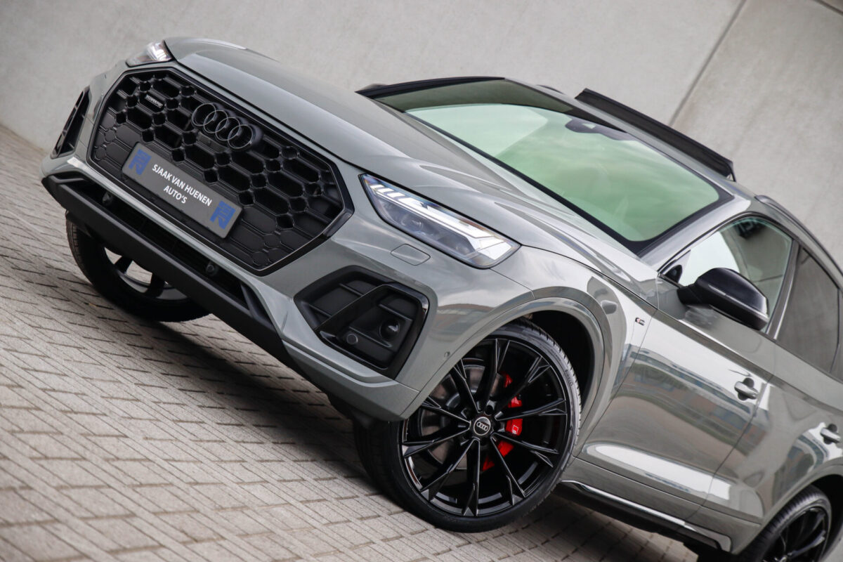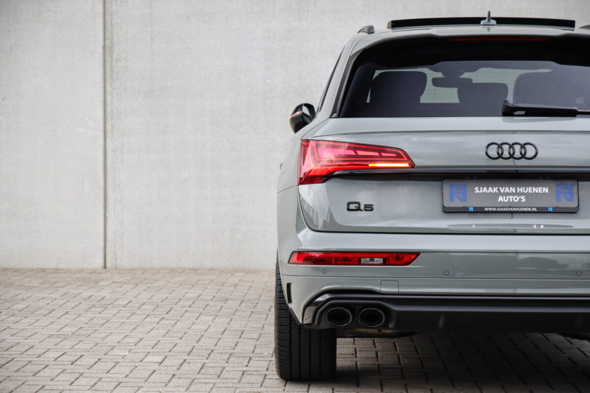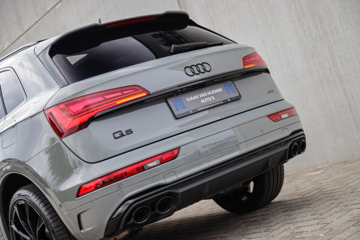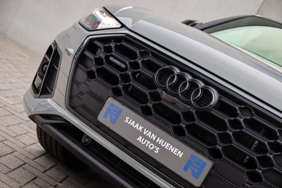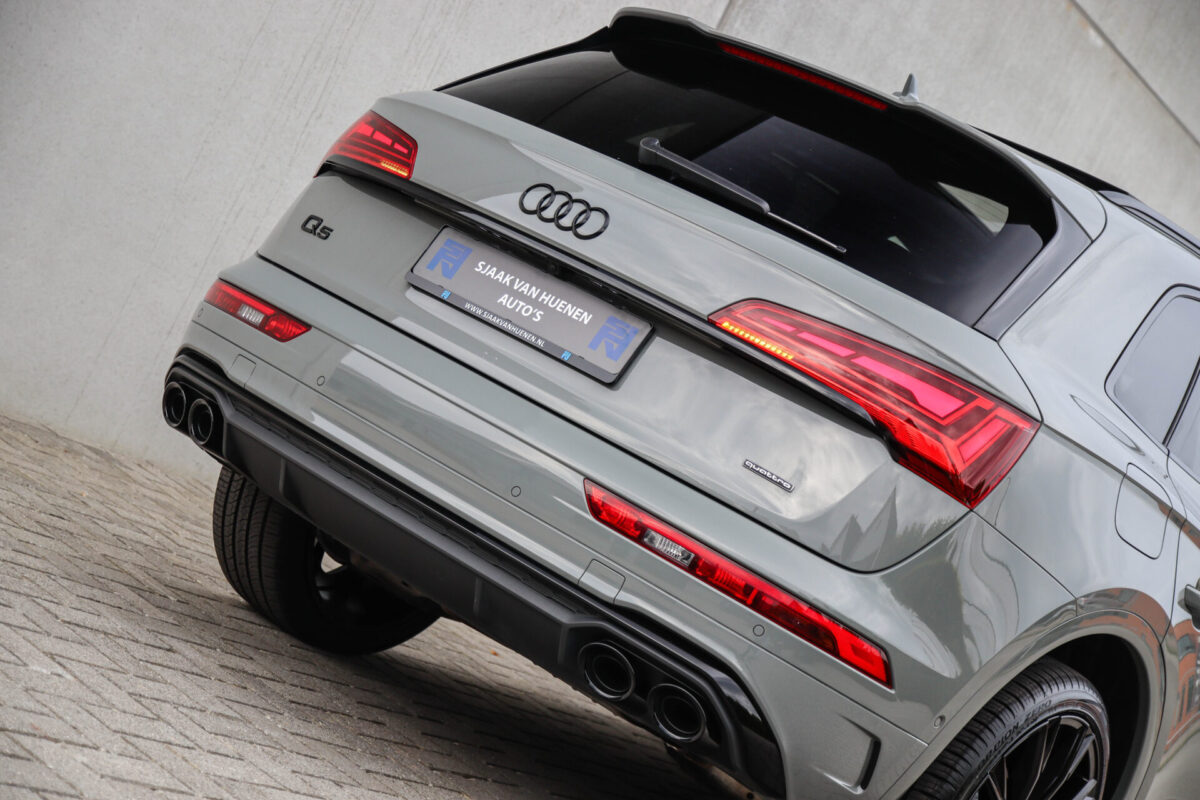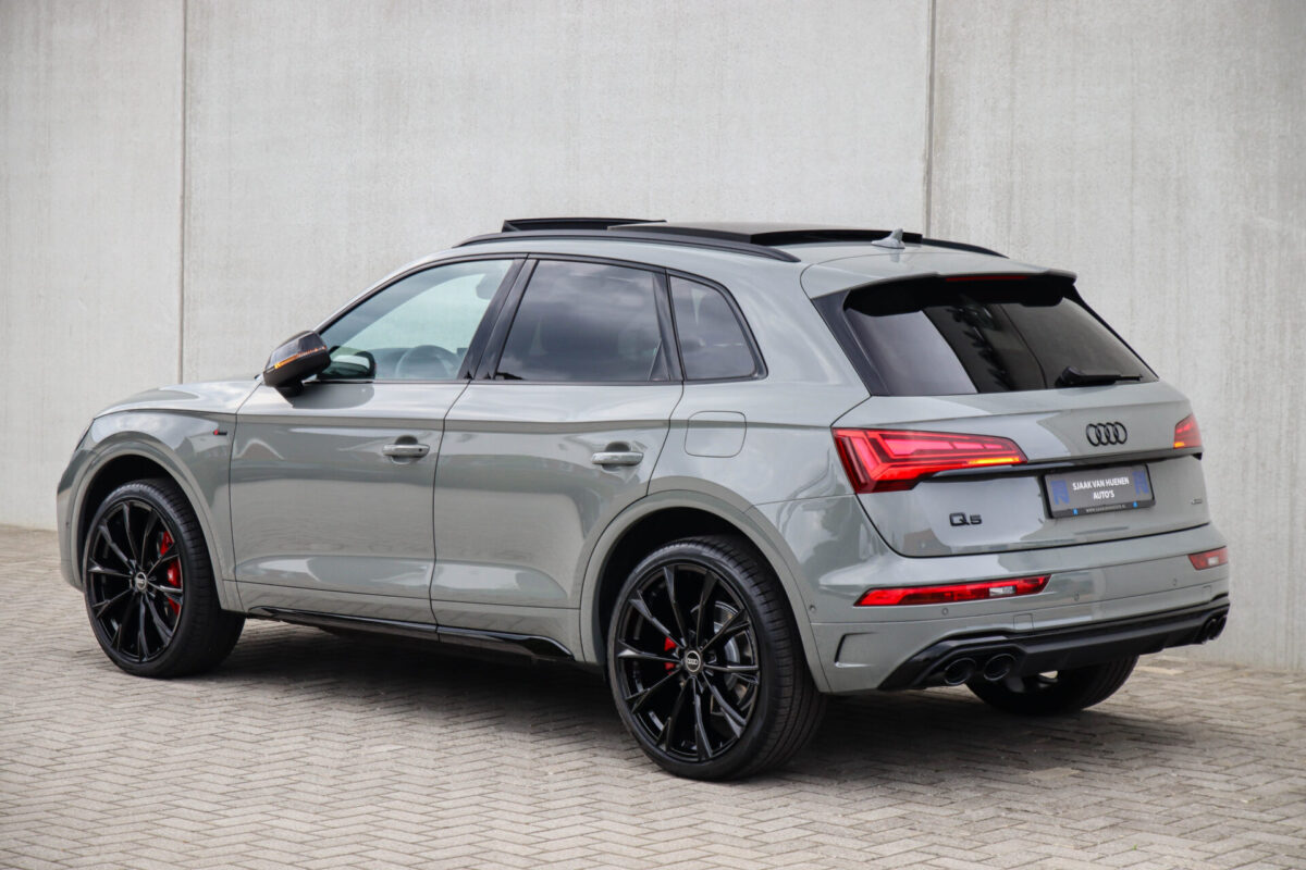 NIEUW MODEL | MODEL 2022! Een in uitmuntende staat verkerende Audi Q5 50 TFSI e 220kw/299pk Quattro Competition S-Tronic Automaat Pro Line S S-Line! Rechtstreeks aangekocht bij de Audi dealer, afkomstig van de 1e eigenaar met een uiterst interessant gecontroleerde tellerstand van slechts 55.588km. In perfecte fabrieksconfiguratie; Quantum Grey parel lak gecombineerd met het Zwart optiekpakket, de Elektrisch verstelbare zwart lederen S kuipstoelen met Diamond Cross stitching met stoelmassage + Audi Exclusive Alcantara airbag, het Panoramisch glazen schuif-/kanteldak en natuurlijk de Audi Virtual Cockpit! Deze Audi biedt met de 299pk en 450Nm sterke 2.0 liter TFSI turbomotor, gekoppeld aan de Audi Quattro 4-wielaandrijving een trekvermogen van 2000kg. Het betreft een BTW-auto, dus voor zowel de zakelijke als particuliere klant interessant. De getoonde 22inch Black Performance velgenset met 4x Pirelli Scorpion ZERO Allseason banden is tegen geringe meerprijs van €2595,- te verkrijgen.